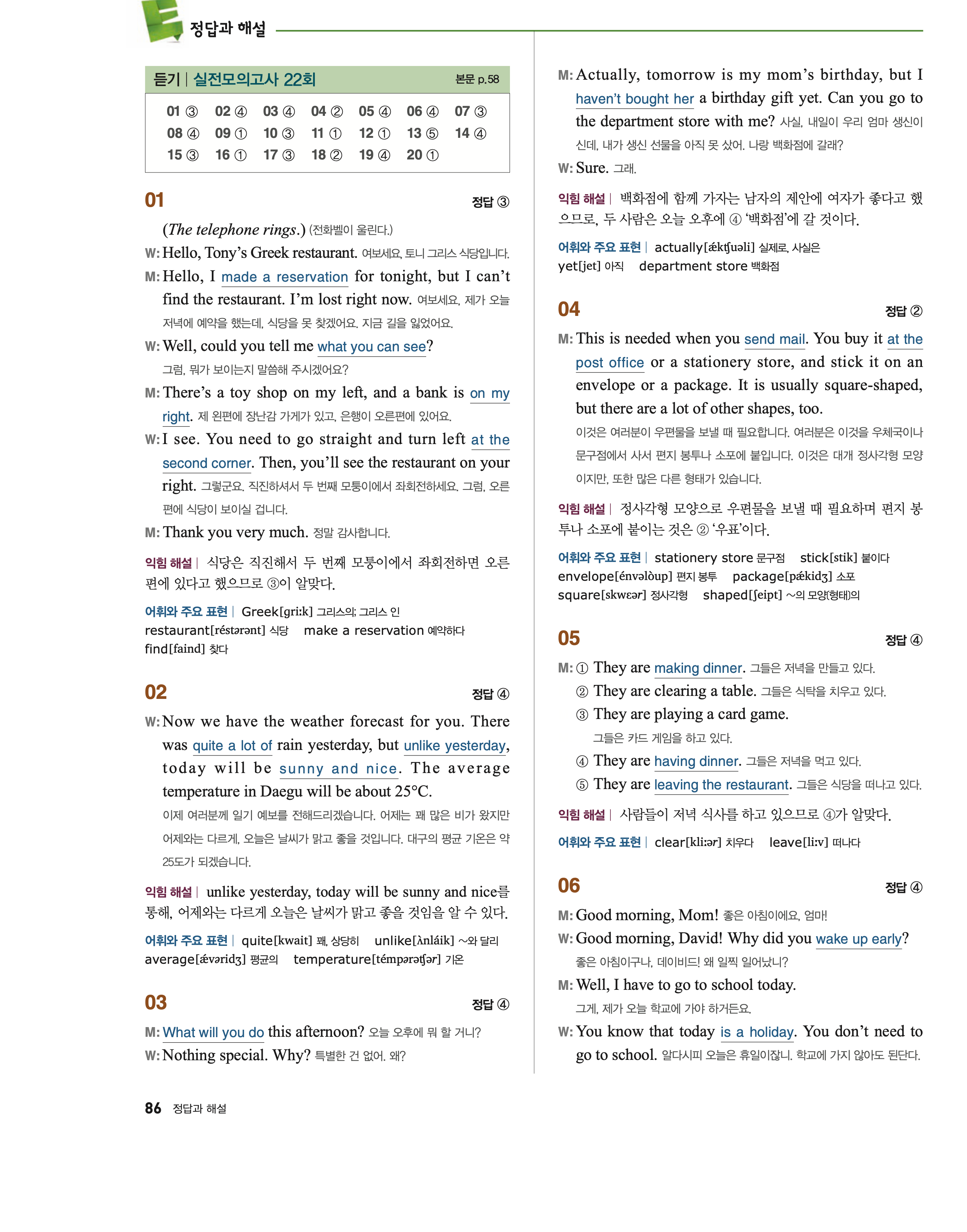 3. 듣기 실력 완성을 위한 Dictation Book 별책 제공