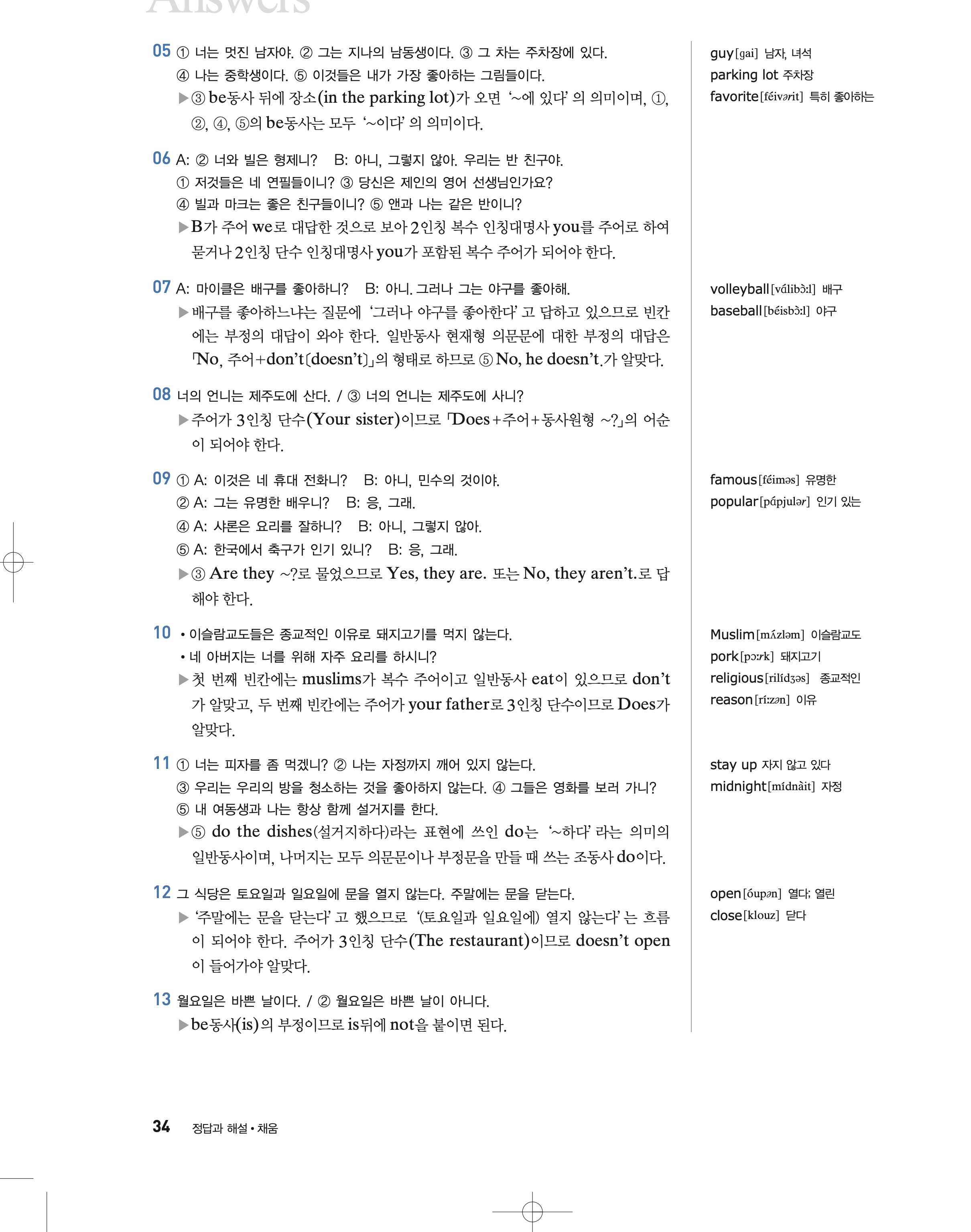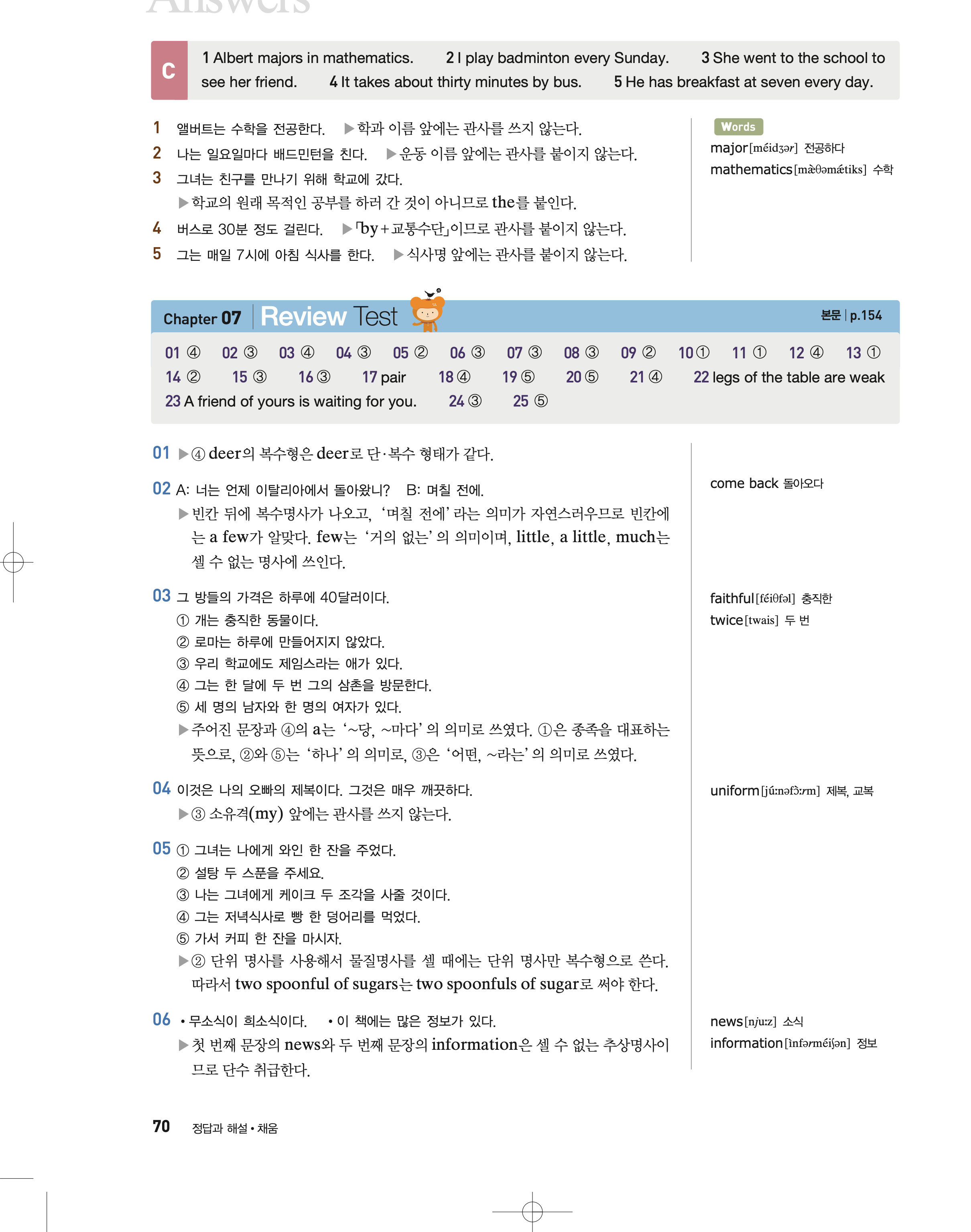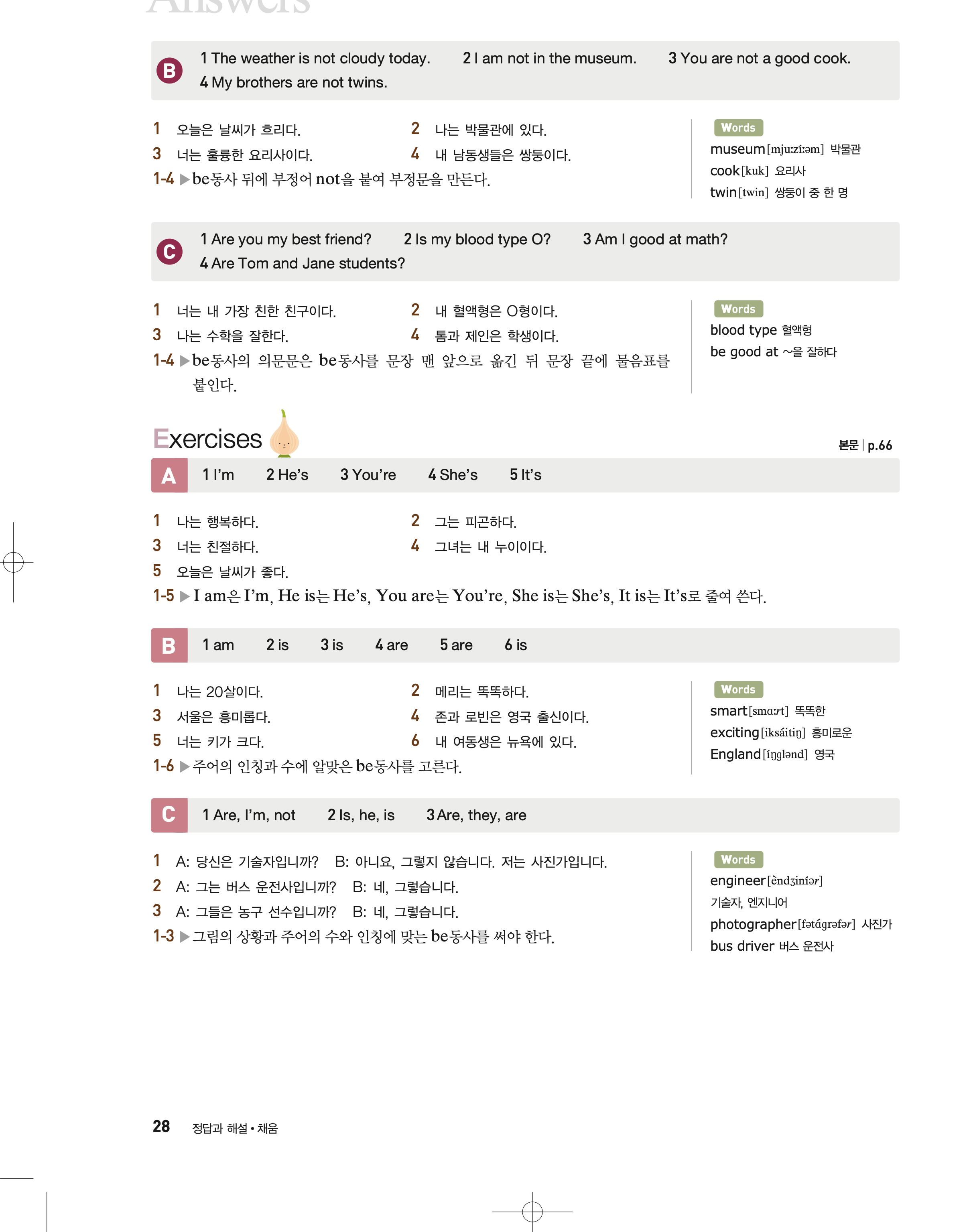 진짜이해잘되는중등영문법 레벨1 답지 해설 바로보는 사진답지 빠른답지 모바일최적화