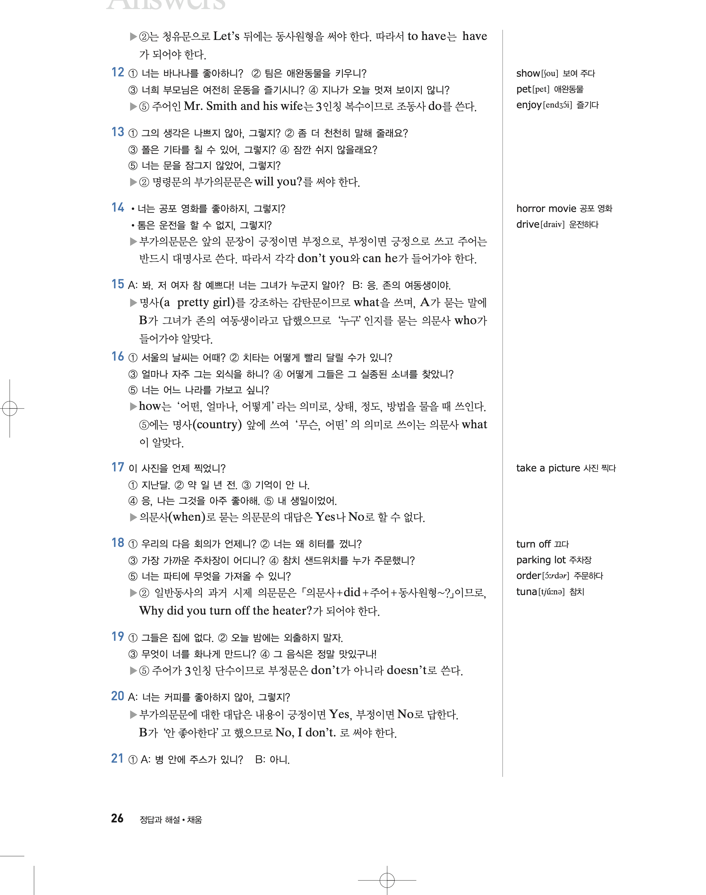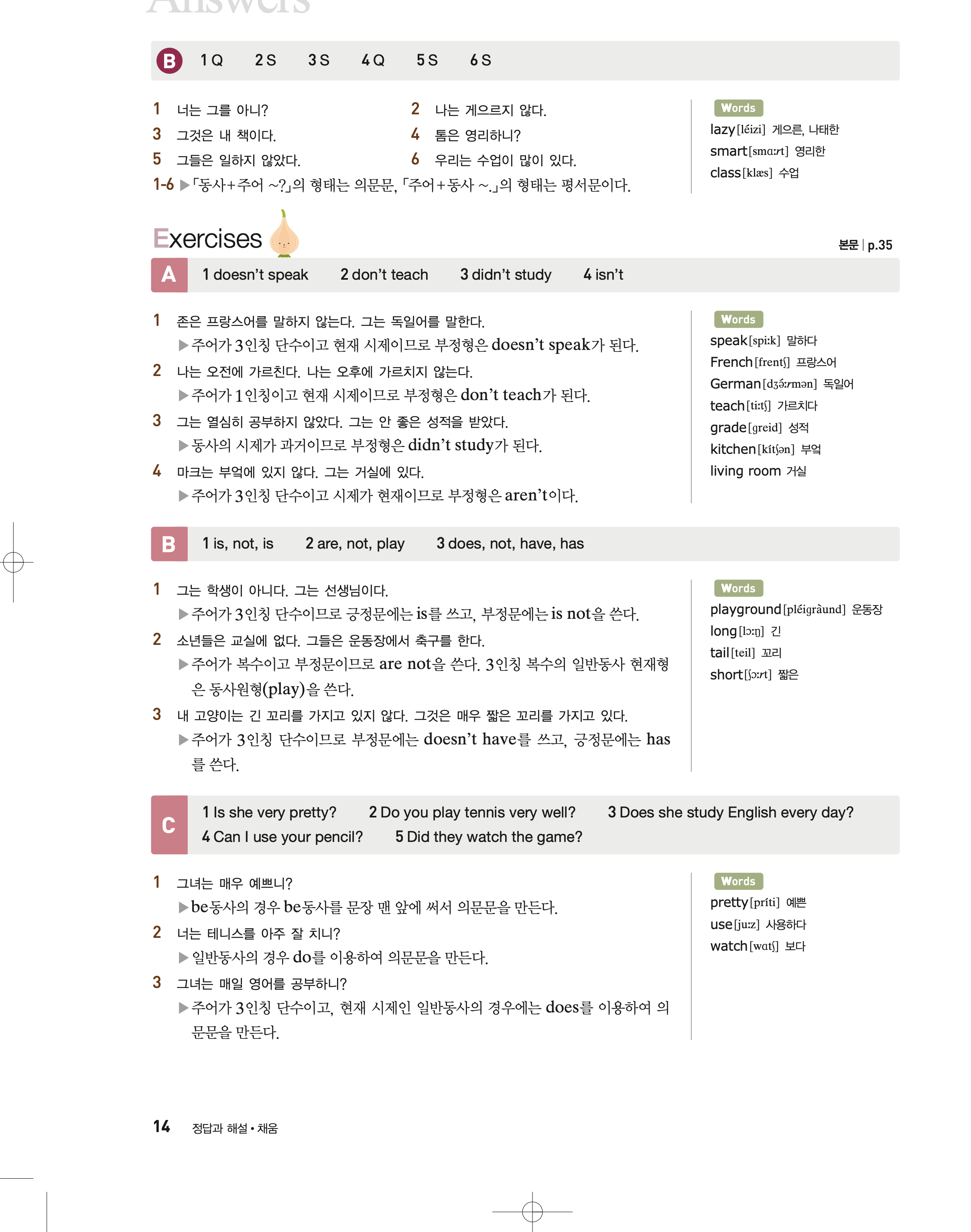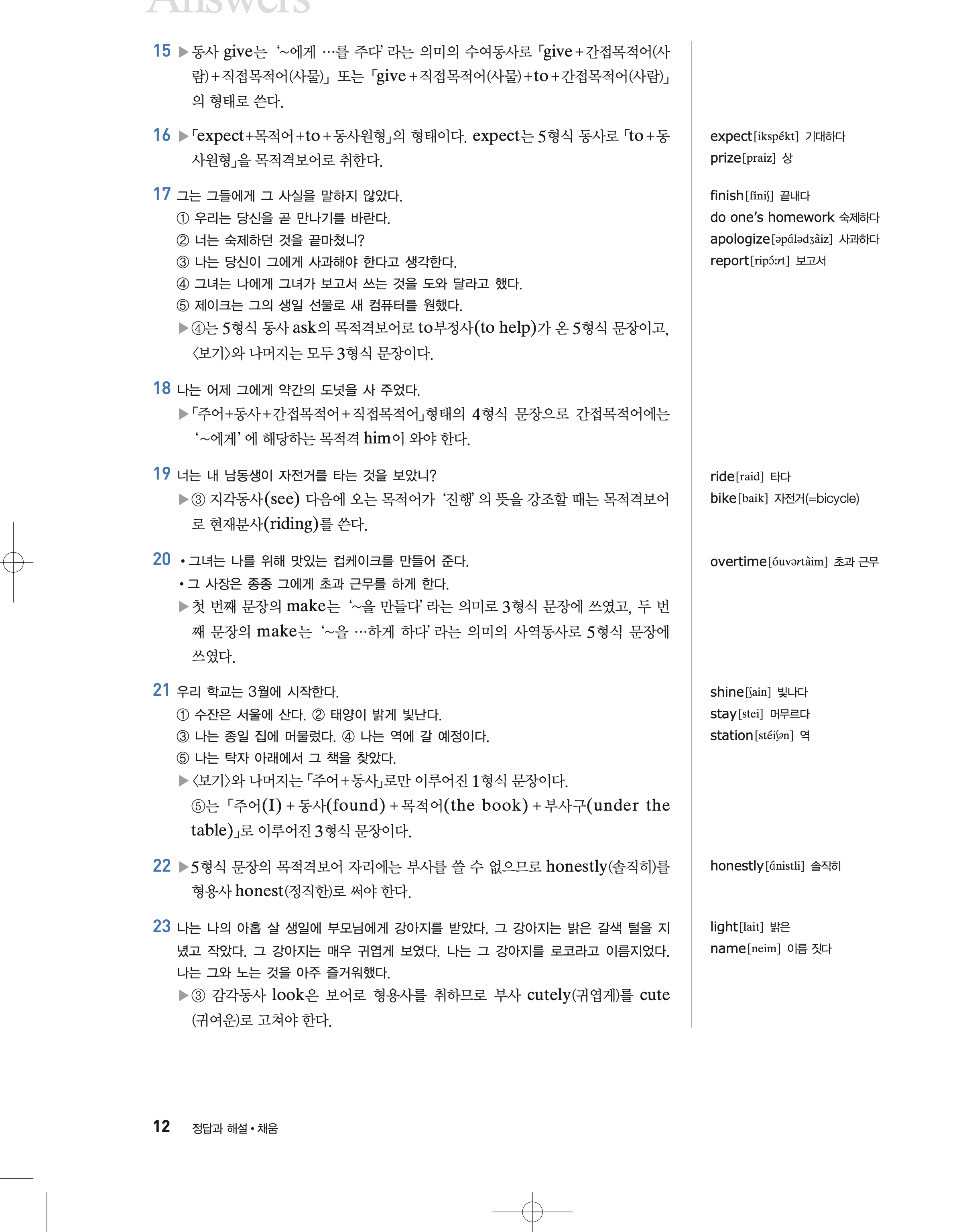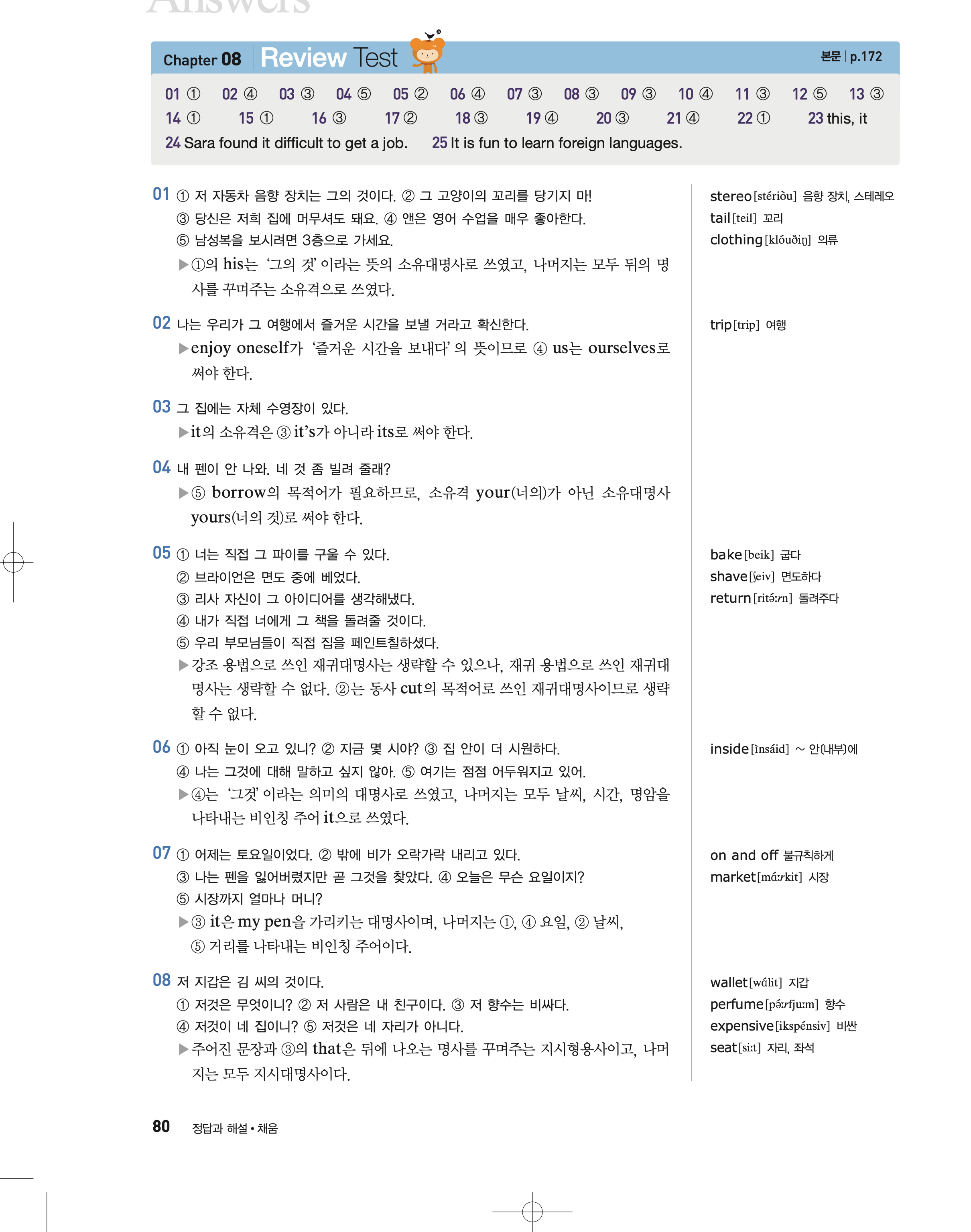 진짜이해잘되는중등영문법 레벨1 답지 해설 바로보는 사진답지 빠른답지 모바일최적화