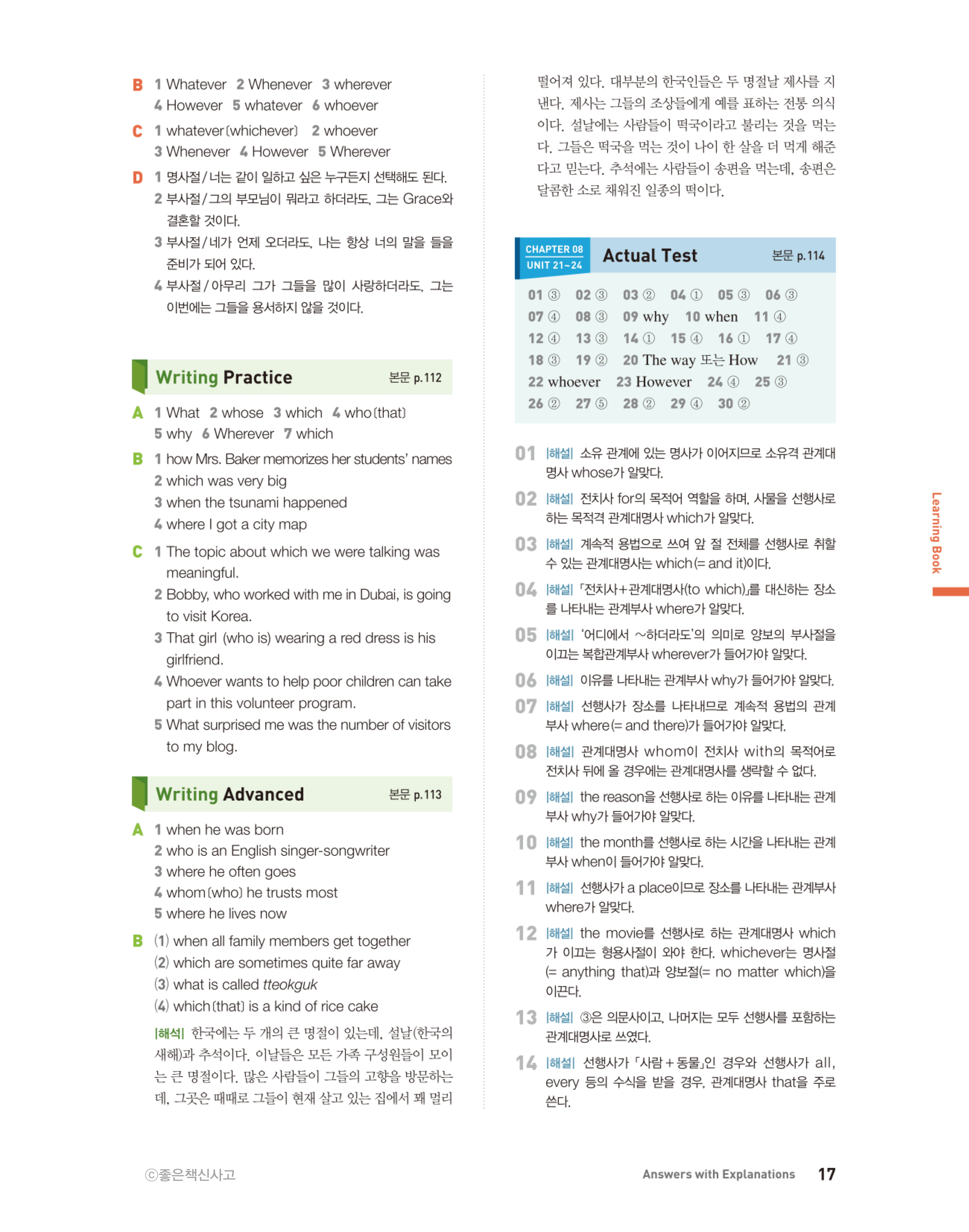 그래머와이즈 레벨3 답지 해설 바로보는 사진답지 빠른답지 모바일최적화