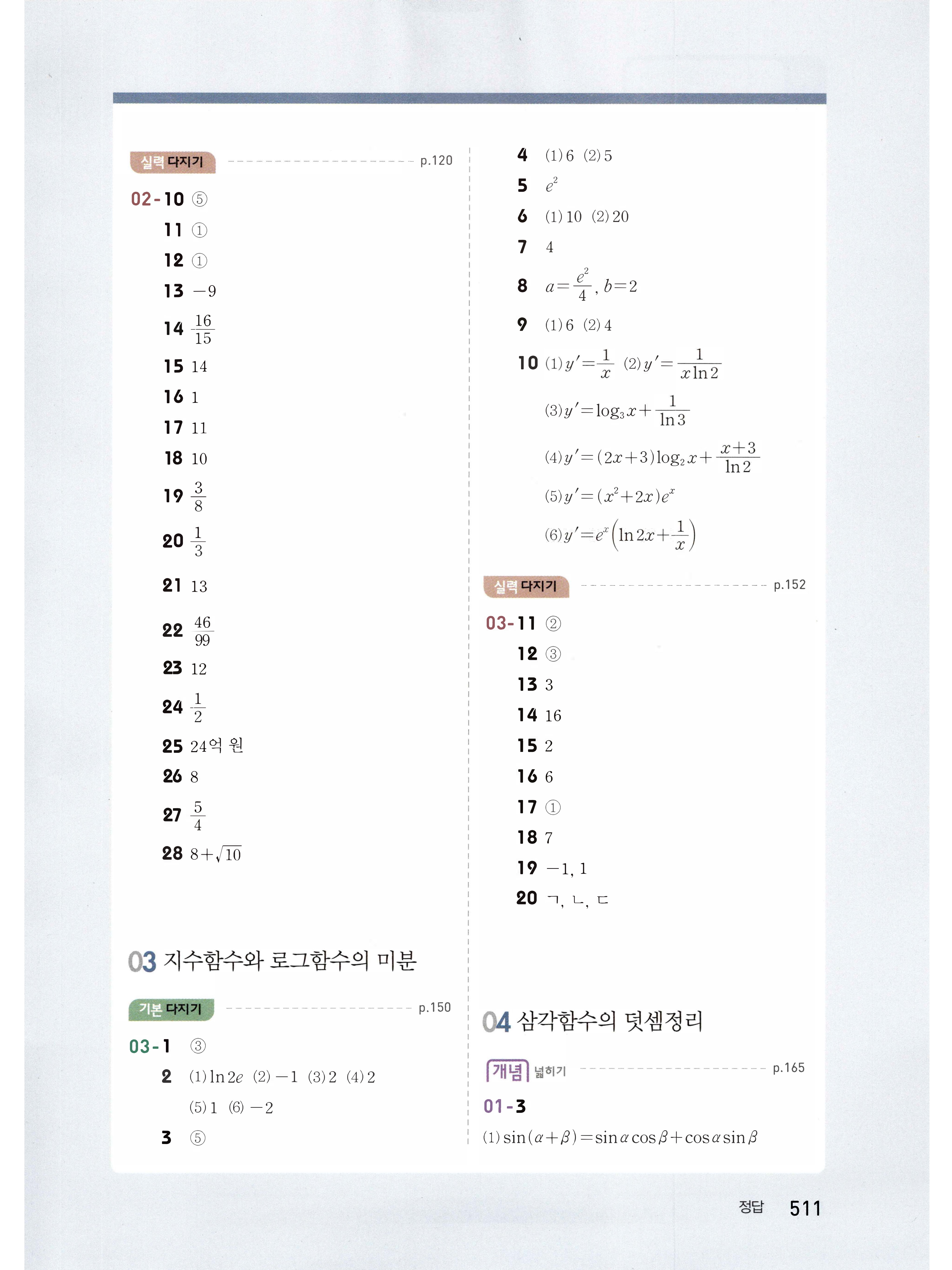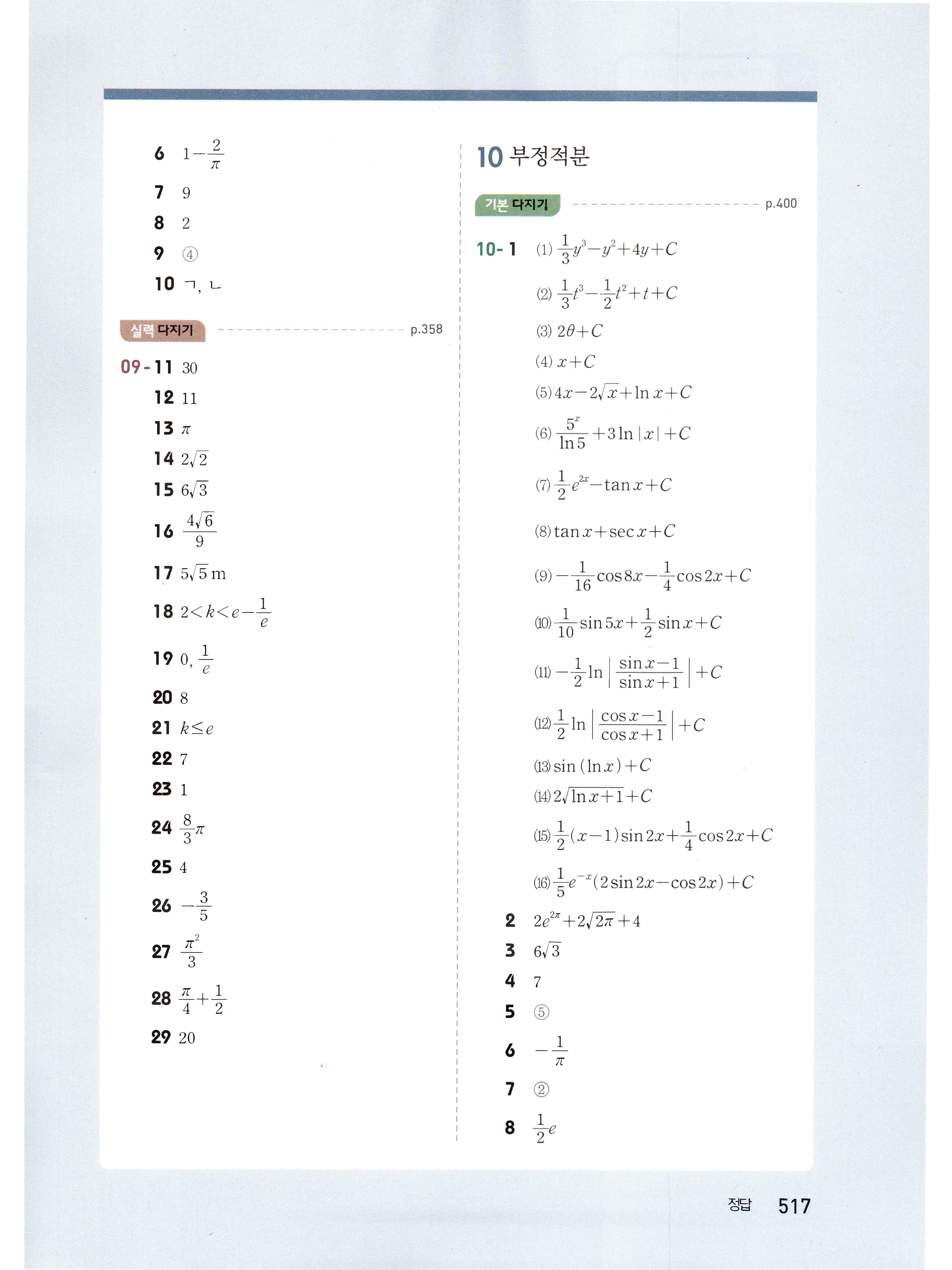 신수학의바이블 미적분 답지 해설 바로보는 사진답지 빠른답지 모바일최적화