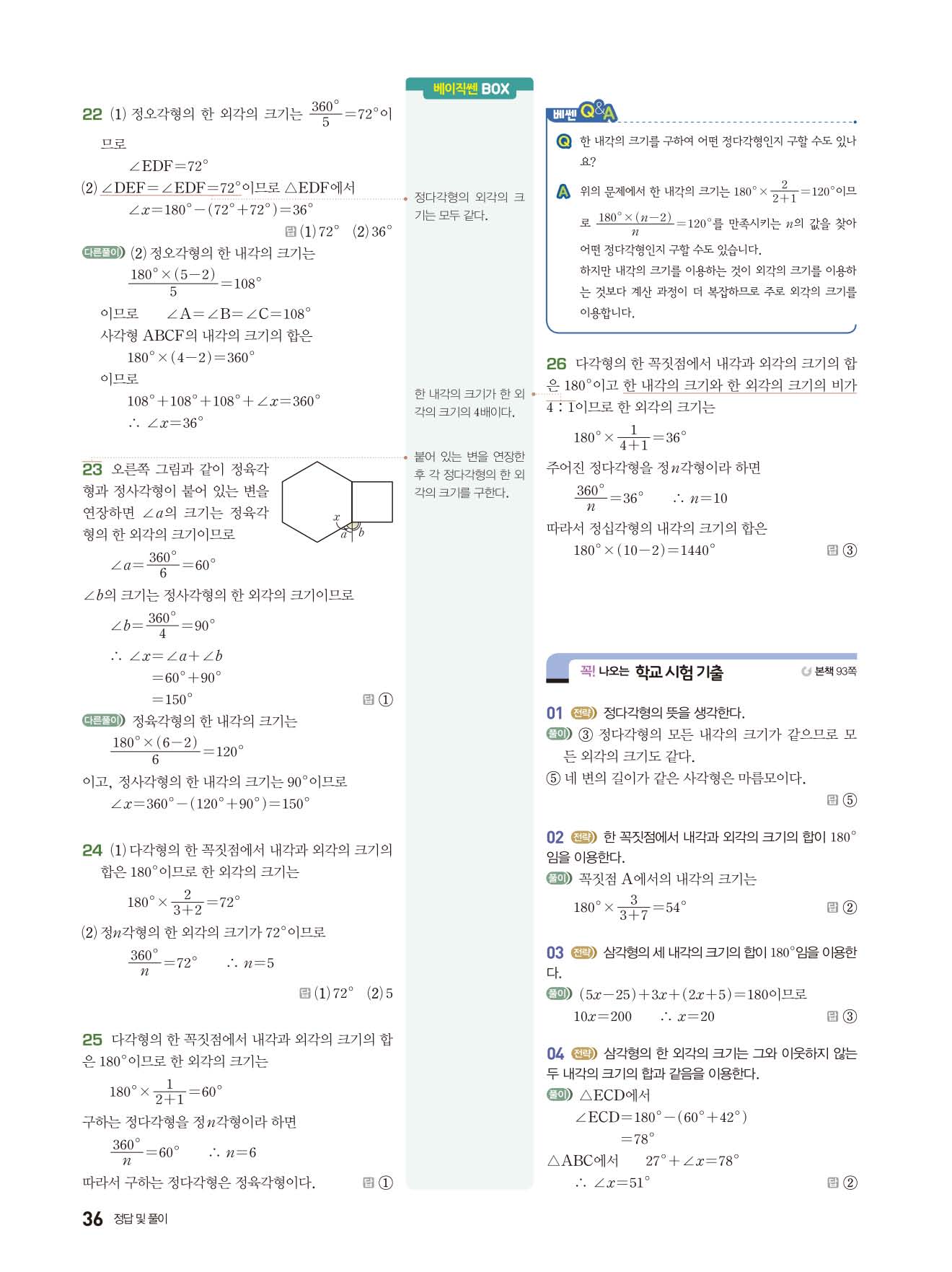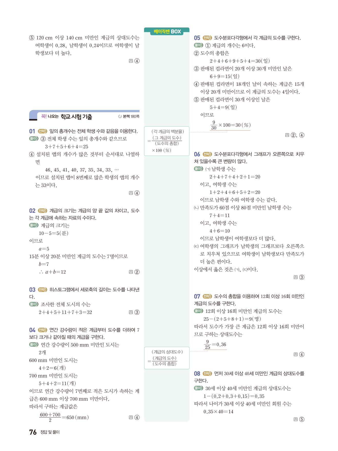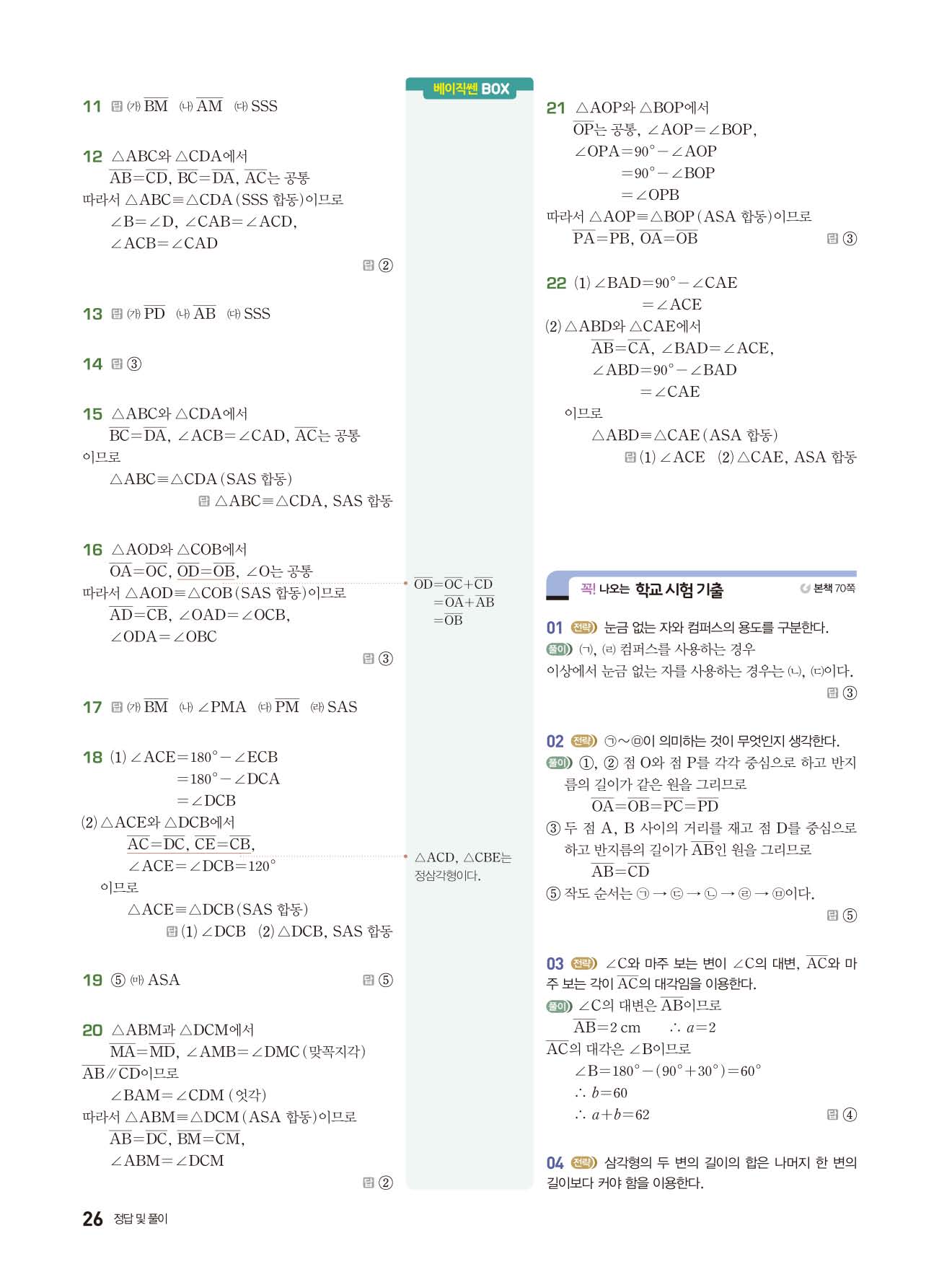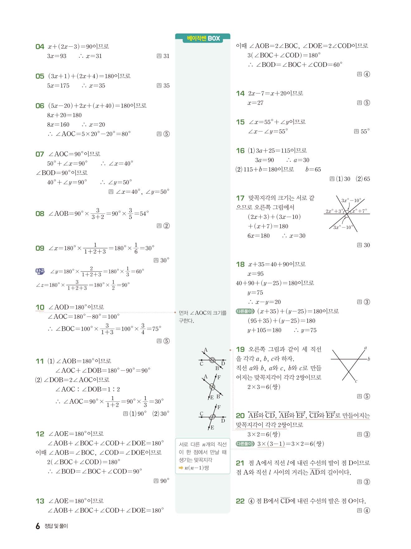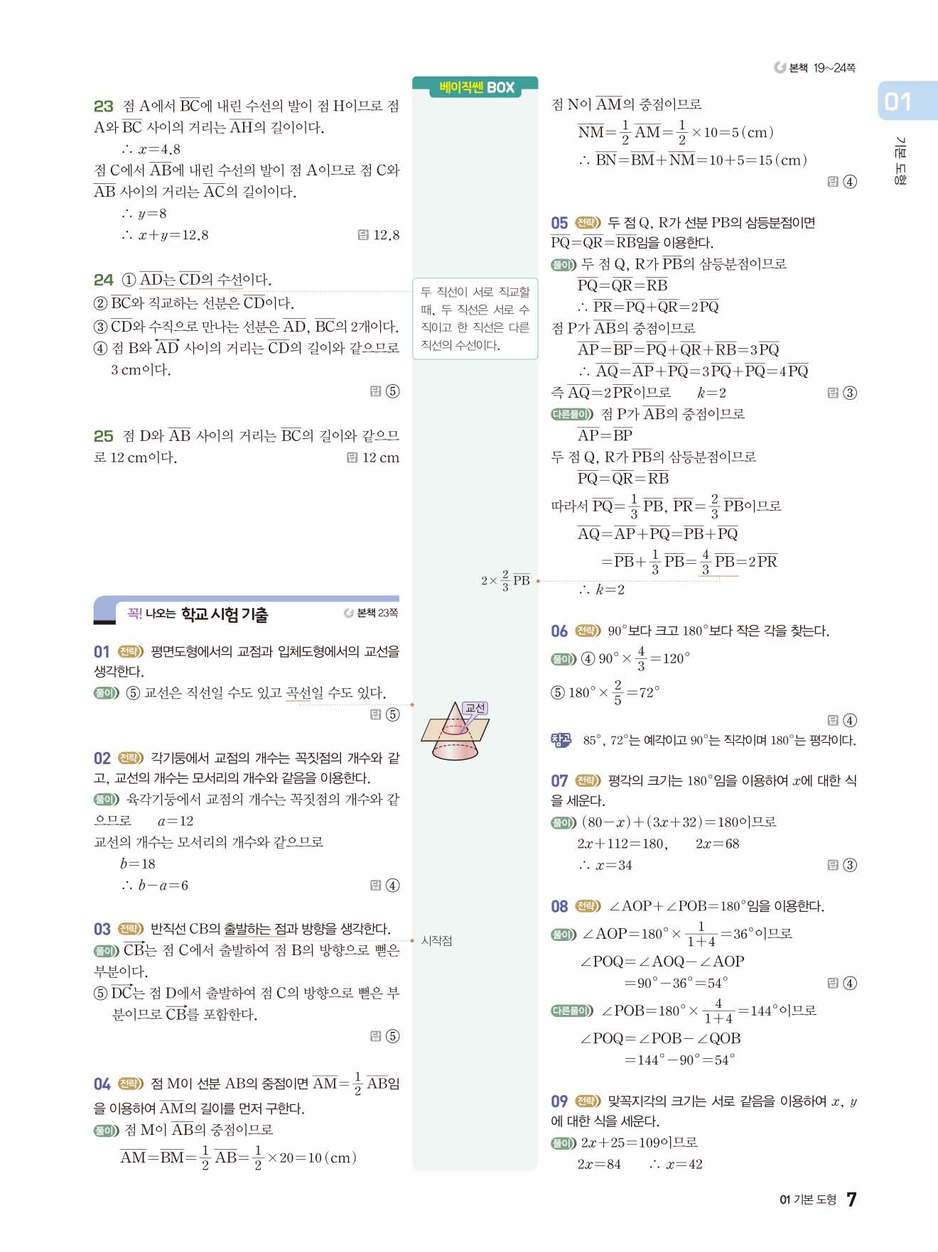 베이직쎈 중1하 답지 해설지 사진답지 빠른답지 모바일최적화