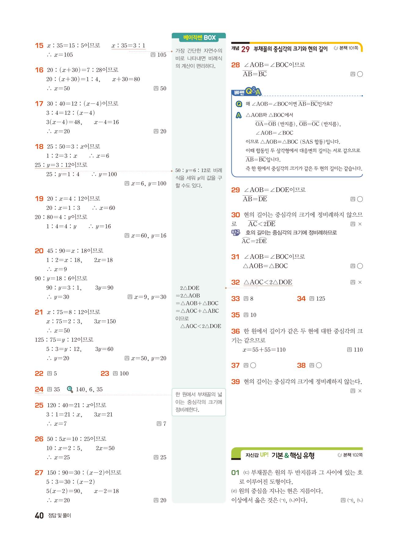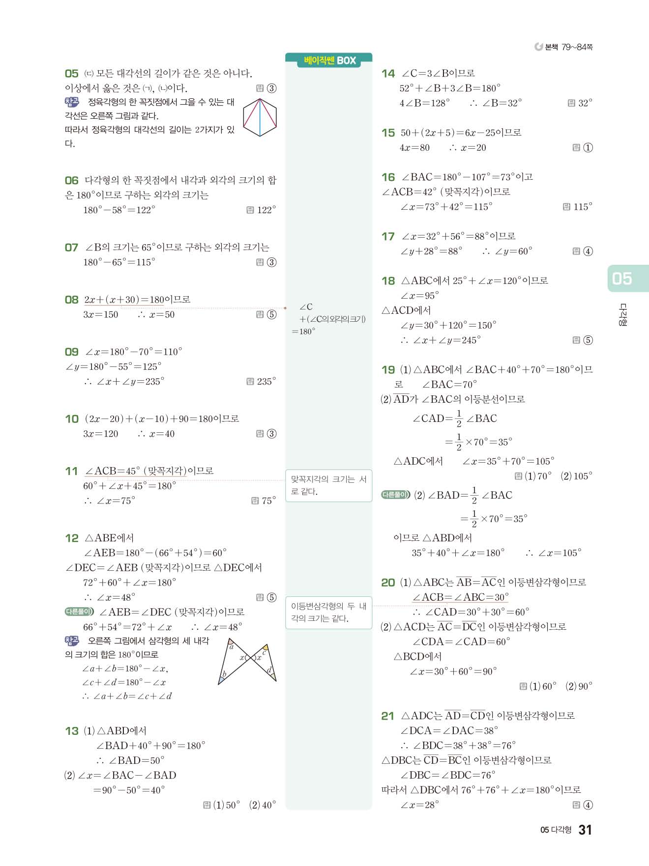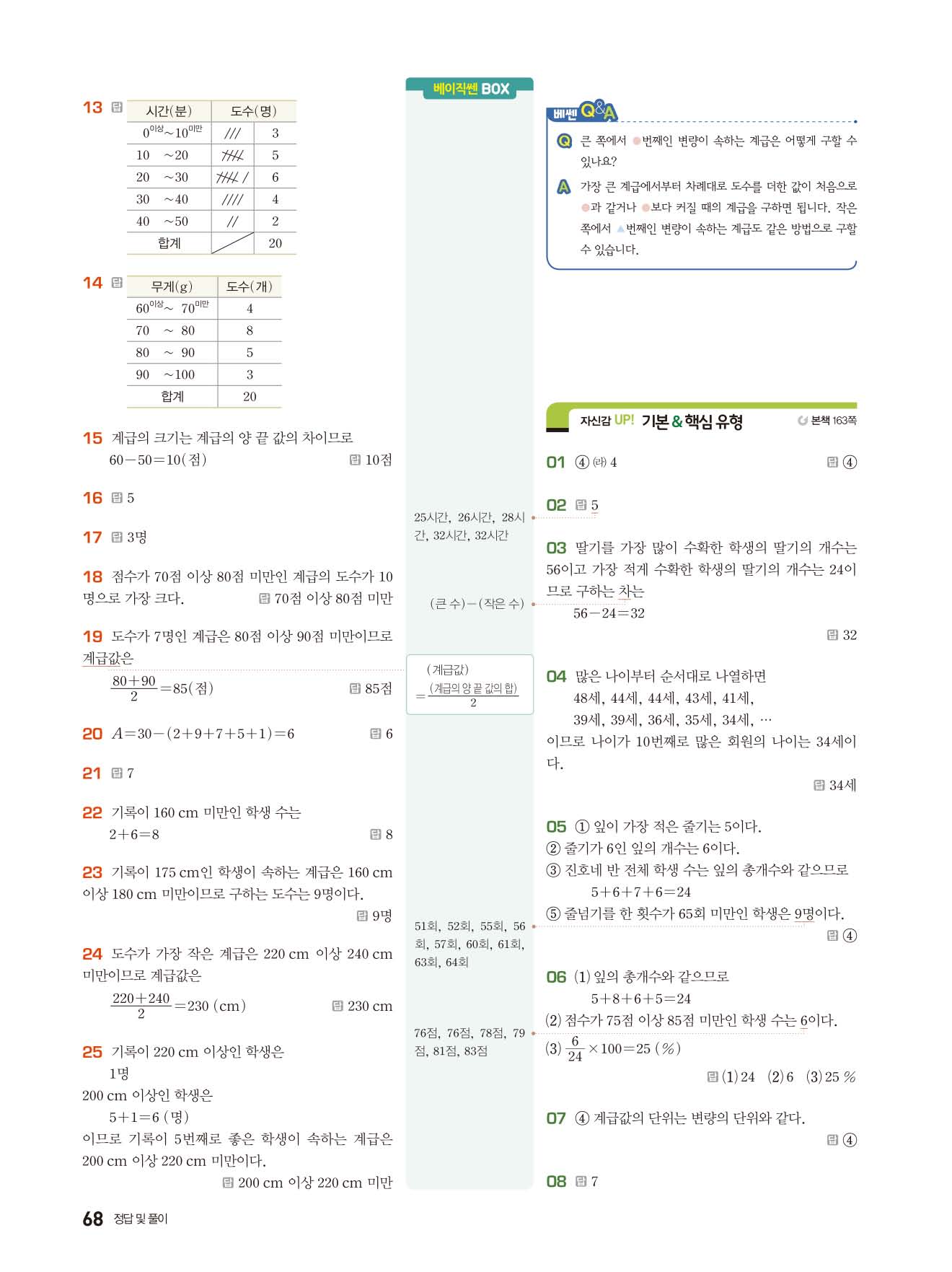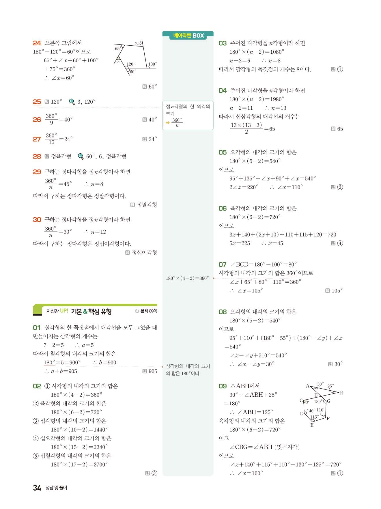 베이직쎈 중1하 답지 해설지 사진답지 빠른답지 모바일최적화