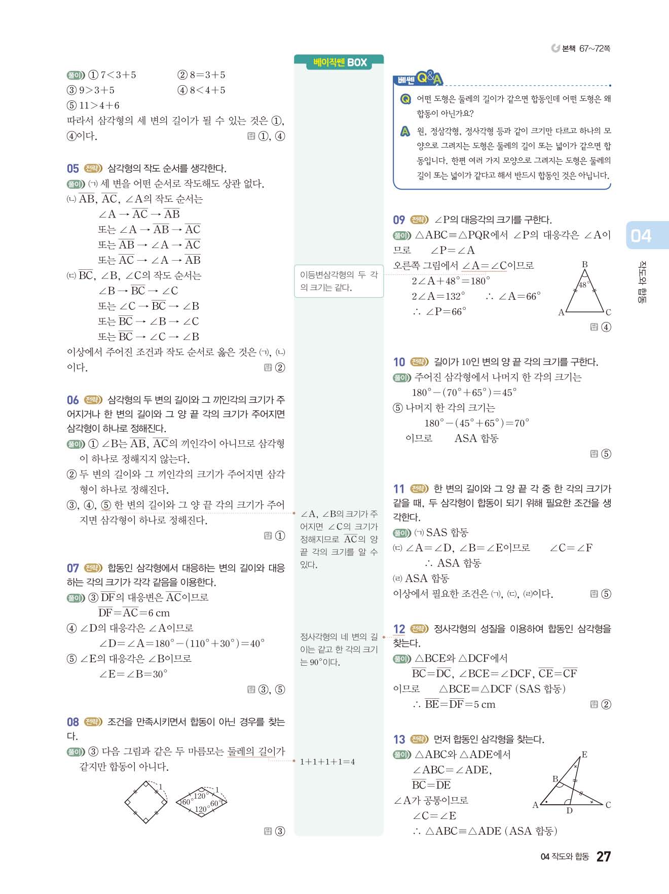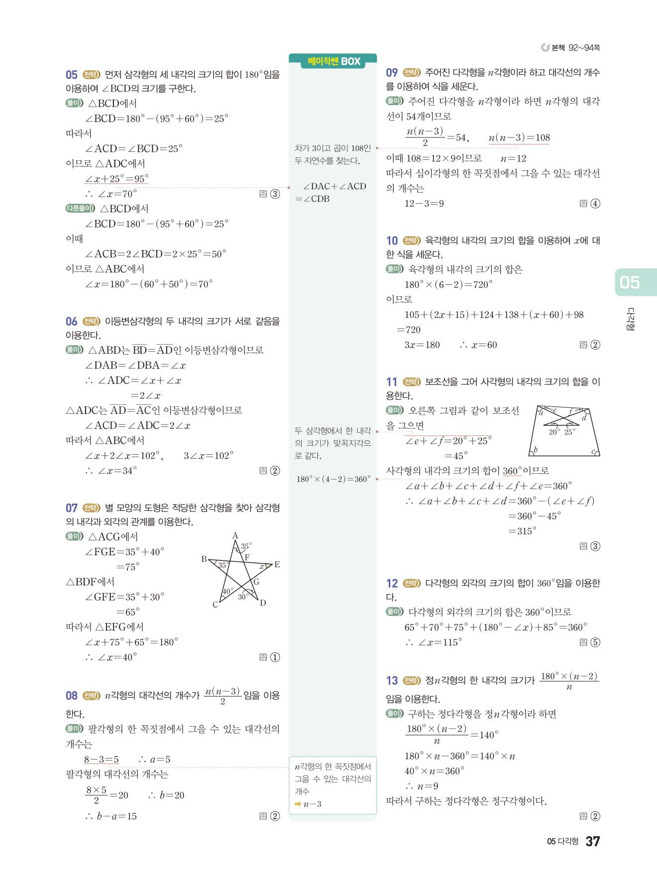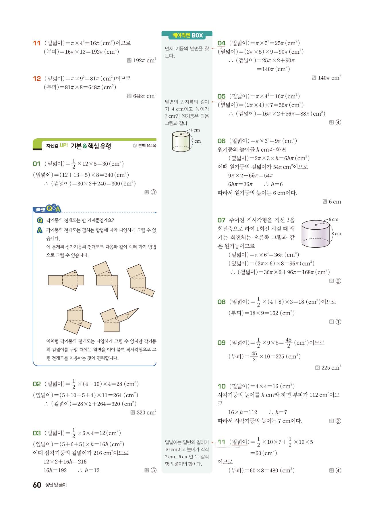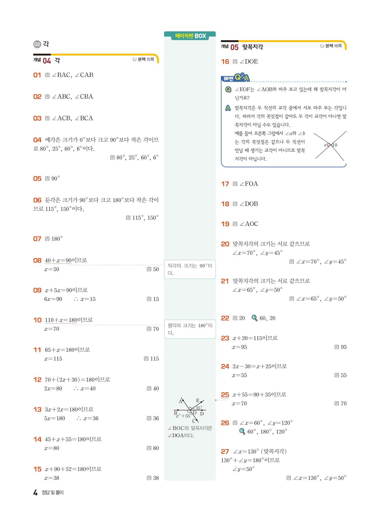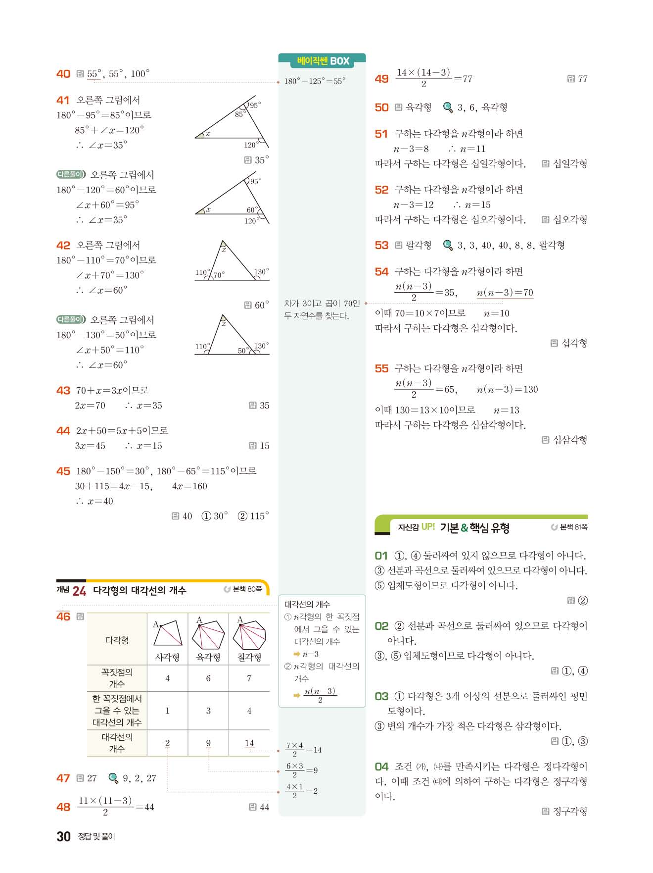 베이직쎈 중1하 답지 해설지 사진답지 빠른답지 모바일최적화
