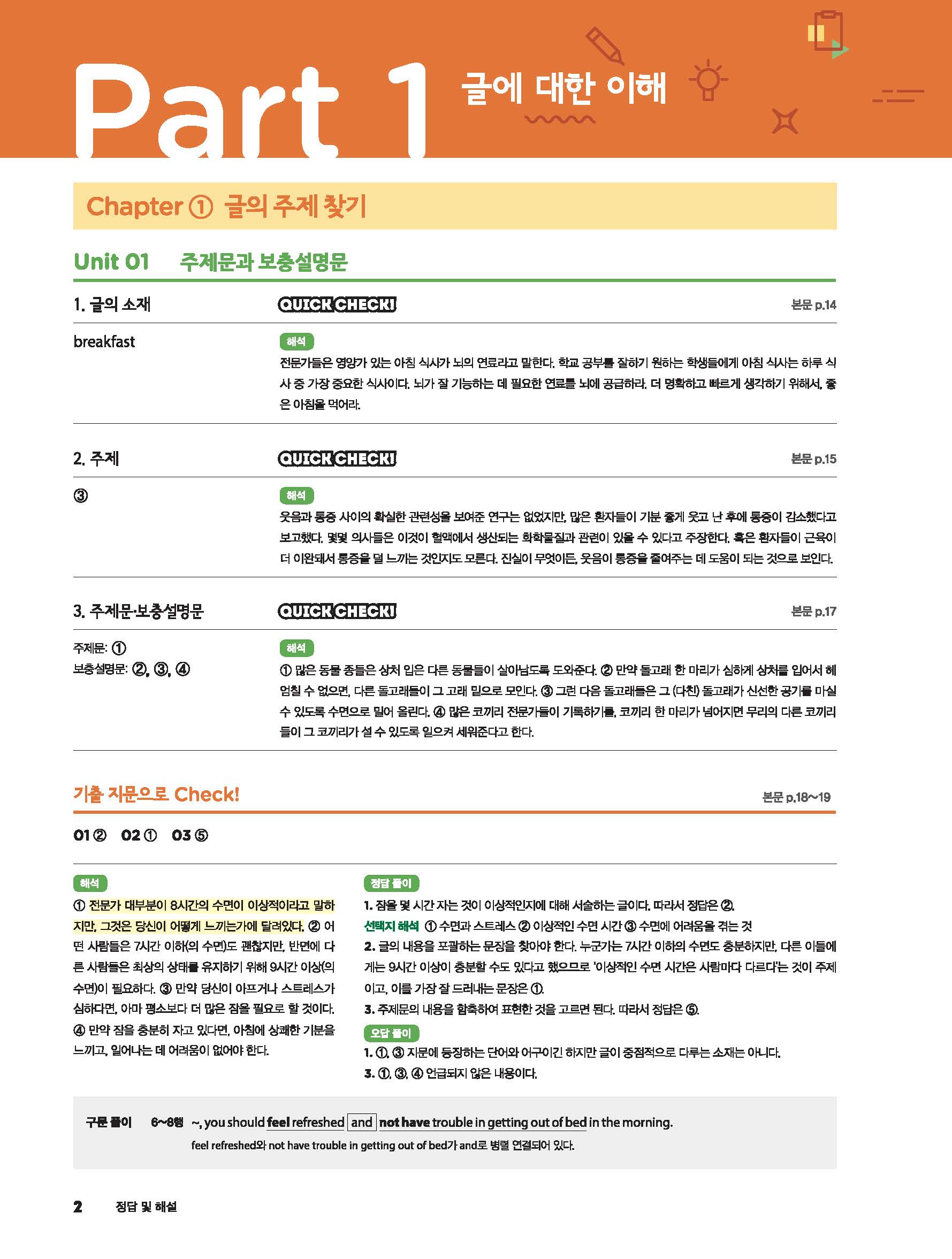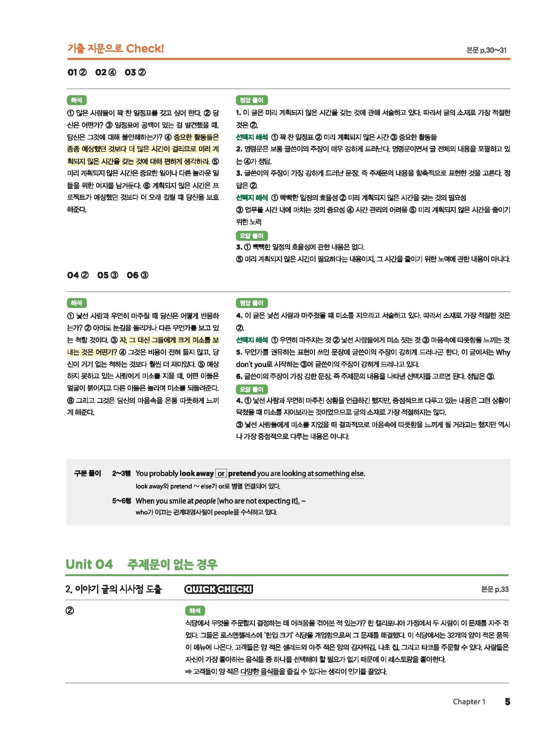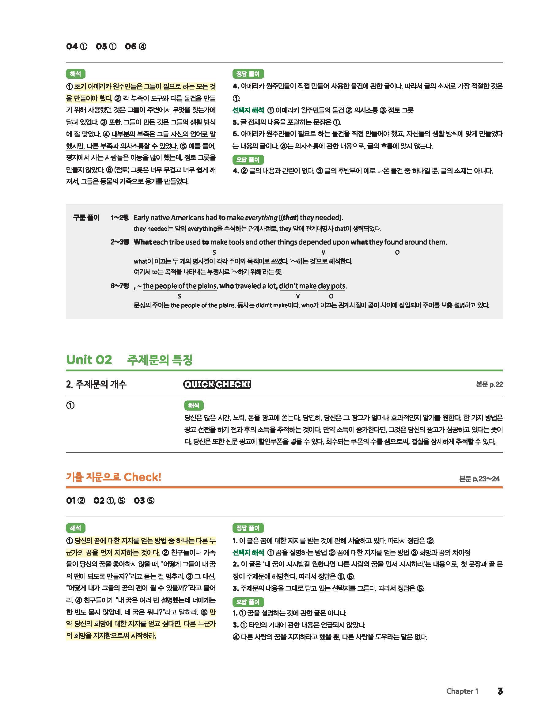 첫단추 베이직 독해편1권 답지 빠른답지 사진답지 모바일최적화