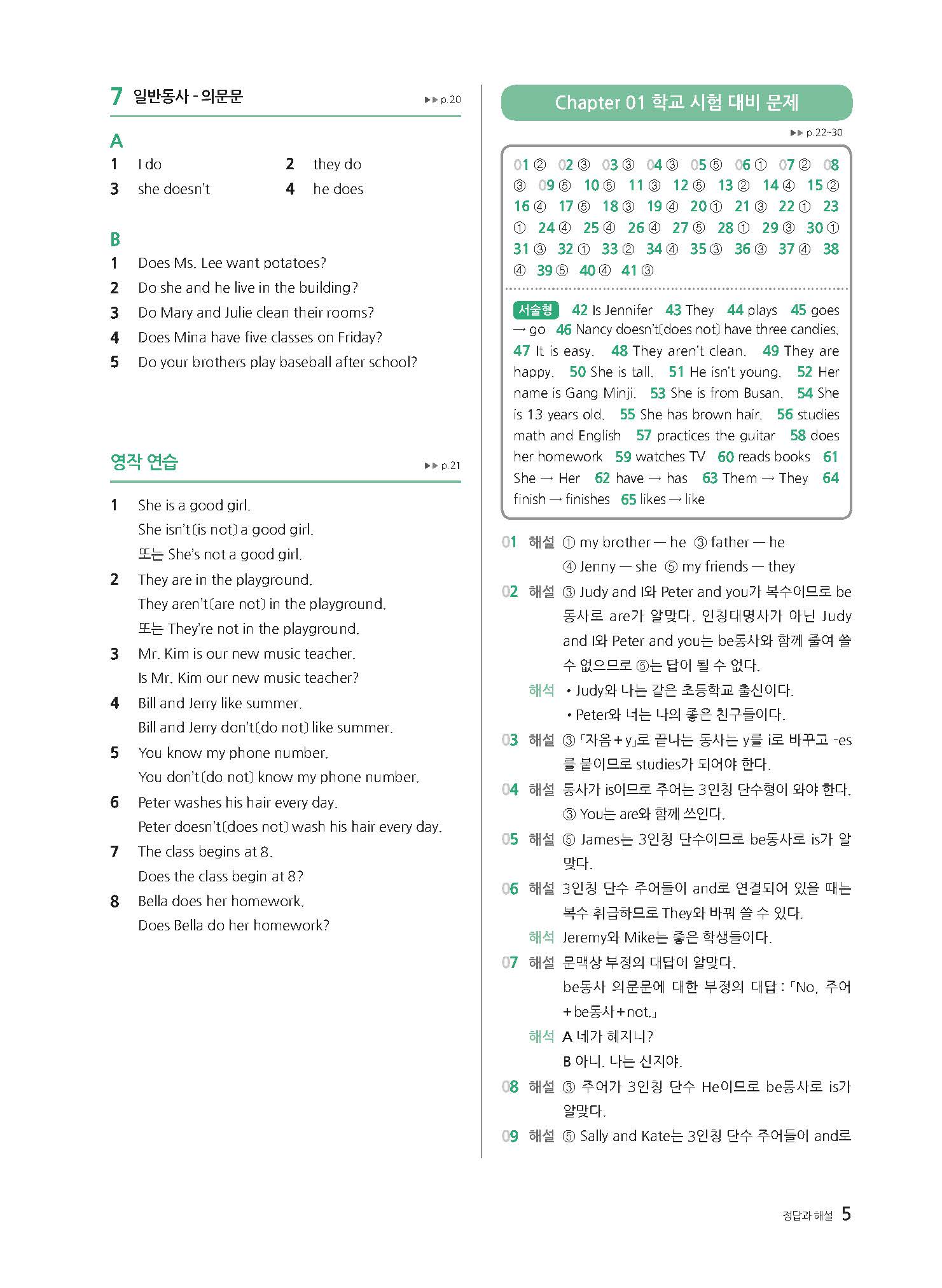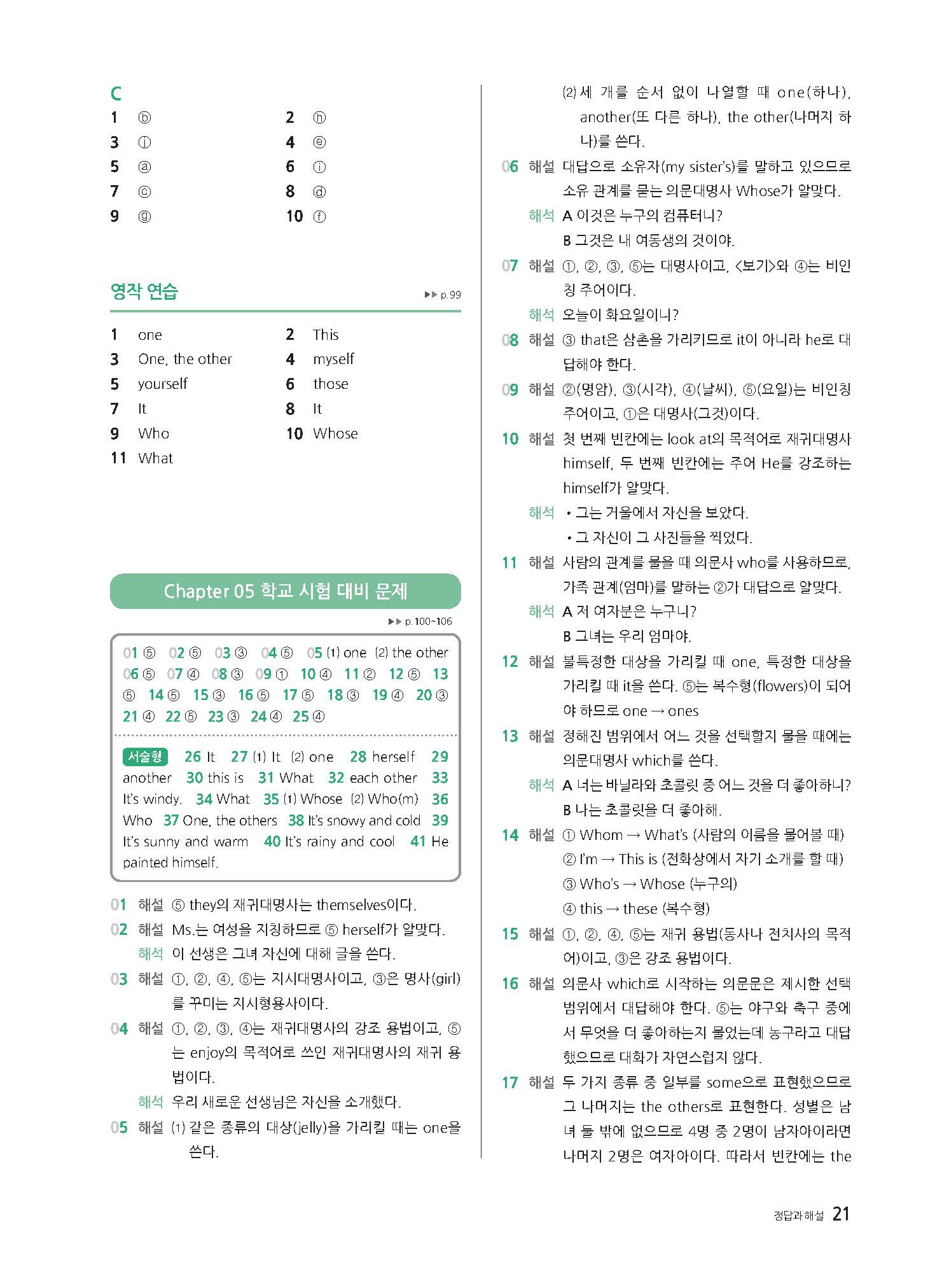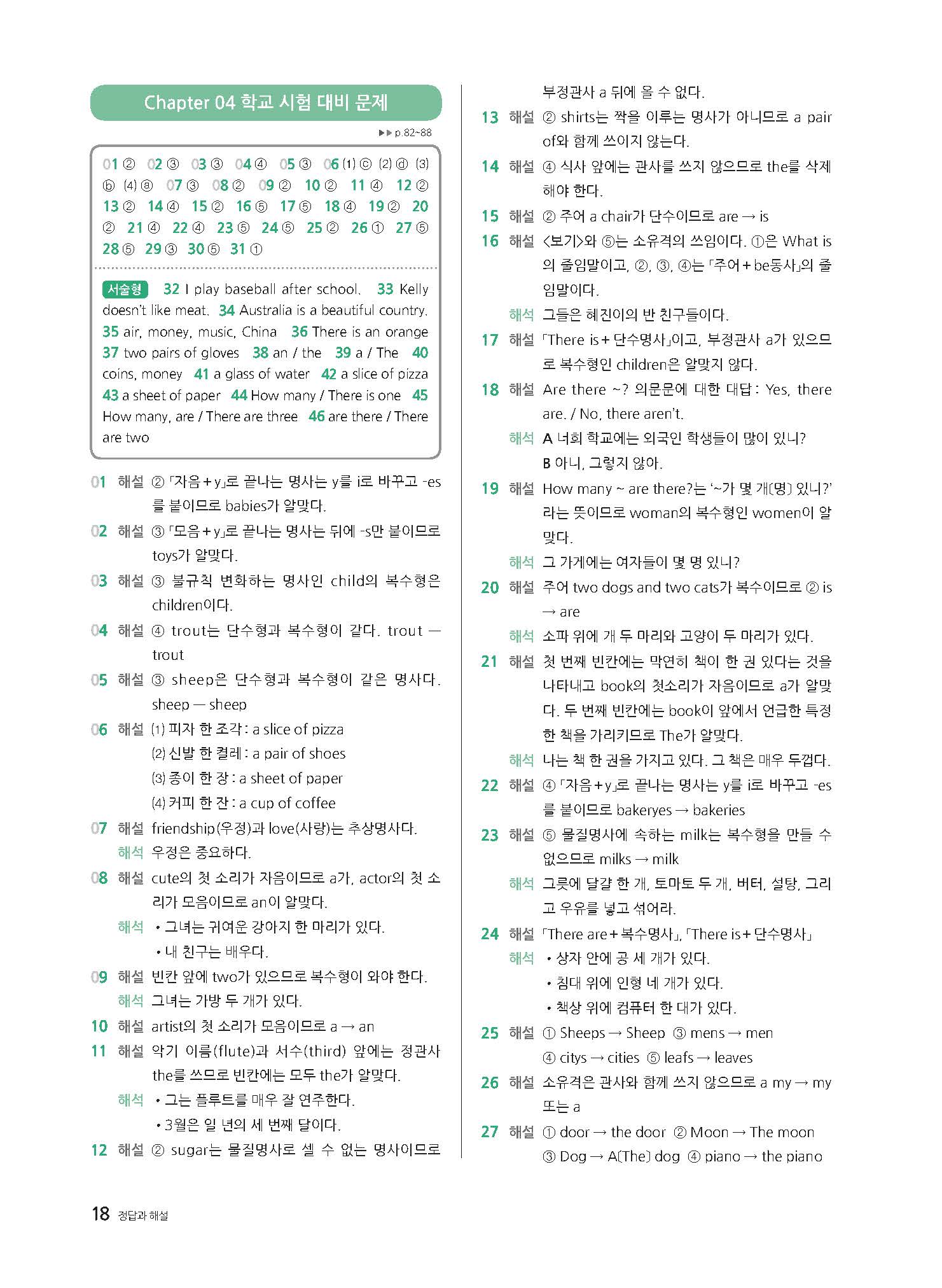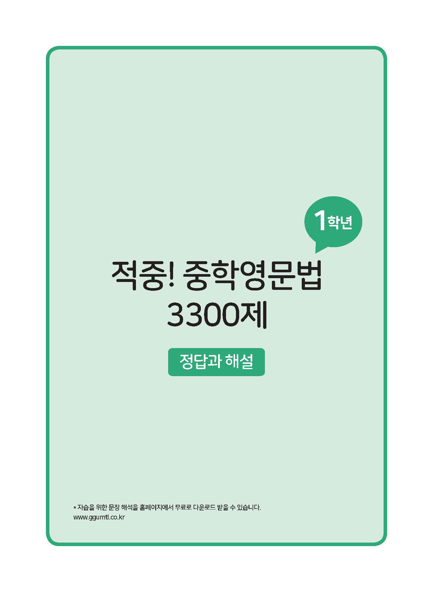 적중 중학영문법 3300제 1권 답지 사진답지 빠른답지 모바일최적화