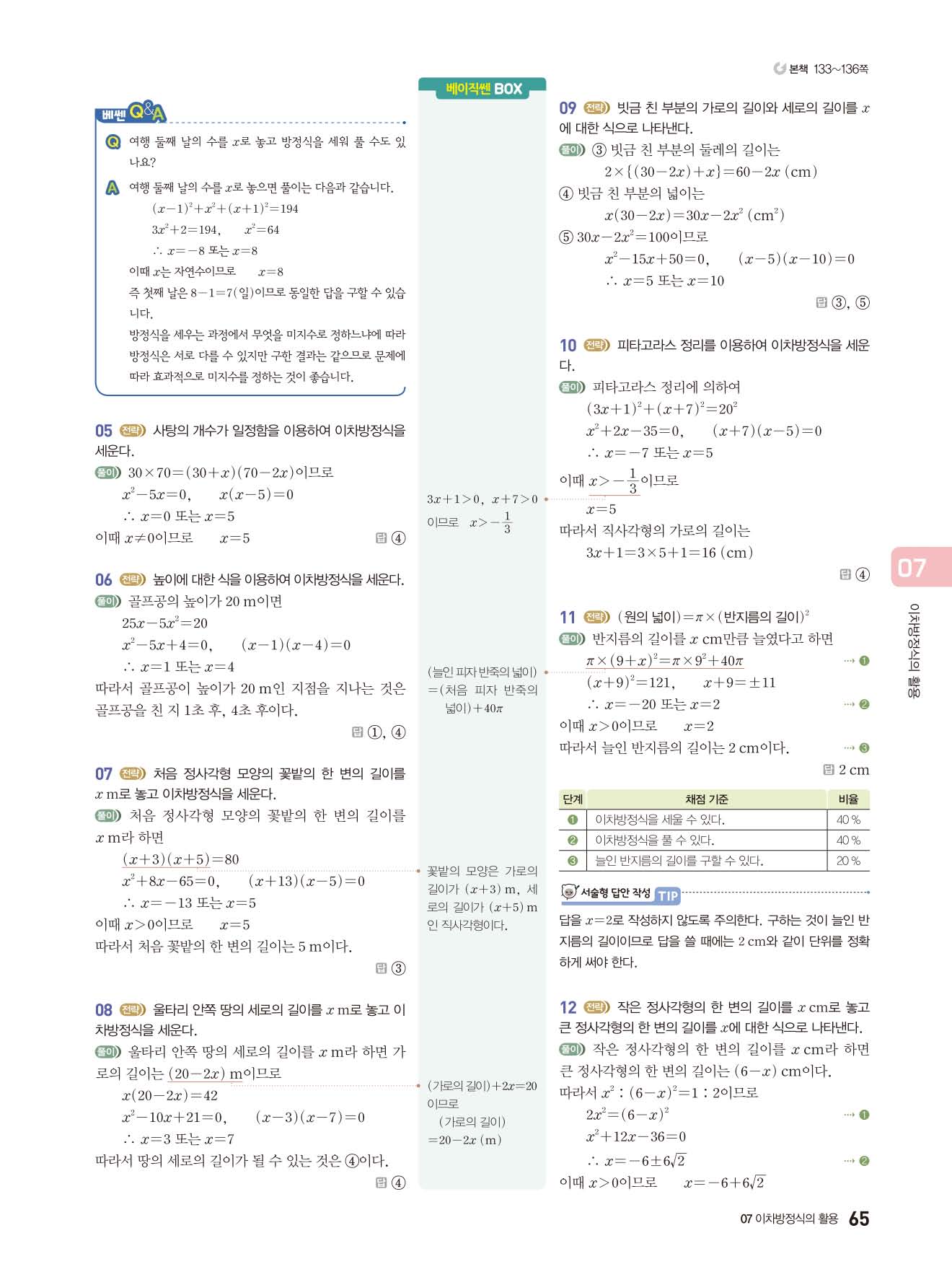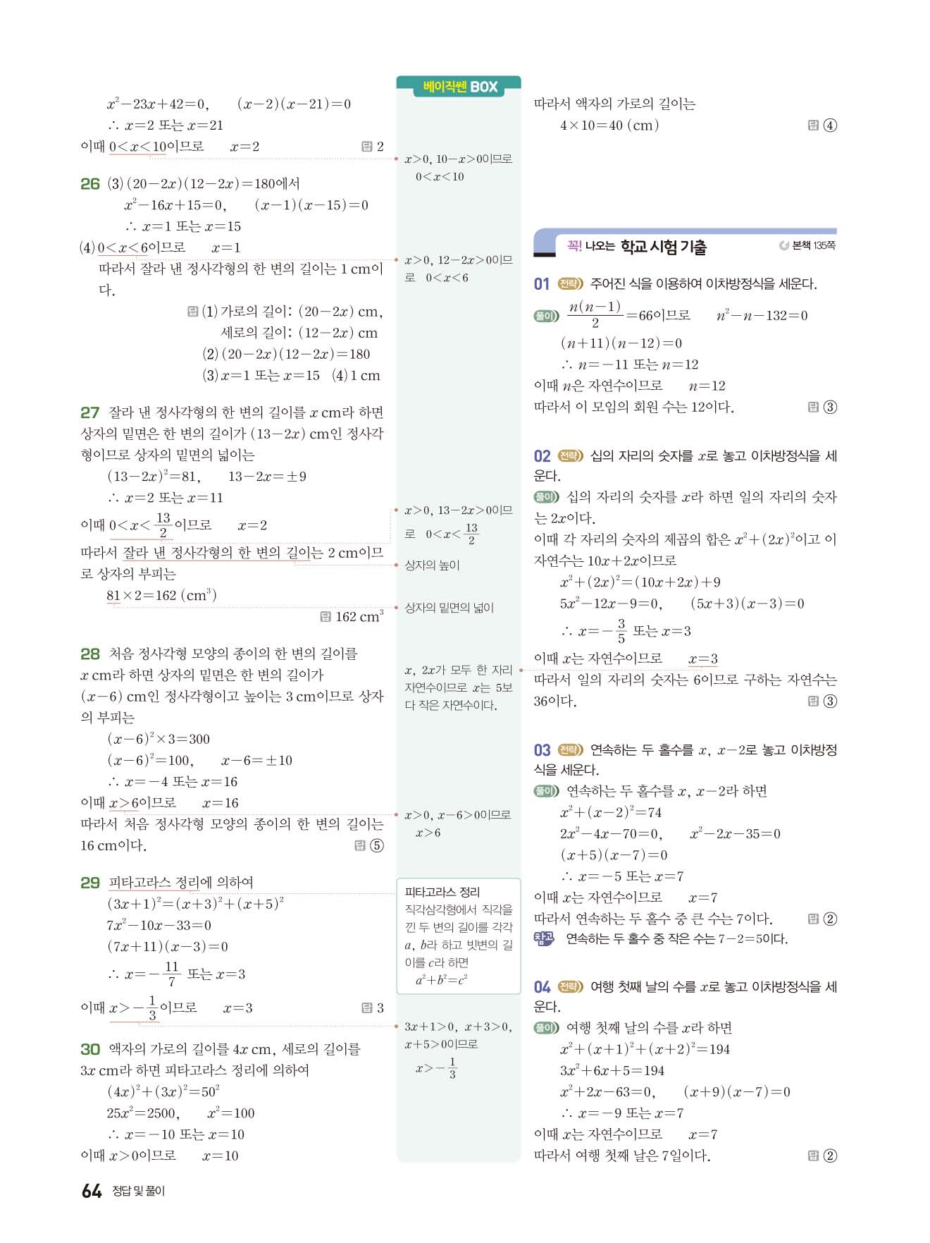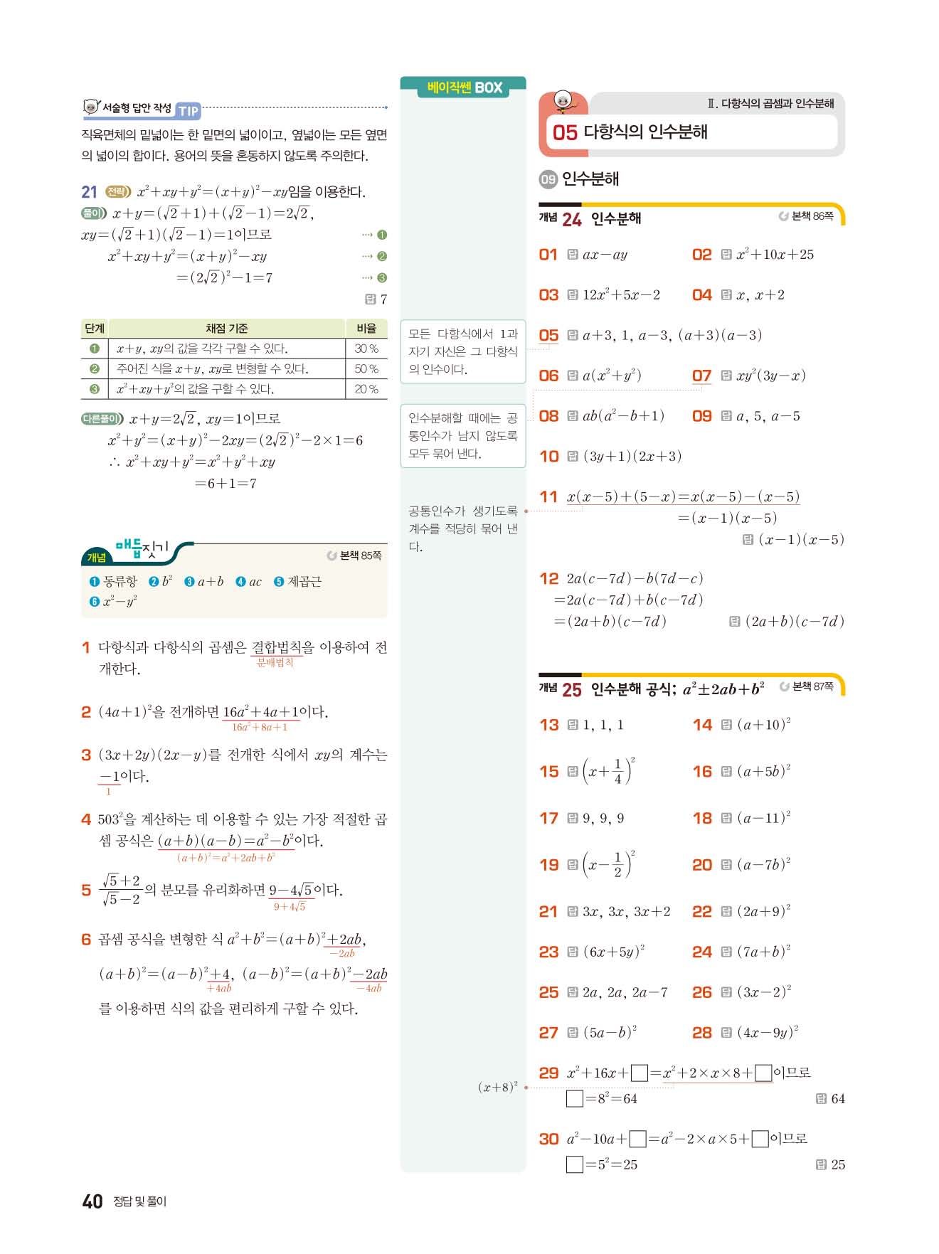 | 천재교육 이준열 중3 수학교과서 답지 | |