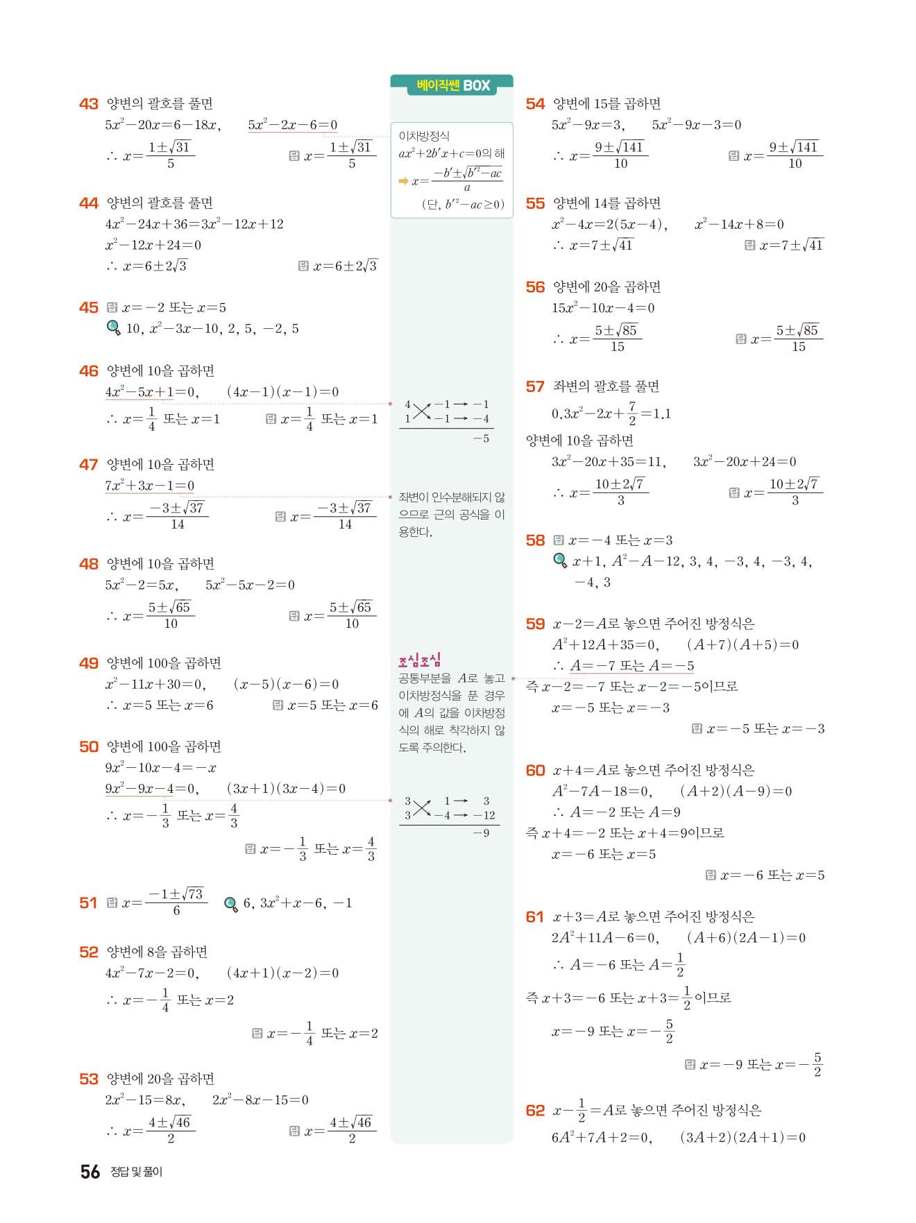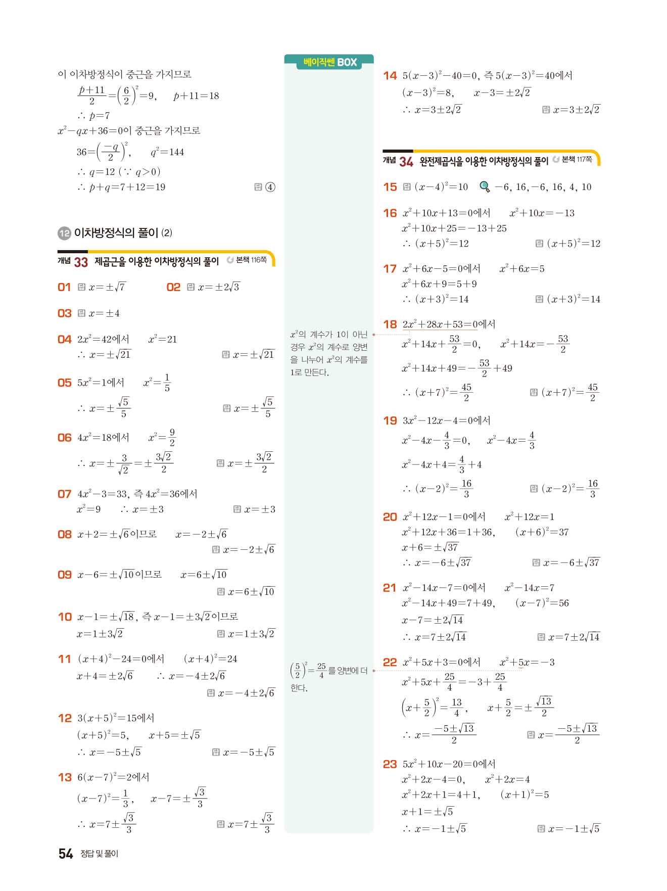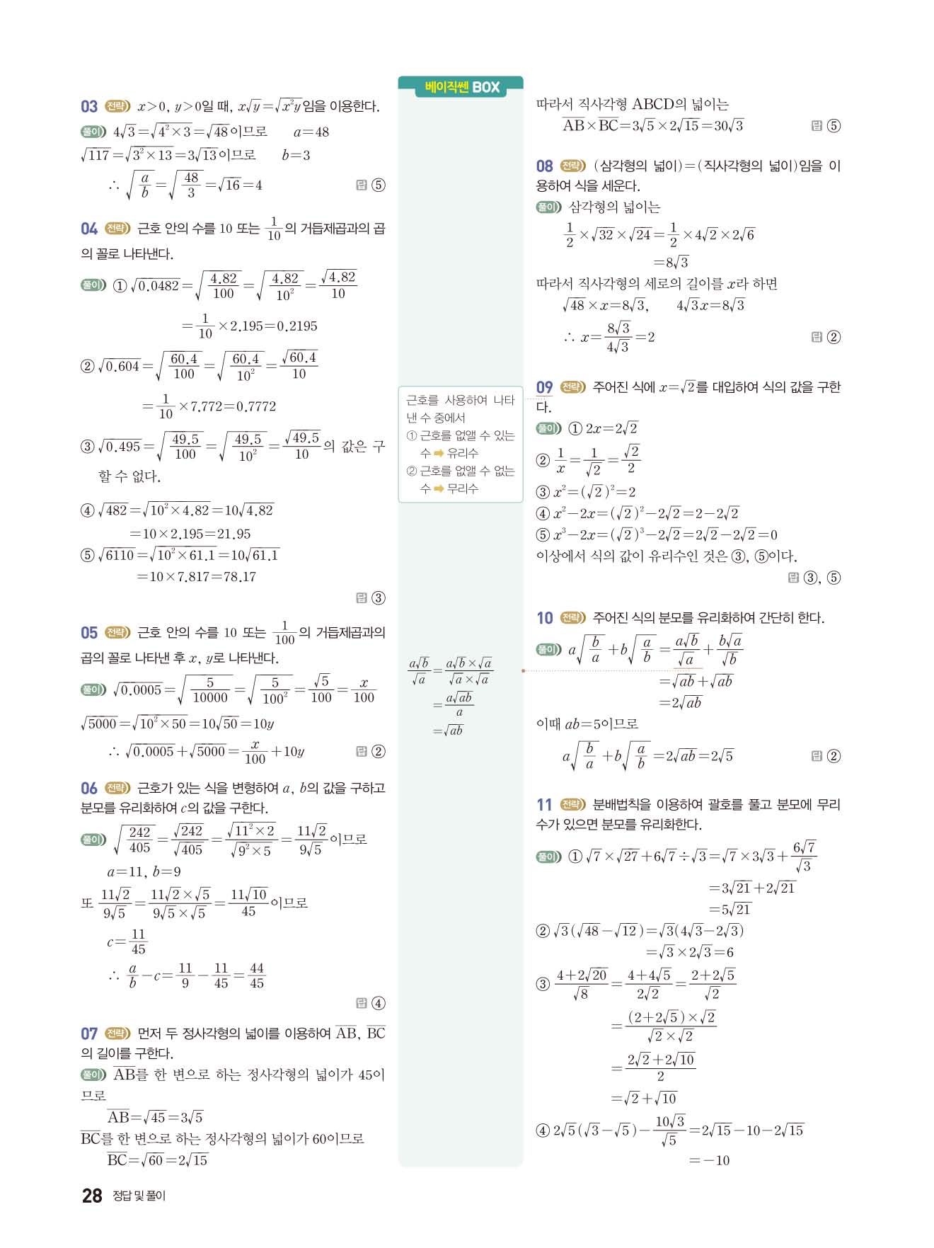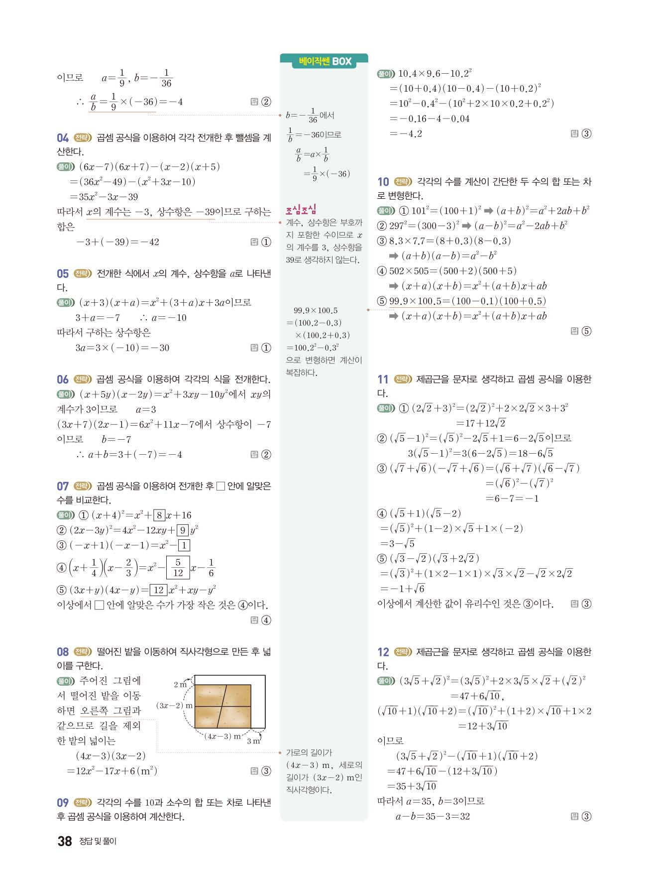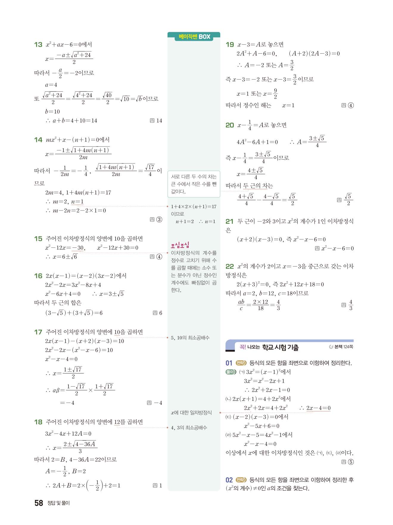 베이직쎈 중3상 답지 해설지 사진답지 빠른답지 모바일최적화