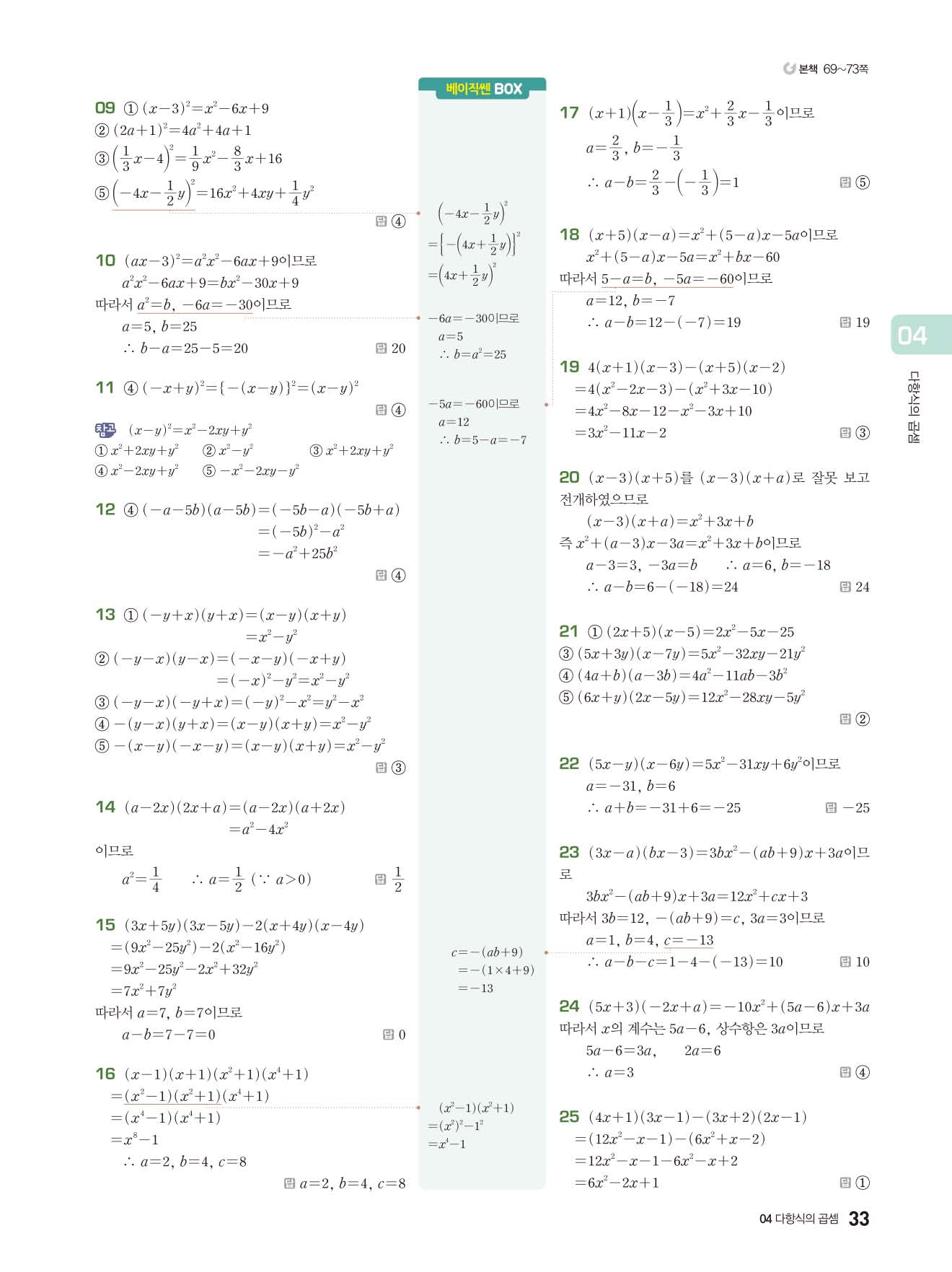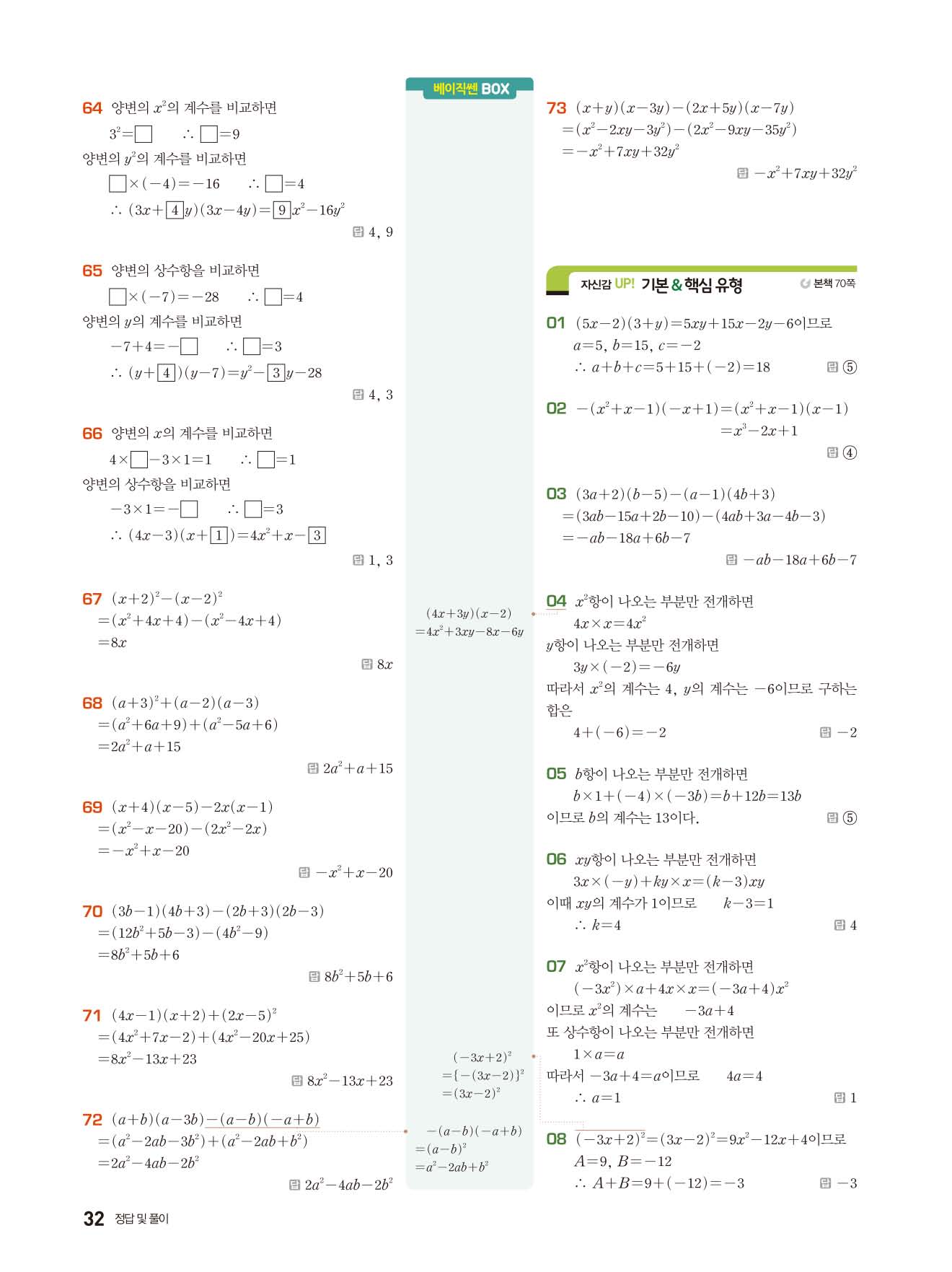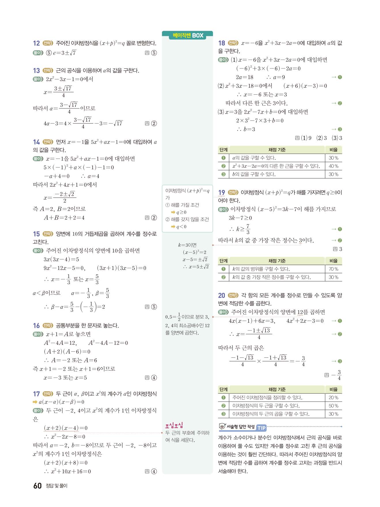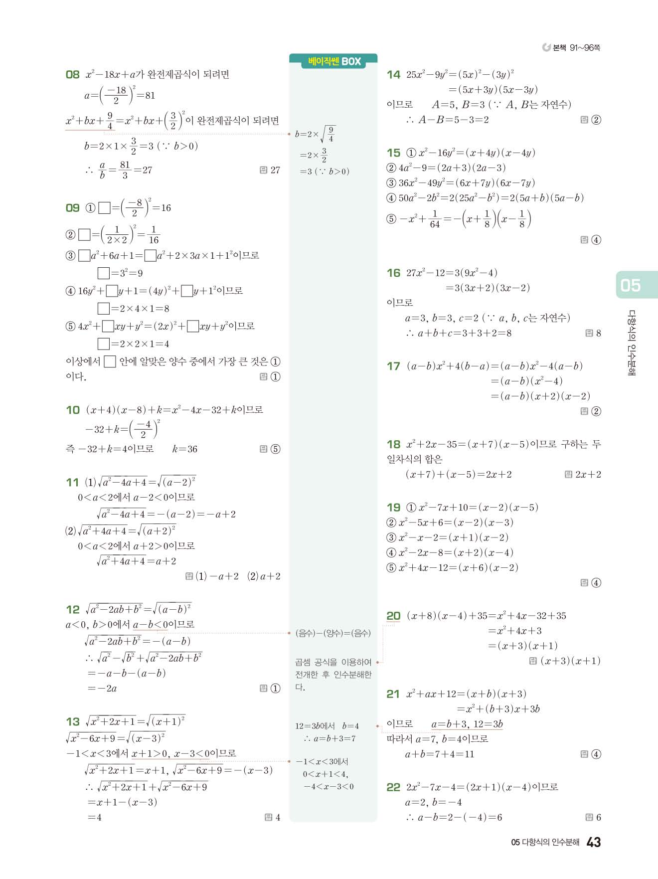 베이직쎈 중3상 답지 해설지 사진답지 빠른답지 모바일최적화