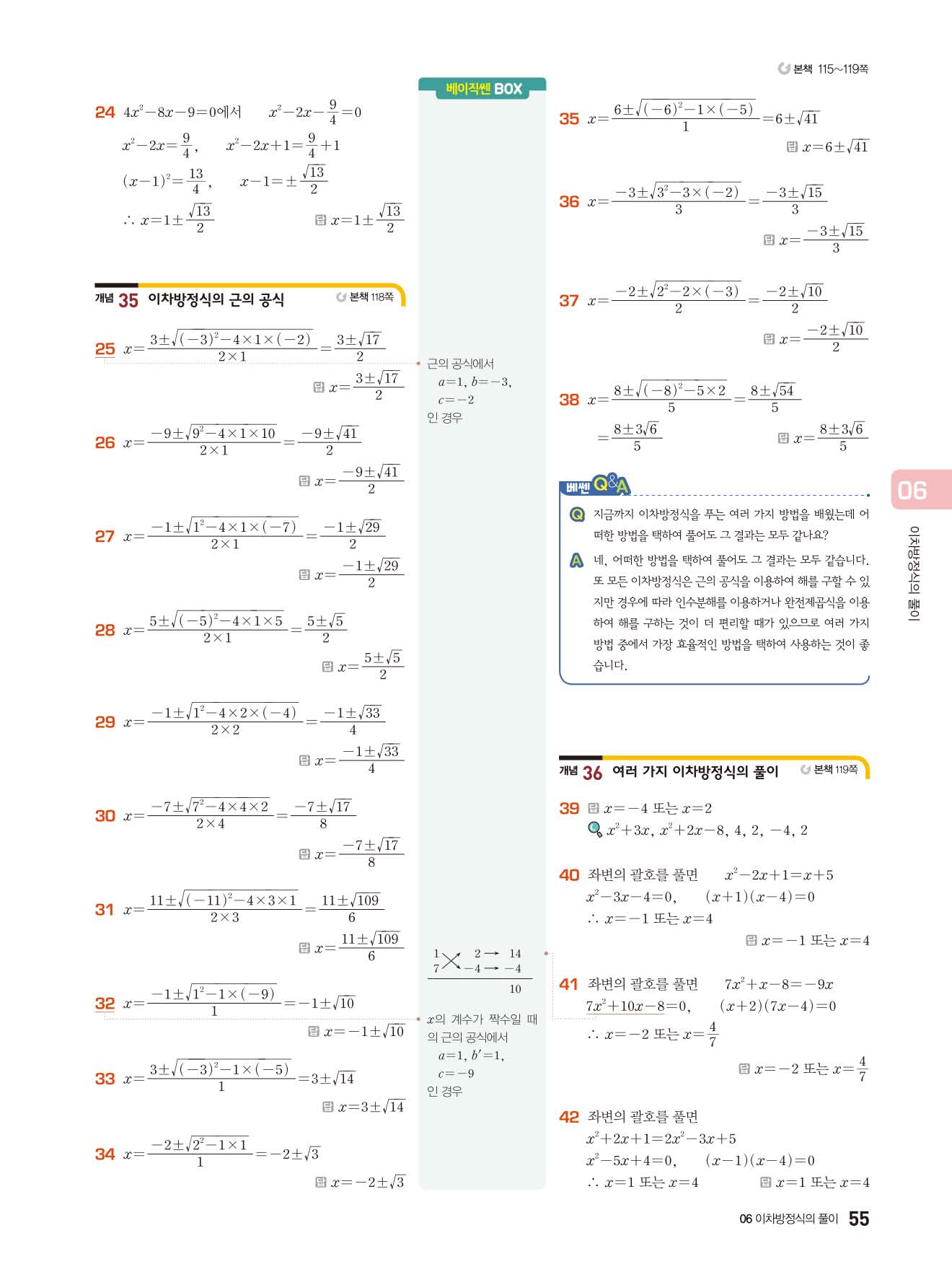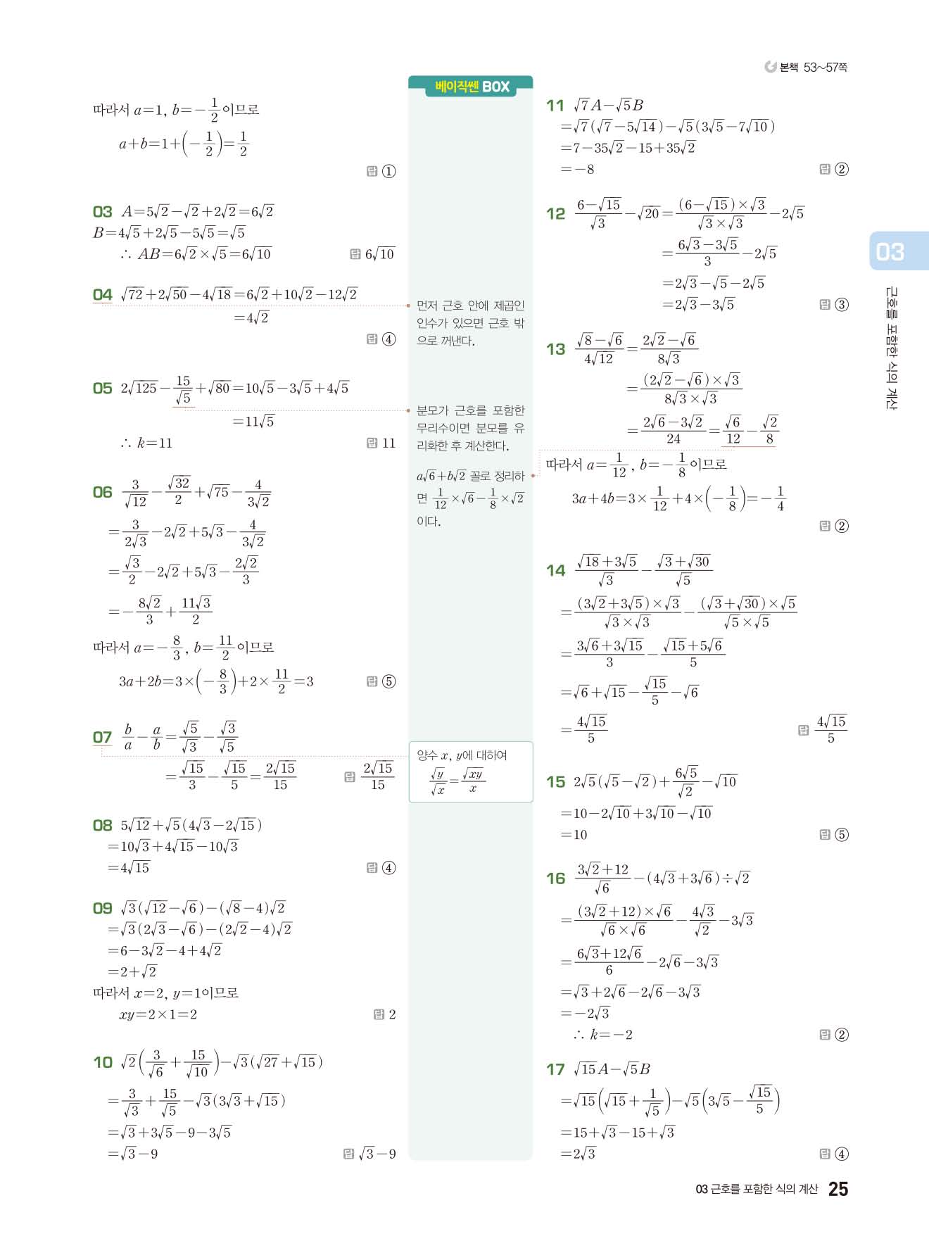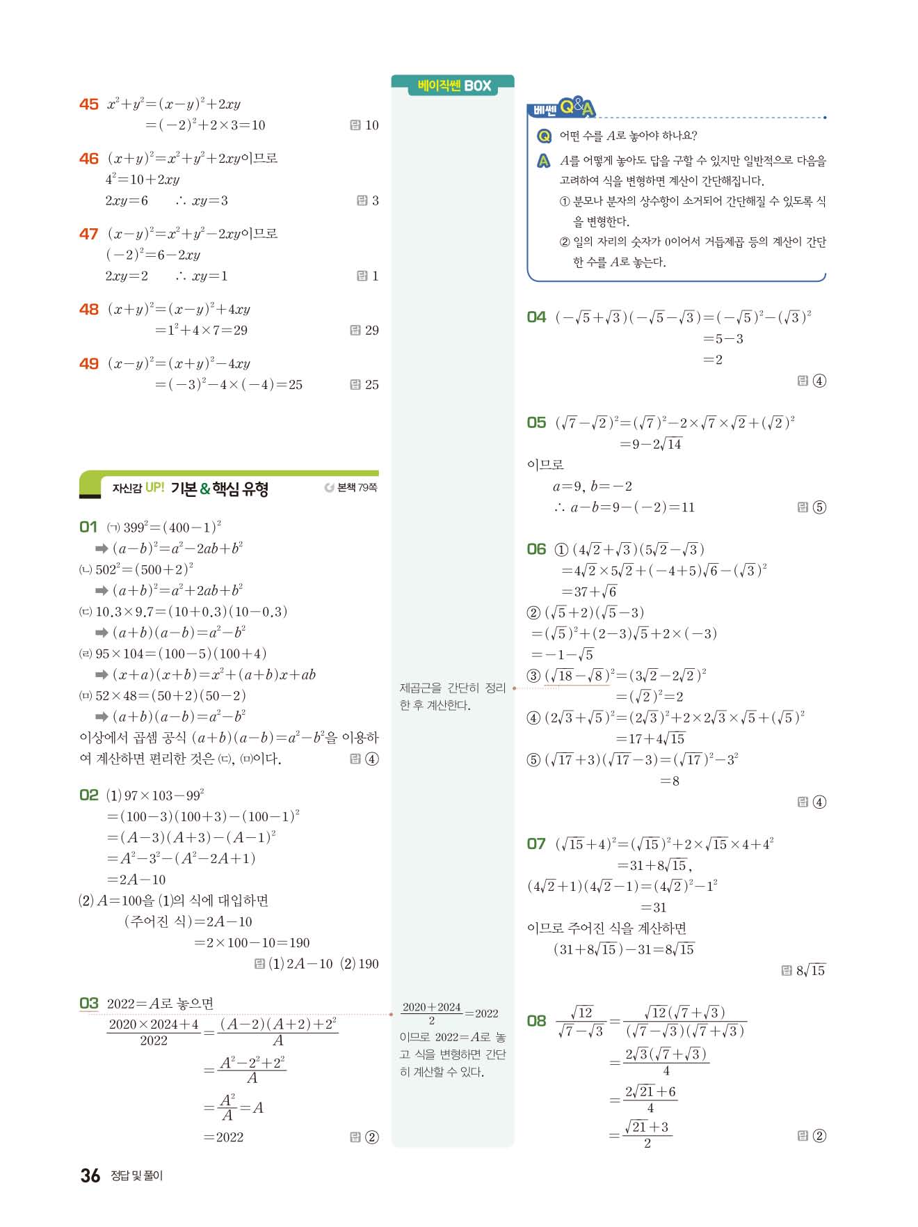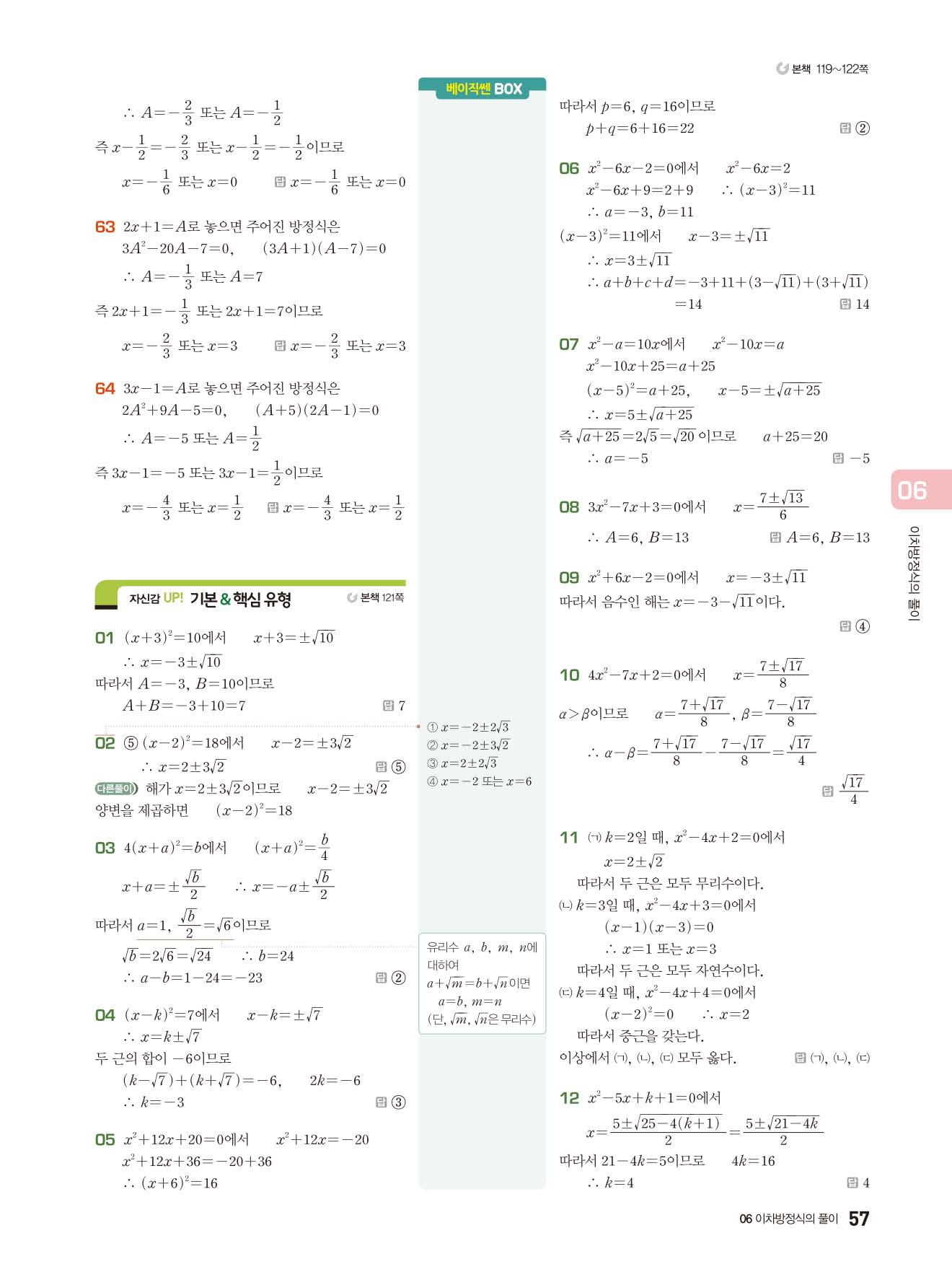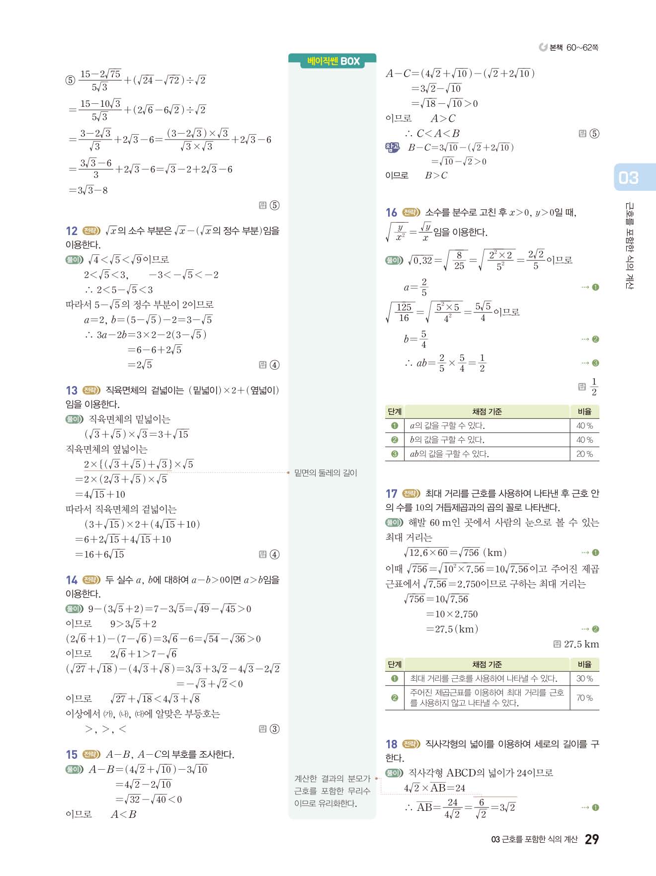 베이직쎈 중3상 답지 해설지 사진답지 빠른답지 모바일최적화