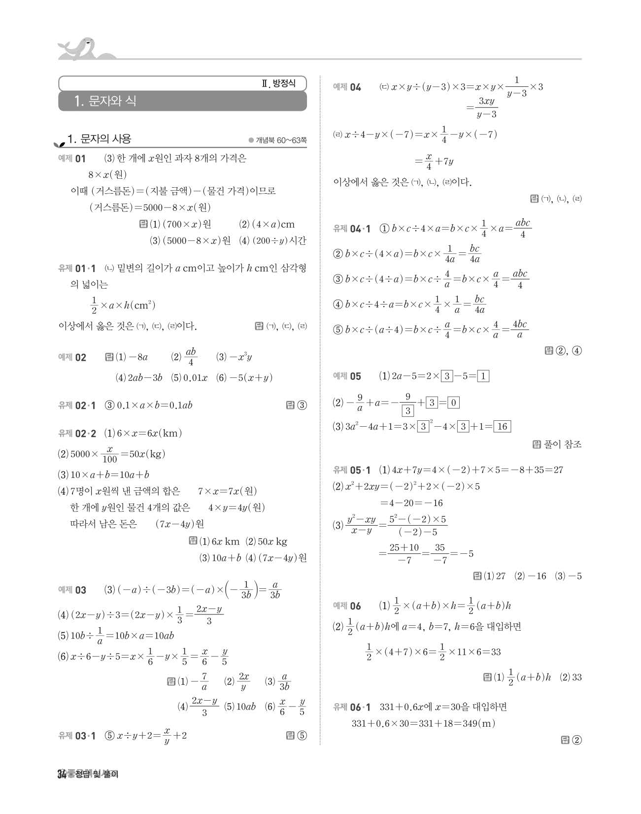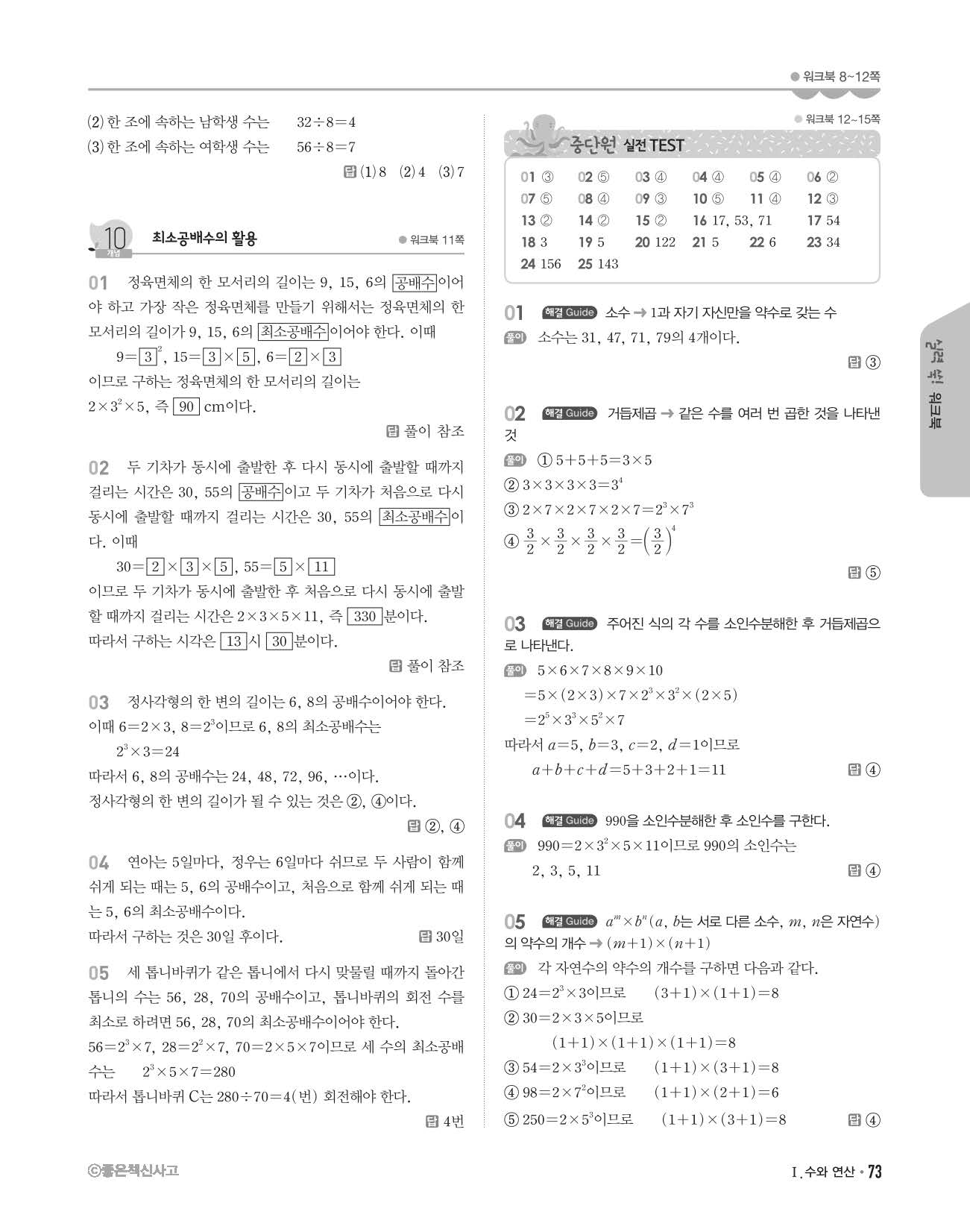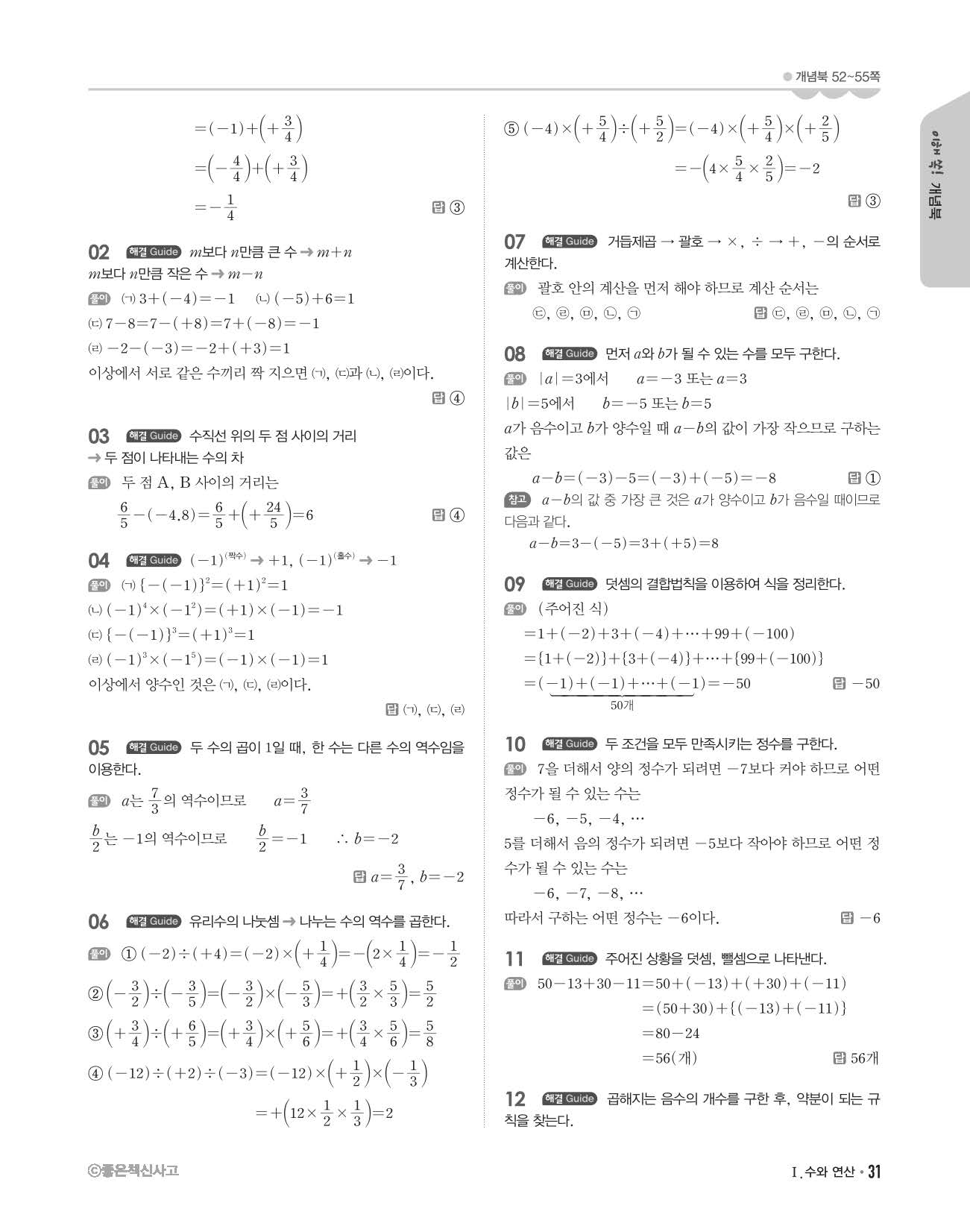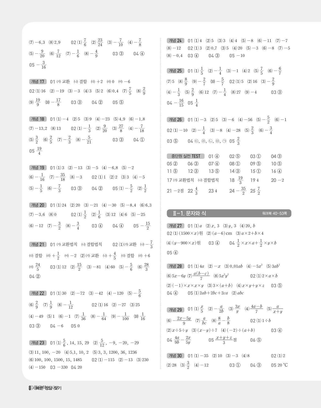 개념쎈 중1상 답지 해설지 사진답지 빠른답지 모바일최적화