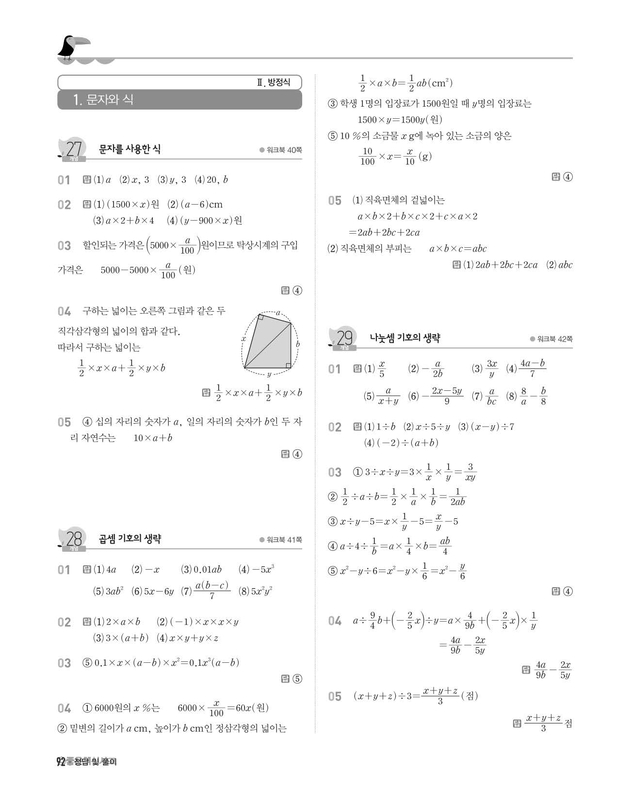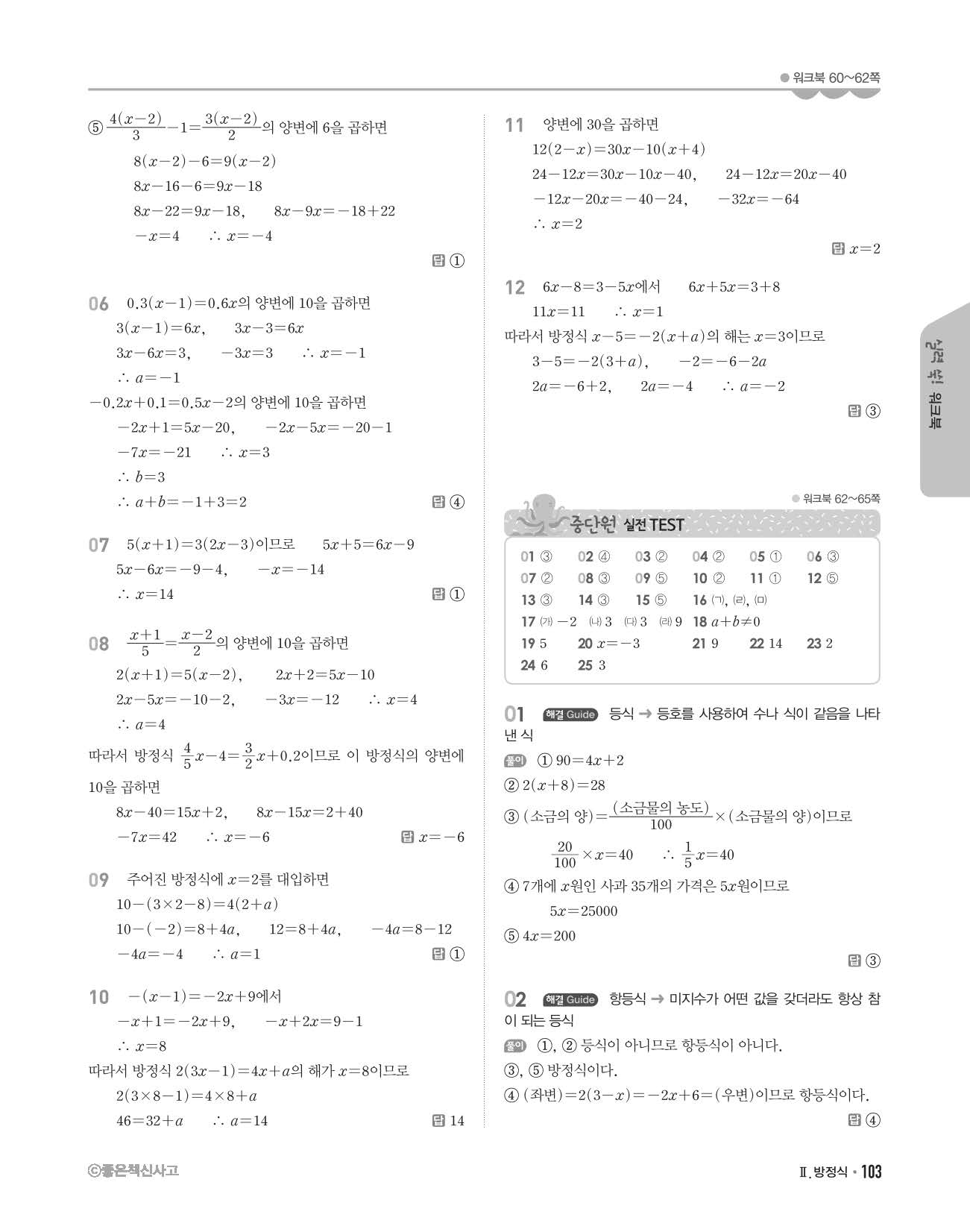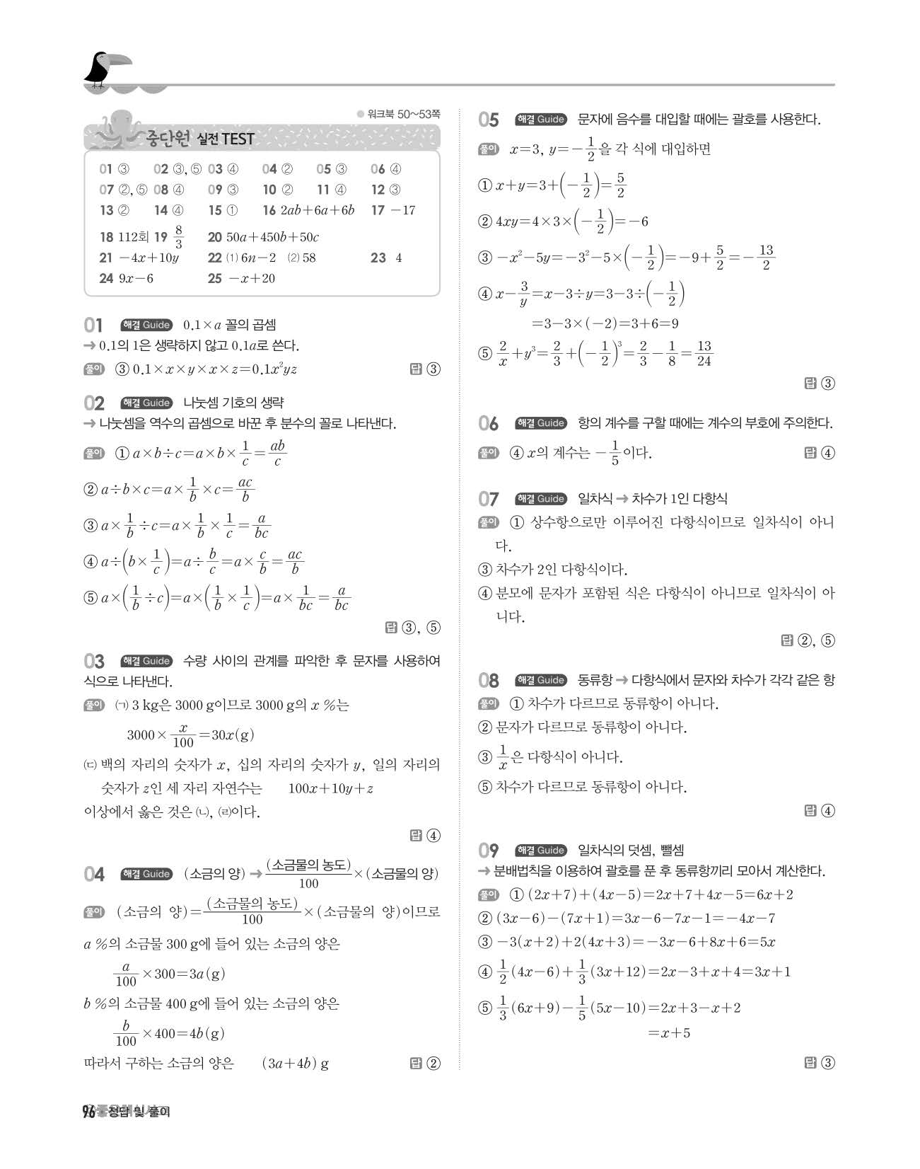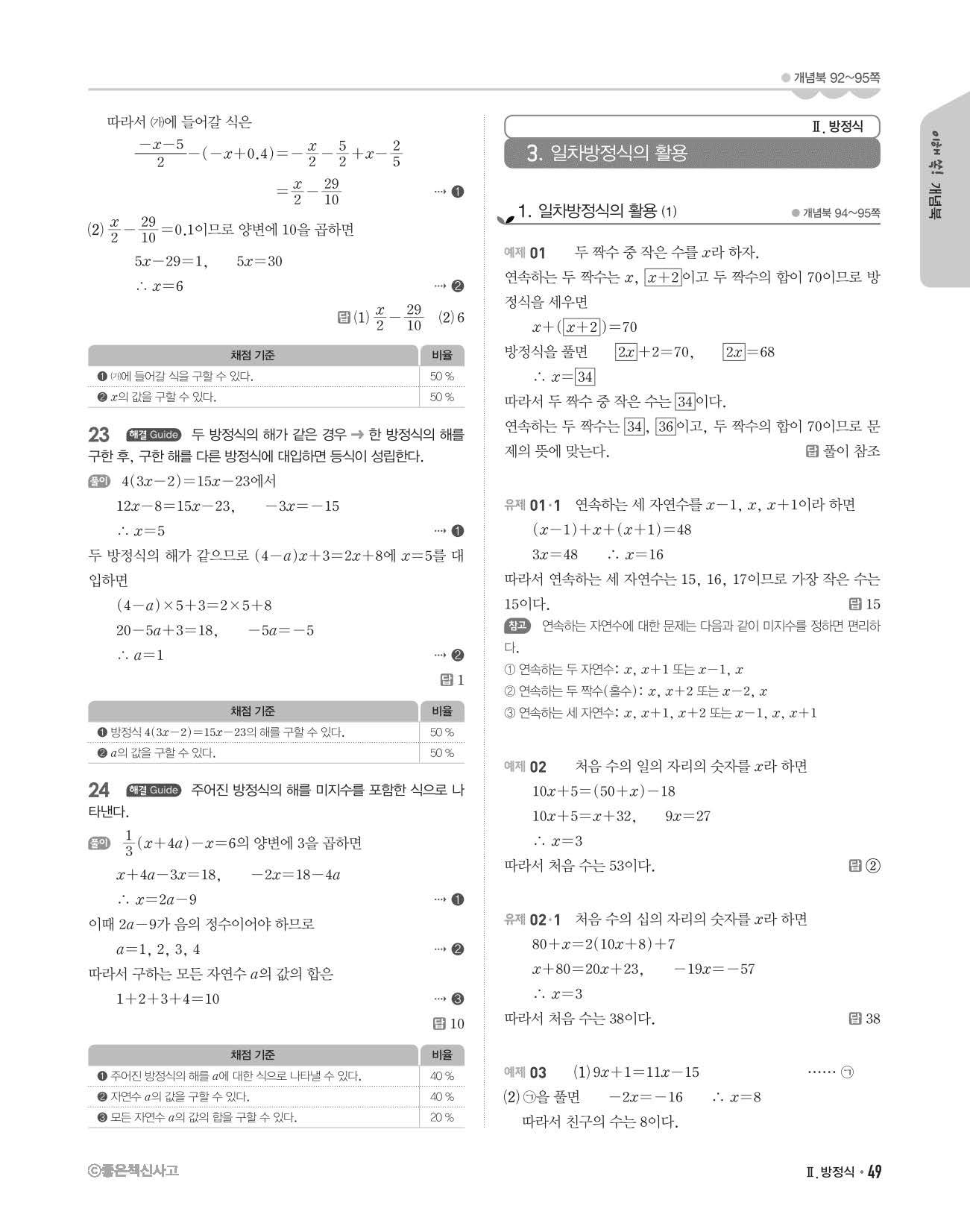 개념쎈 중1상 답지 해설지 사진답지 빠른답지 모바일최적화