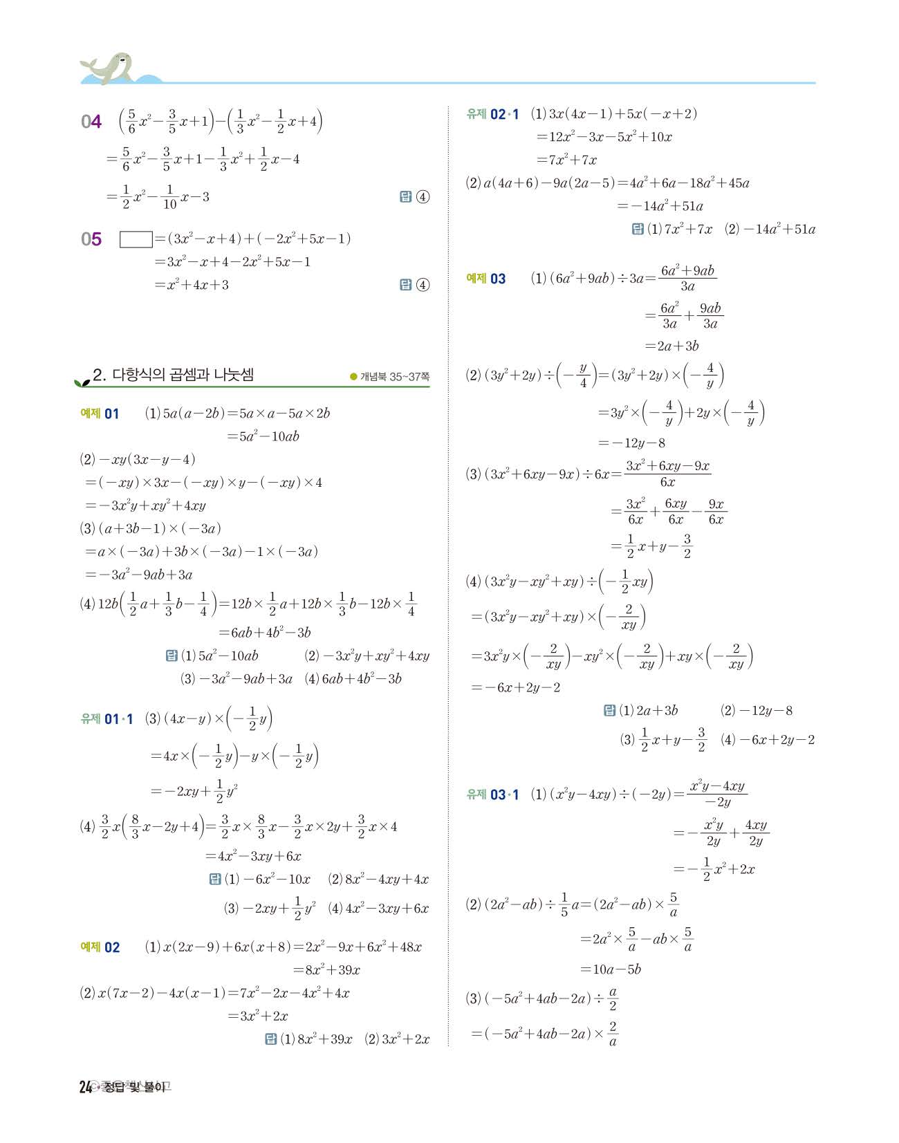 개념쎈 중2상 답지 해설지 사진답지 빠른답지 모바일최적화