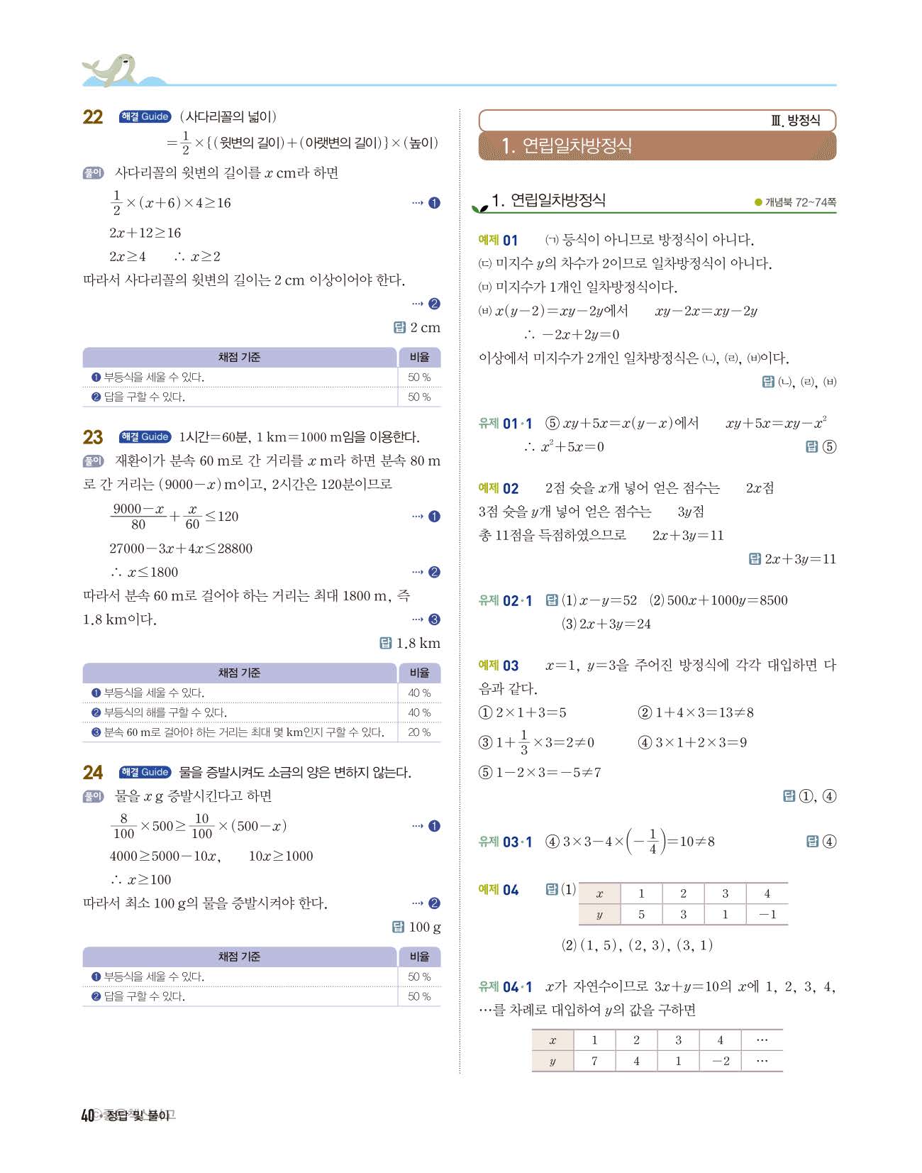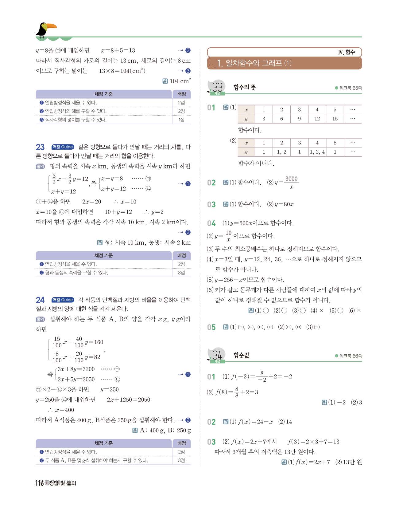 | 천재교육 이준열 중2 수학교과서 답지 | |
