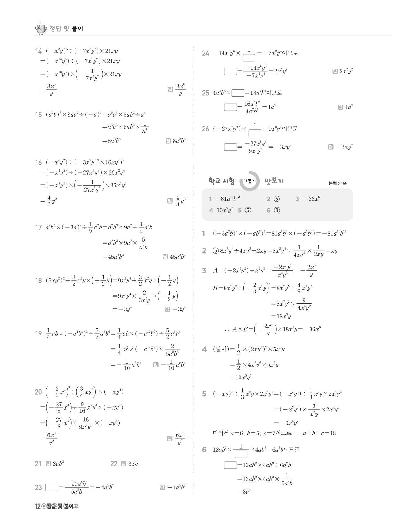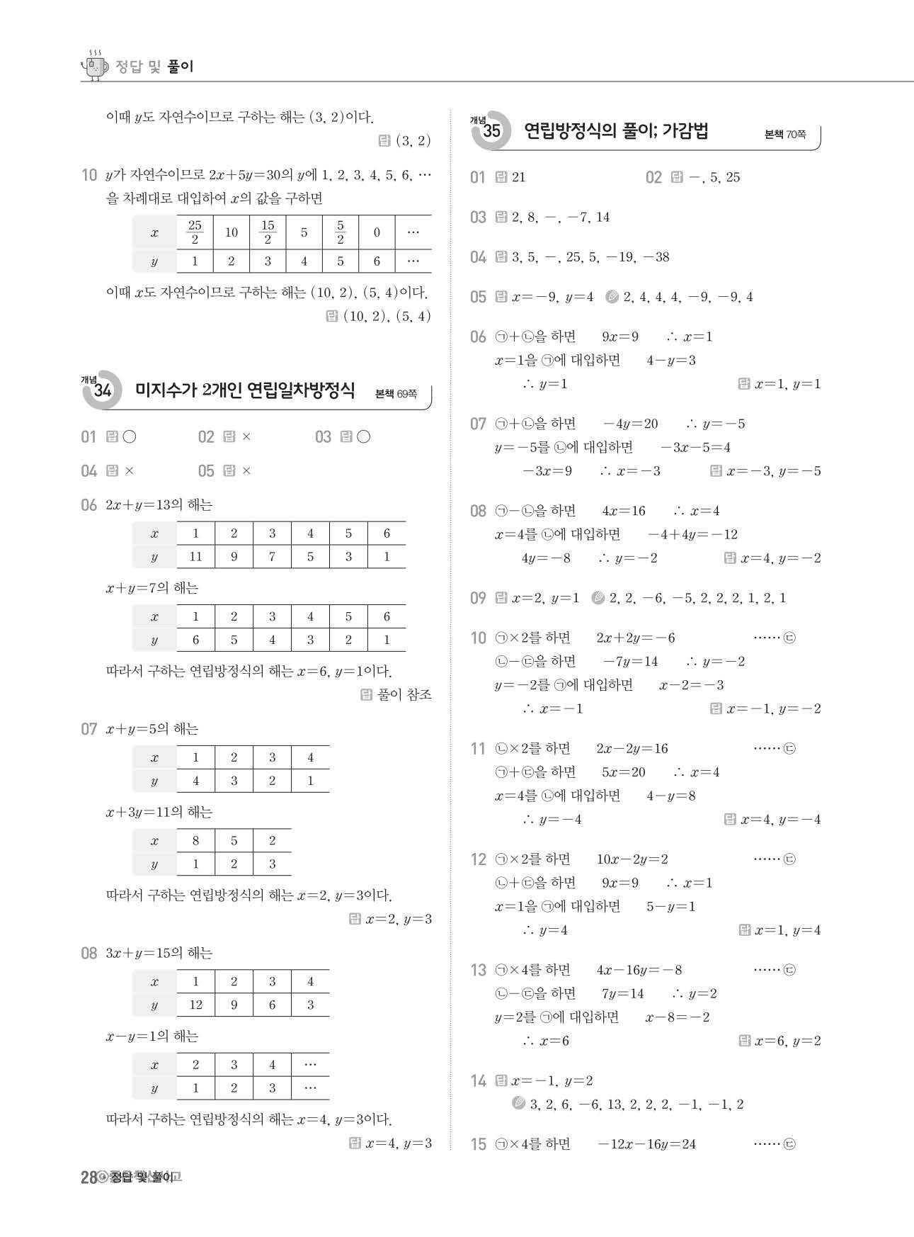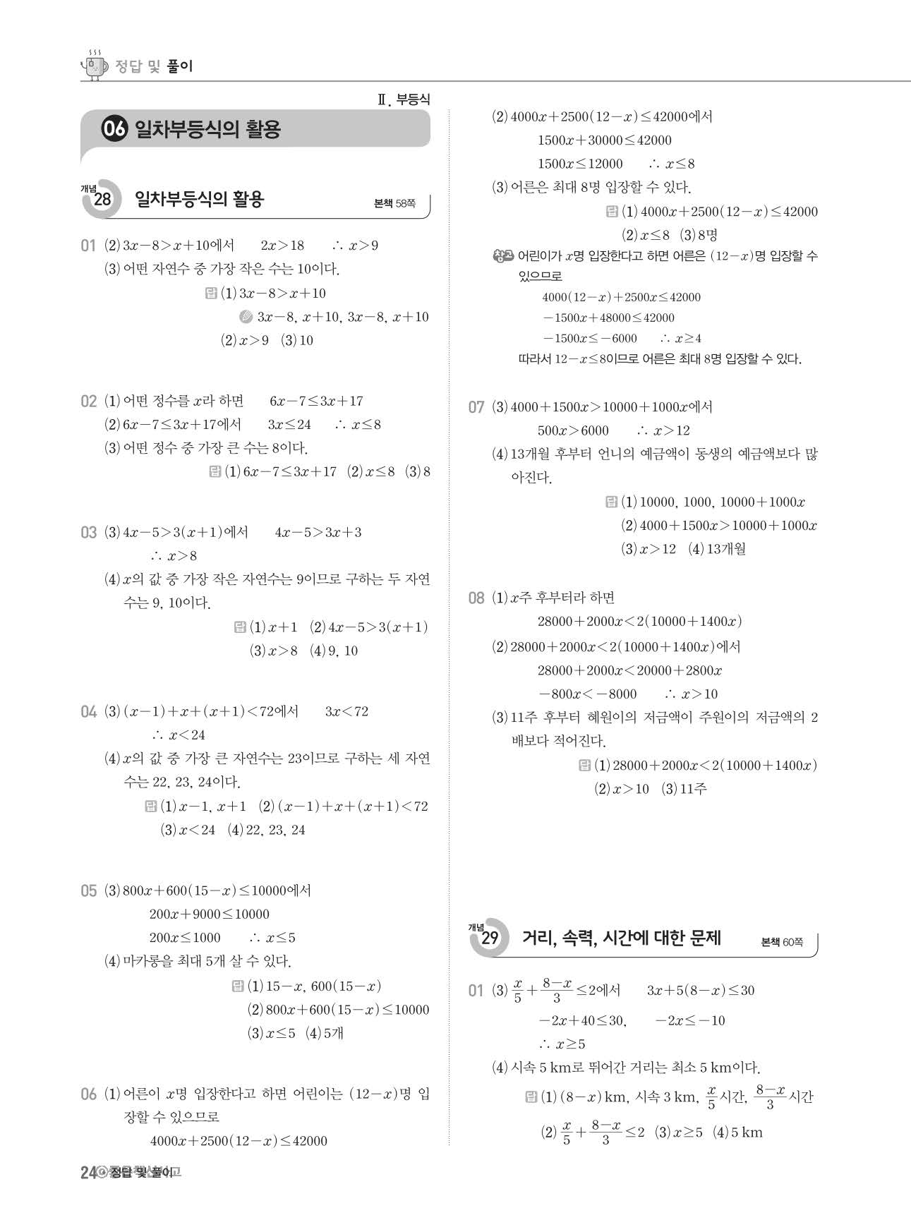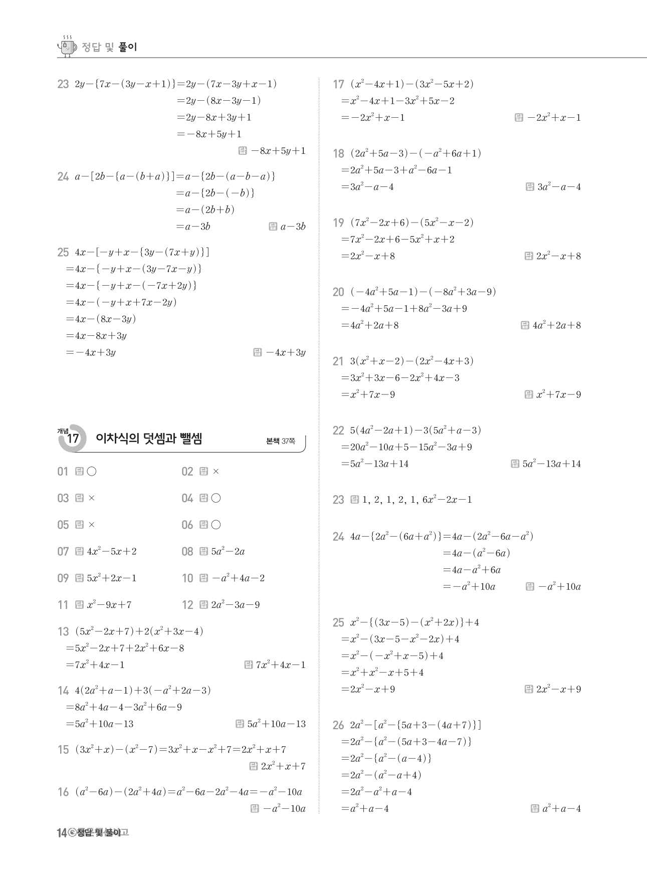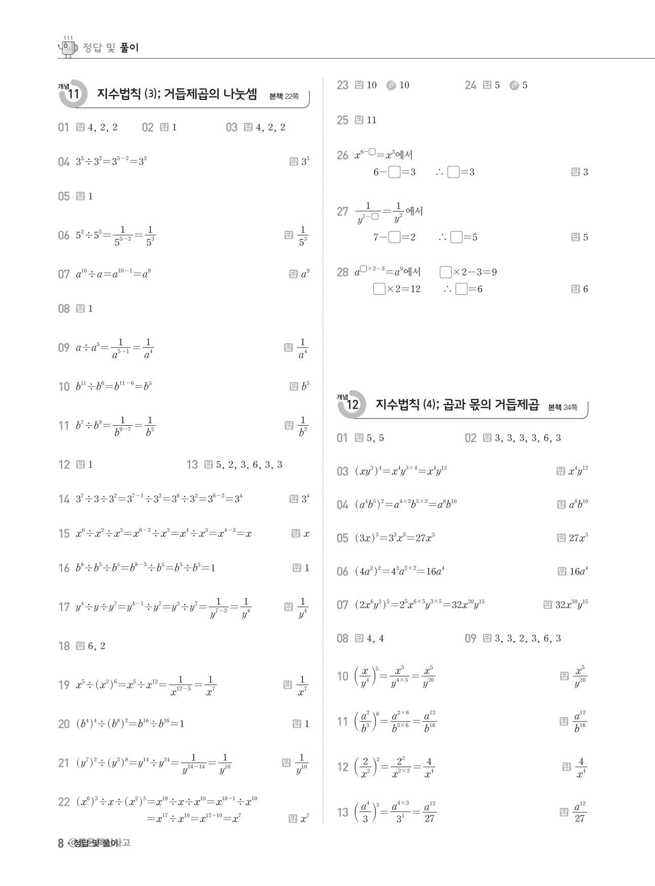 개념쎈 중2상 2-1 답지 해설지 사진답지 빠른답지 모바일최적화