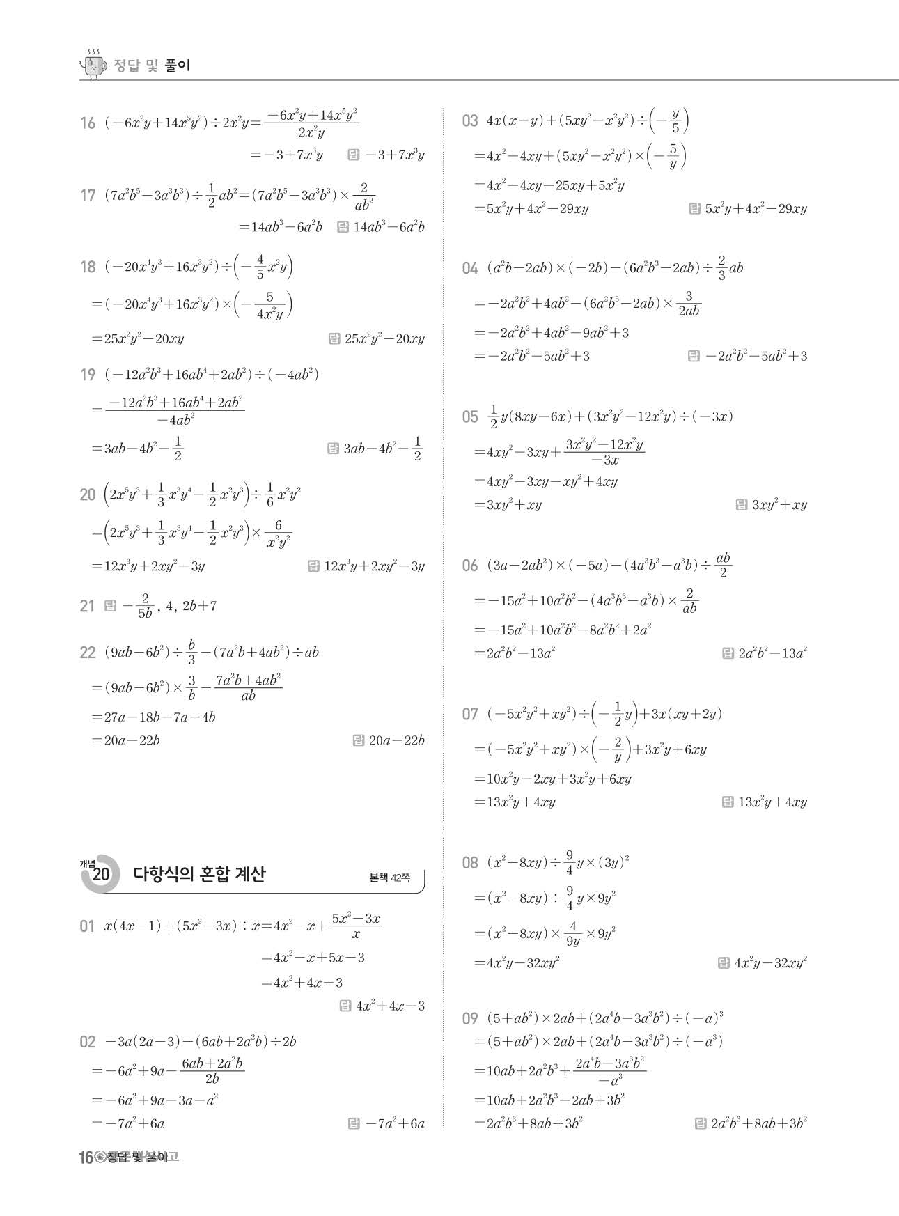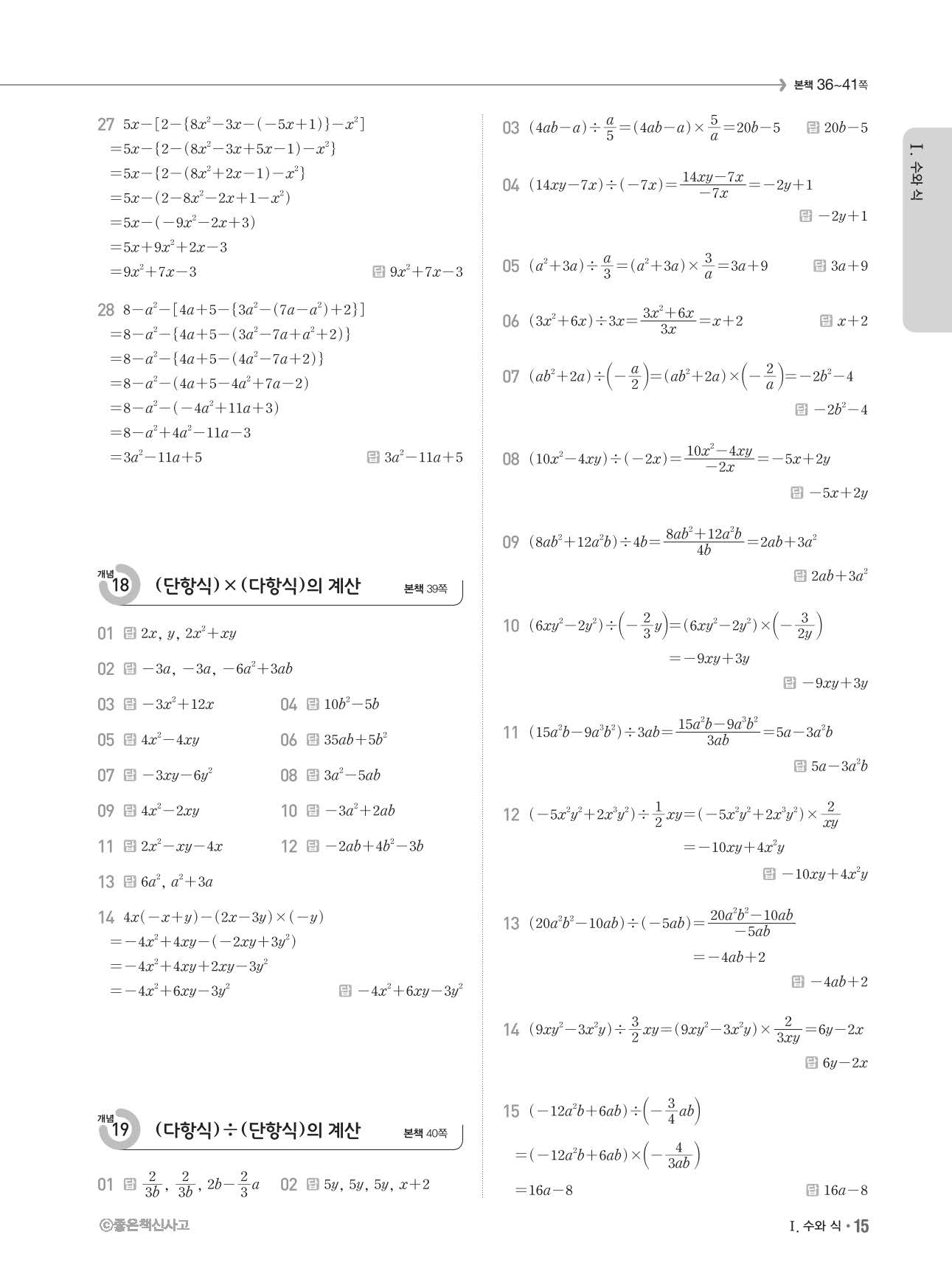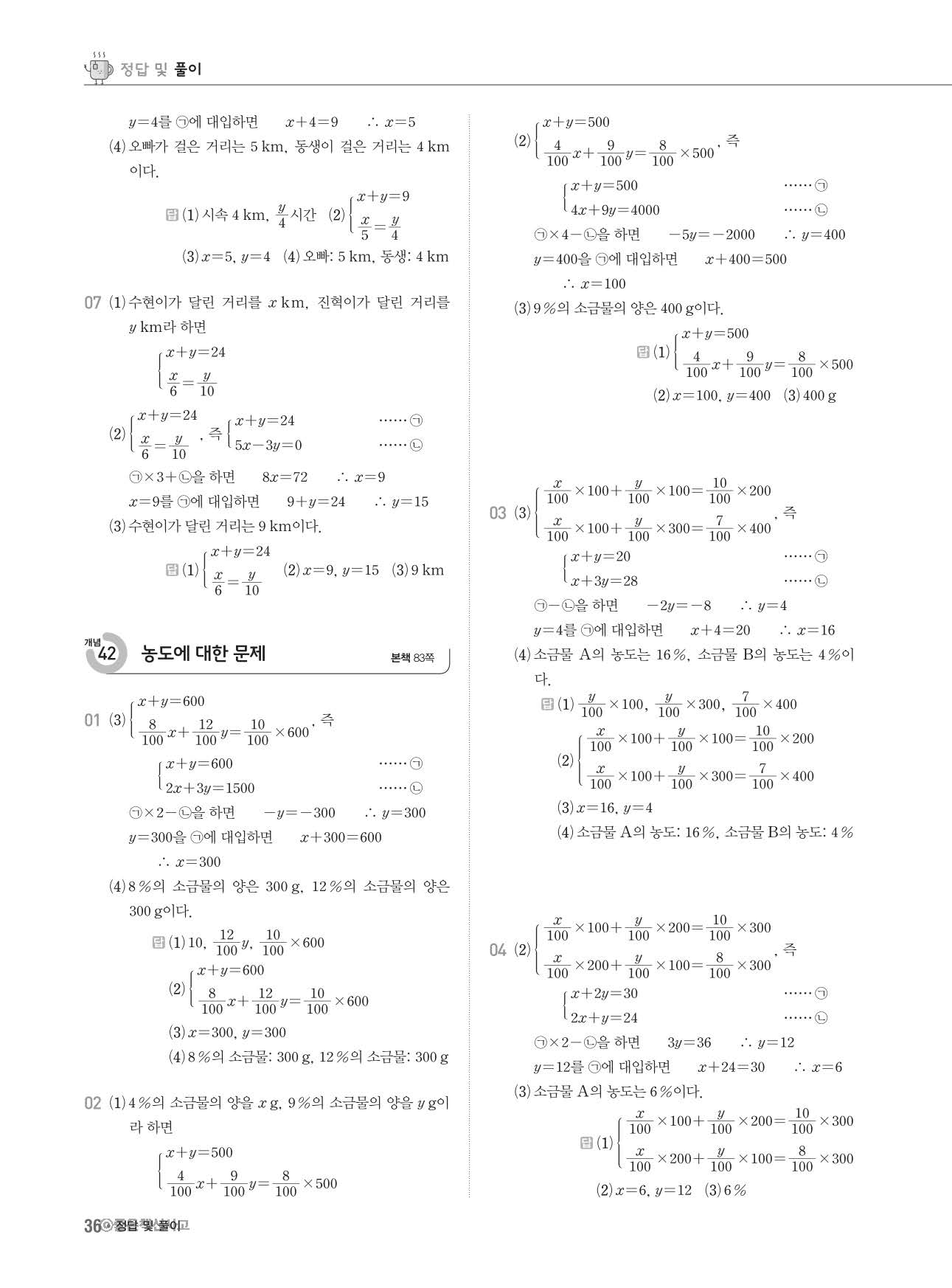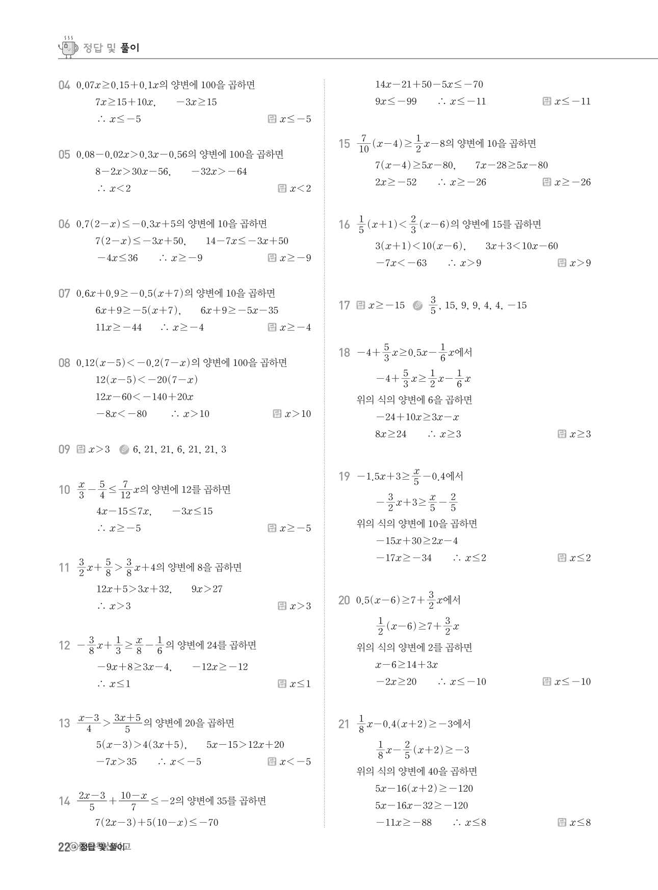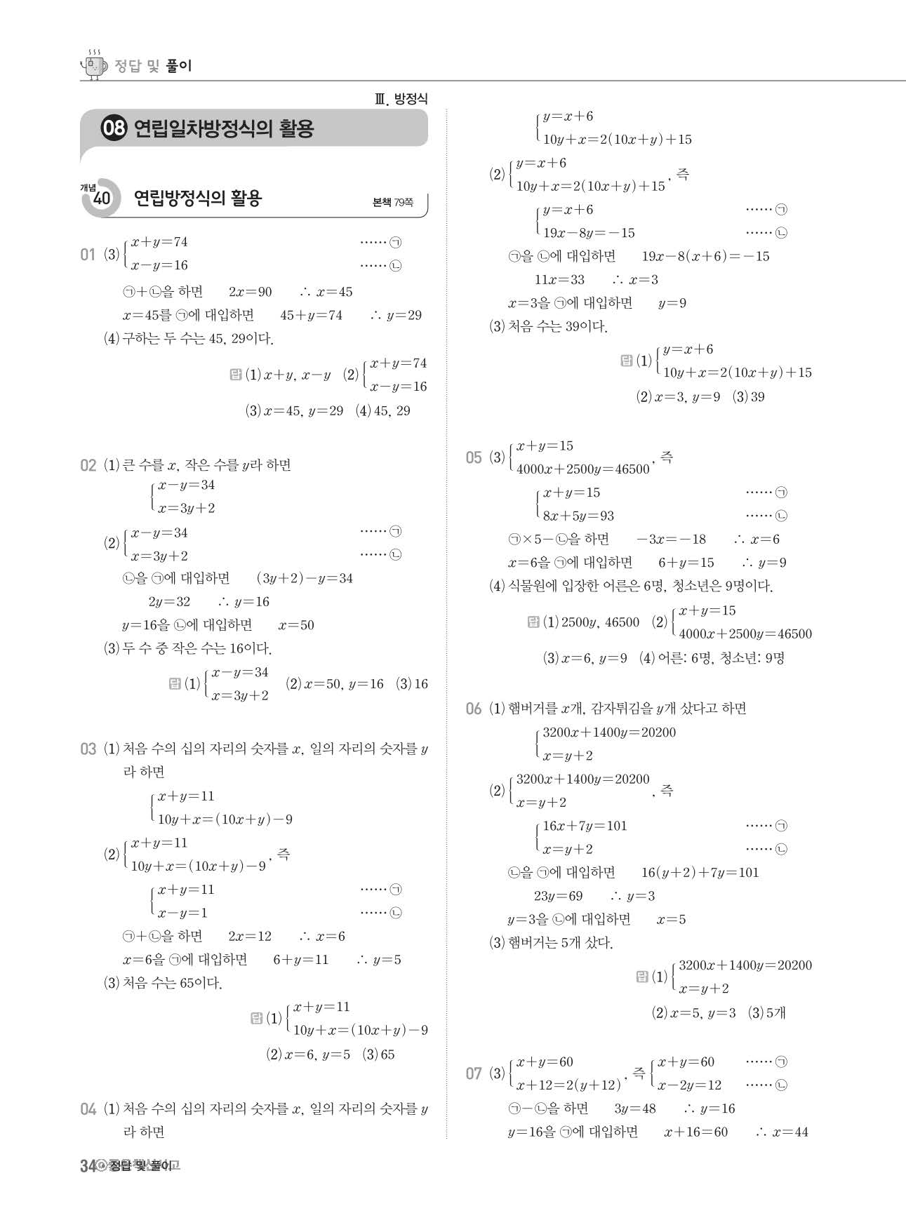 개념쎈 중2상 2-1 답지 해설지 사진답지 빠른답지 모바일최적화
