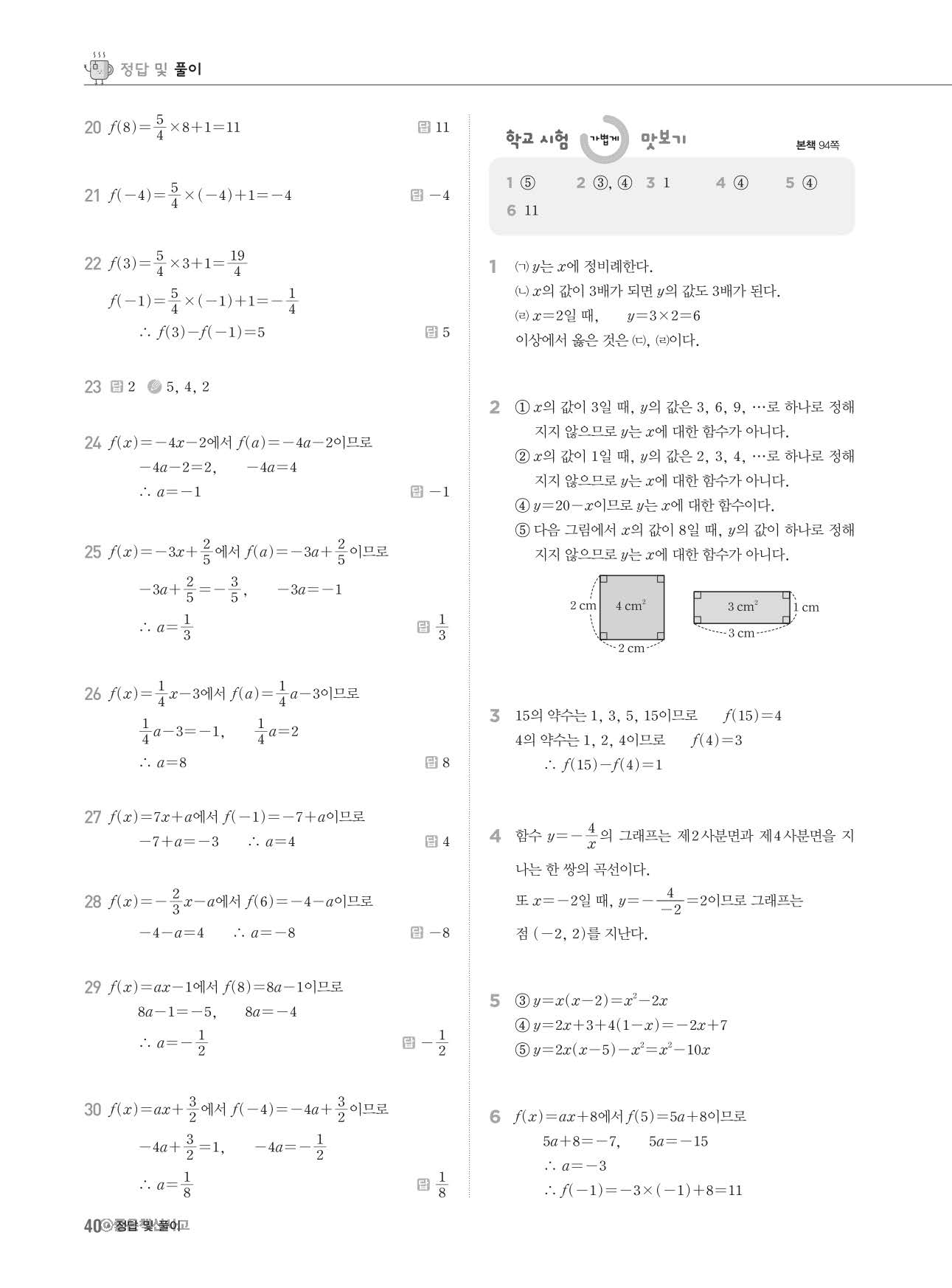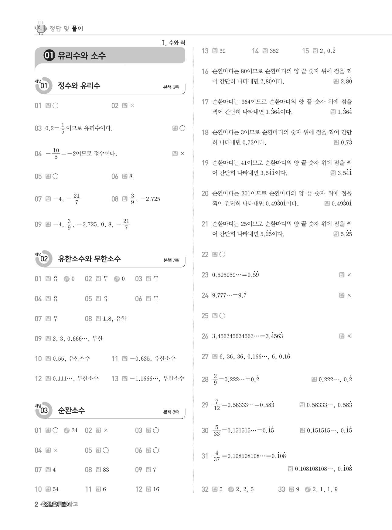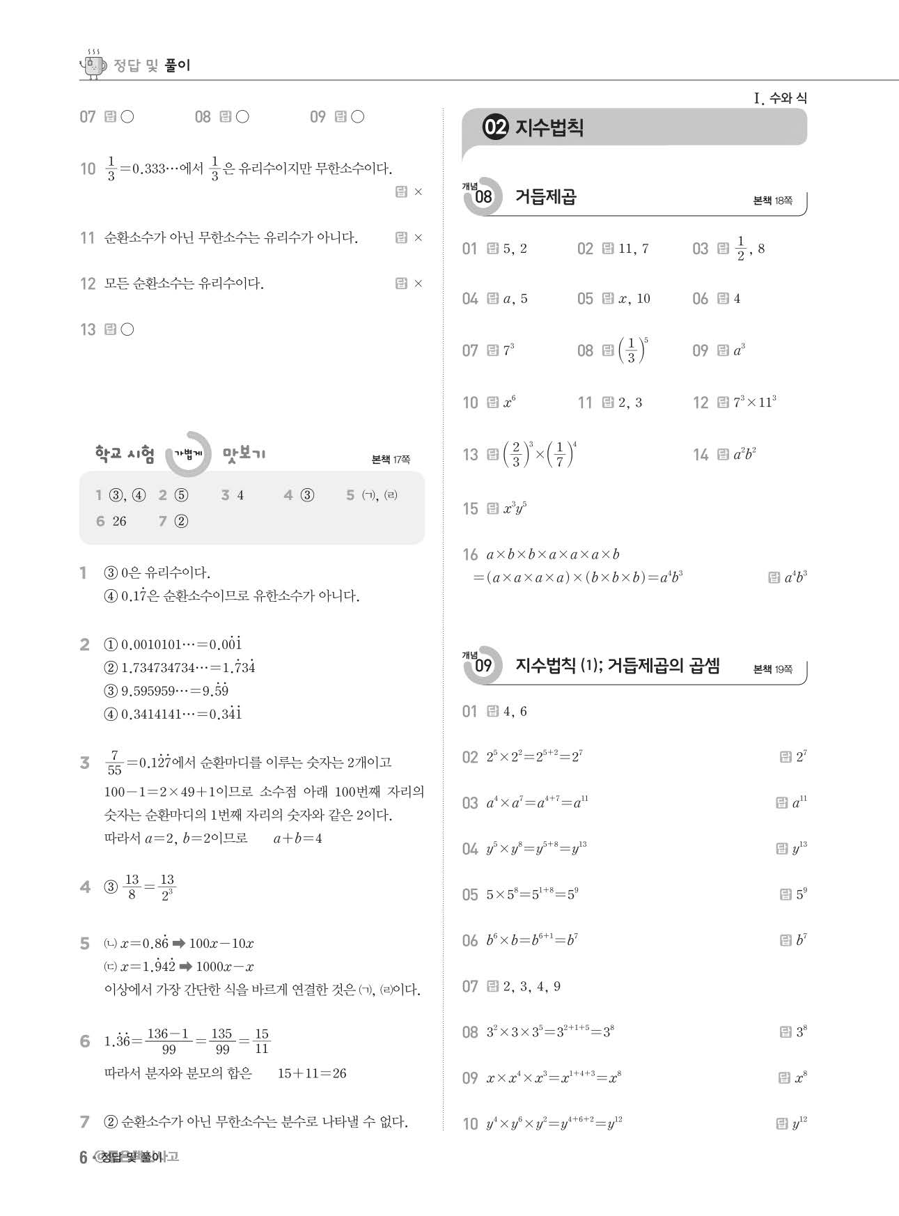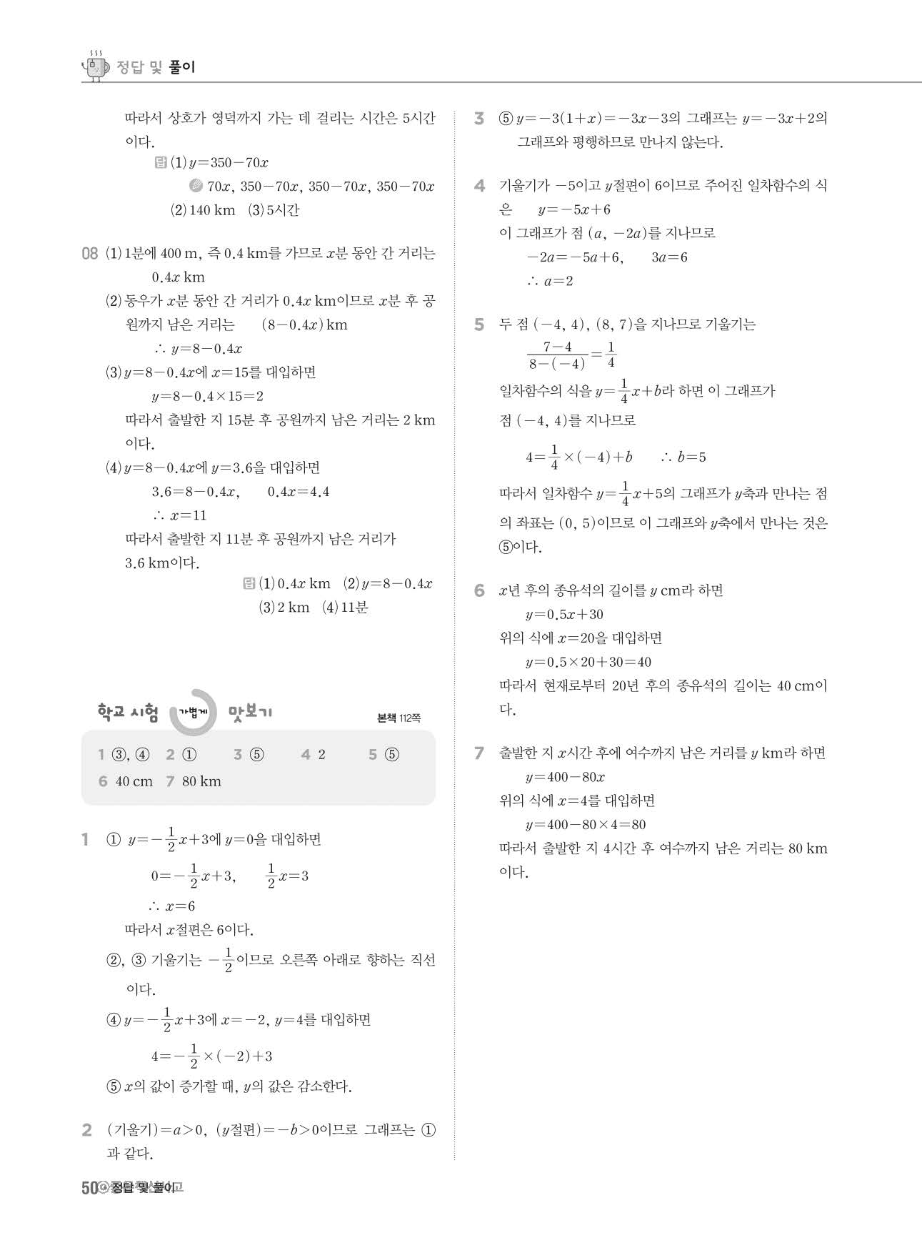 | 천재교육 이준열 중2 수학교과서 답지 | |