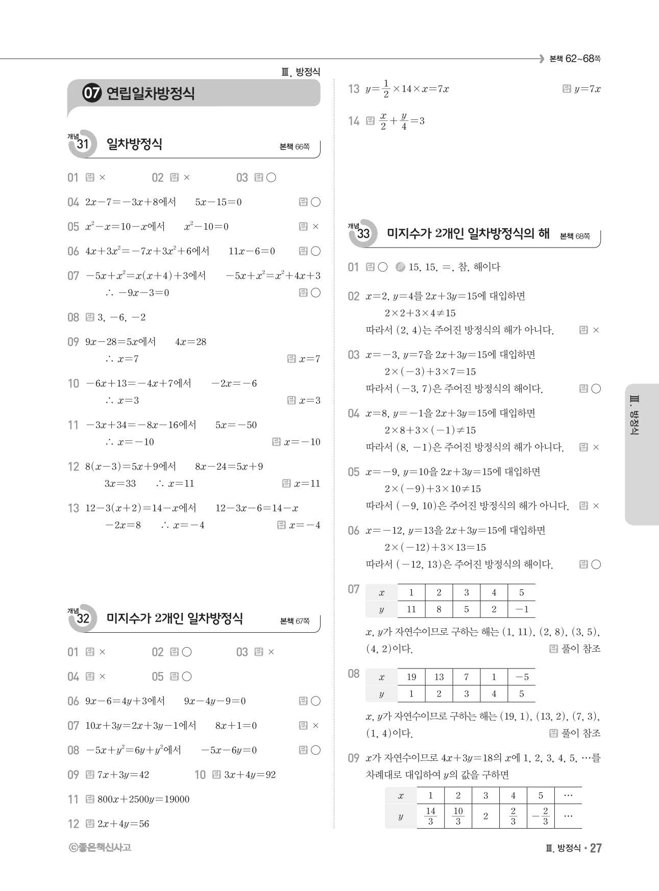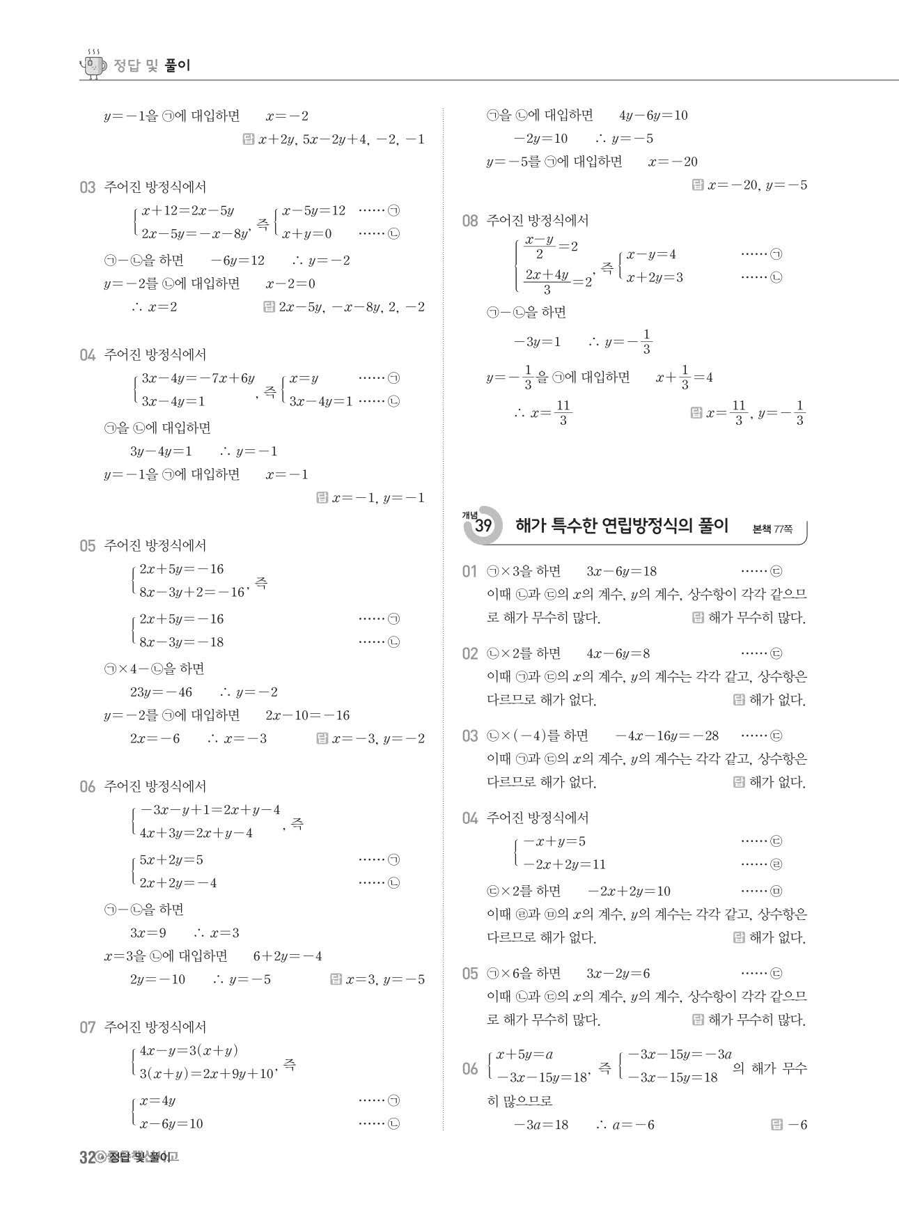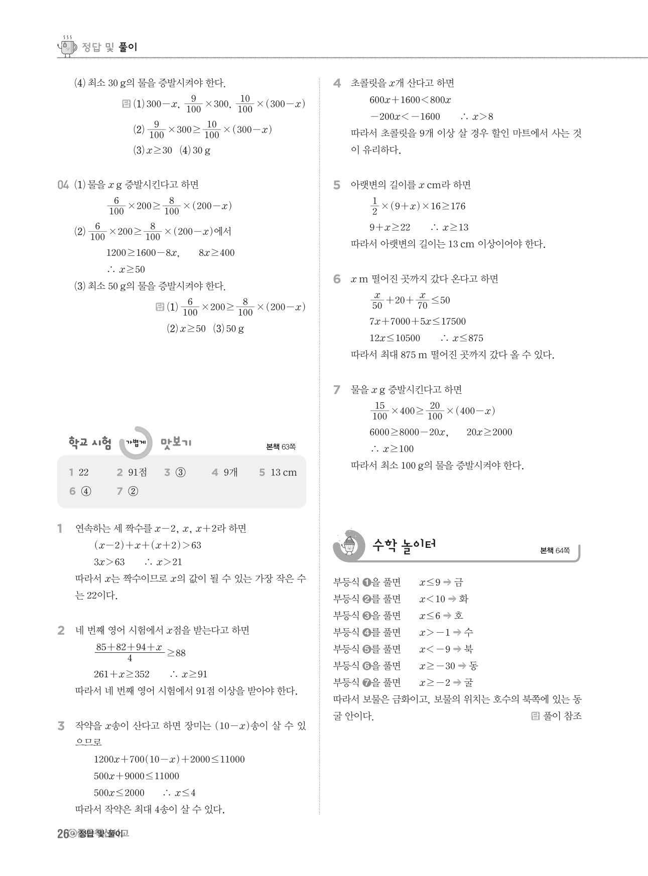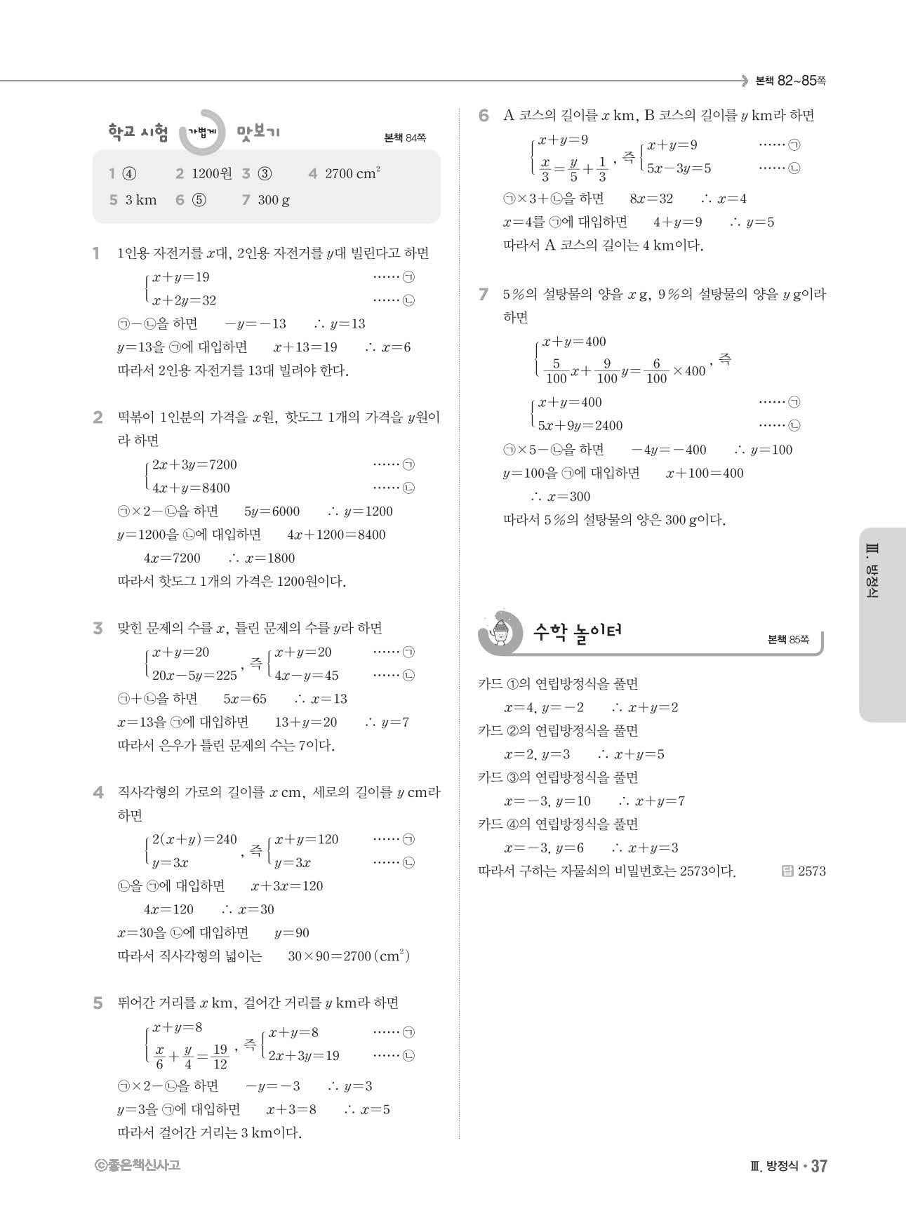 | 천재교육 이준열 중2 수학교과서 답지 | |
