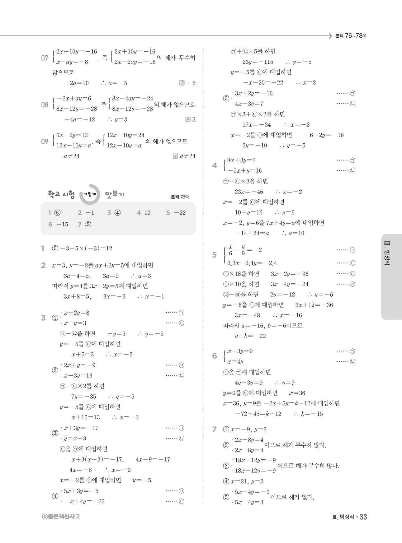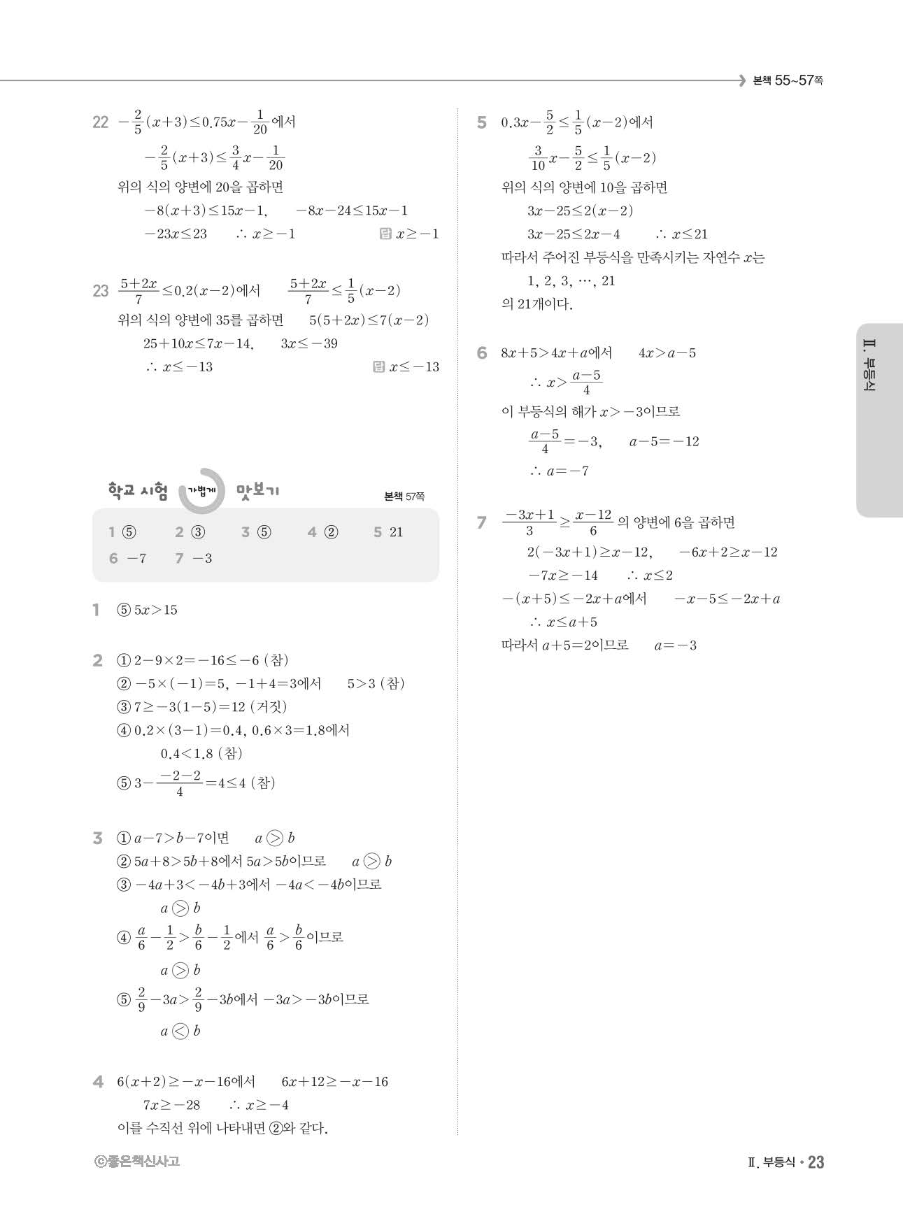| 교학사 고호경 중2 수학교과서 답지 | |