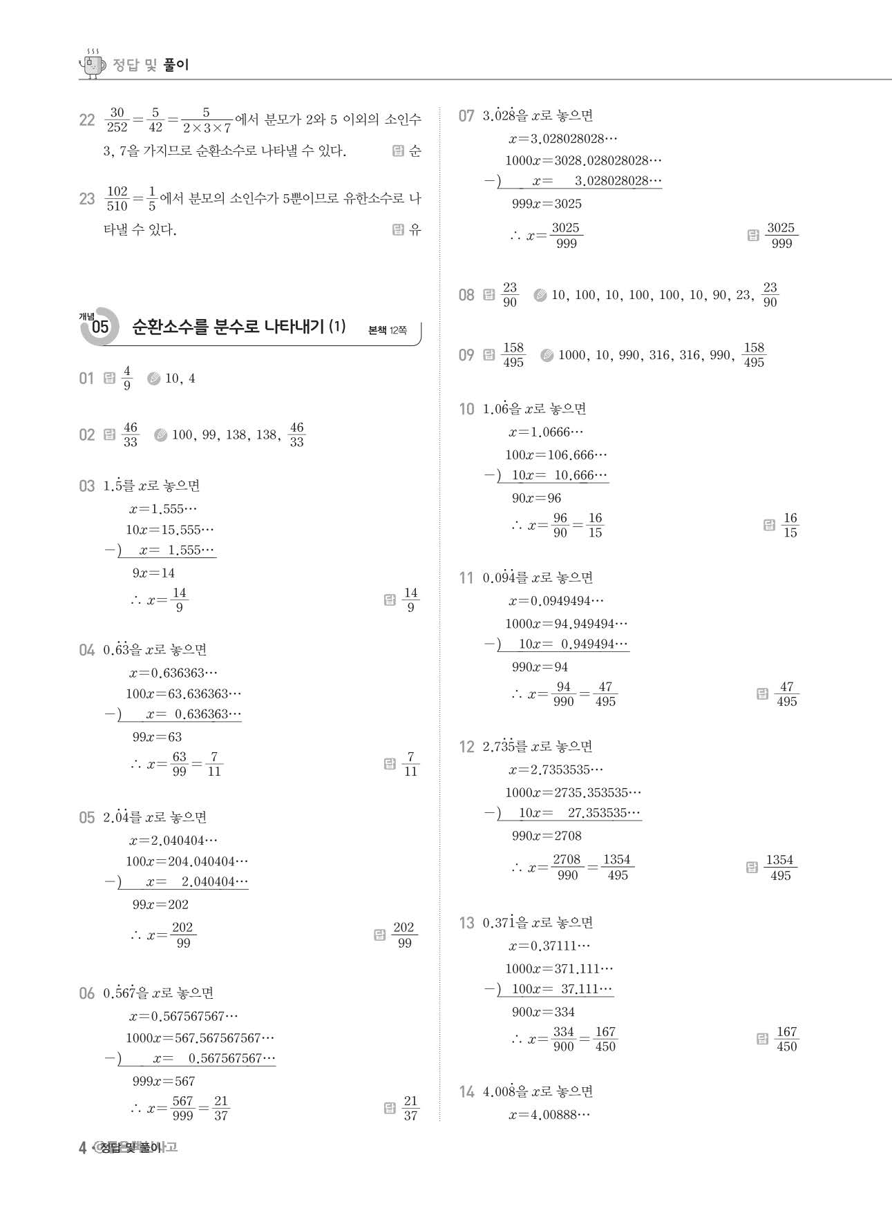 | 개념쎈 중2-1 답지 | https://mathuncle.tistory.com/191 |
