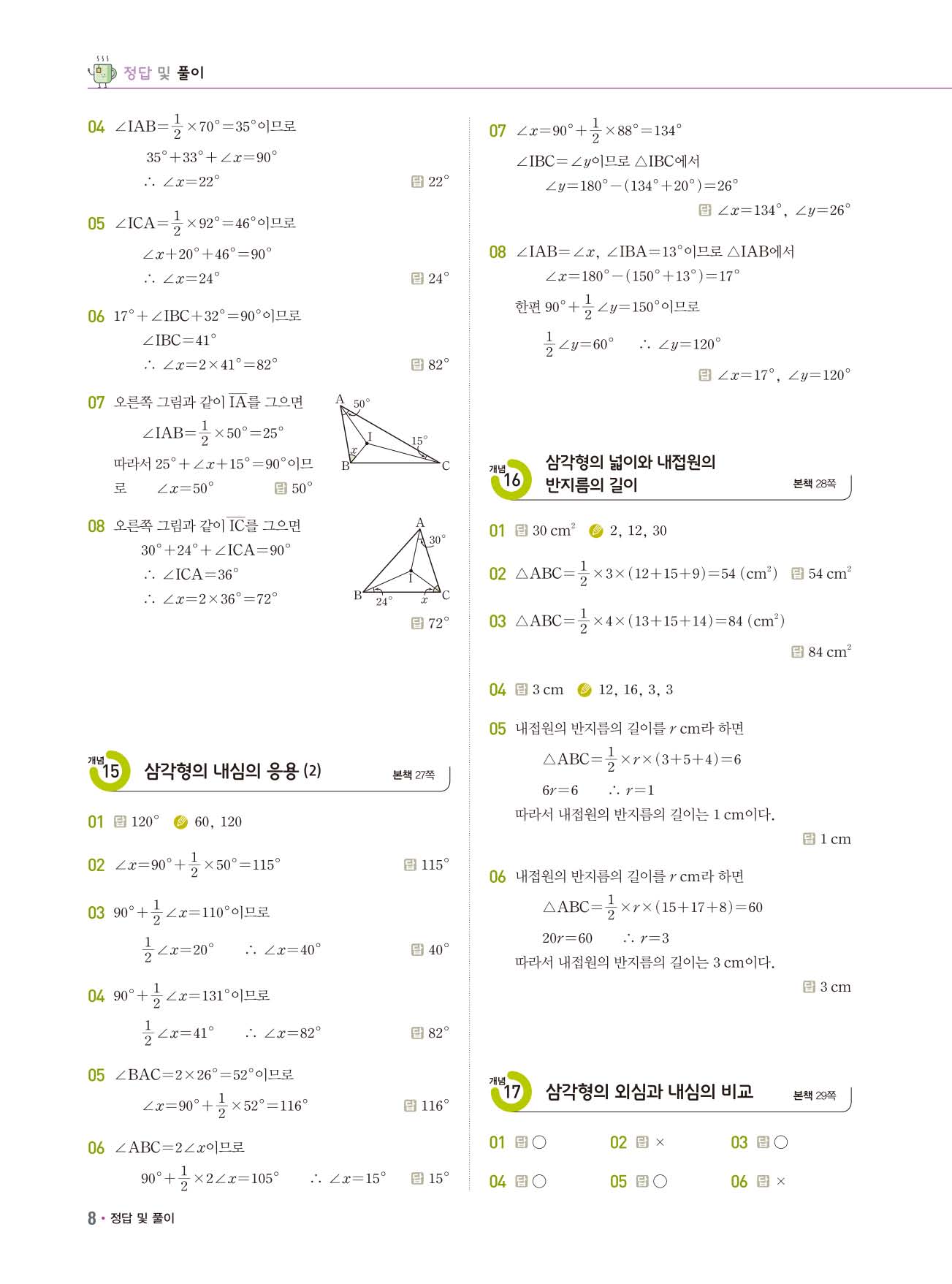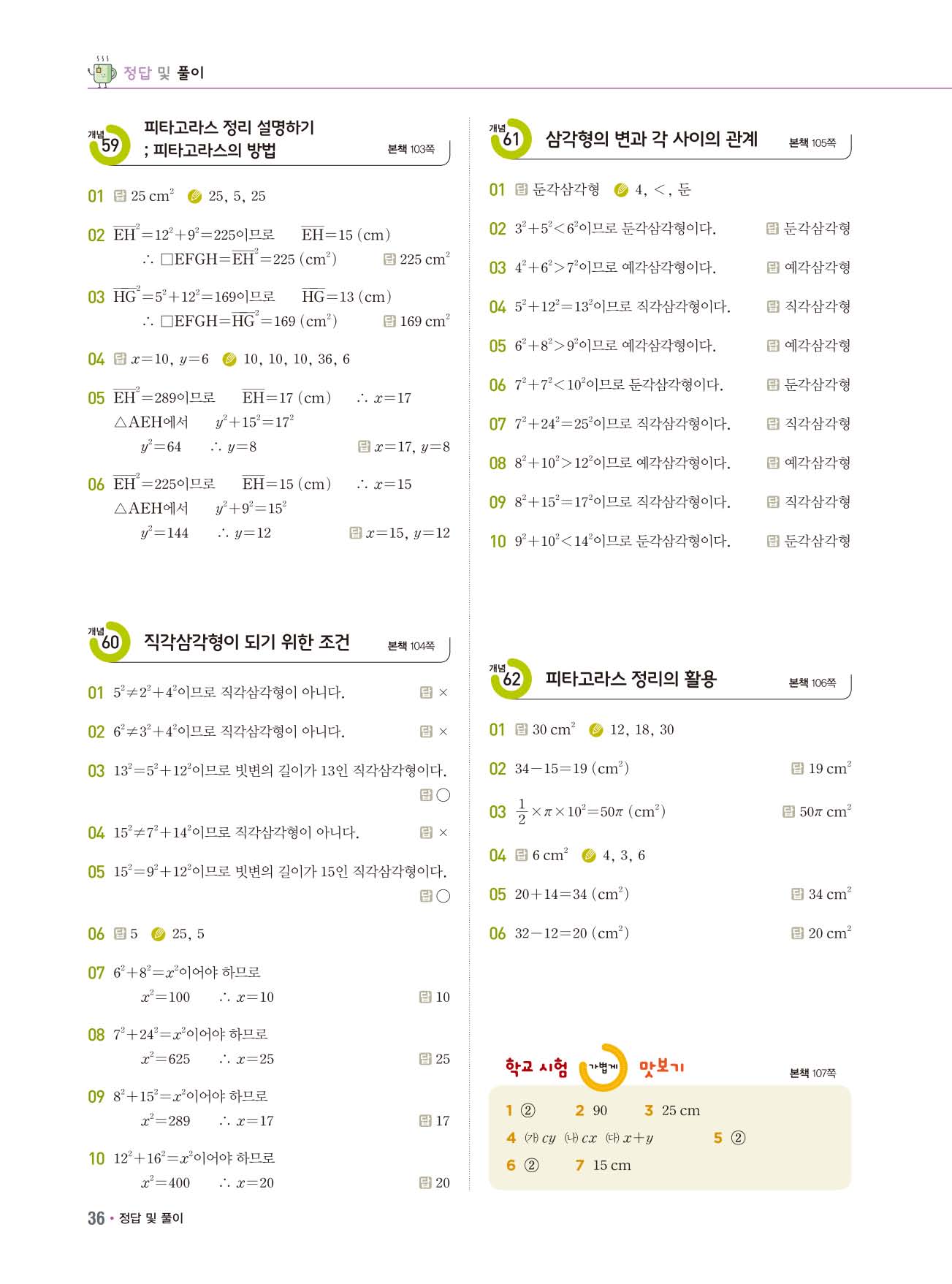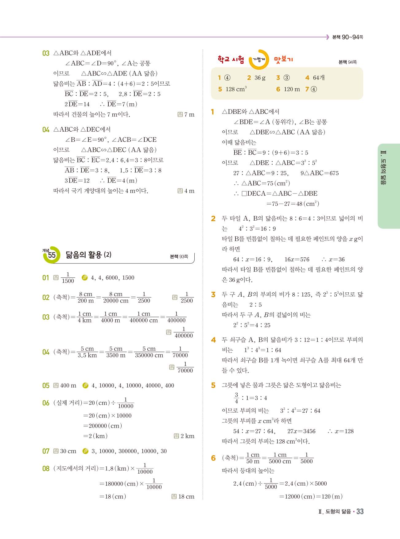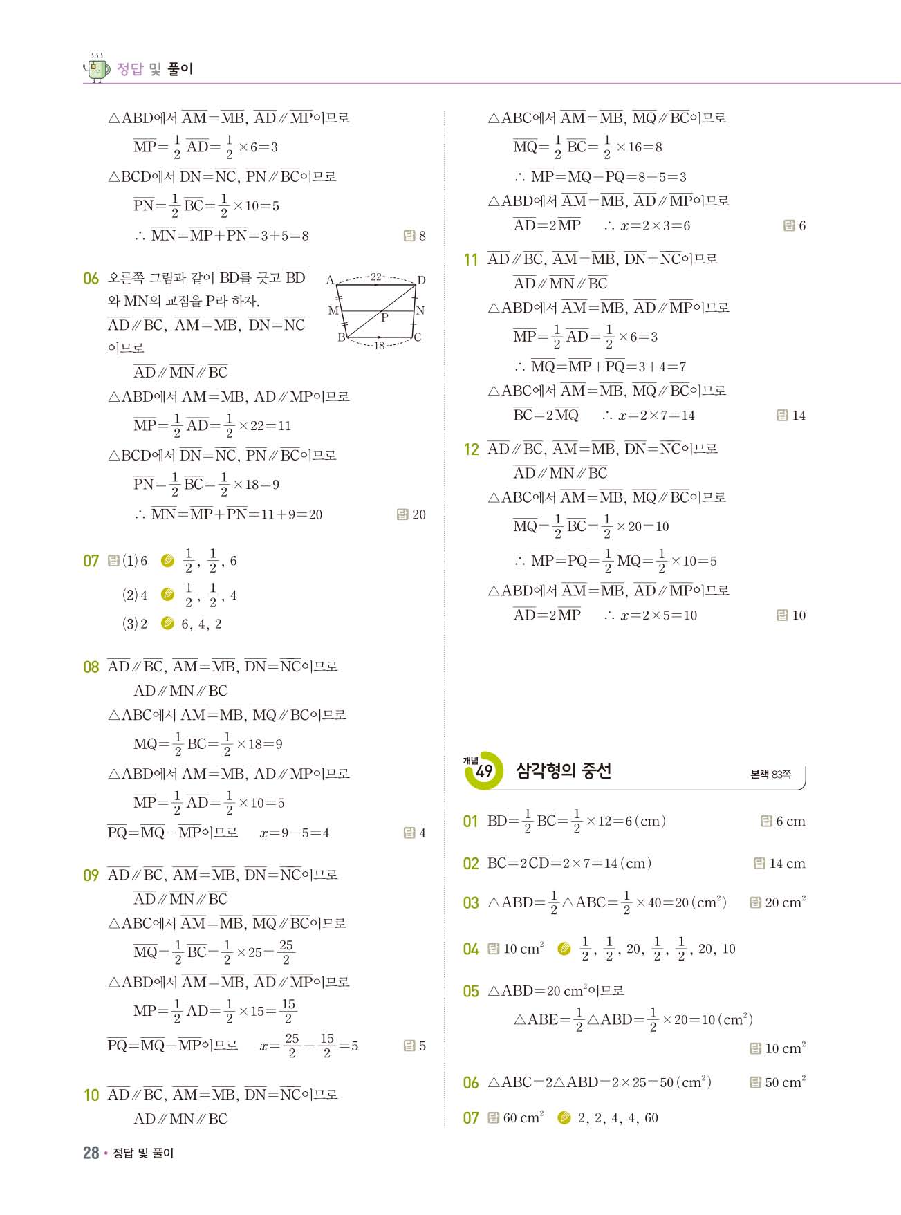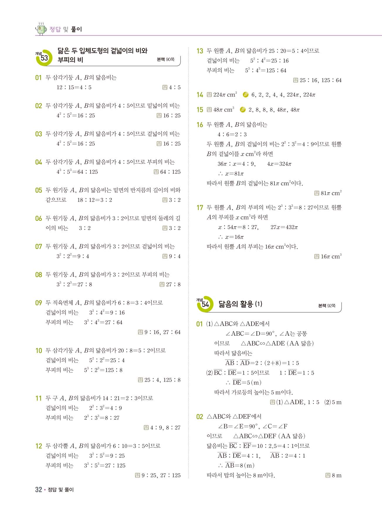개념쎈 중2하 2-2 답지 해설지 사진답지 빠른답지 모바일최적화