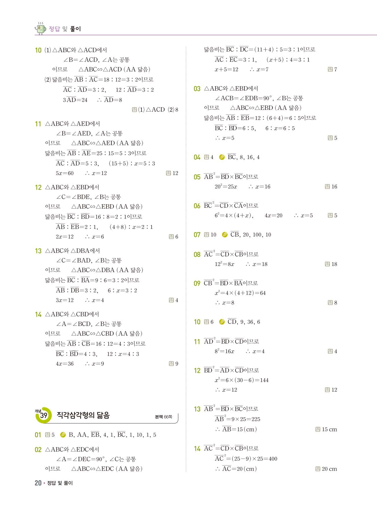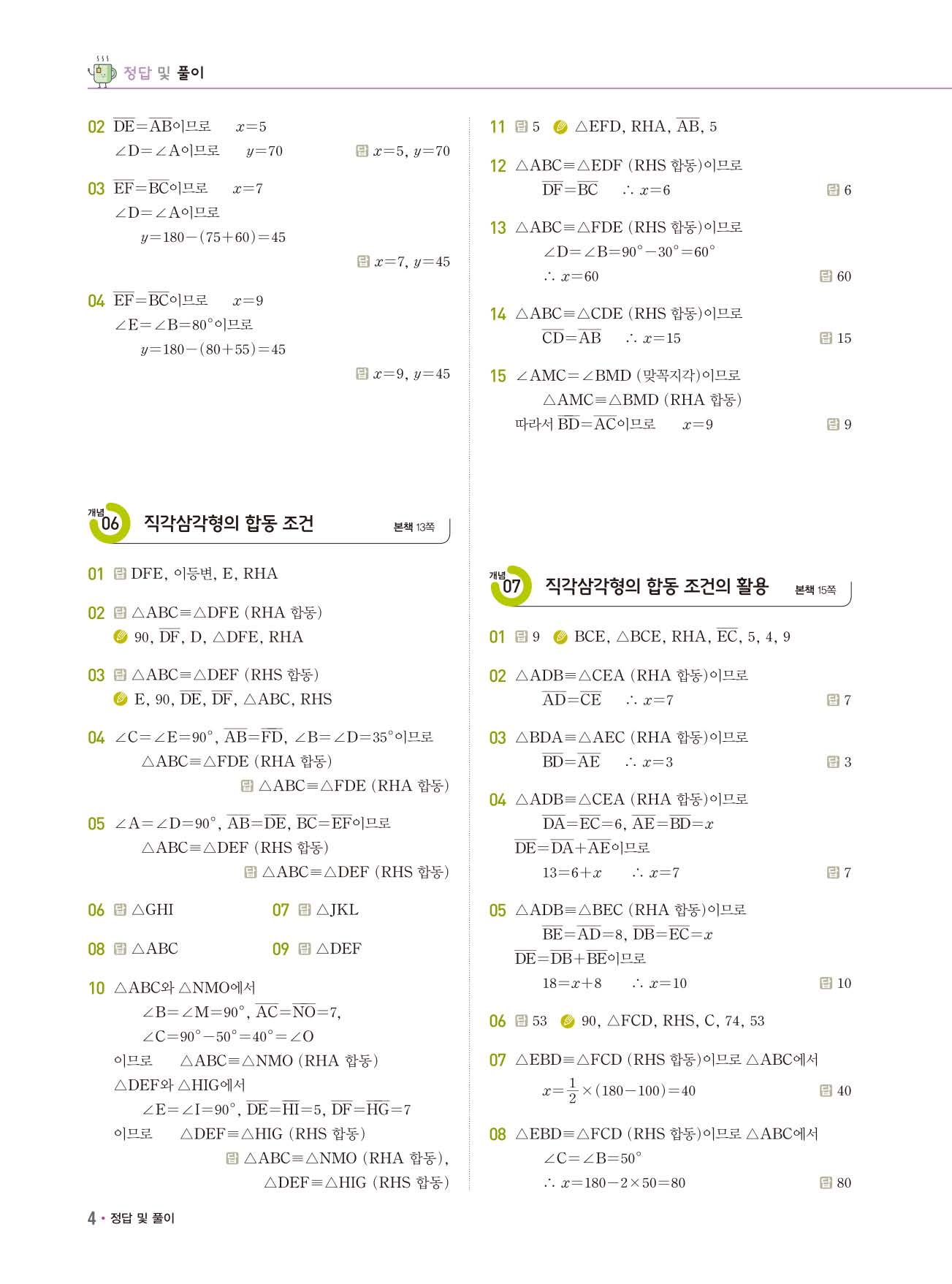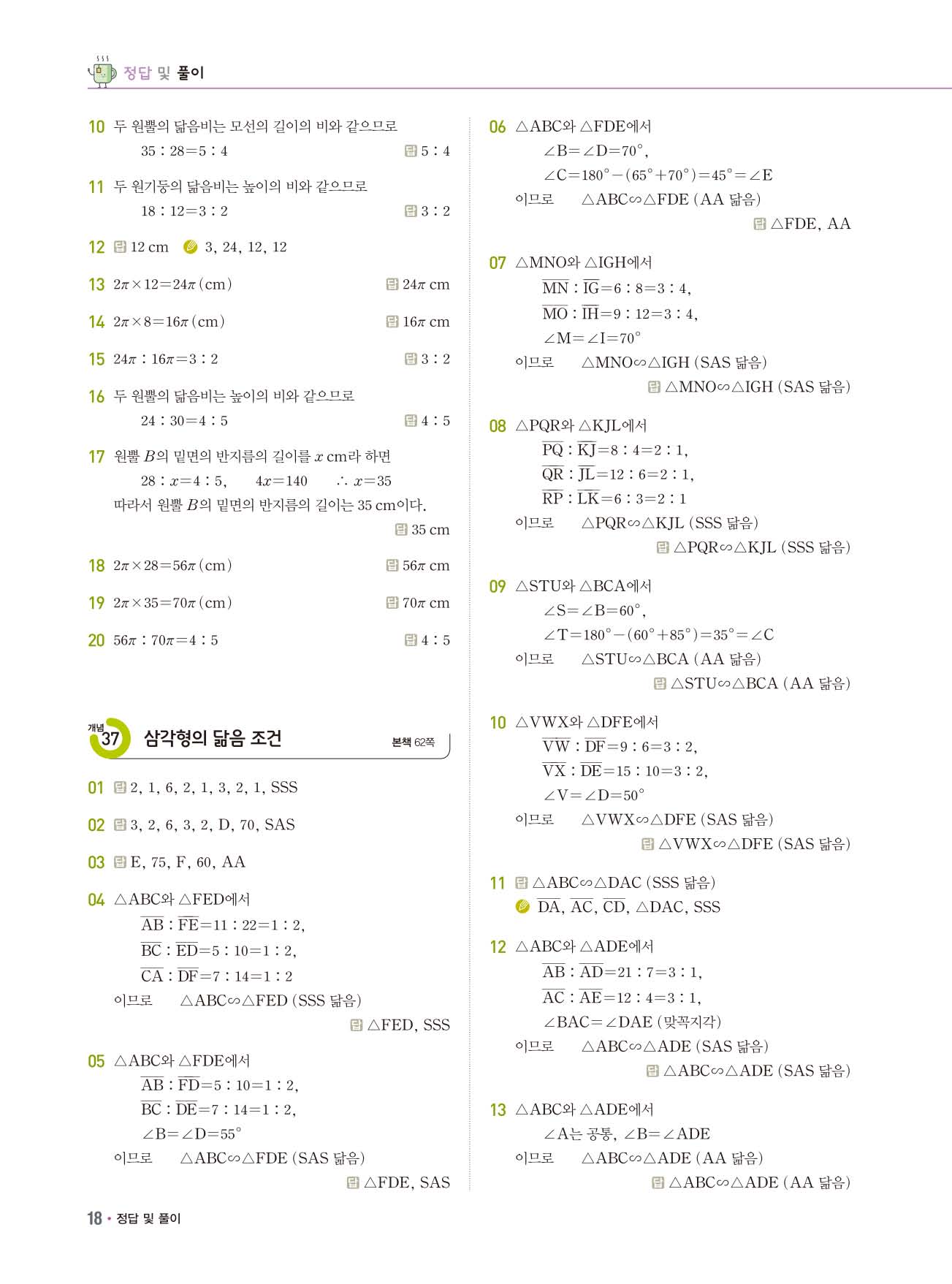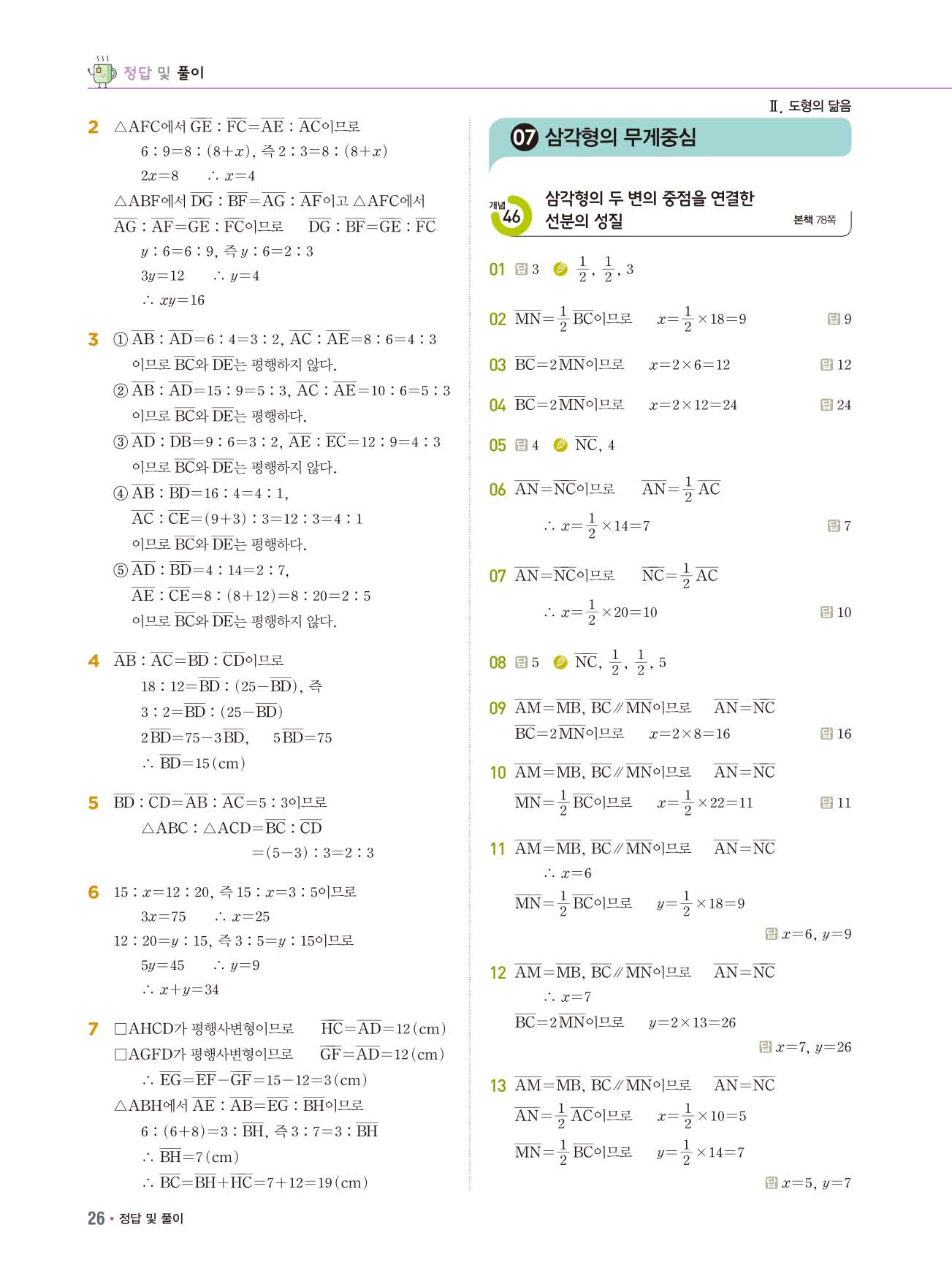 개념쎈 중2하 2-2 답지 해설지 사진답지 빠른답지 모바일최적화