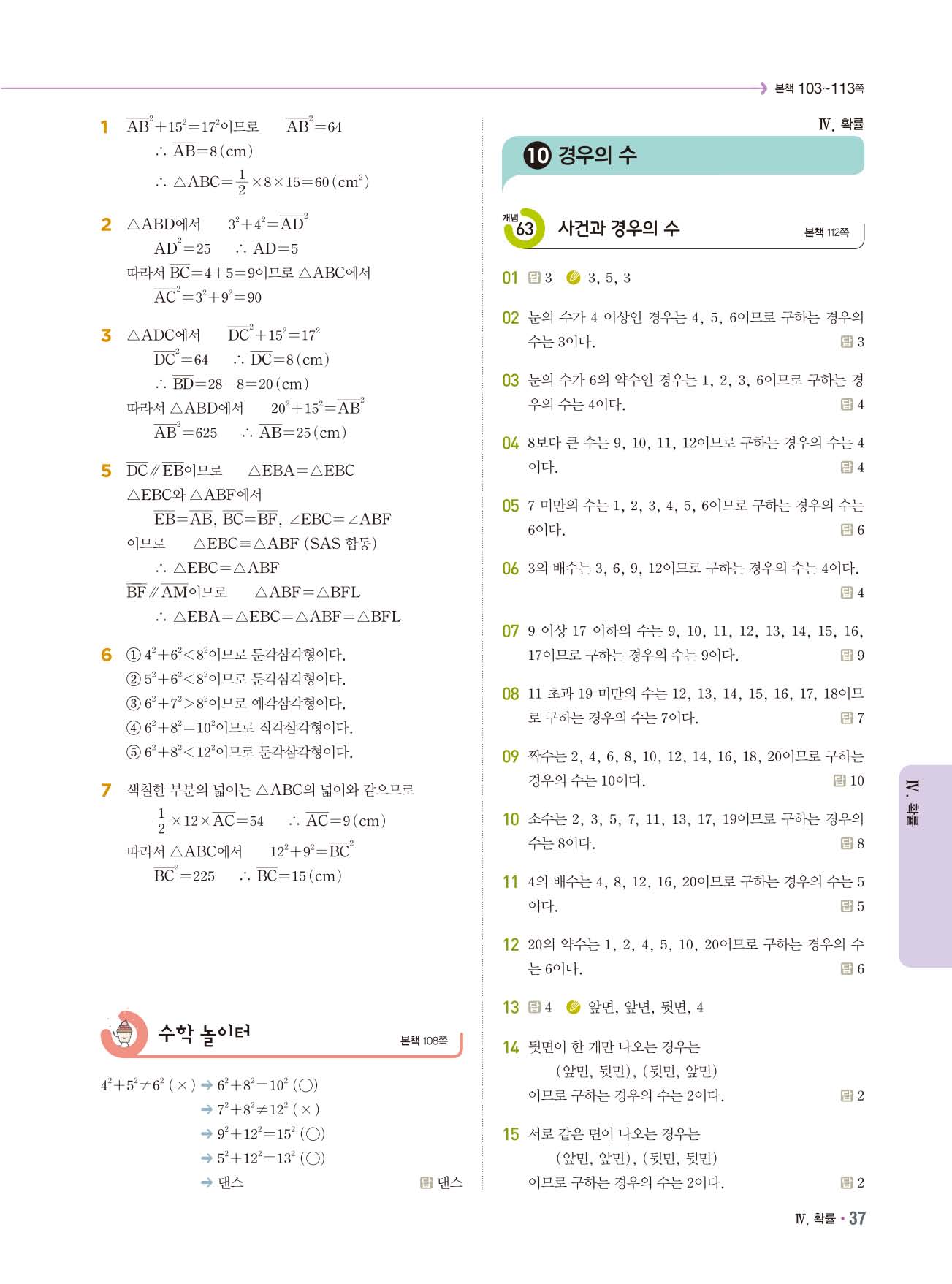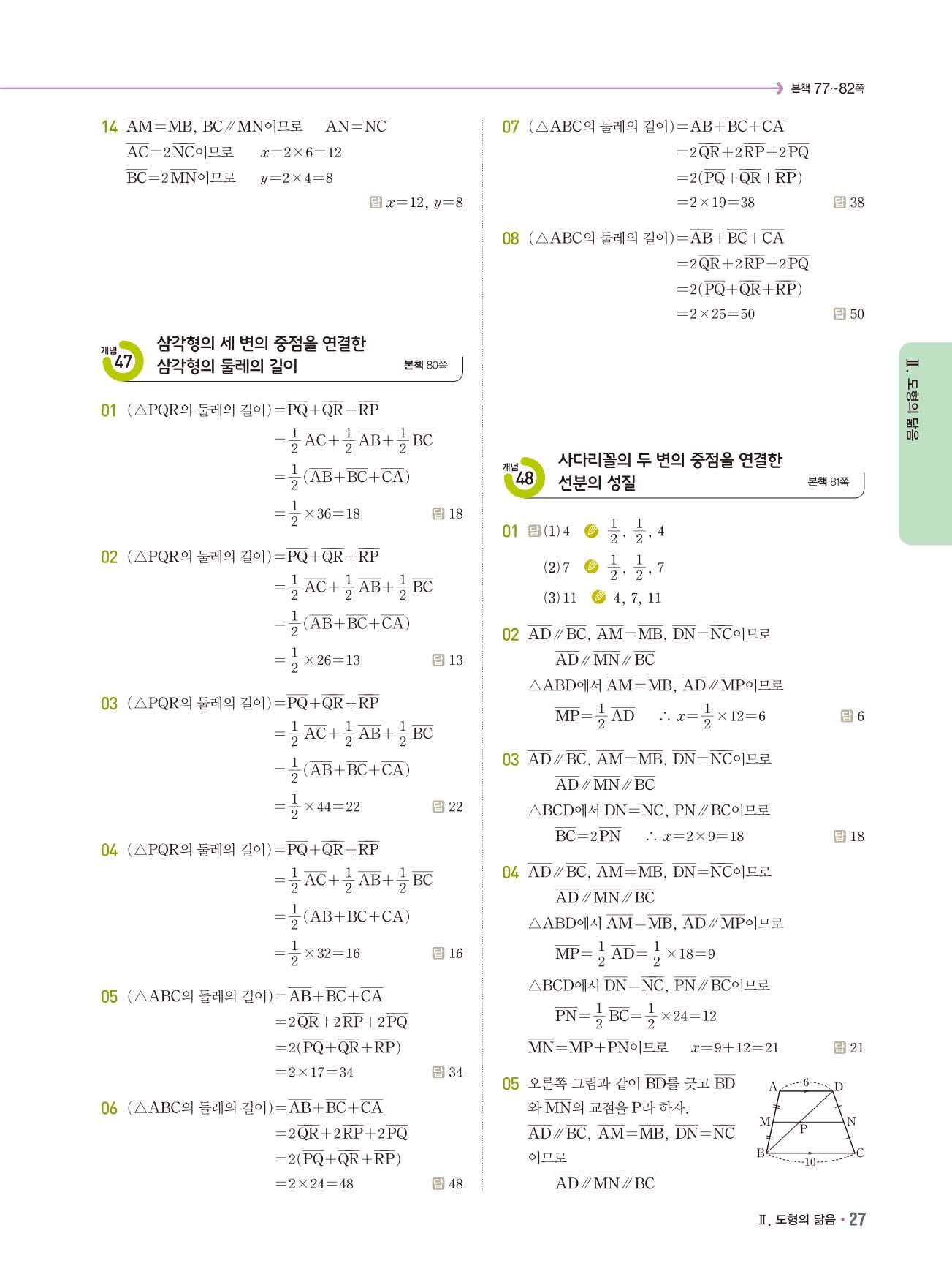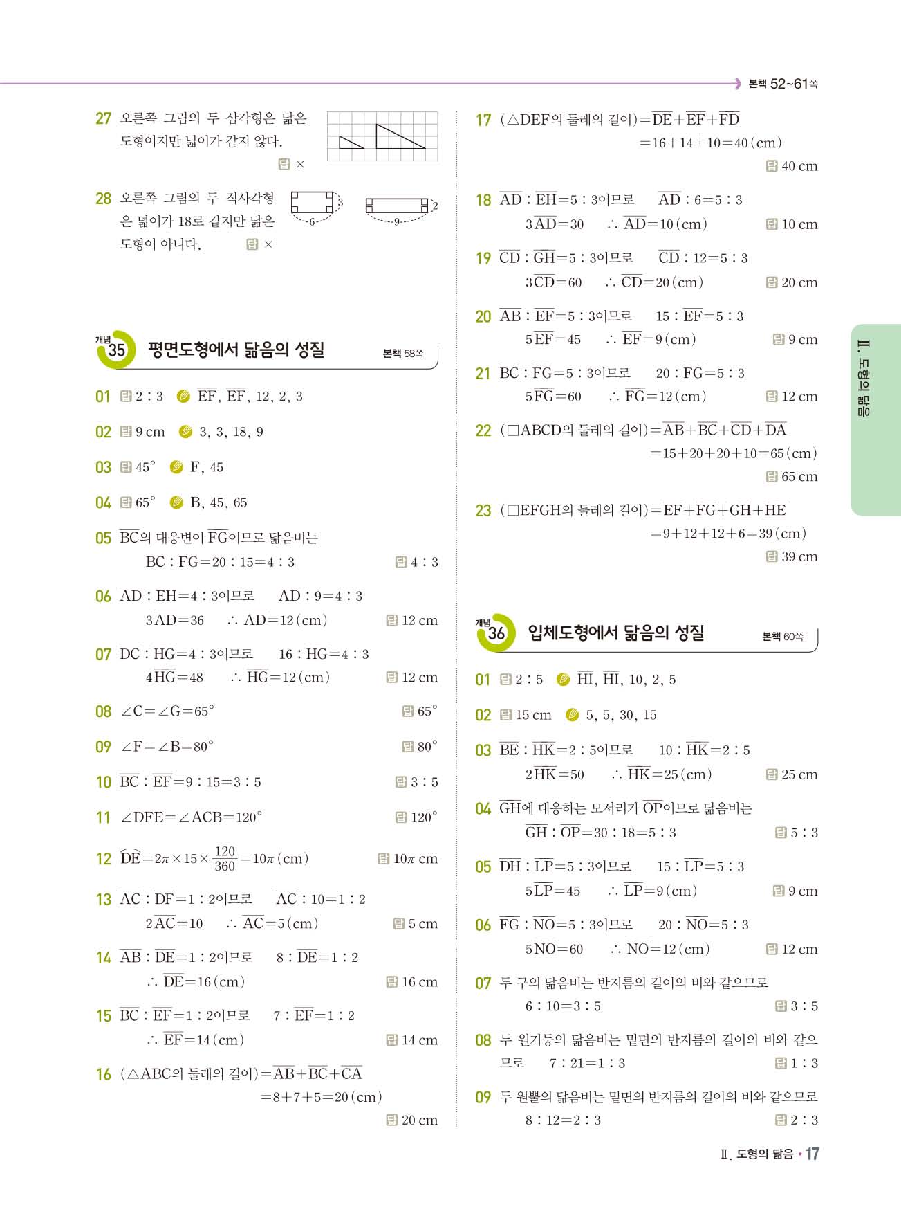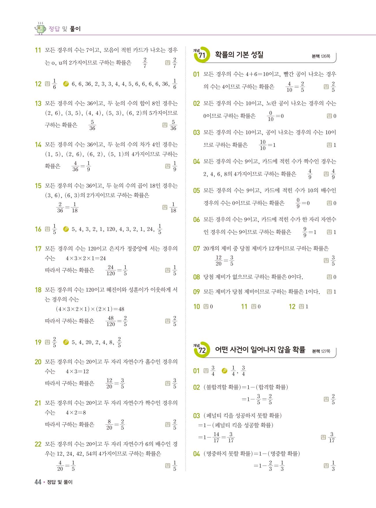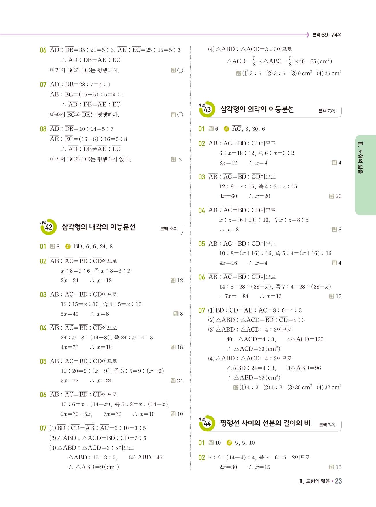 개념쎈 중2하 2-2 답지 해설지 사진답지 빠른답지 모바일최적화