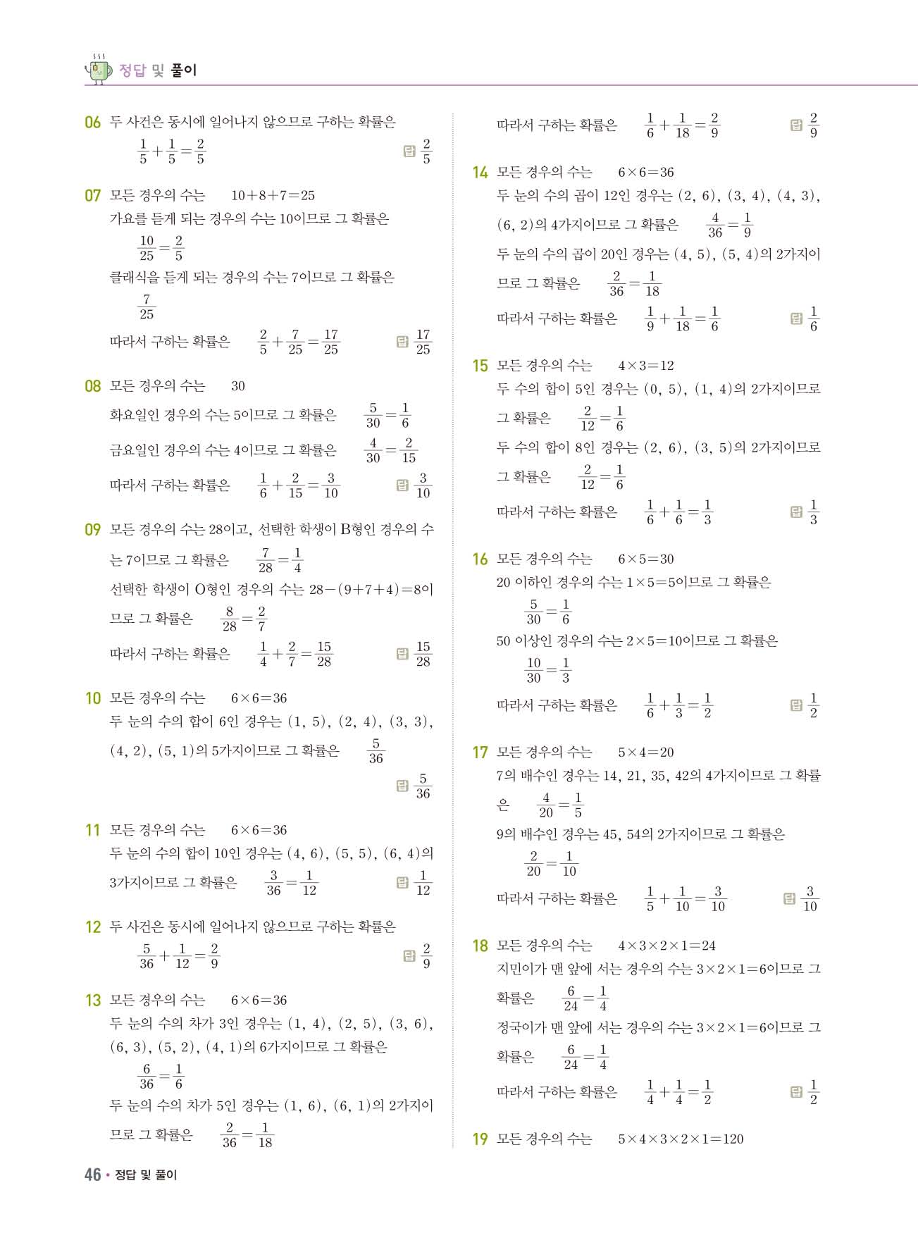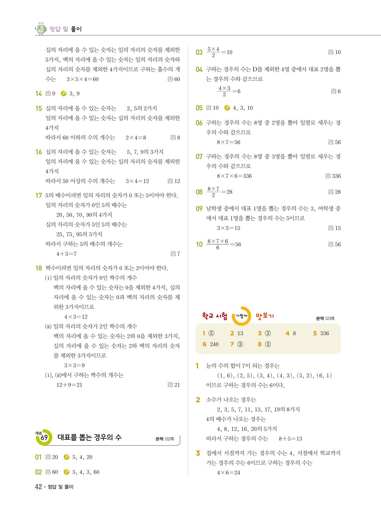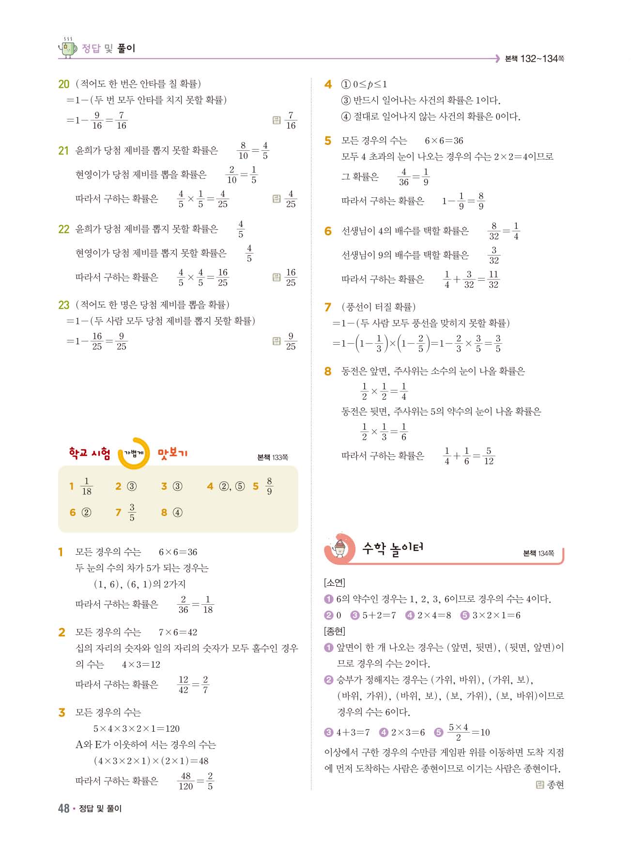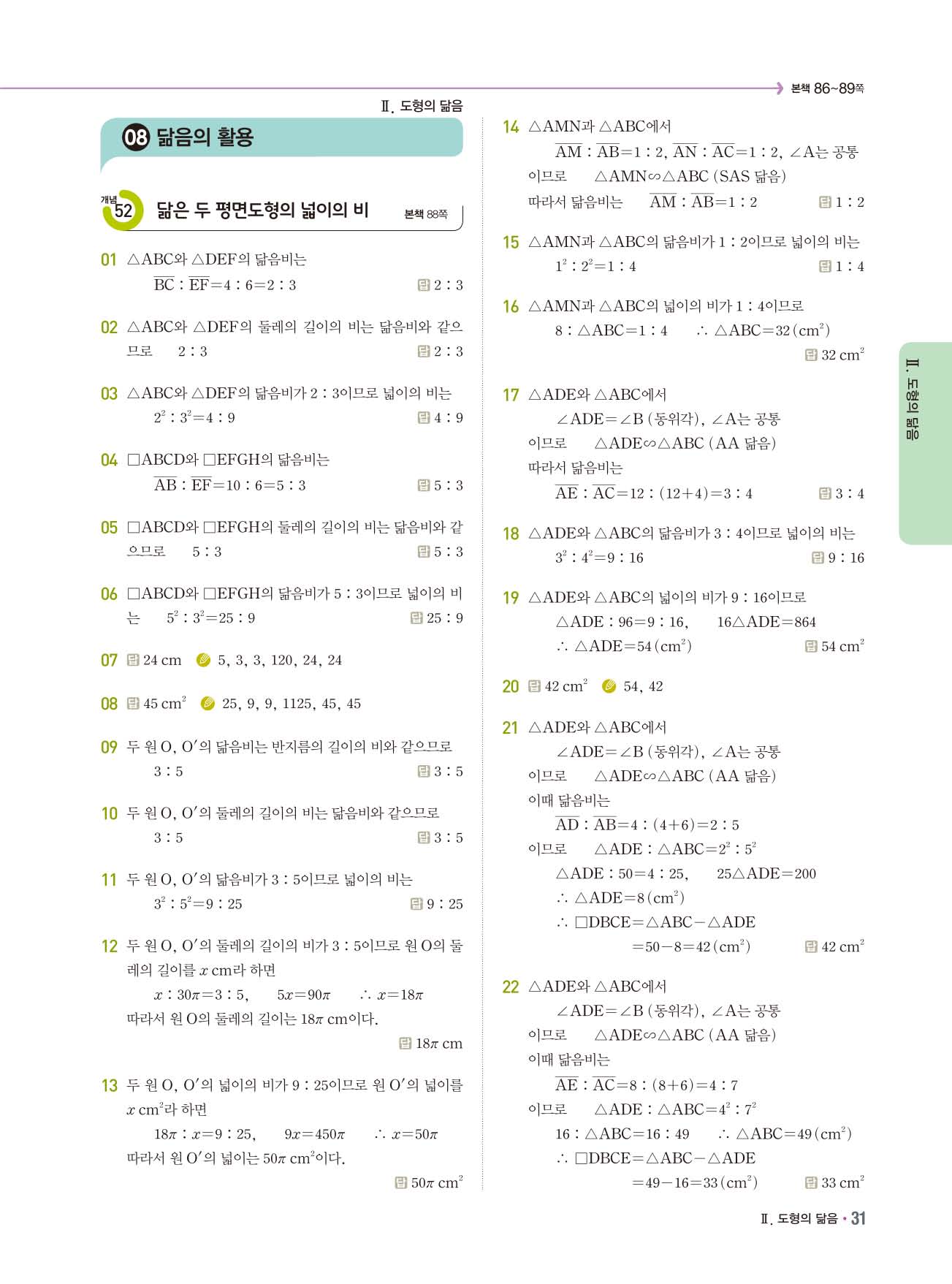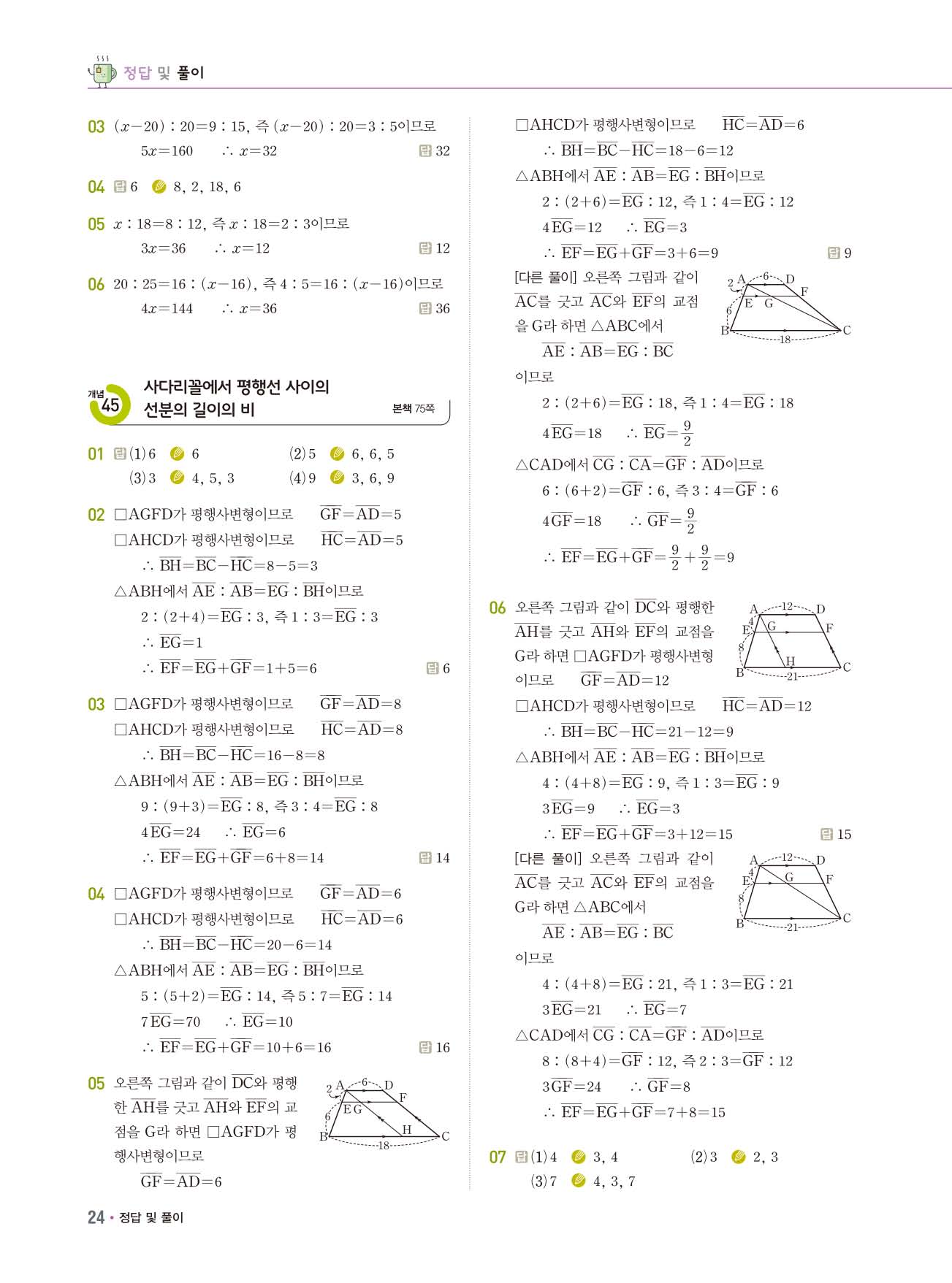 개념쎈 중2하 2-2 답지 해설지 사진답지 빠른답지 모바일최적화