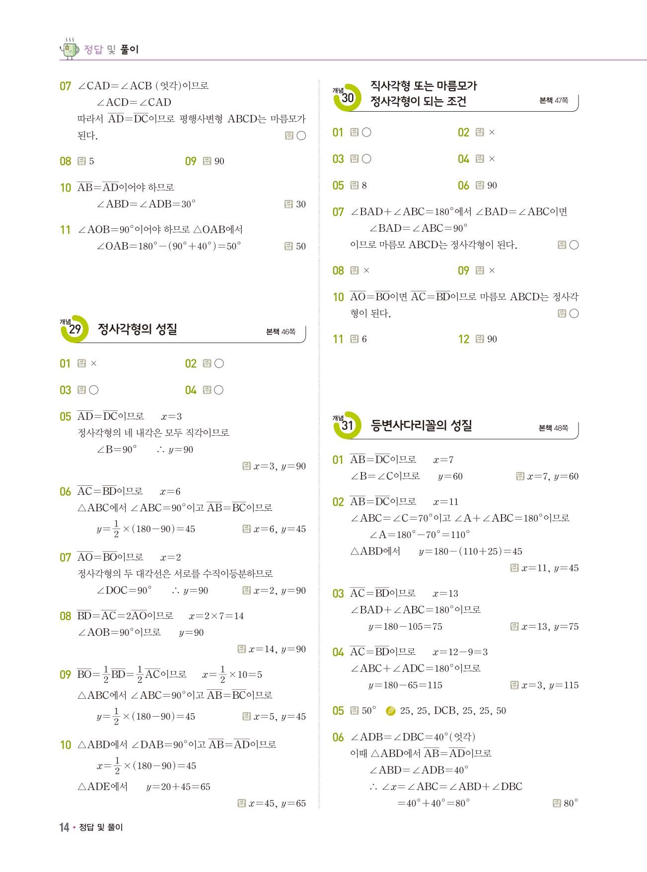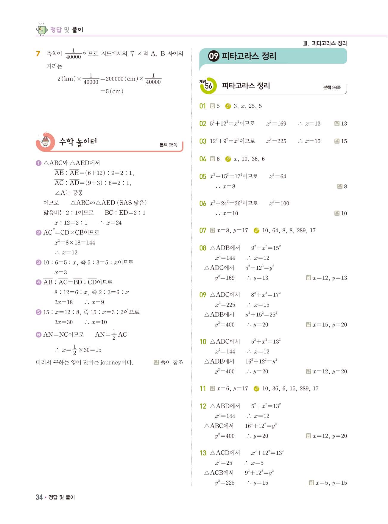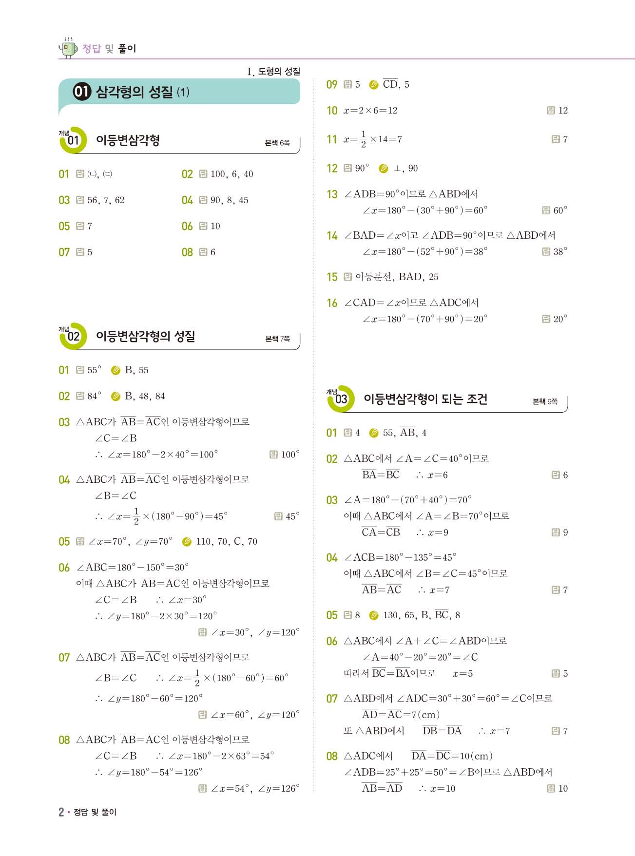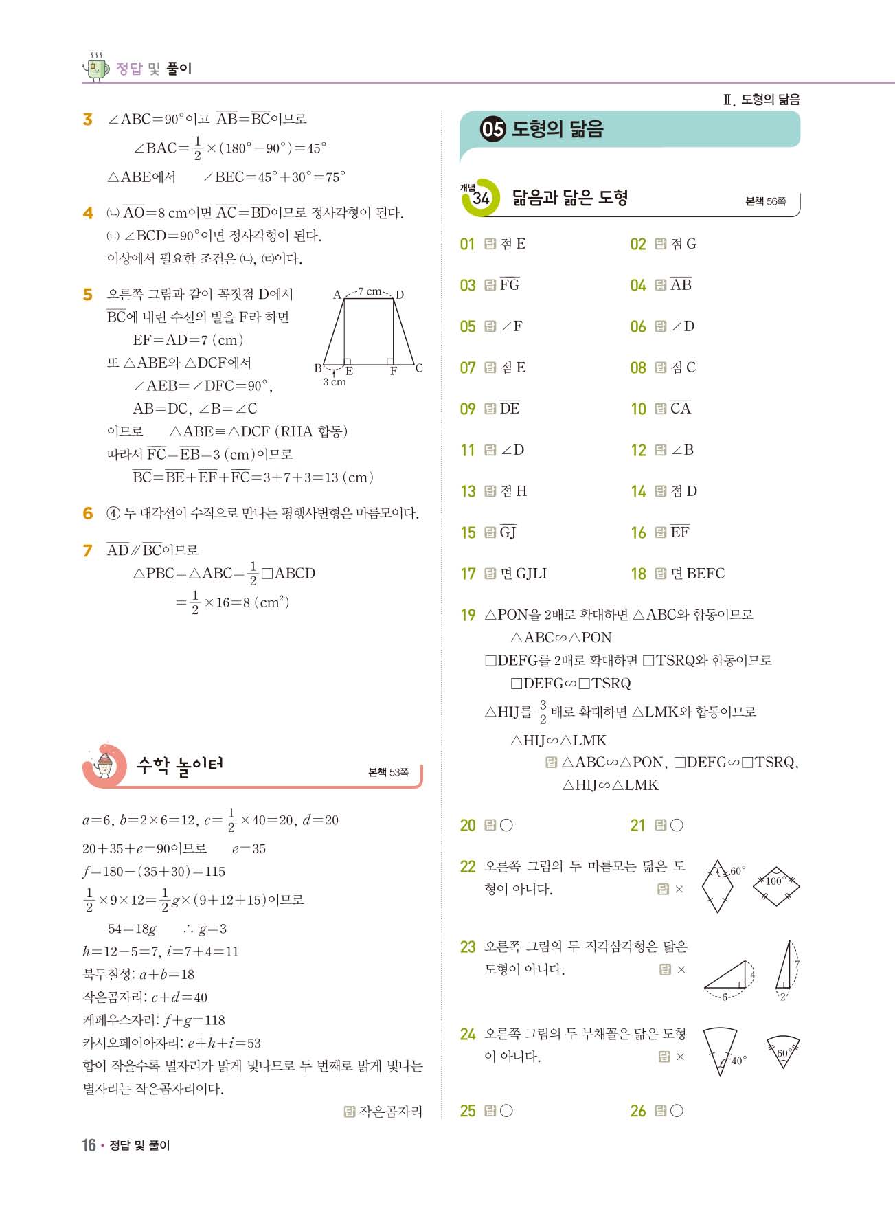 | 천재교육 이준열 중2 수학교과서 답지 | |