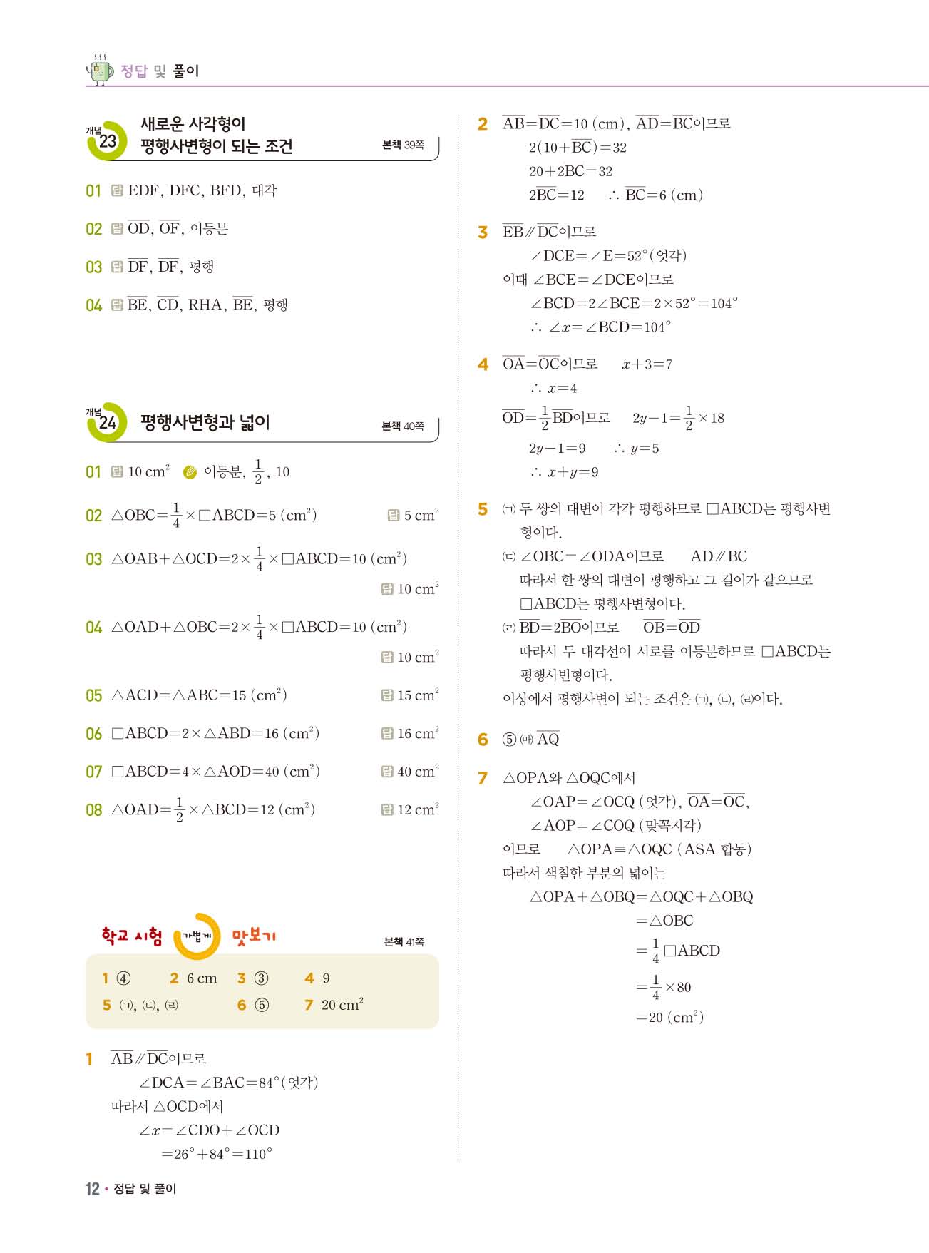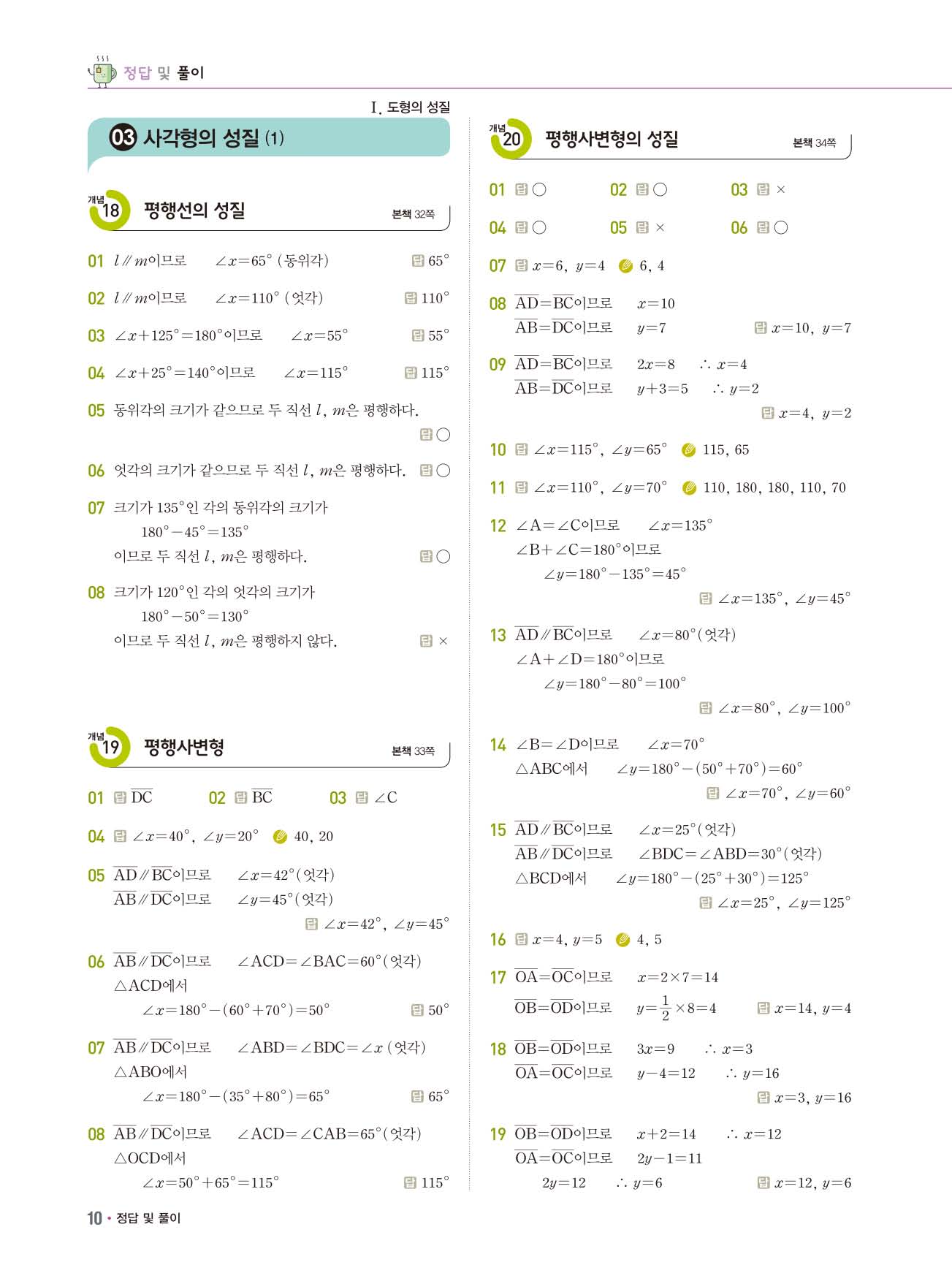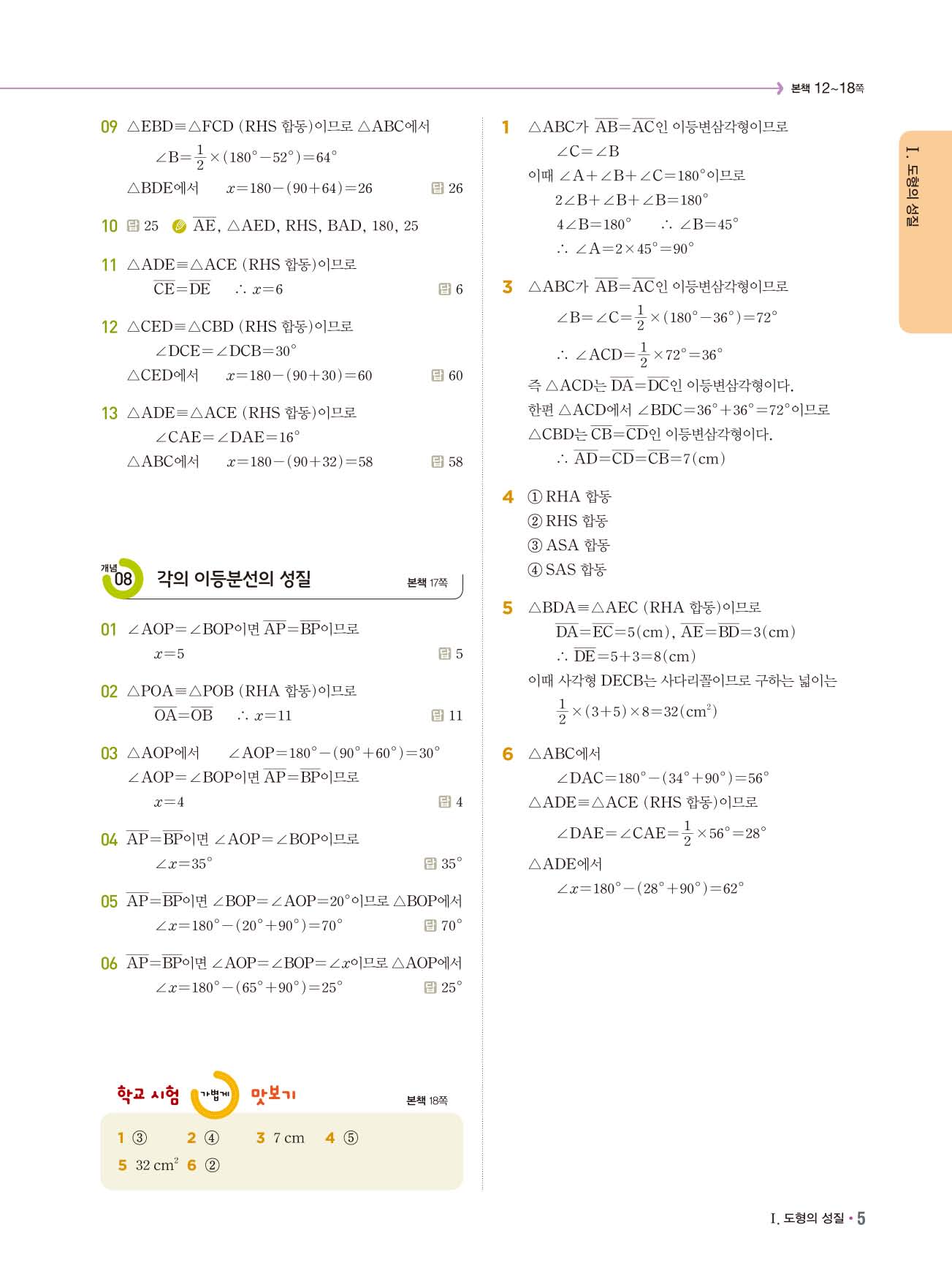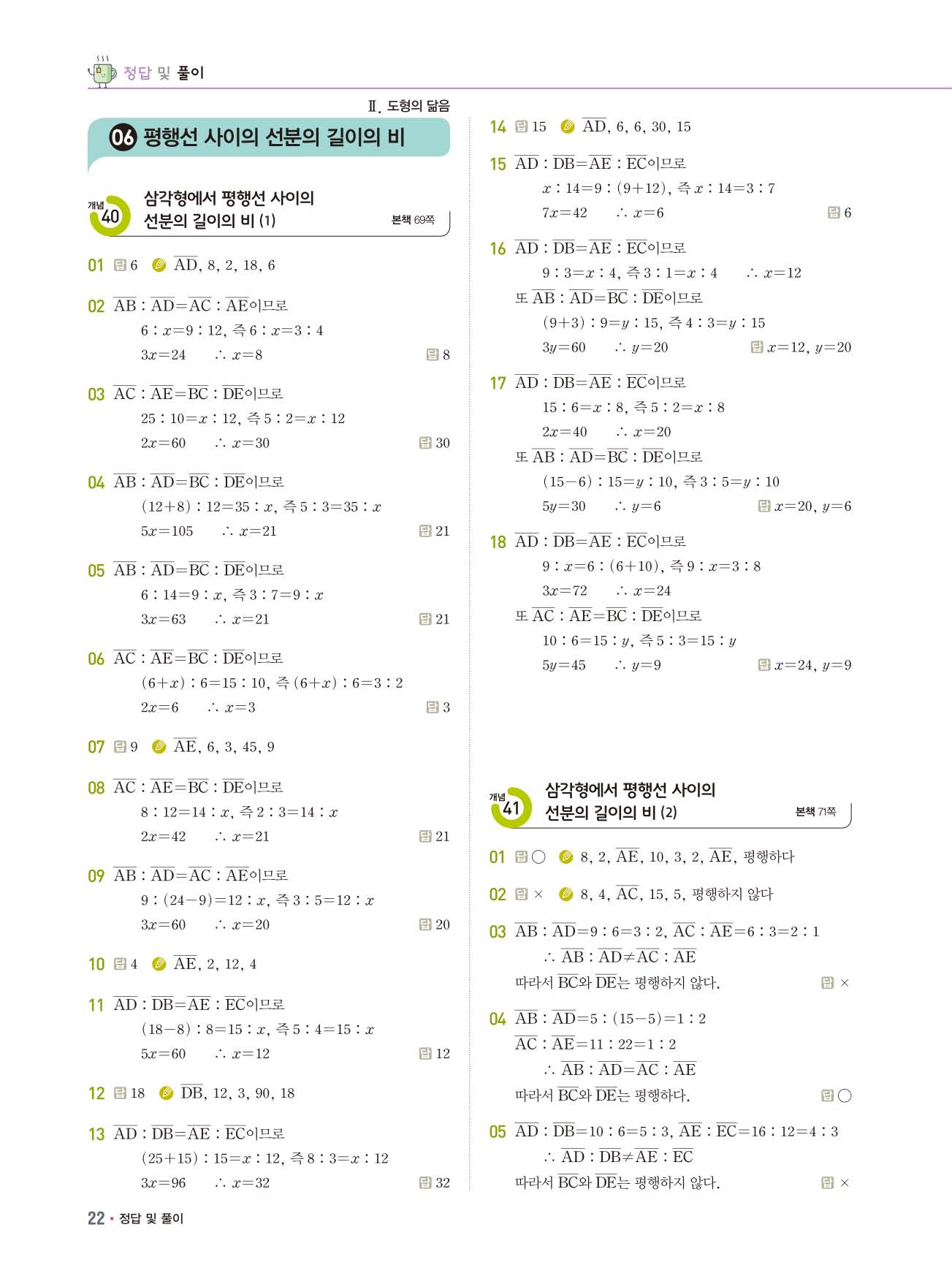 | 천재교육 이준열 중2 수학교과서 답지 | |