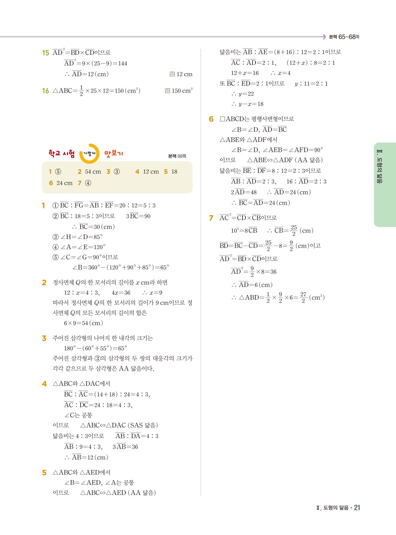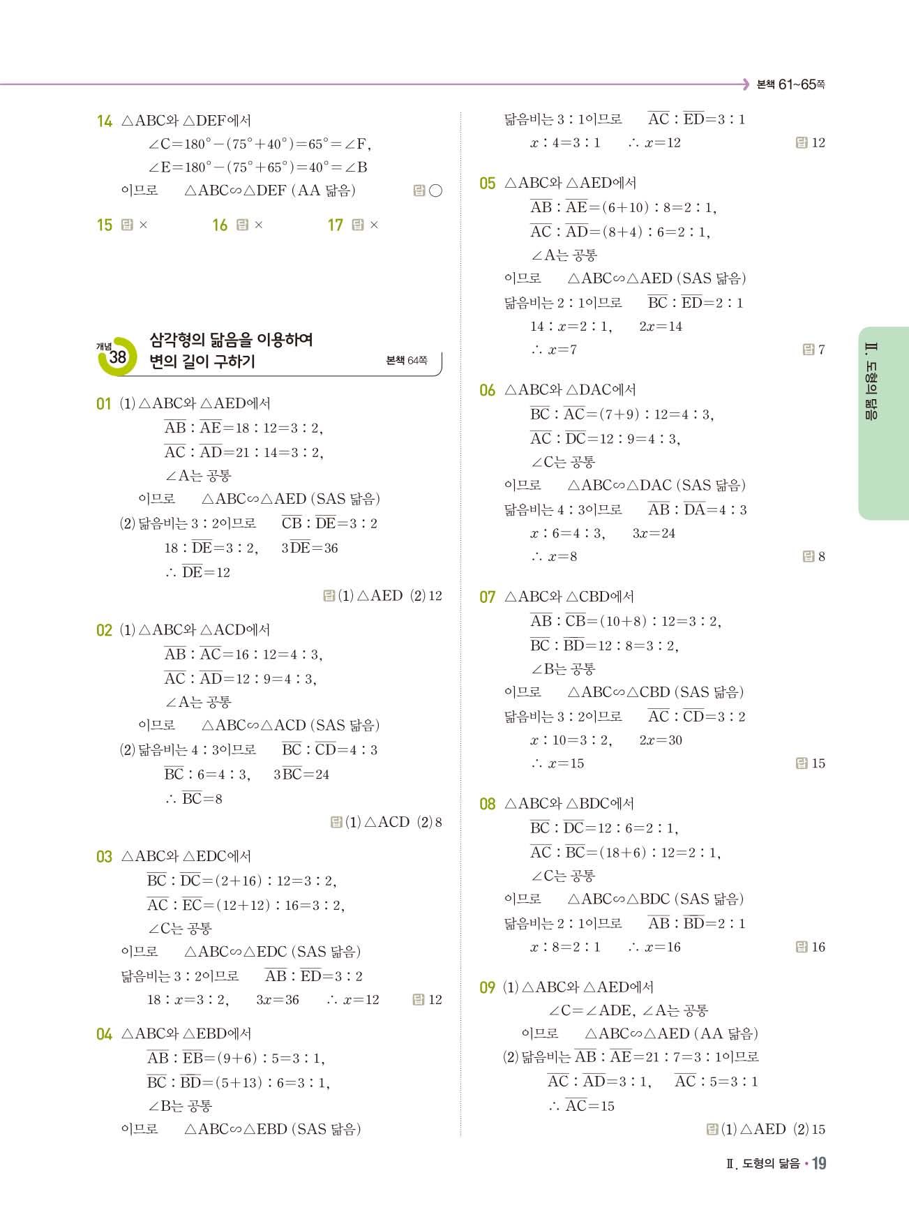 | 교학사 고호경 중2 수학교과서 답지 | |