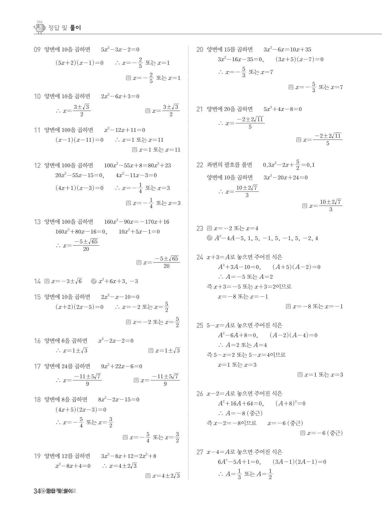 수학문제집 답지