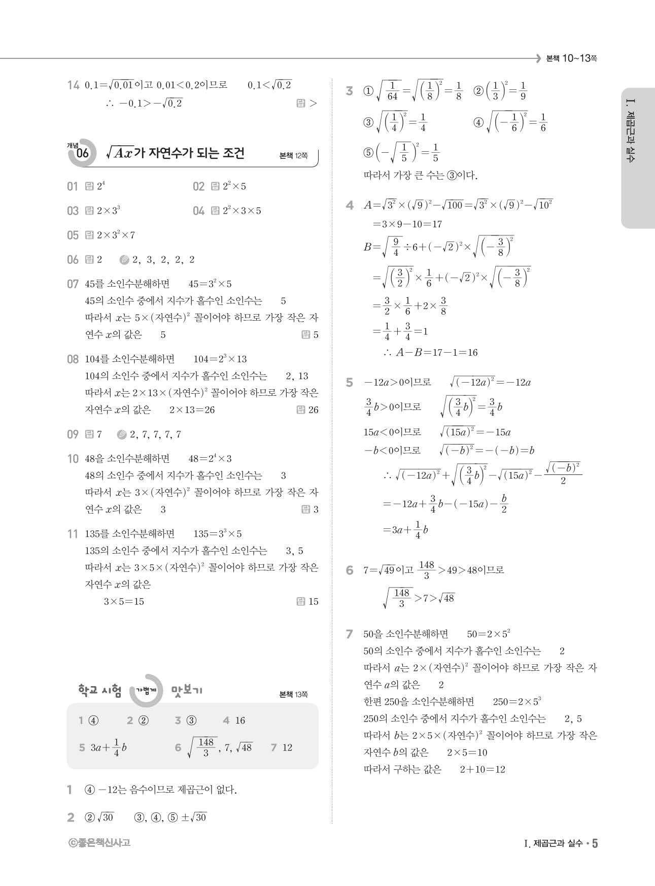 개념쎈 중3상 3-1 답지 해설지 사진답지 빠른답지 모바일최적화