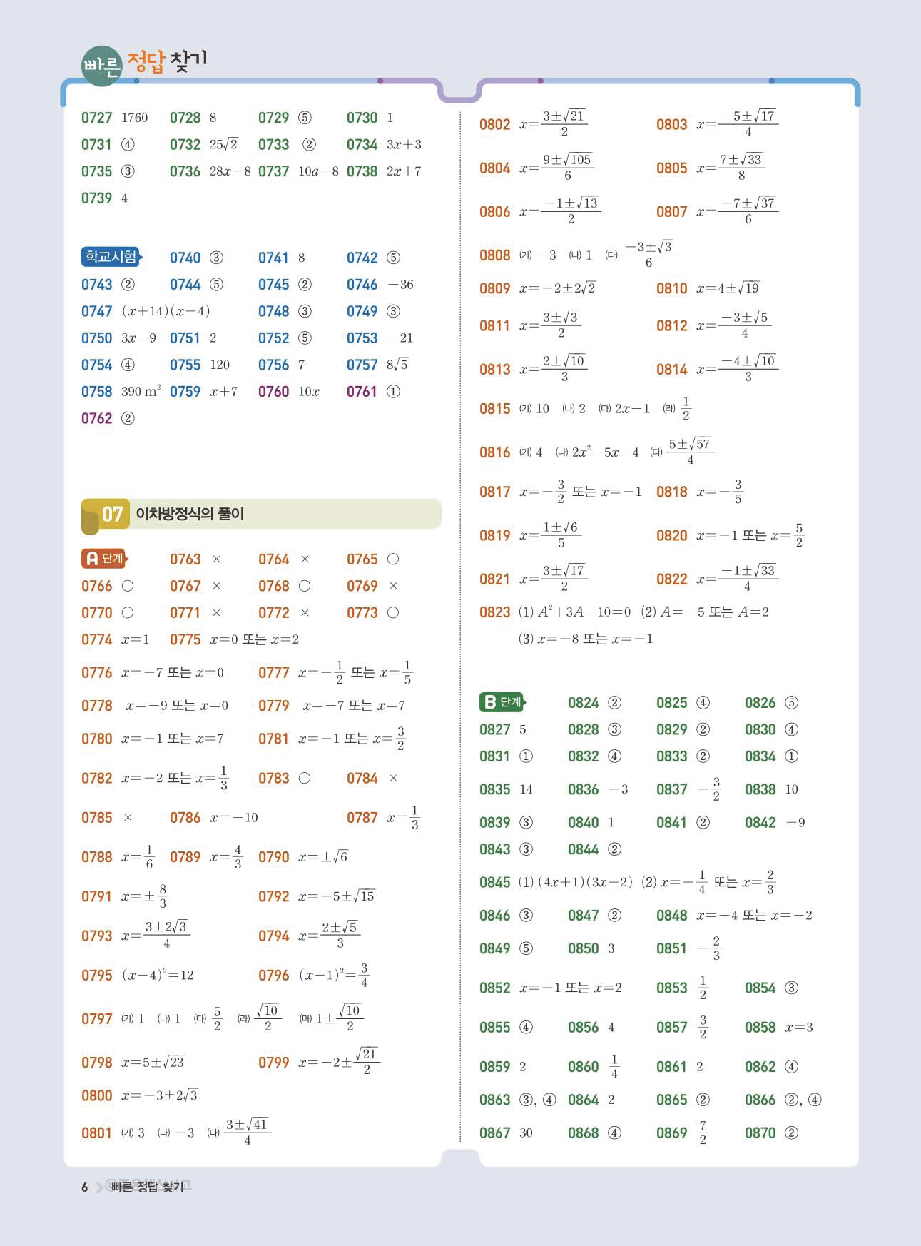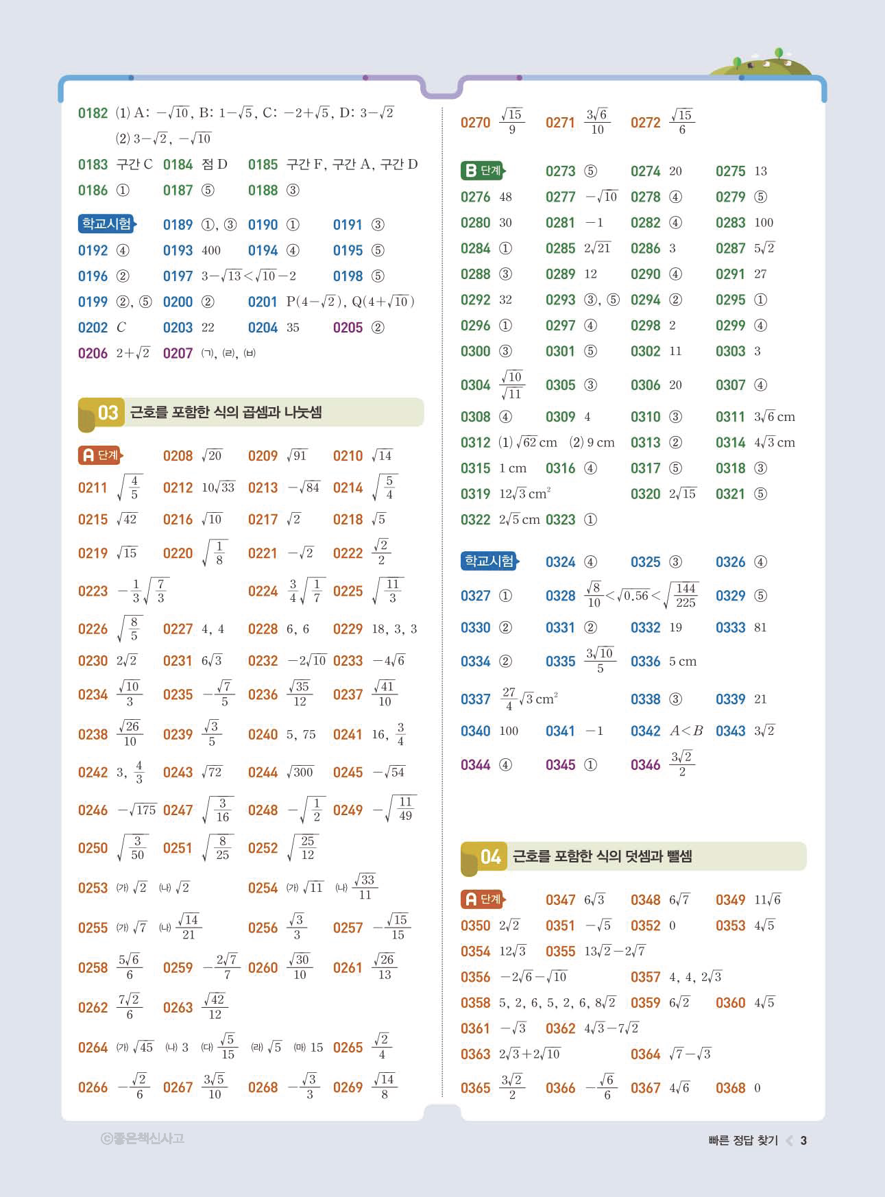 | 교학사 고호경 중3 수학교과서 답지 | |
