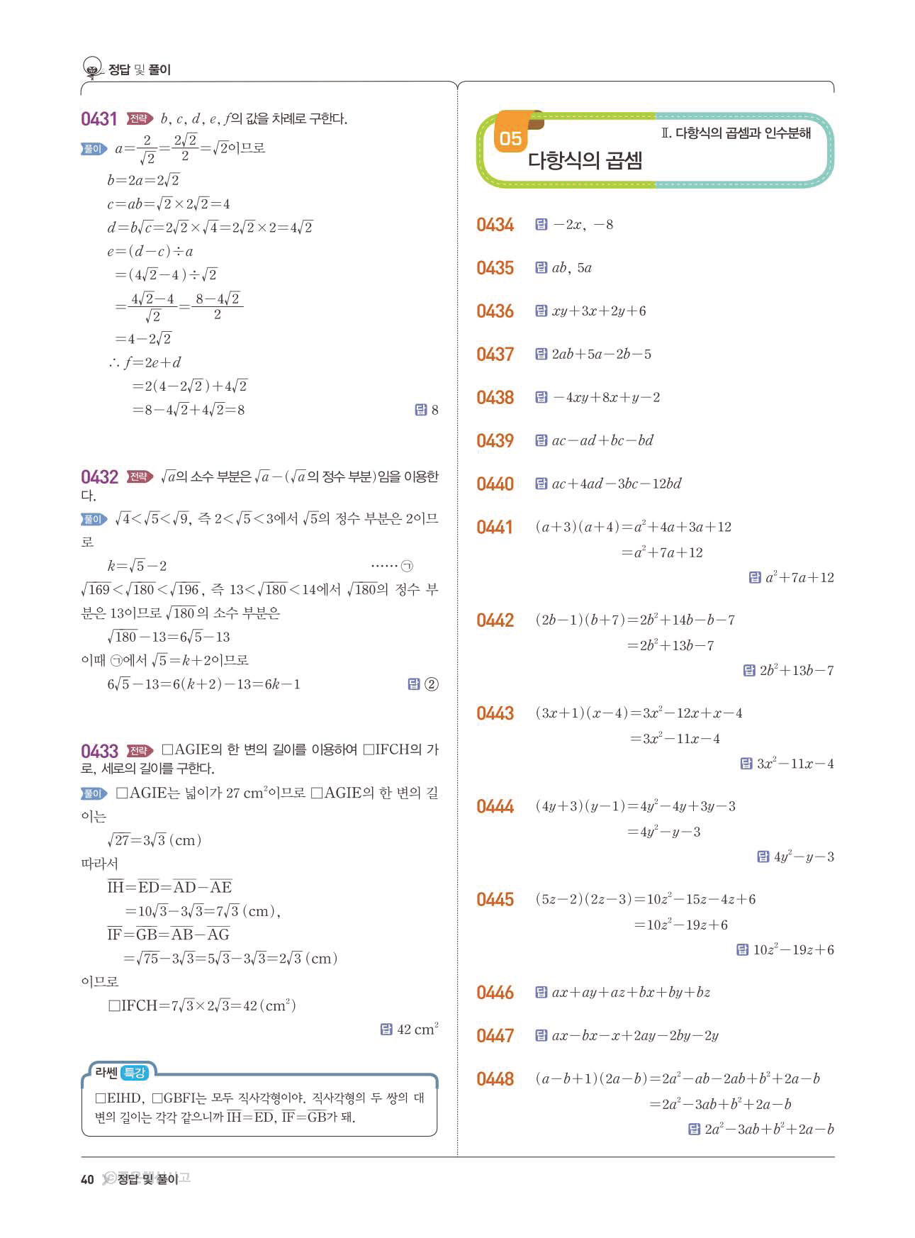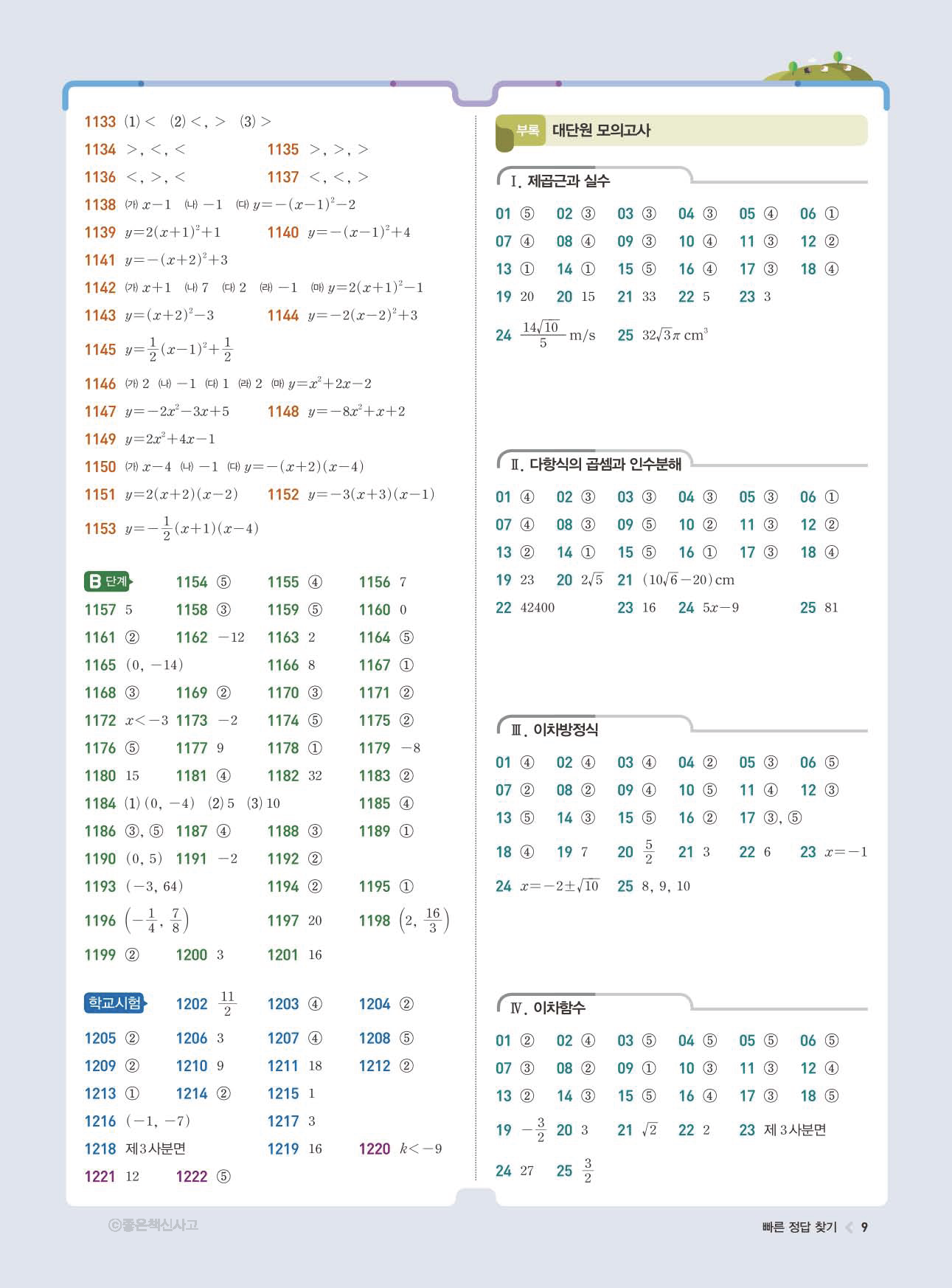 | 천재교육 이준열 중3 수학교과서 답지 | |