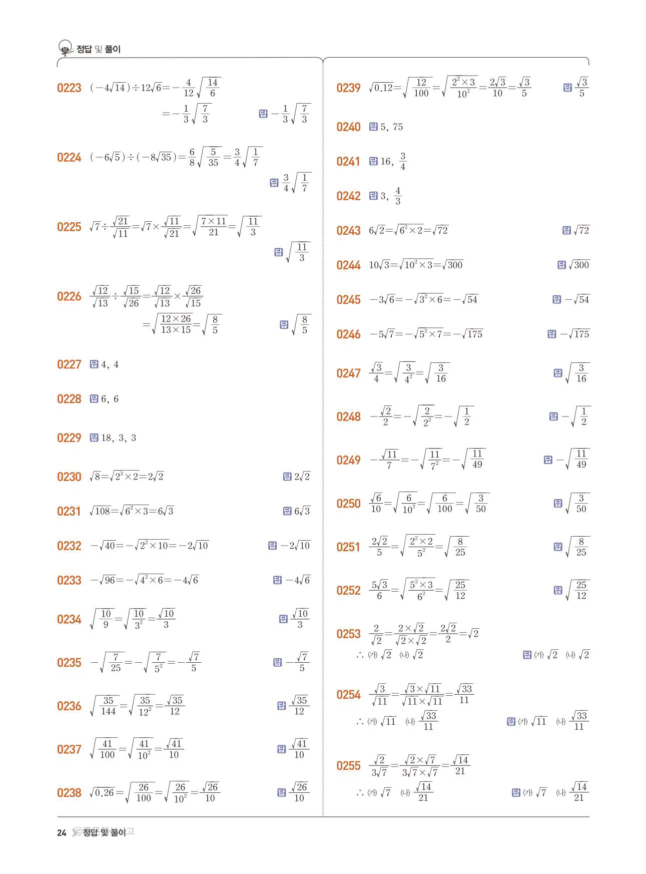 수학교과서 답지