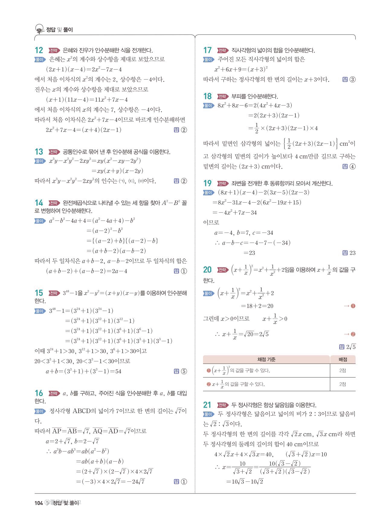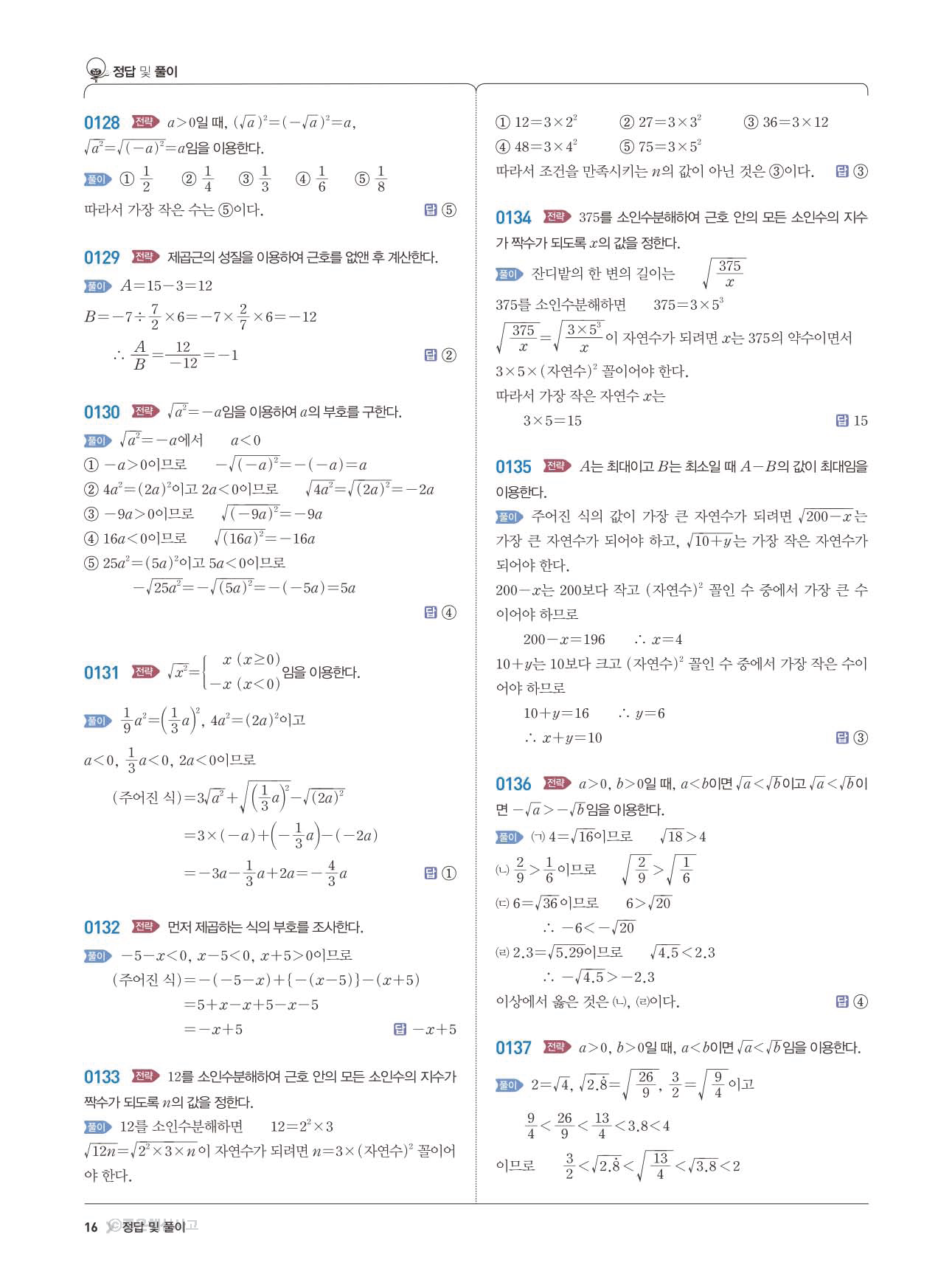 수학문제집 답지