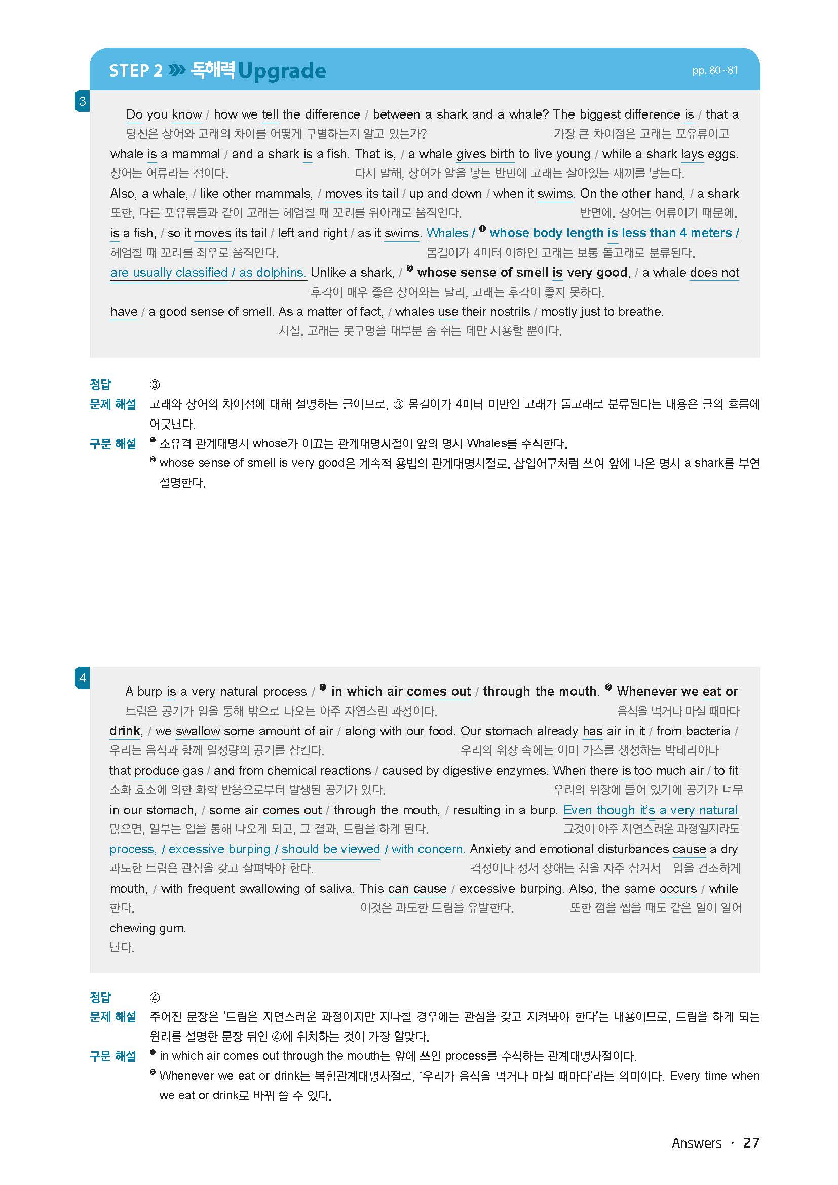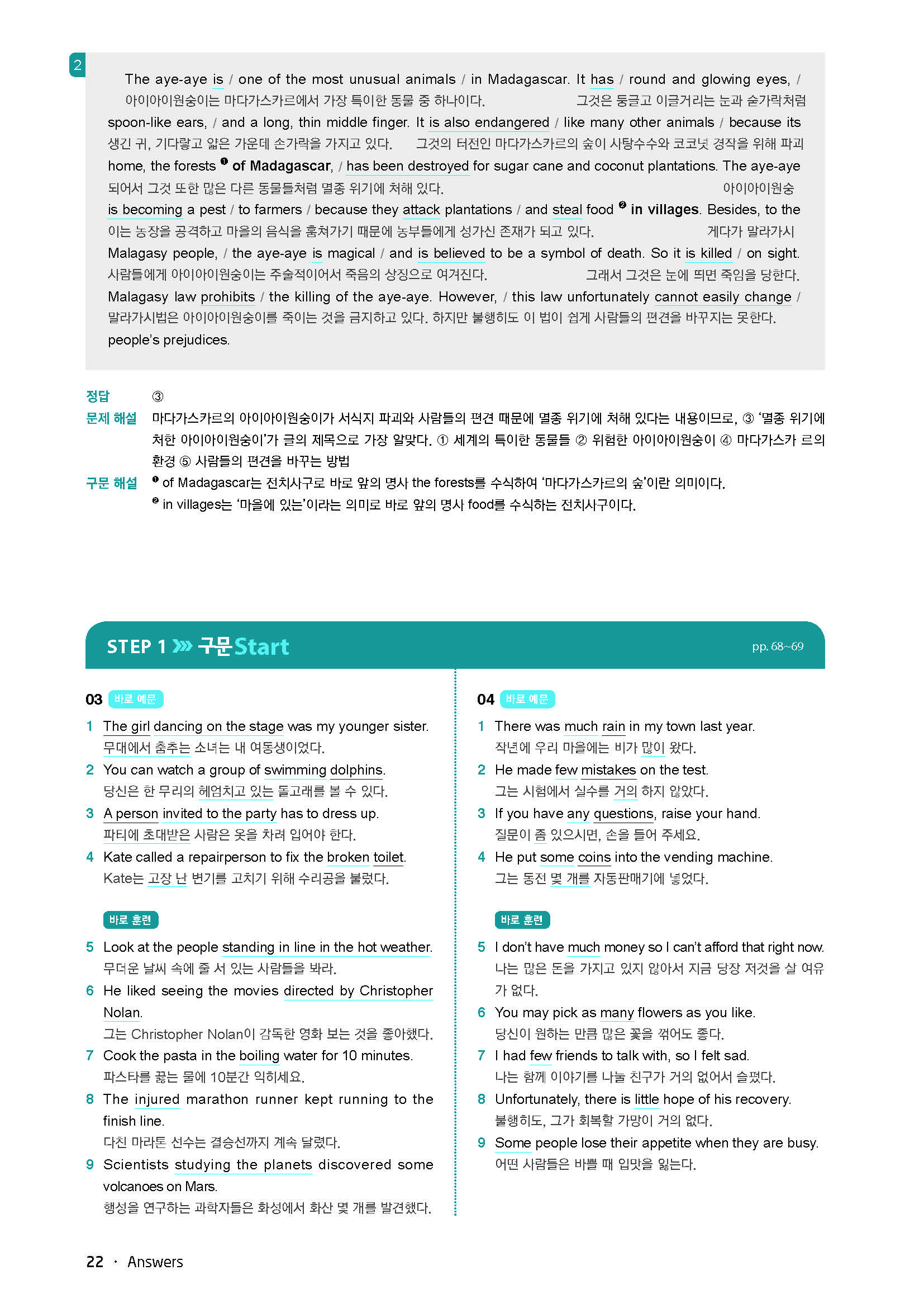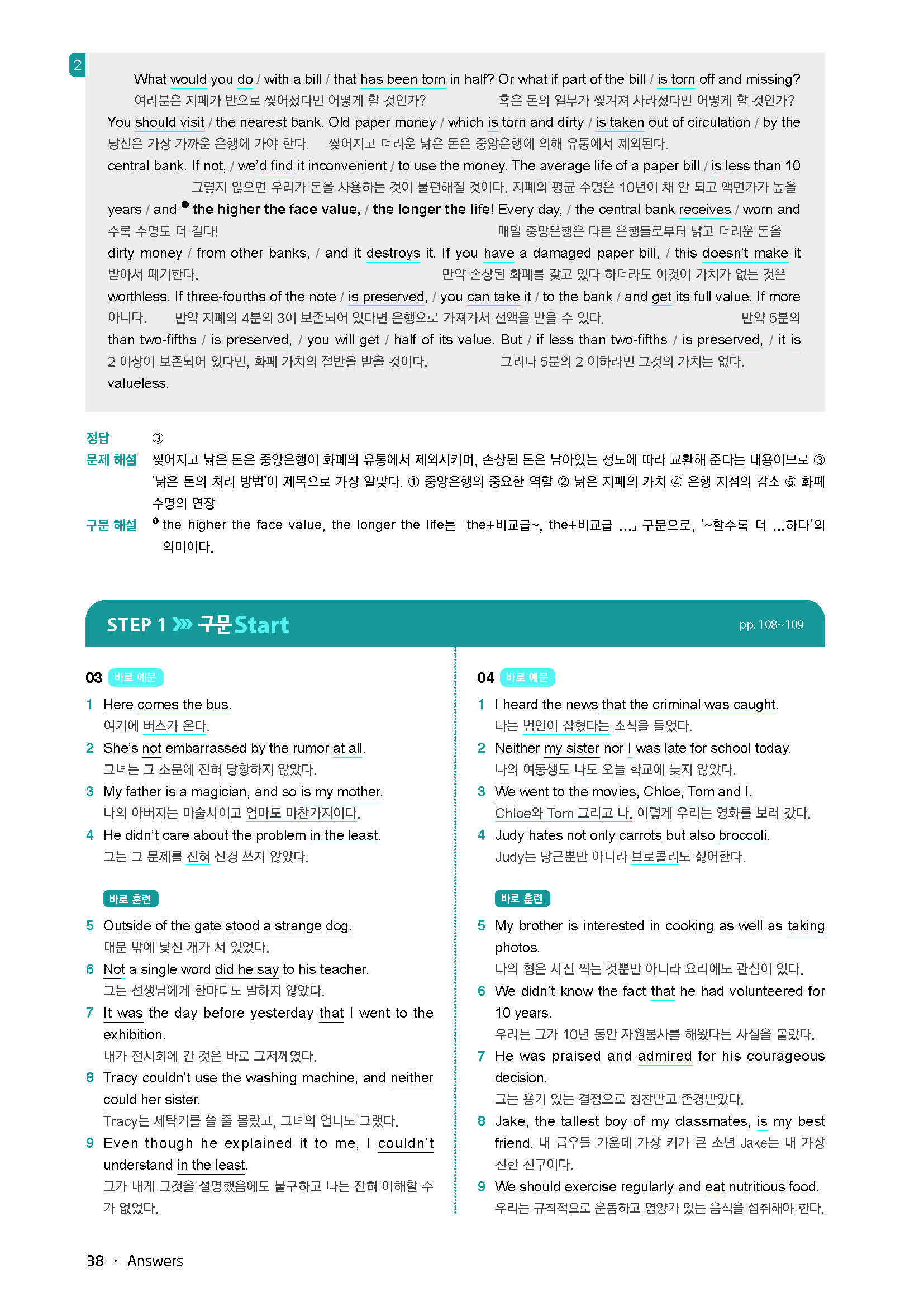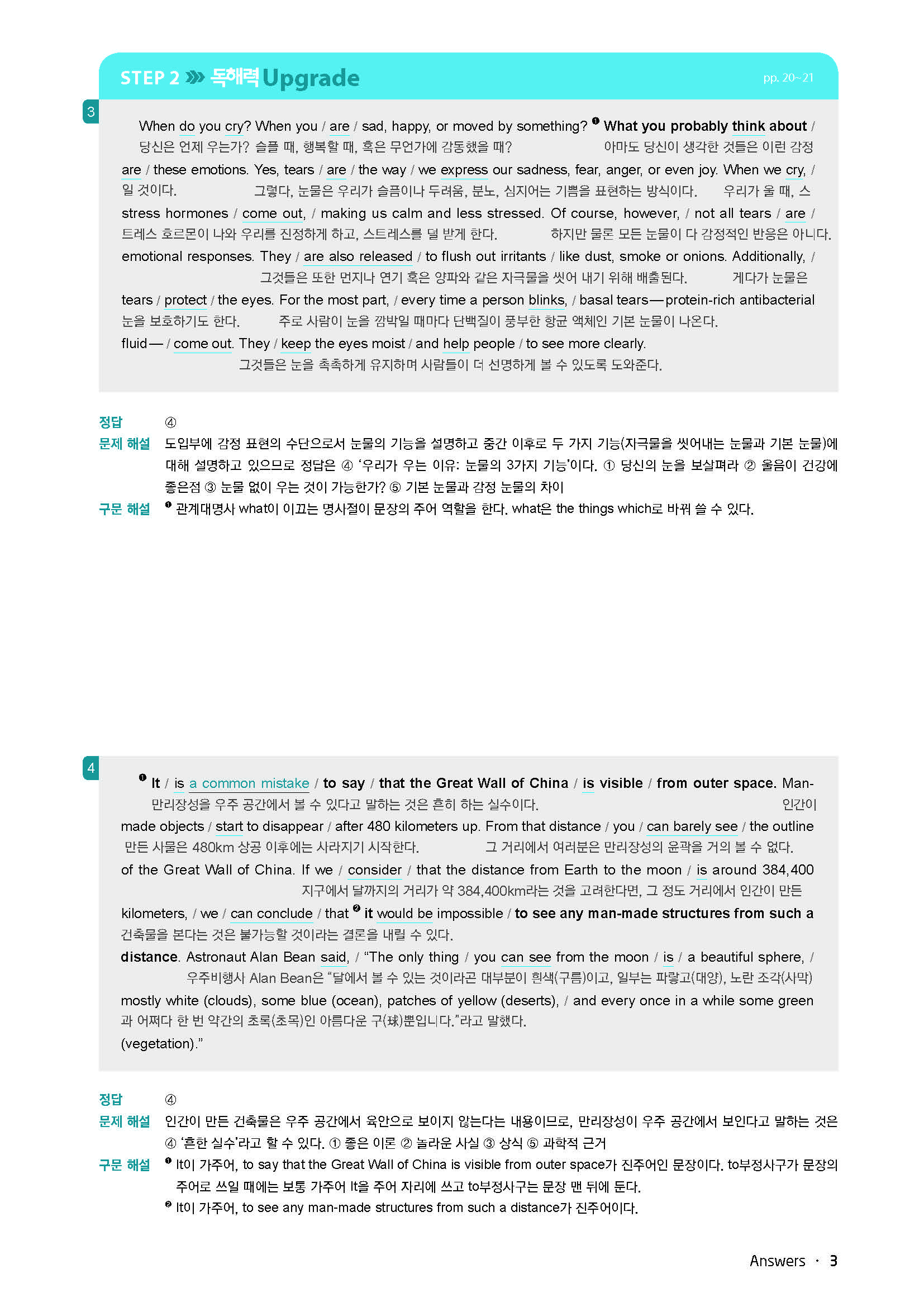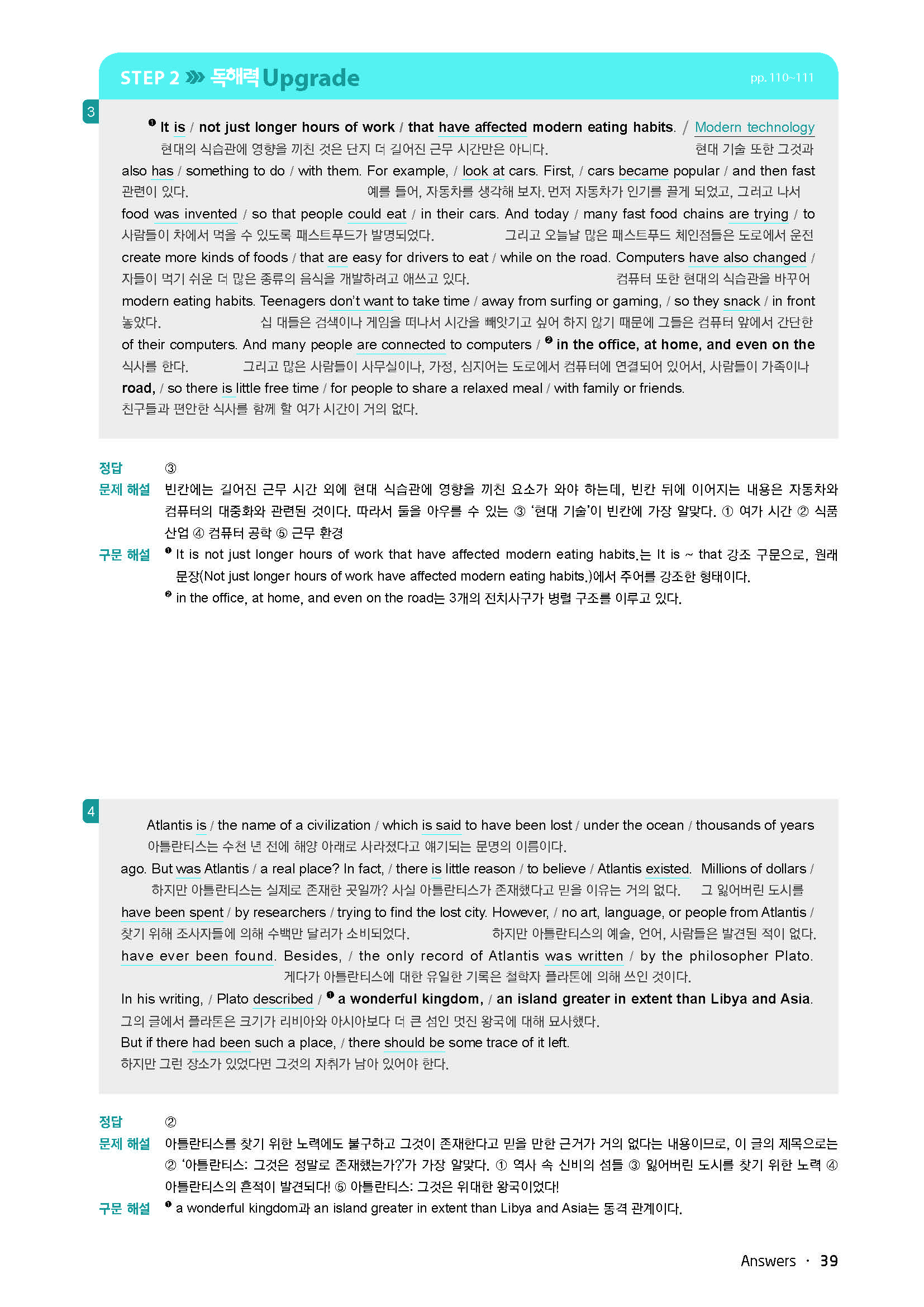 바로읽는구문독해 LEVEL3 답지 사진답지 빠른답지 모바일최적화