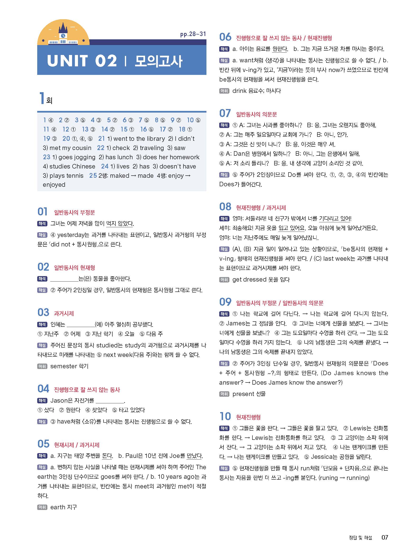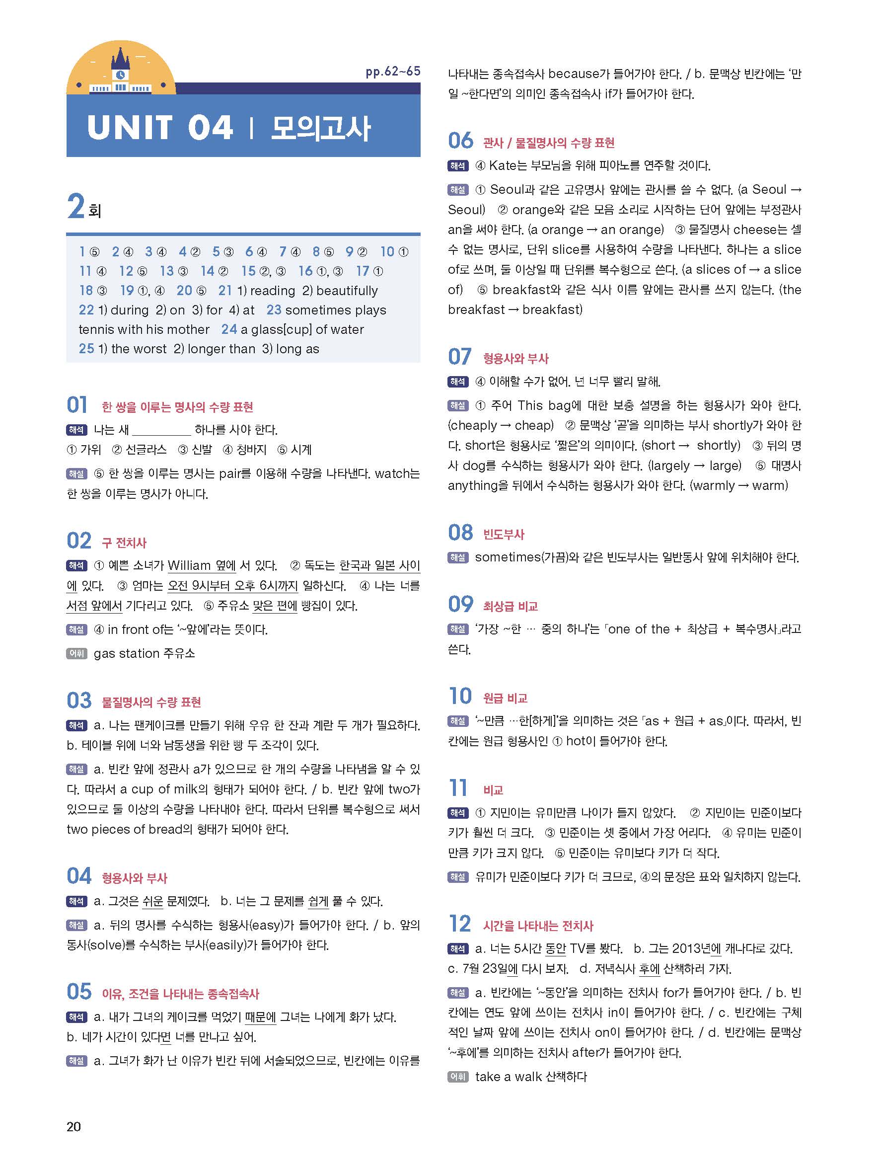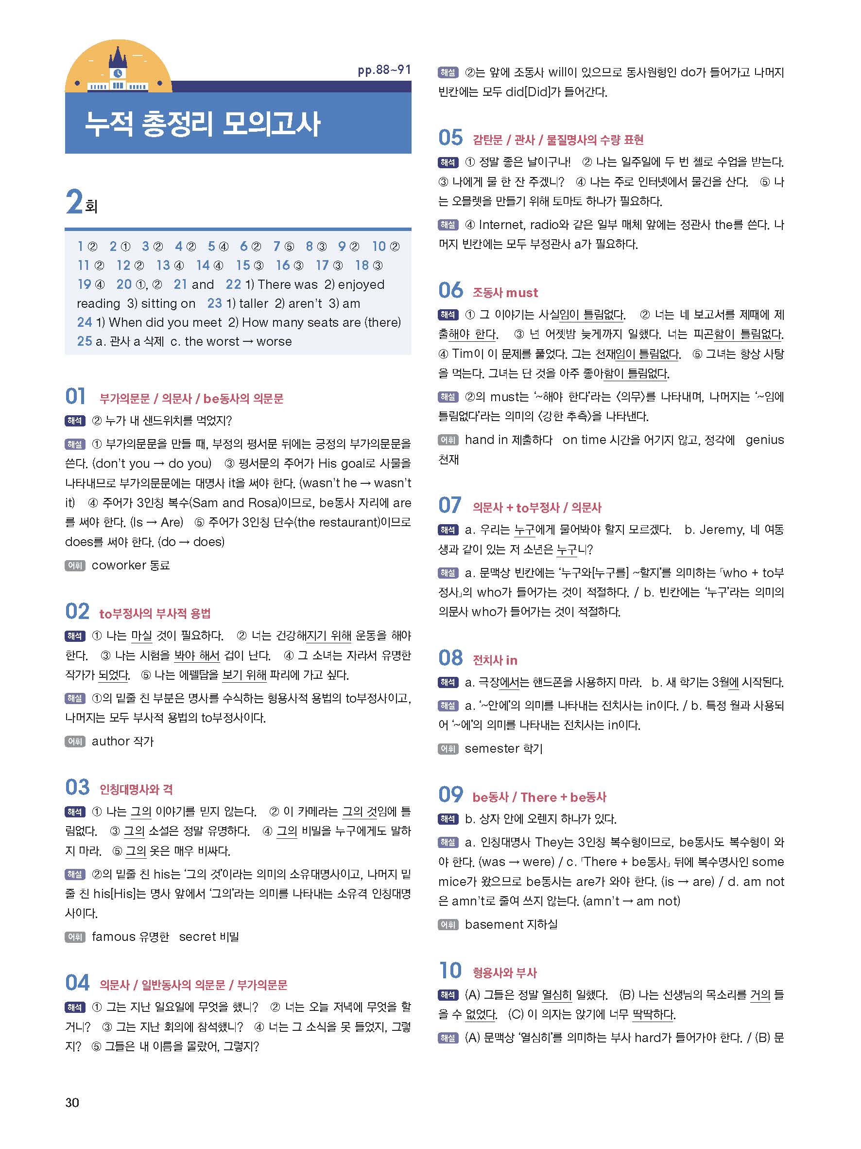 중학영문법총정리모의고사_Level1 답지 사진답지 빠른답지 모바일최적화