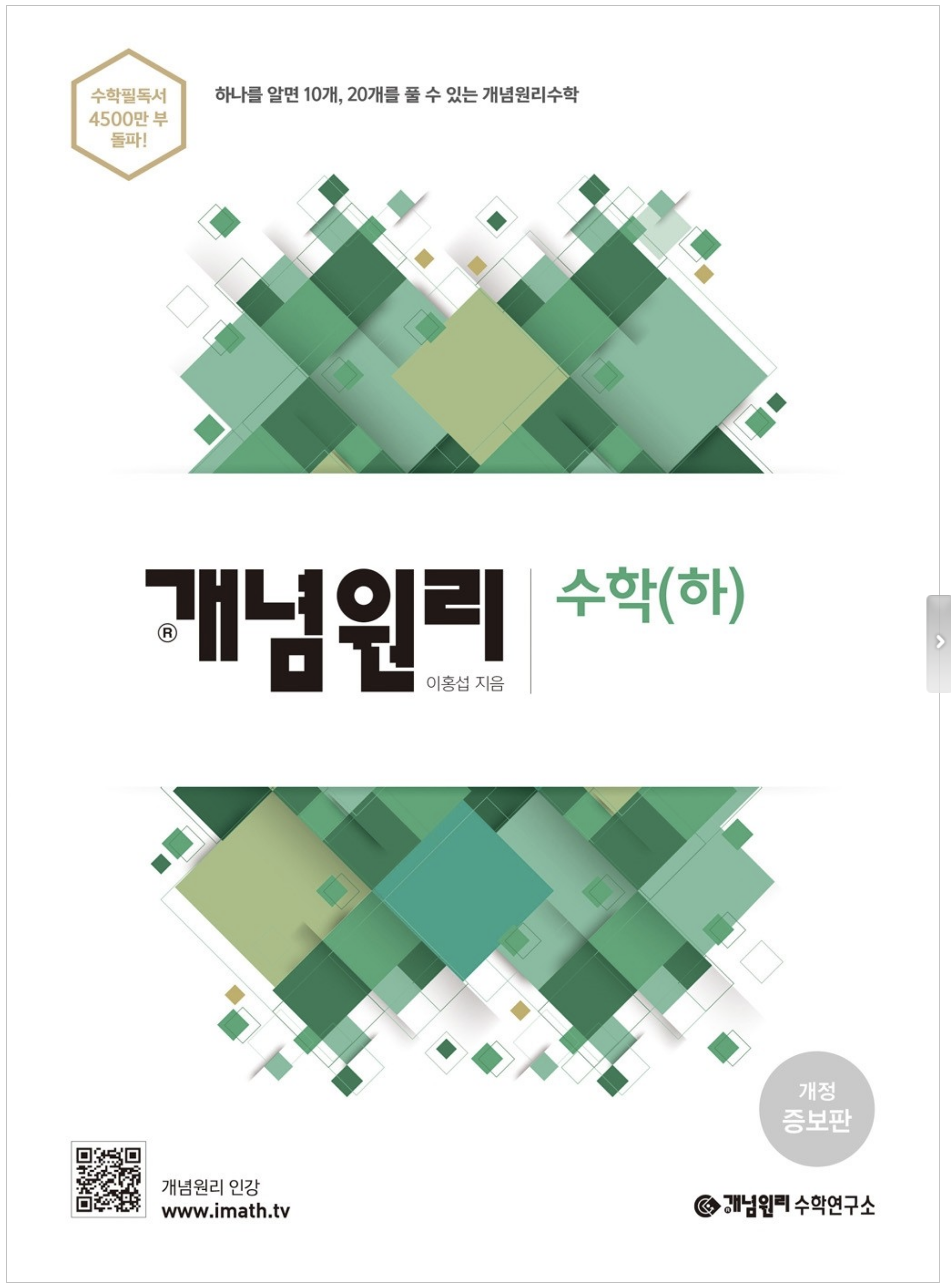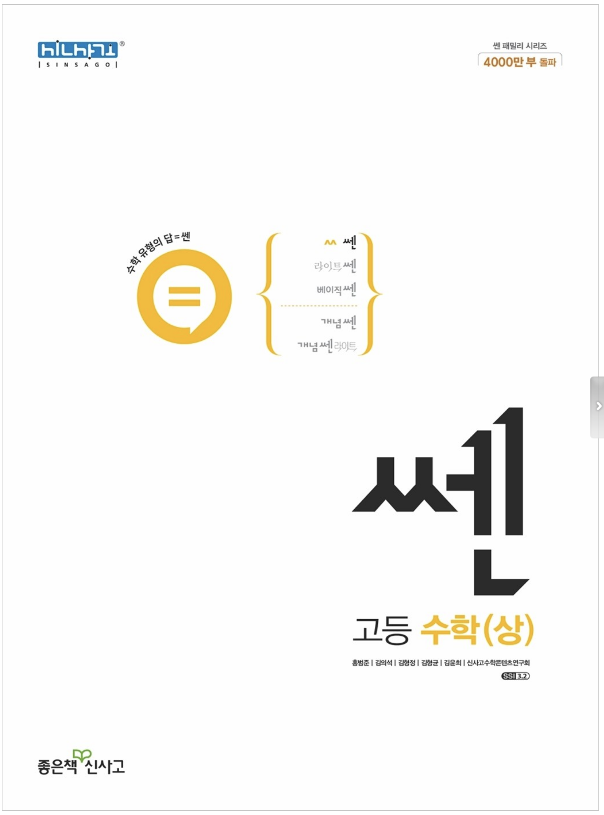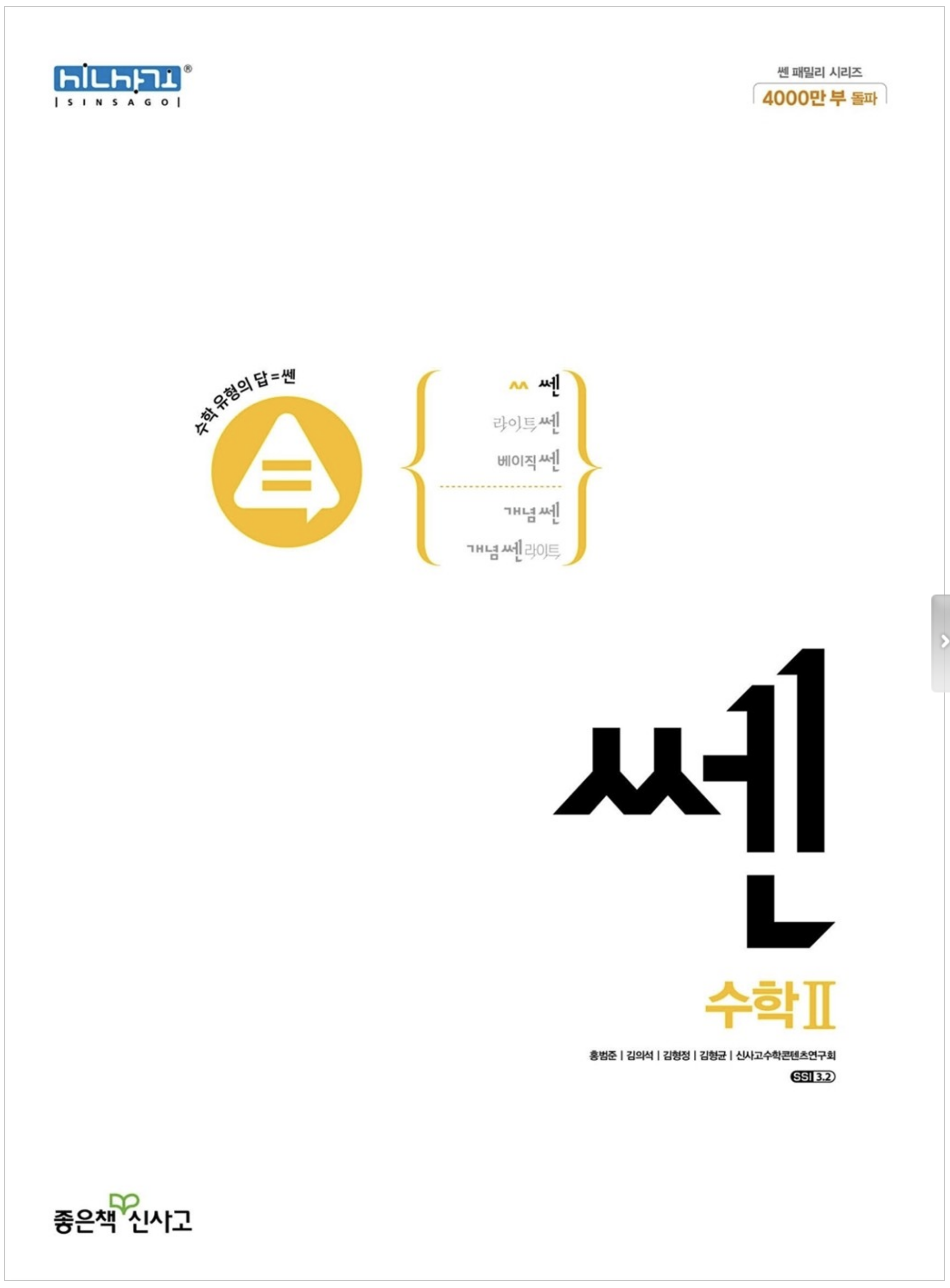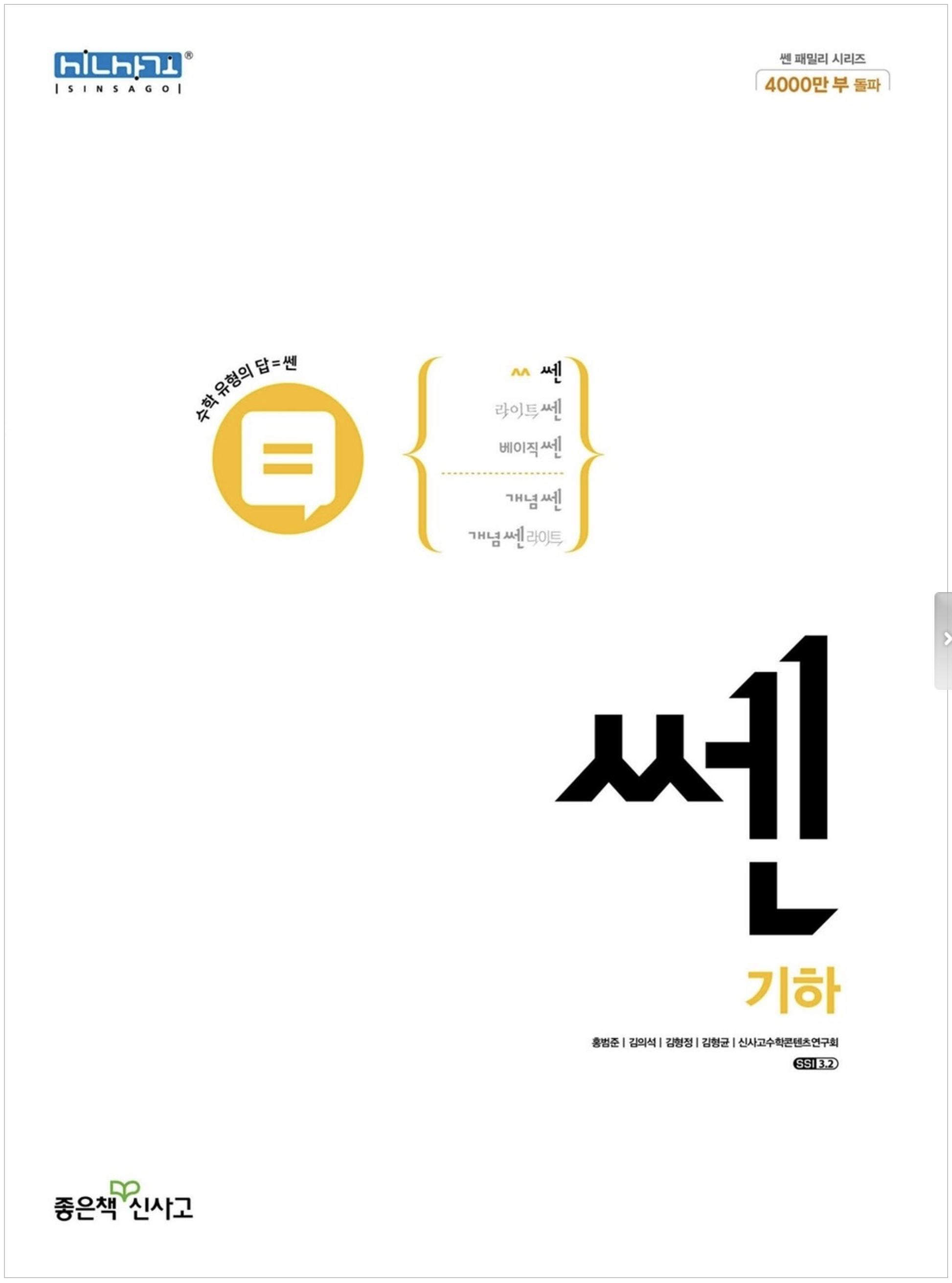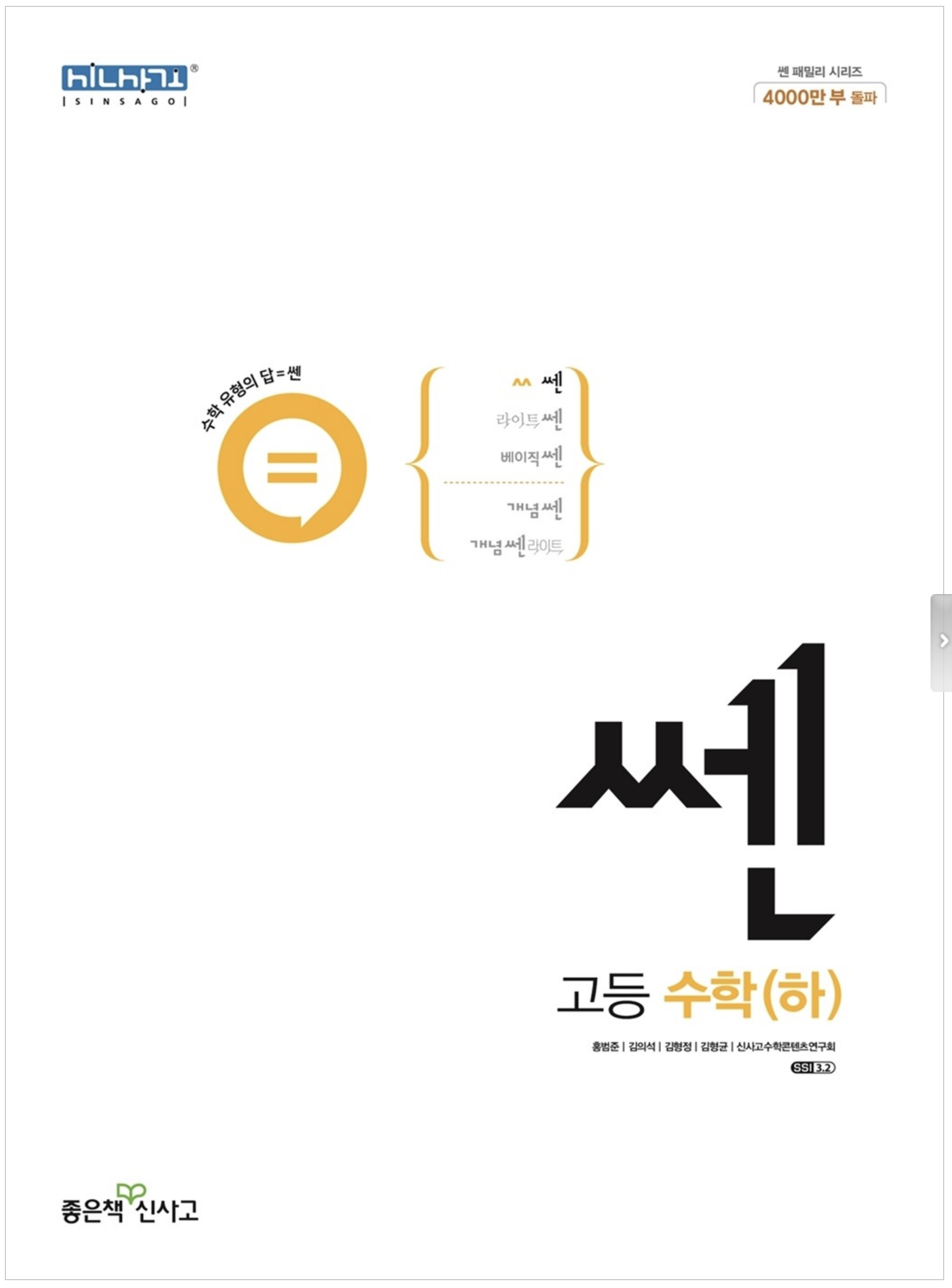 개념에 충실 문제수는 많지 않음 해설집을 따로 사야함 개념을 익히는 학생들에게 추천