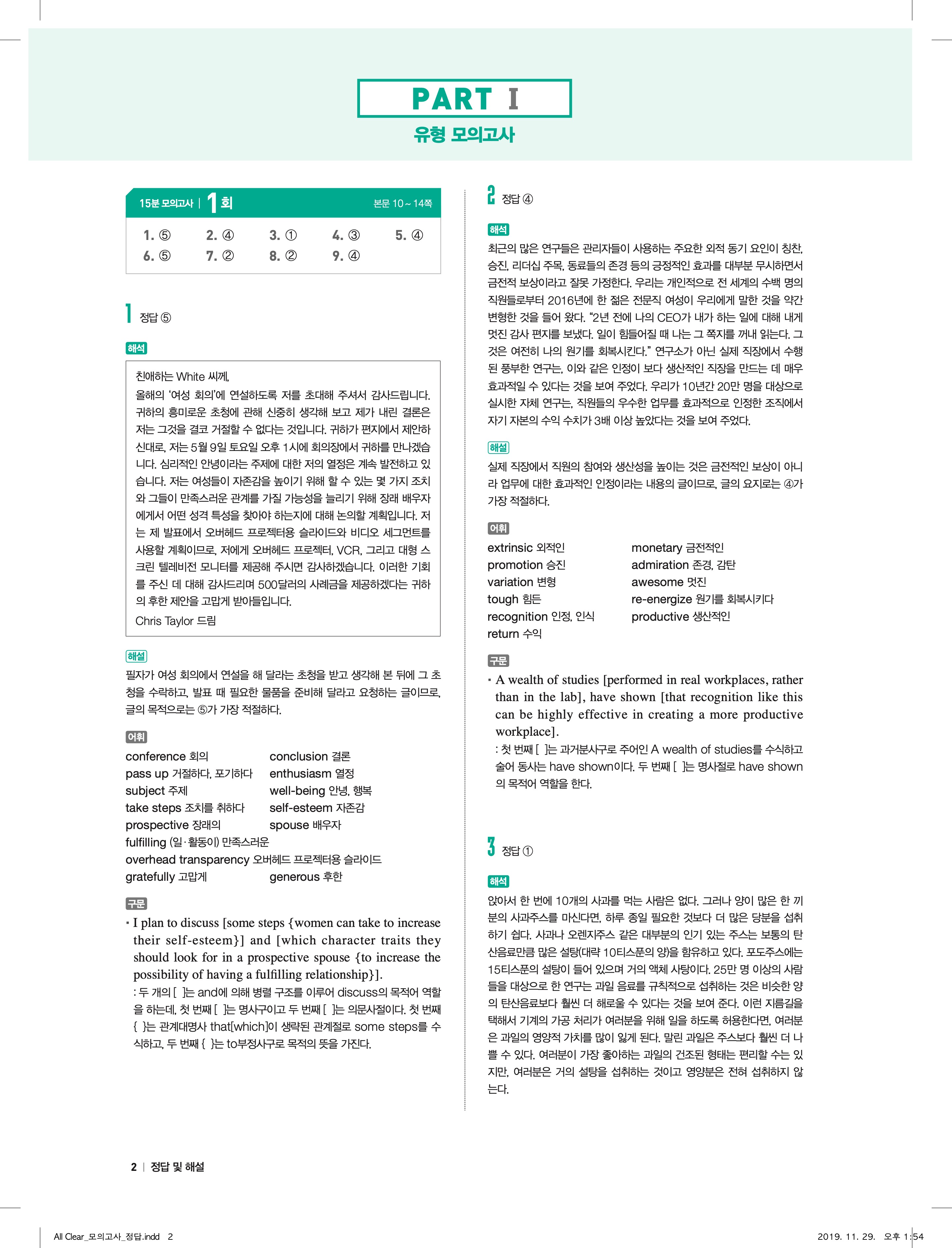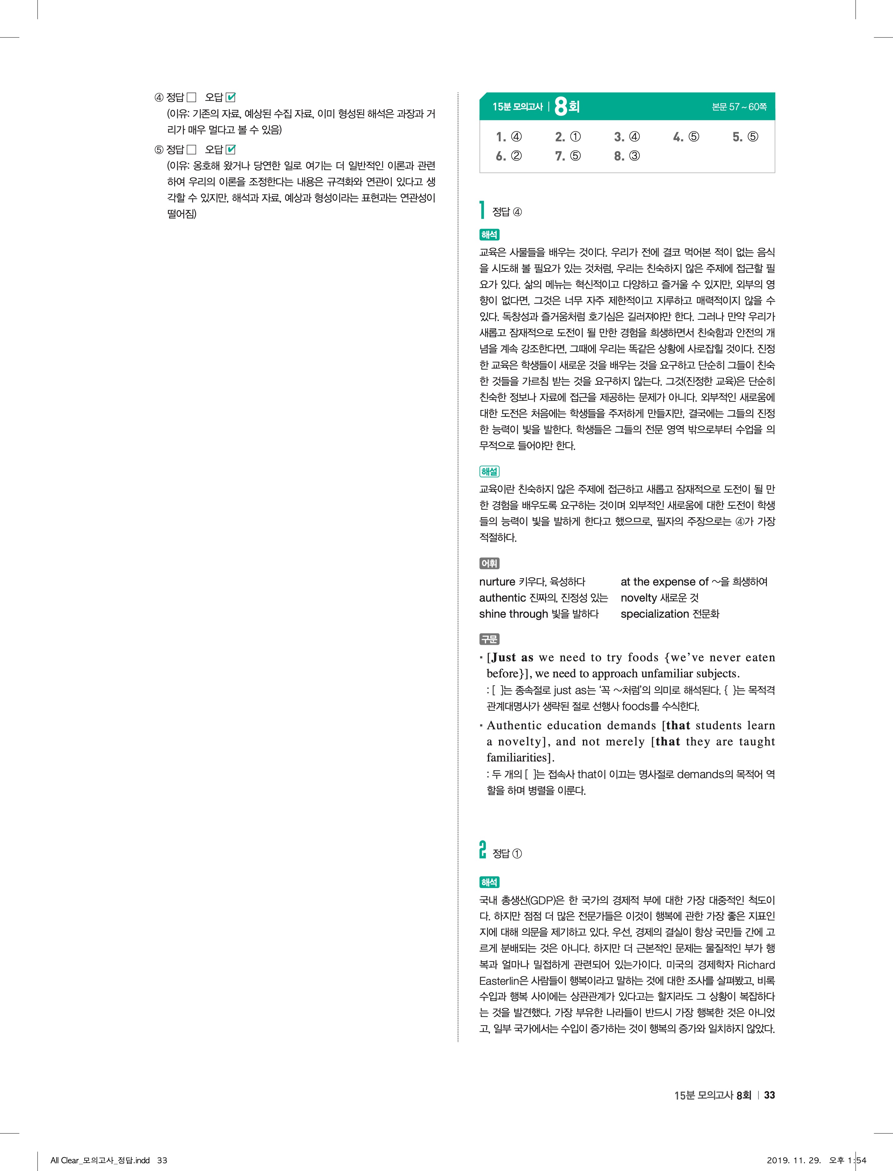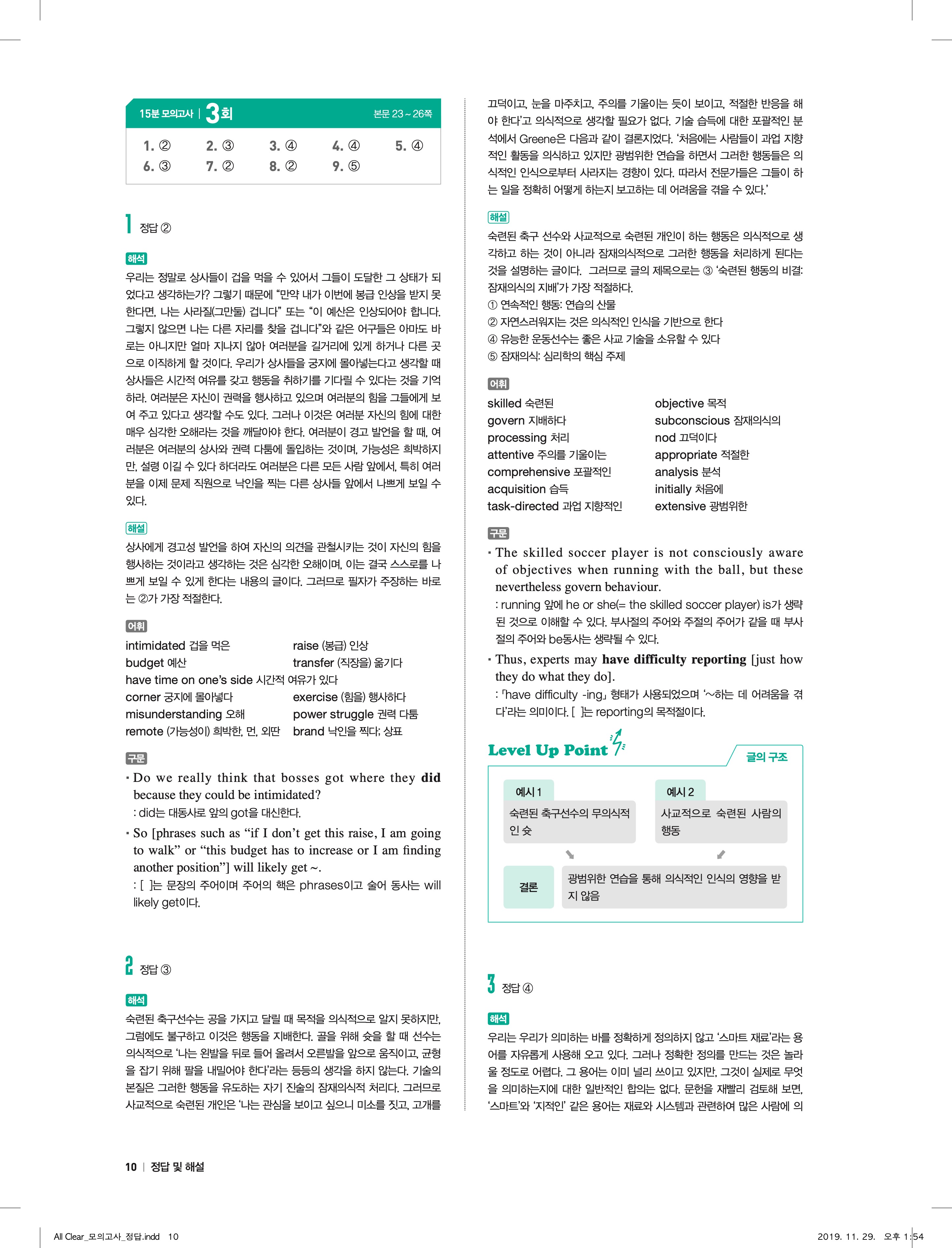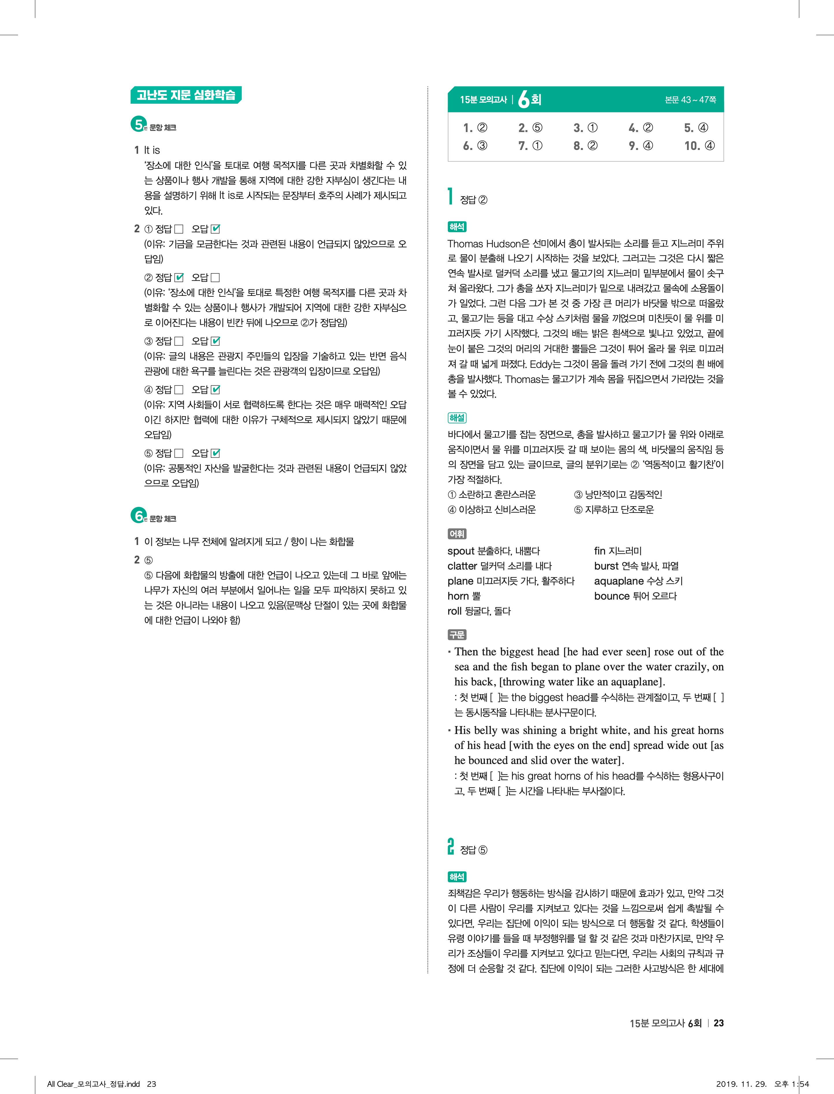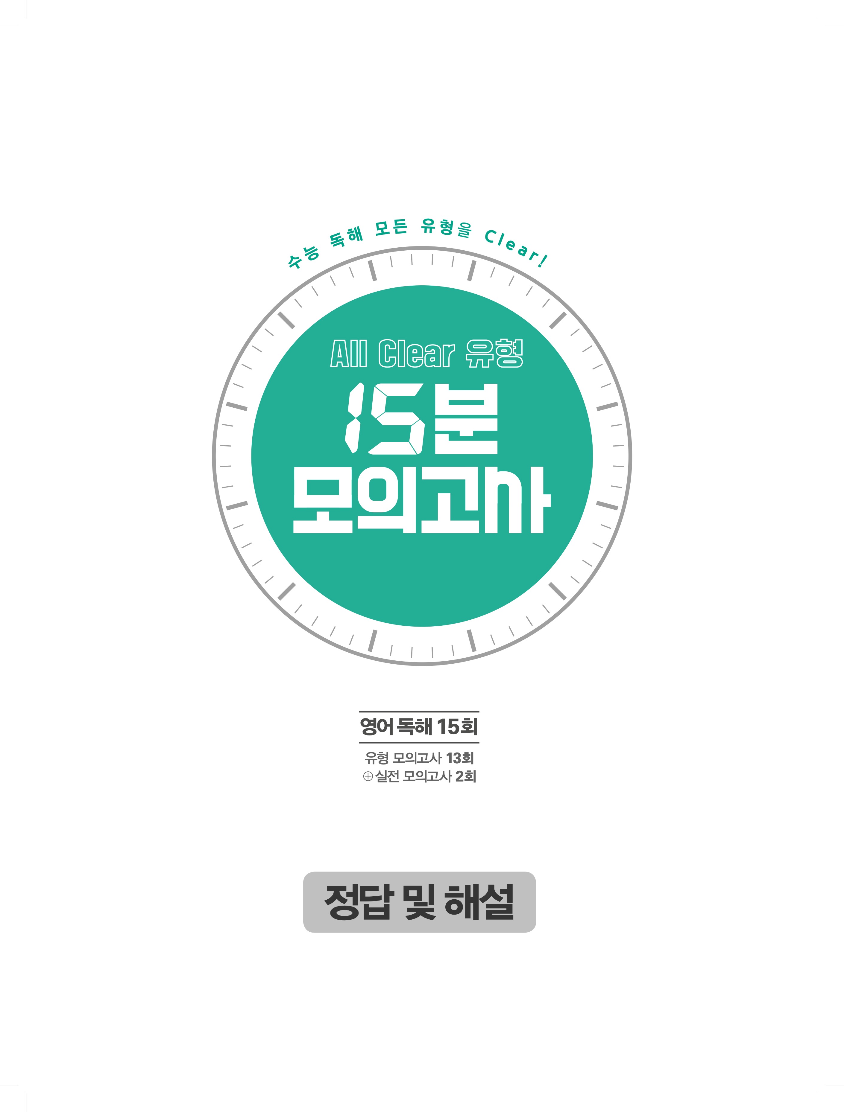 올클리어 유형 15분 모의고사 영어독해 15회 답지 해설 바로보는 사진답지 빠른답지 모바일최적화