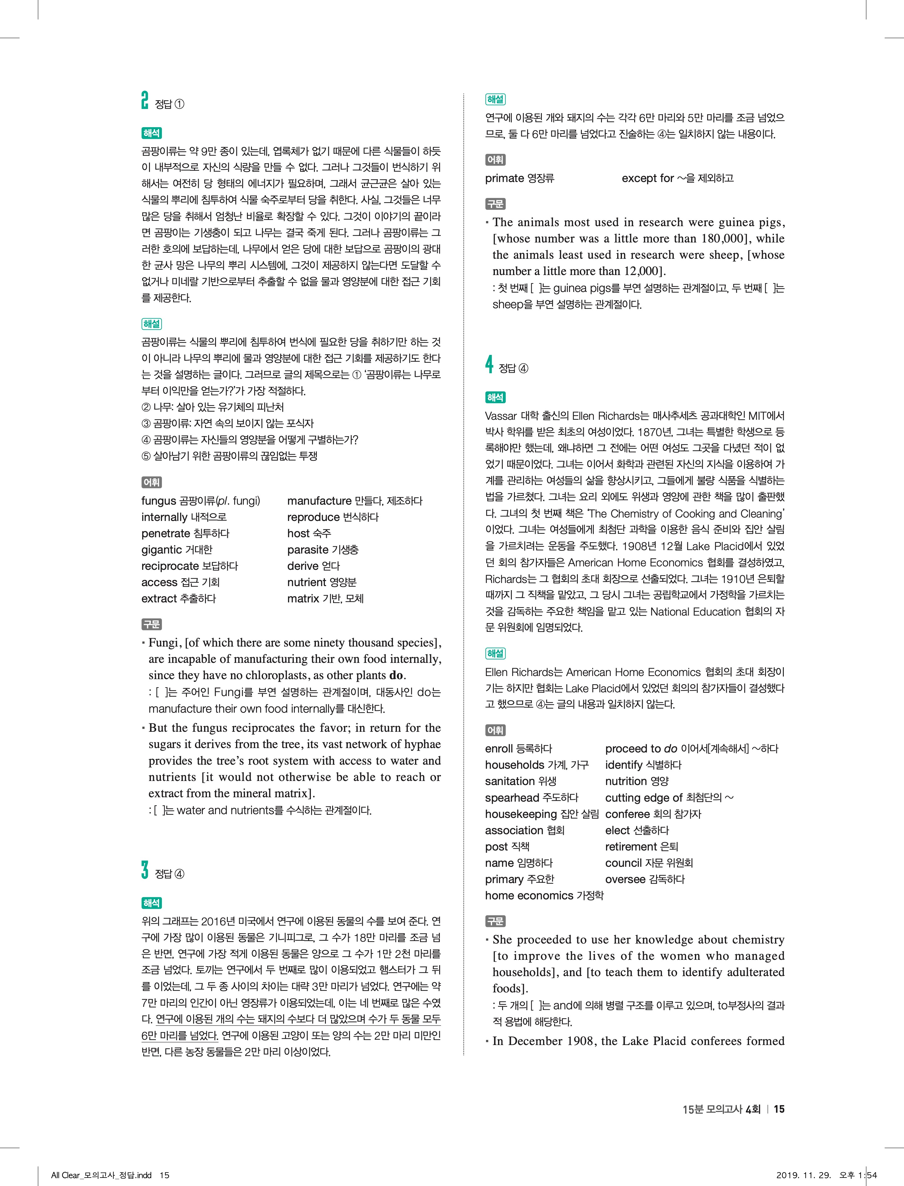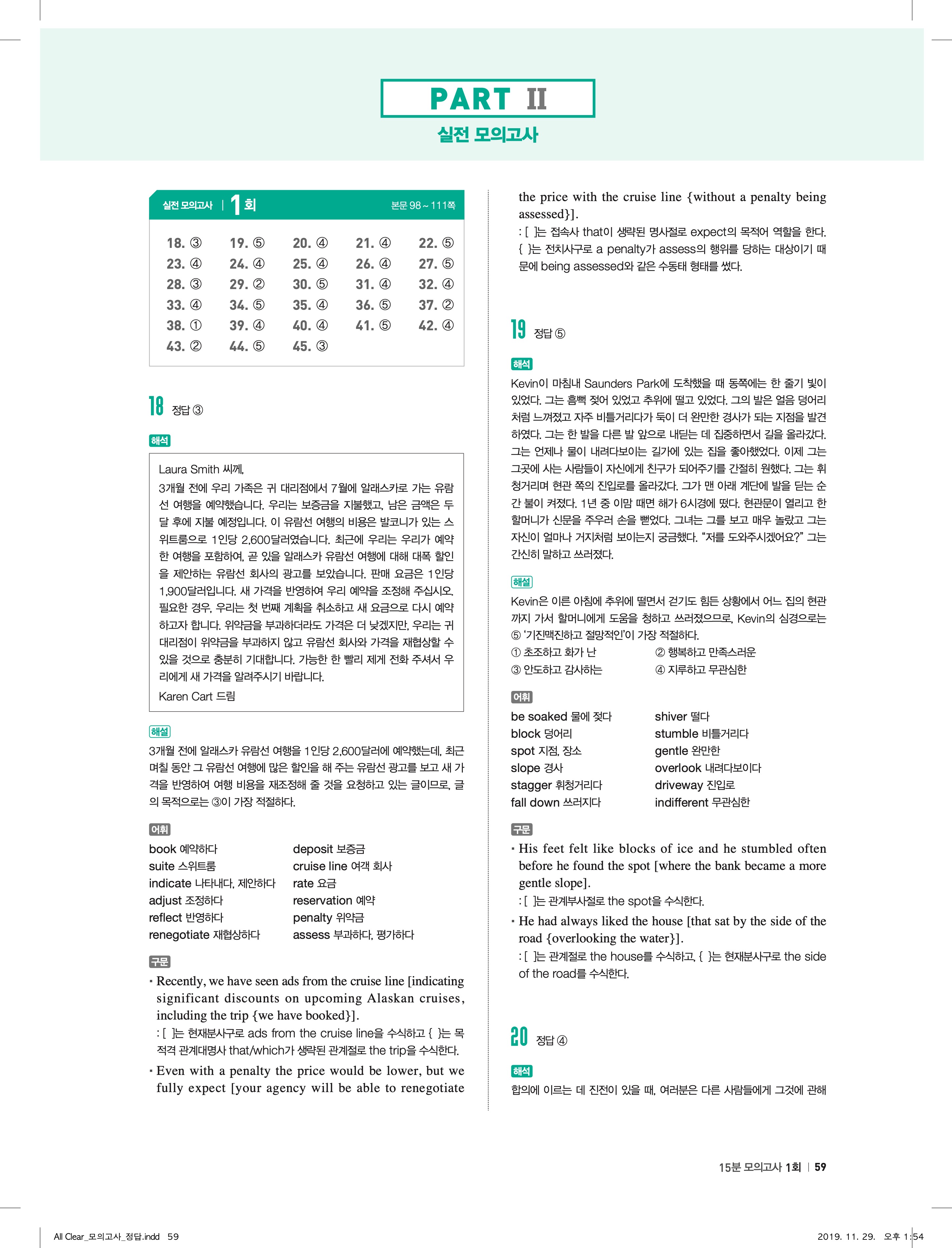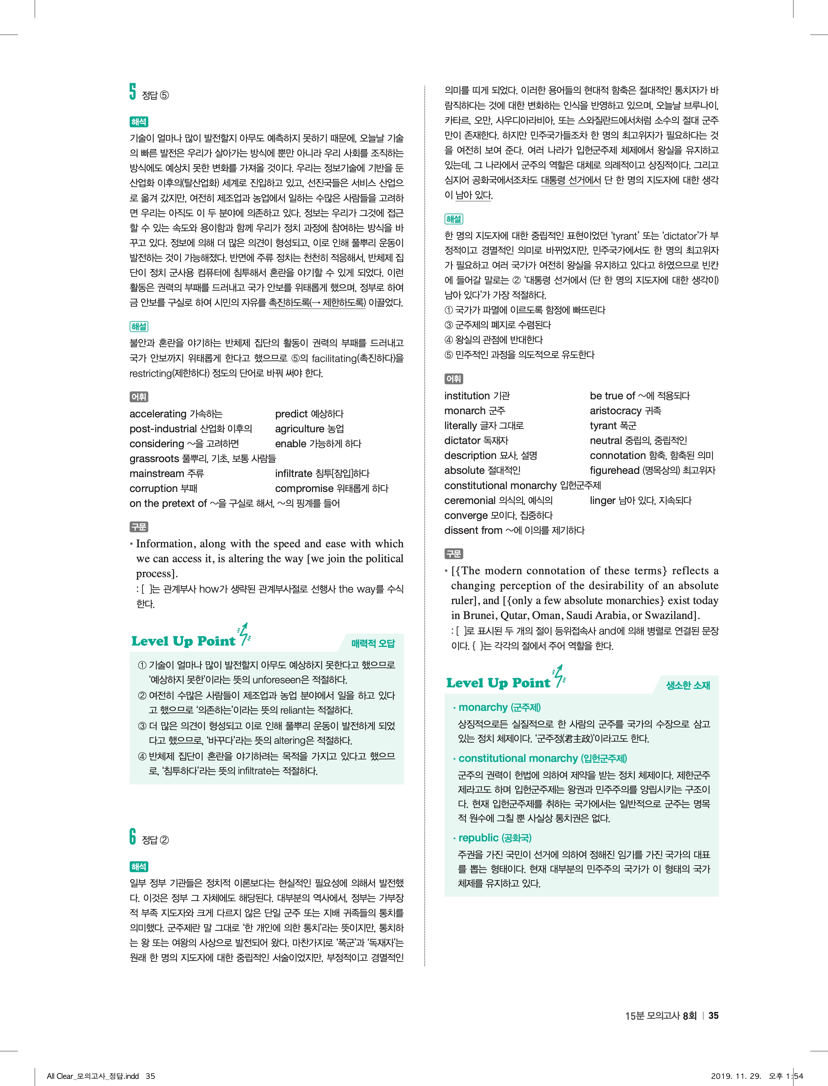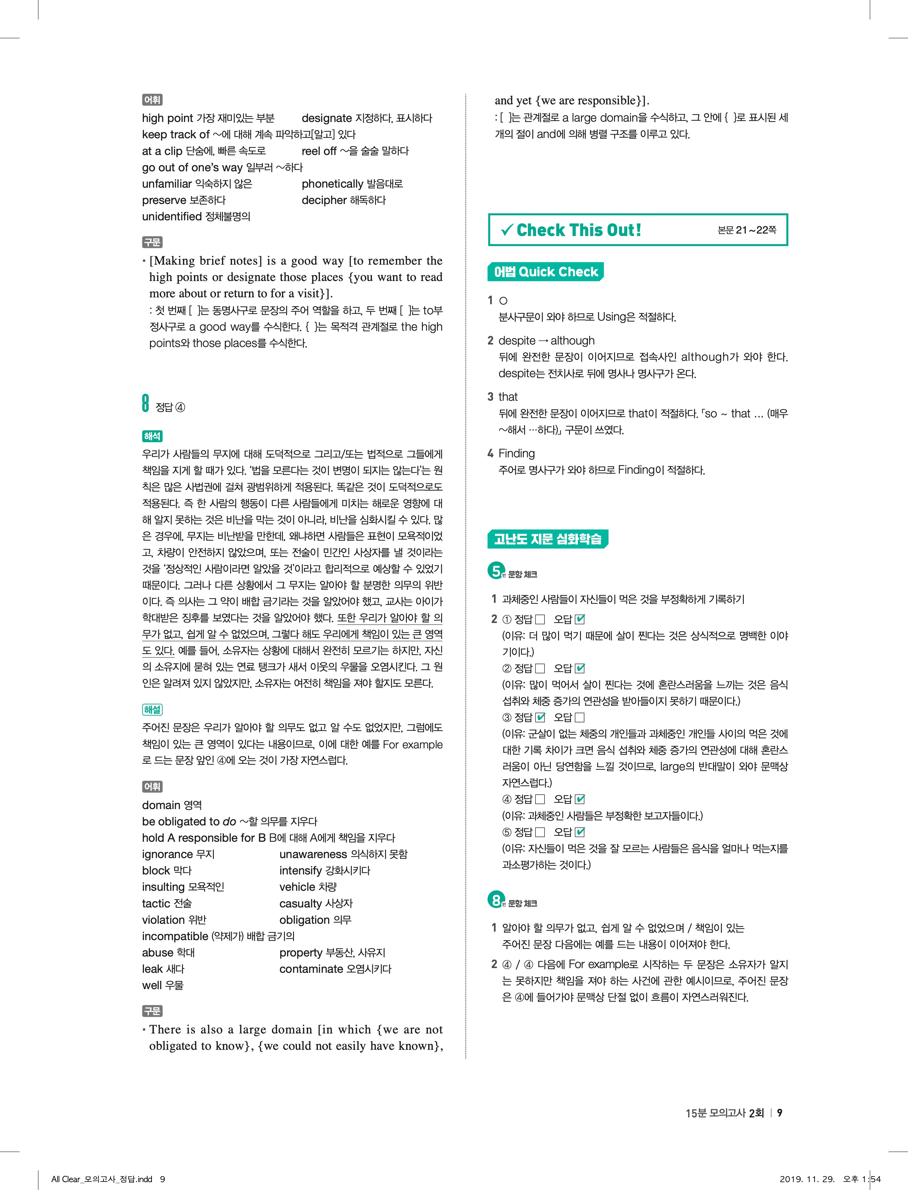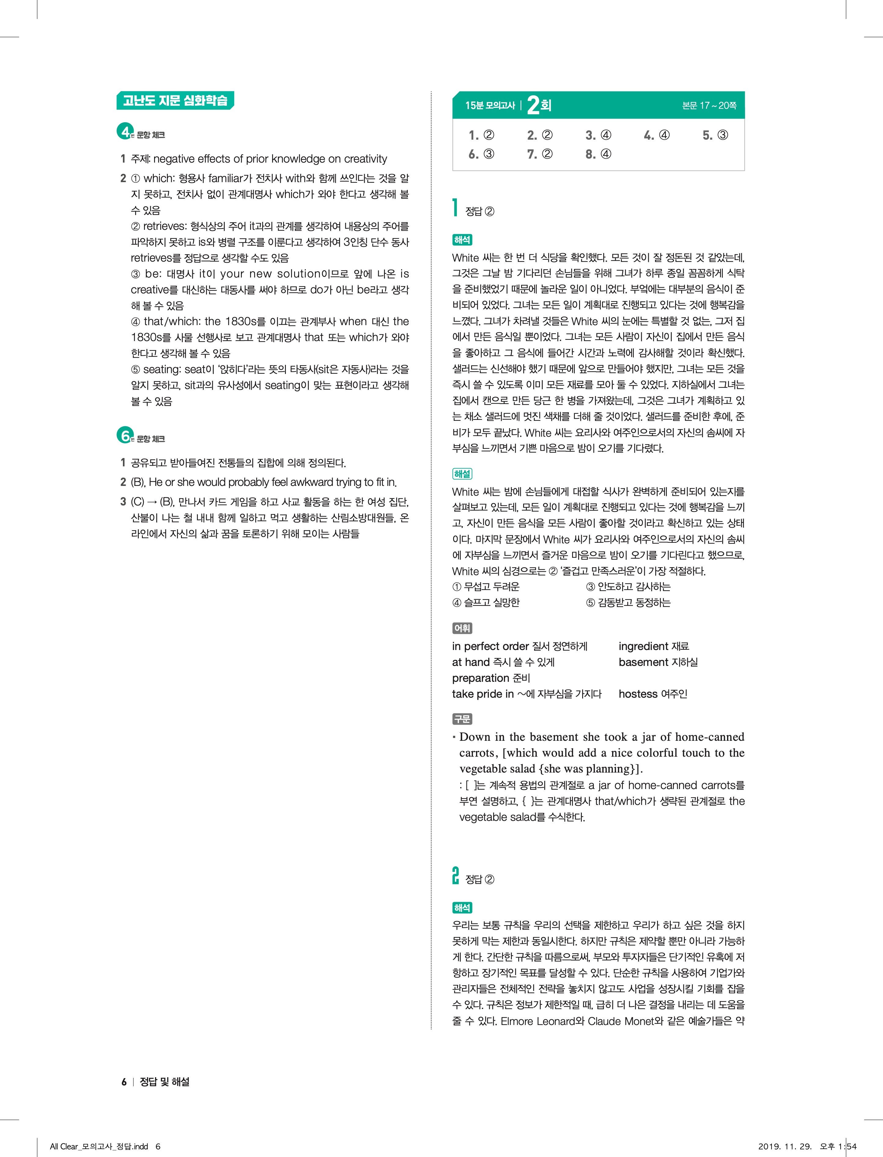 올클리어 유형 15분 모의고사 영어독해 15회 답지 해설 바로보는 사진답지 빠른답지 모바일최적화