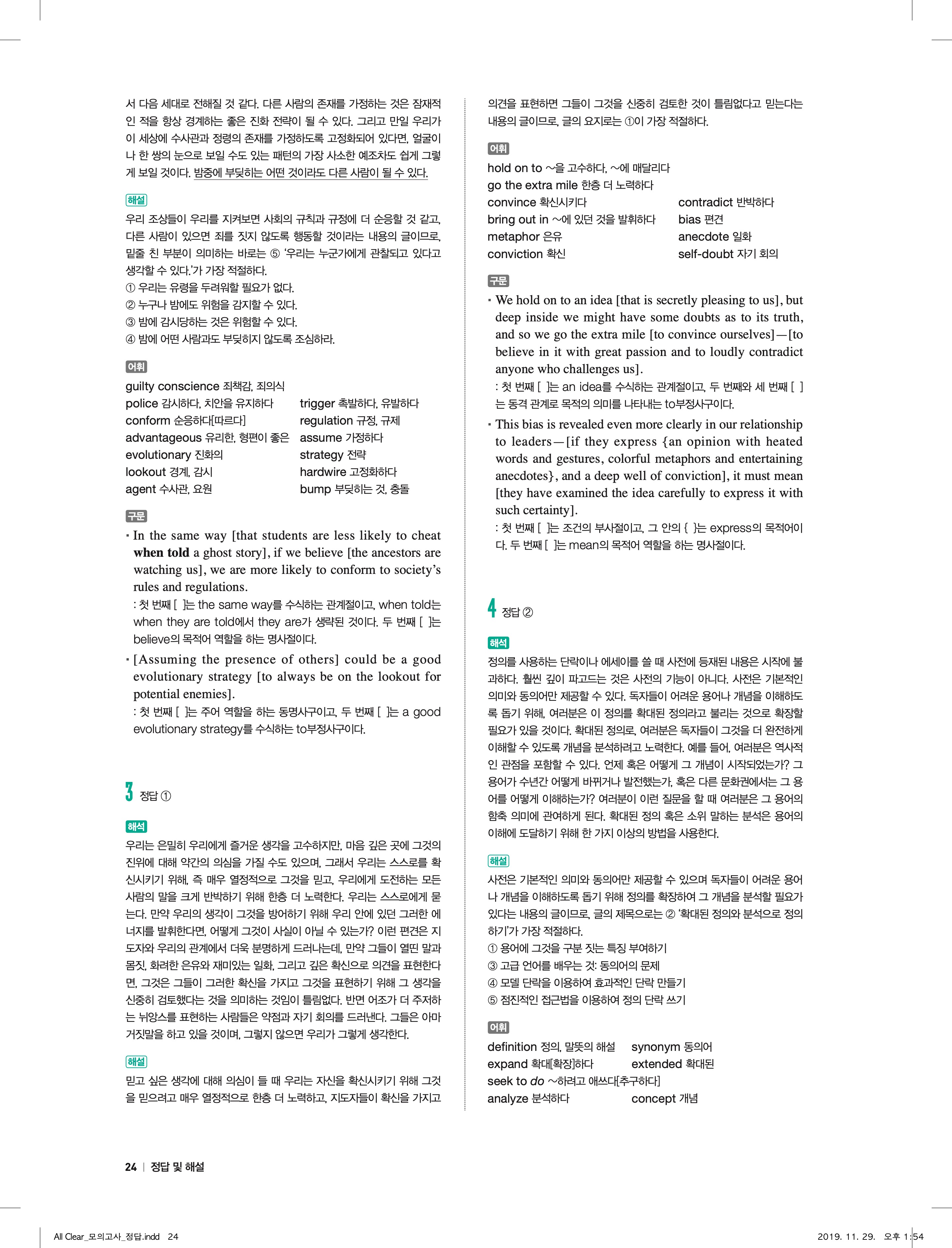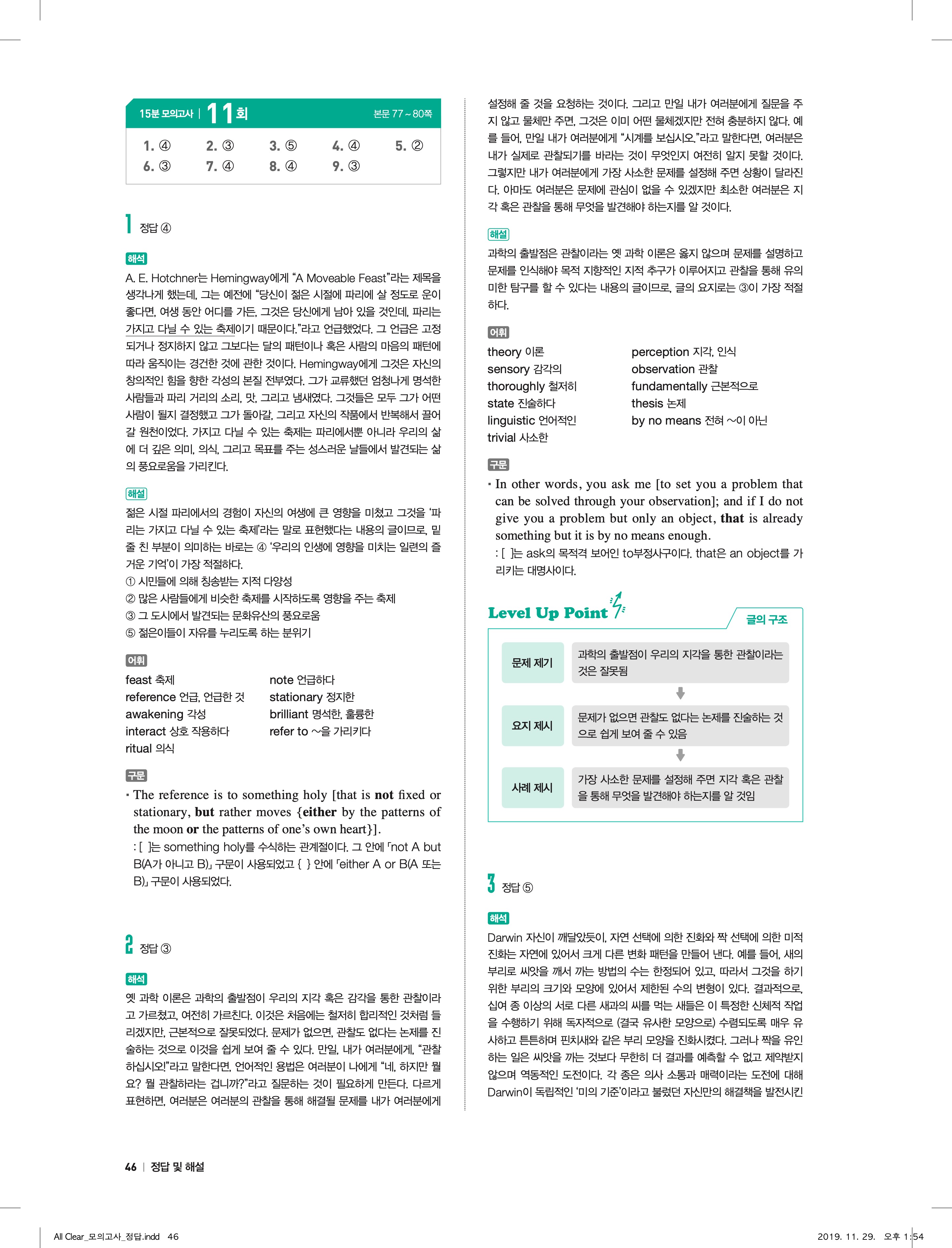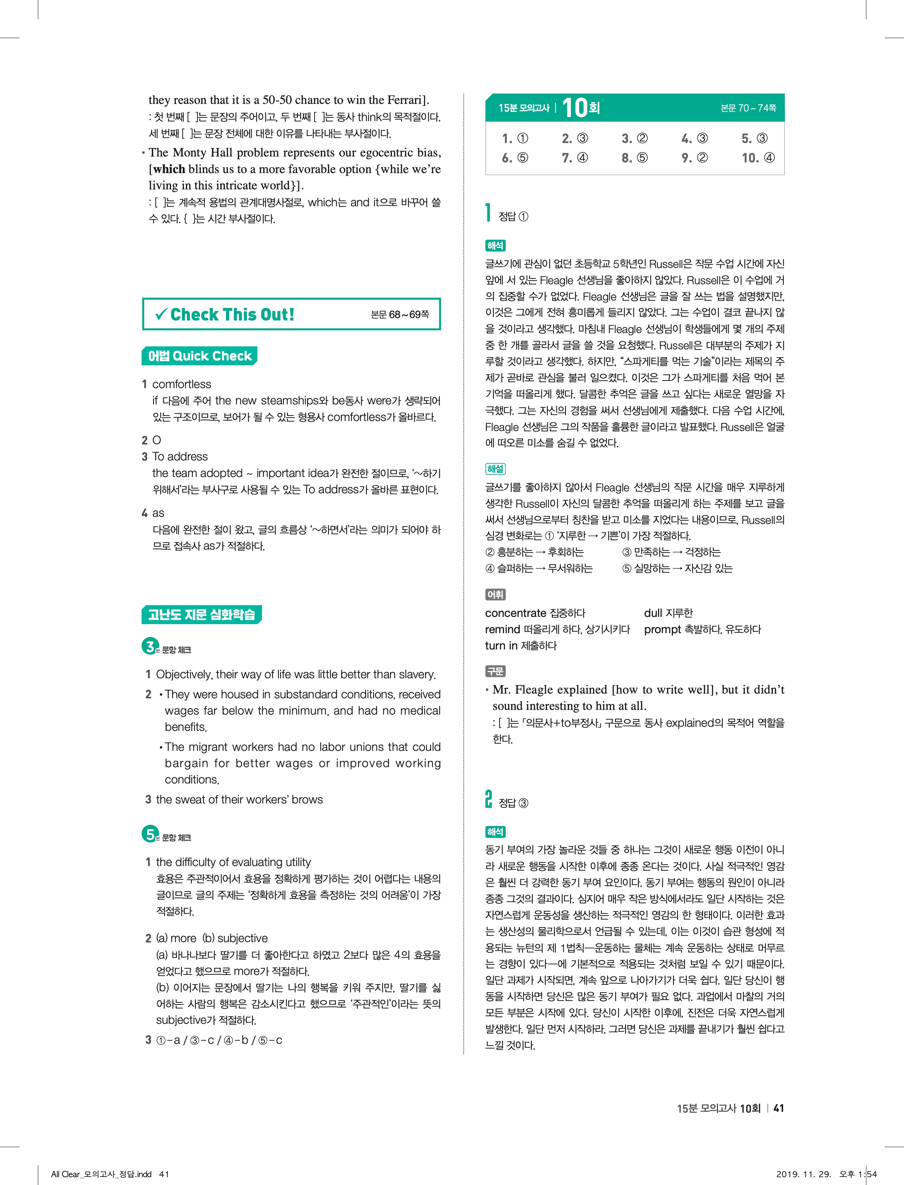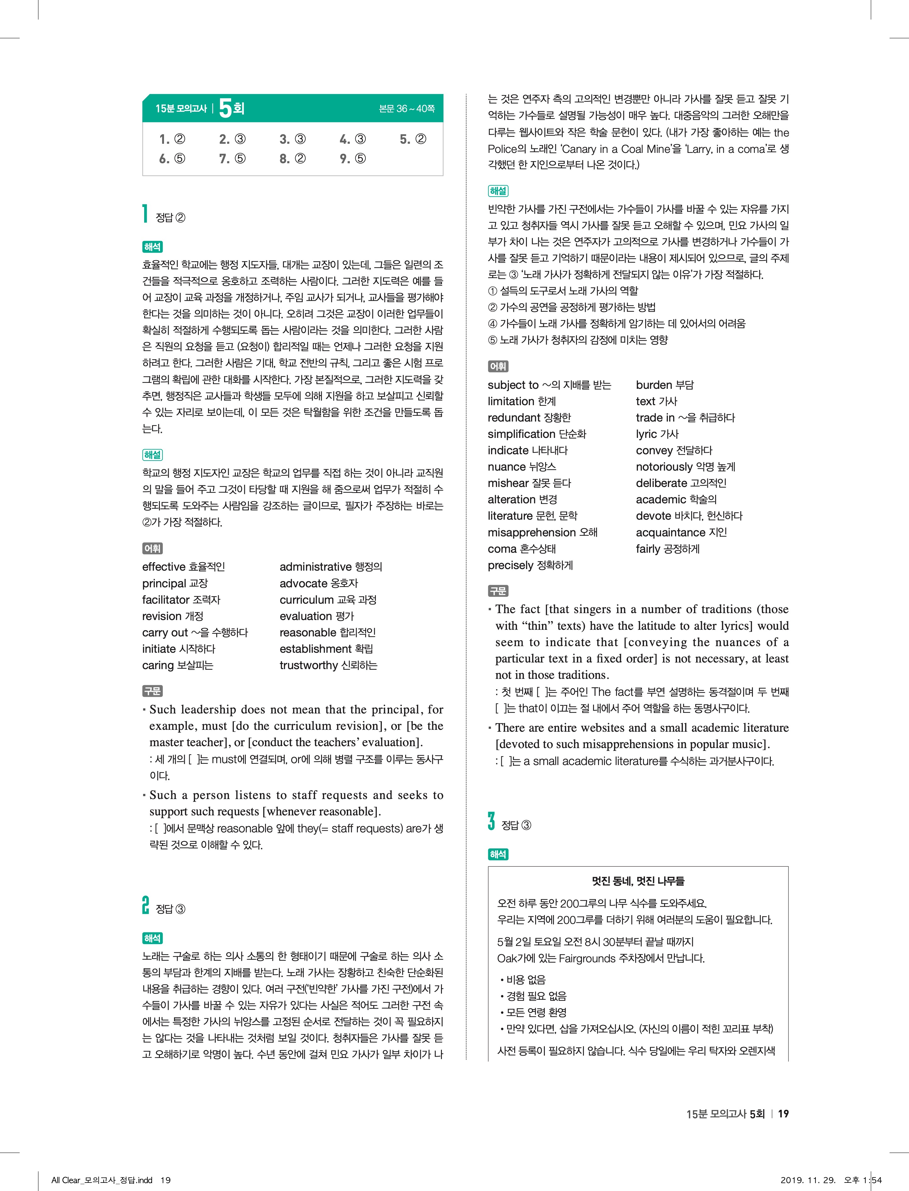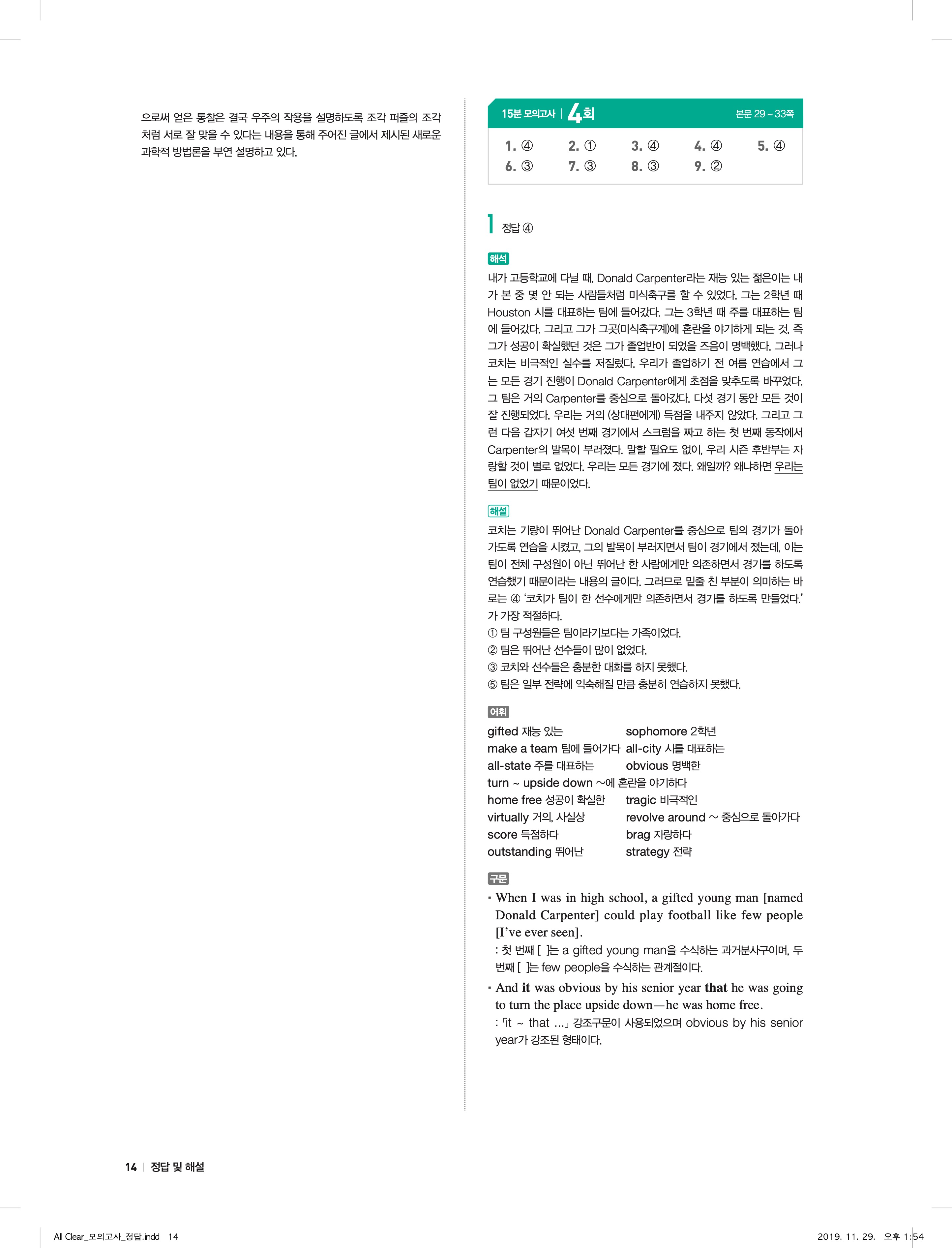 올클리어 유형 15분 모의고사 영어독해 15회 답지 해설 바로보는 사진답지 빠른답지 모바일최적화