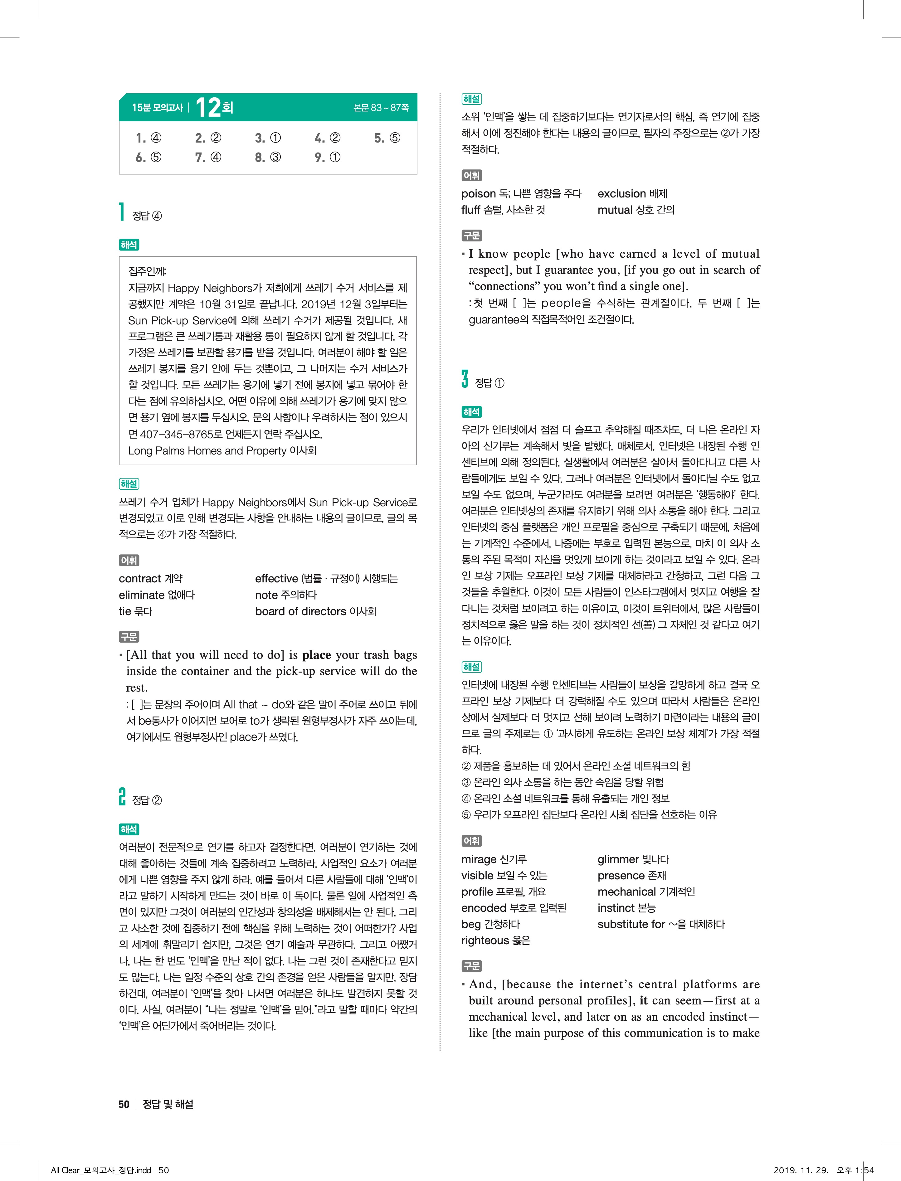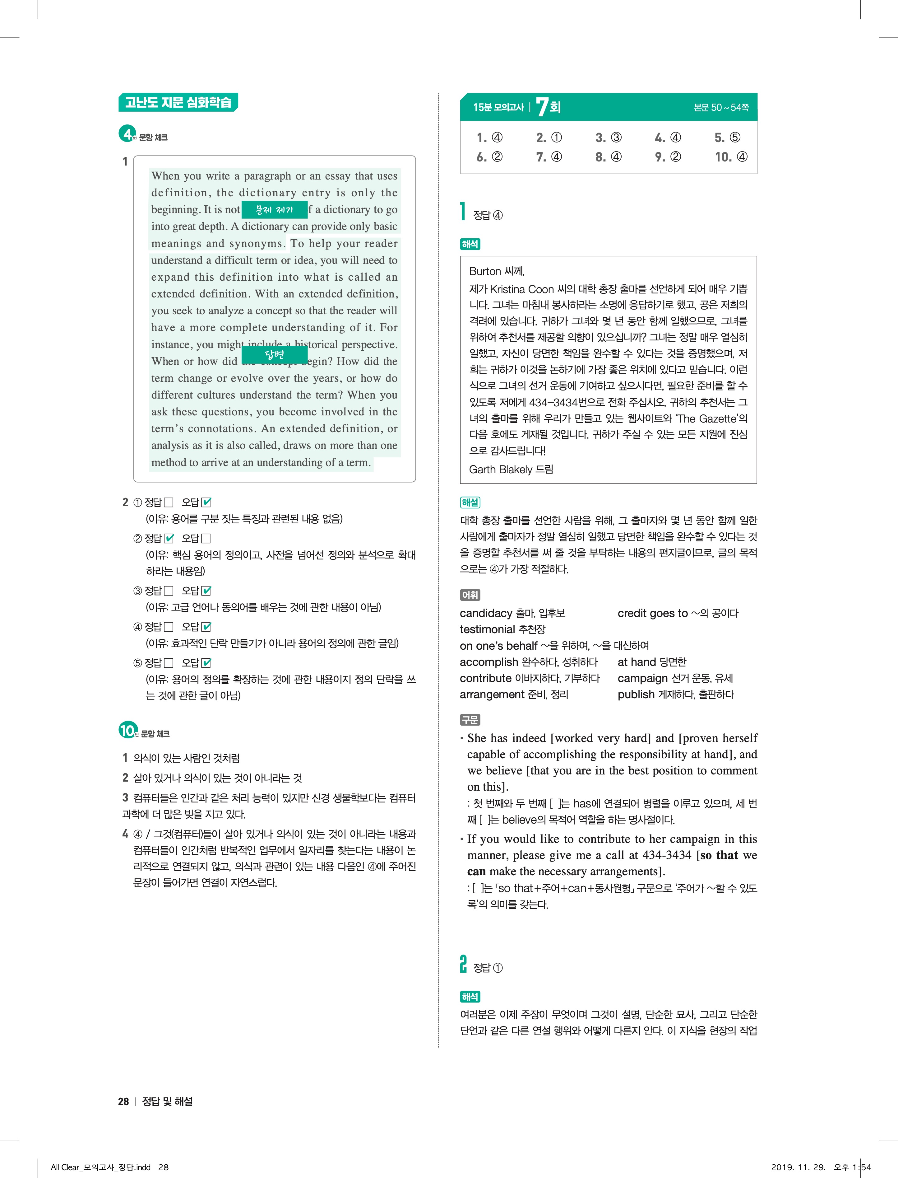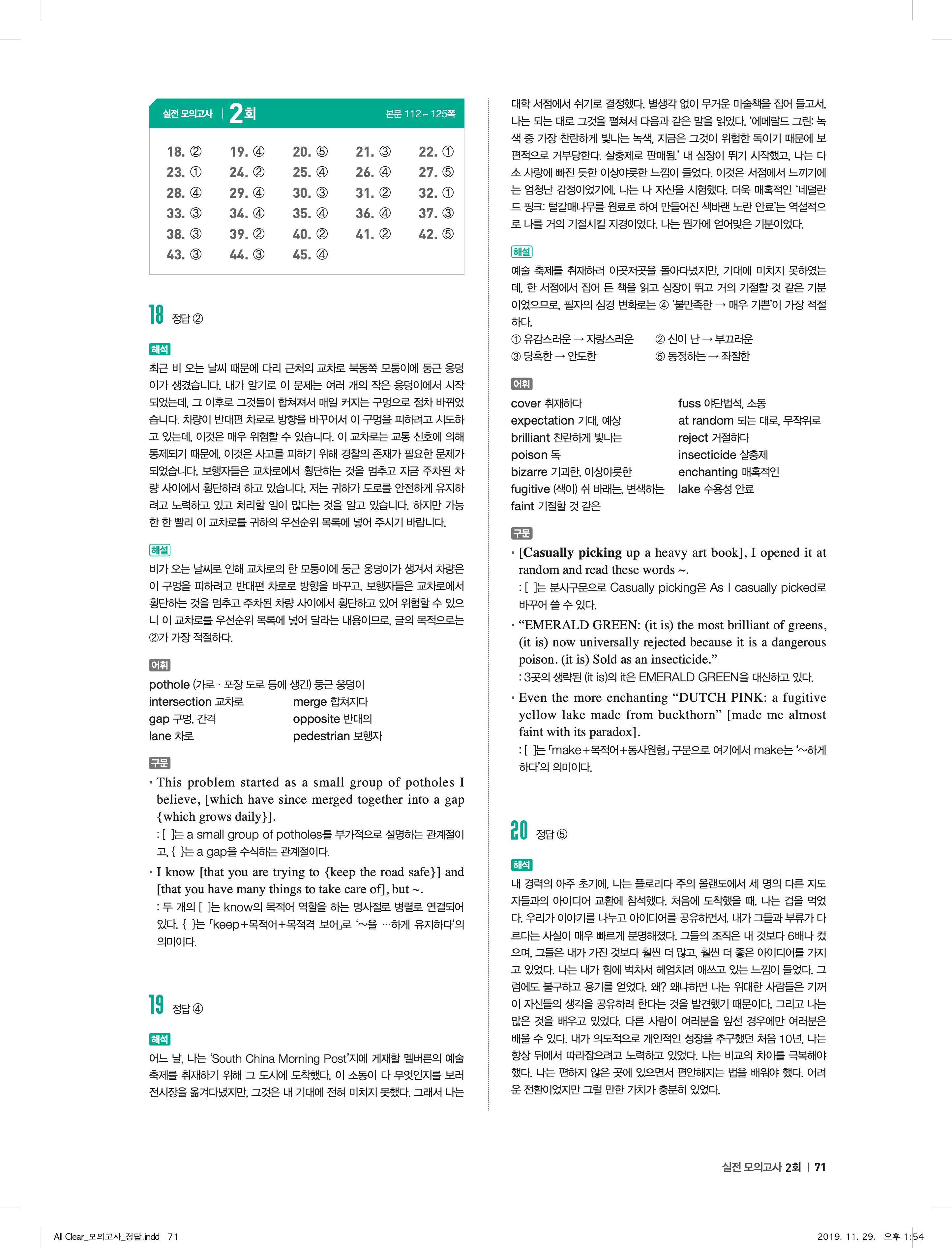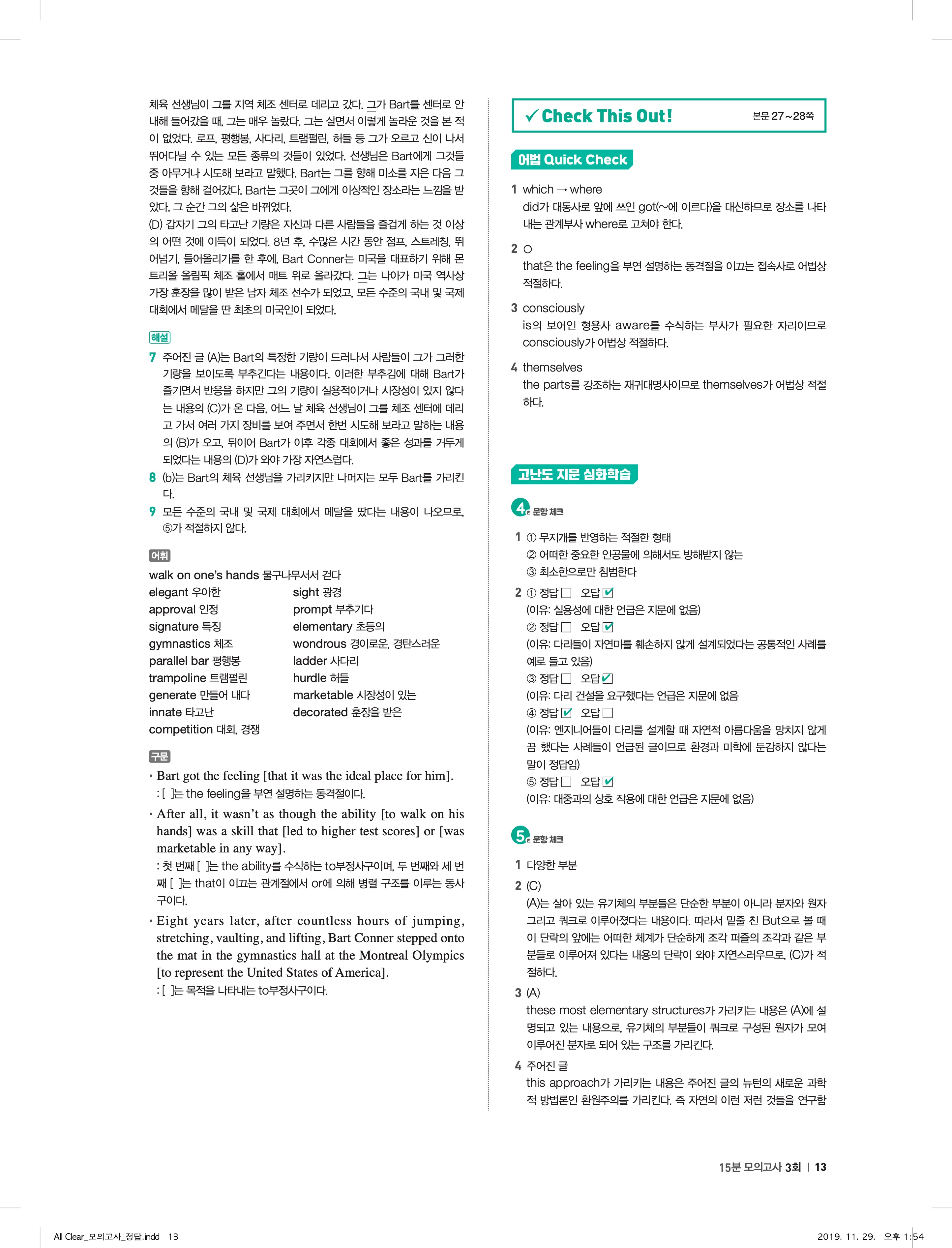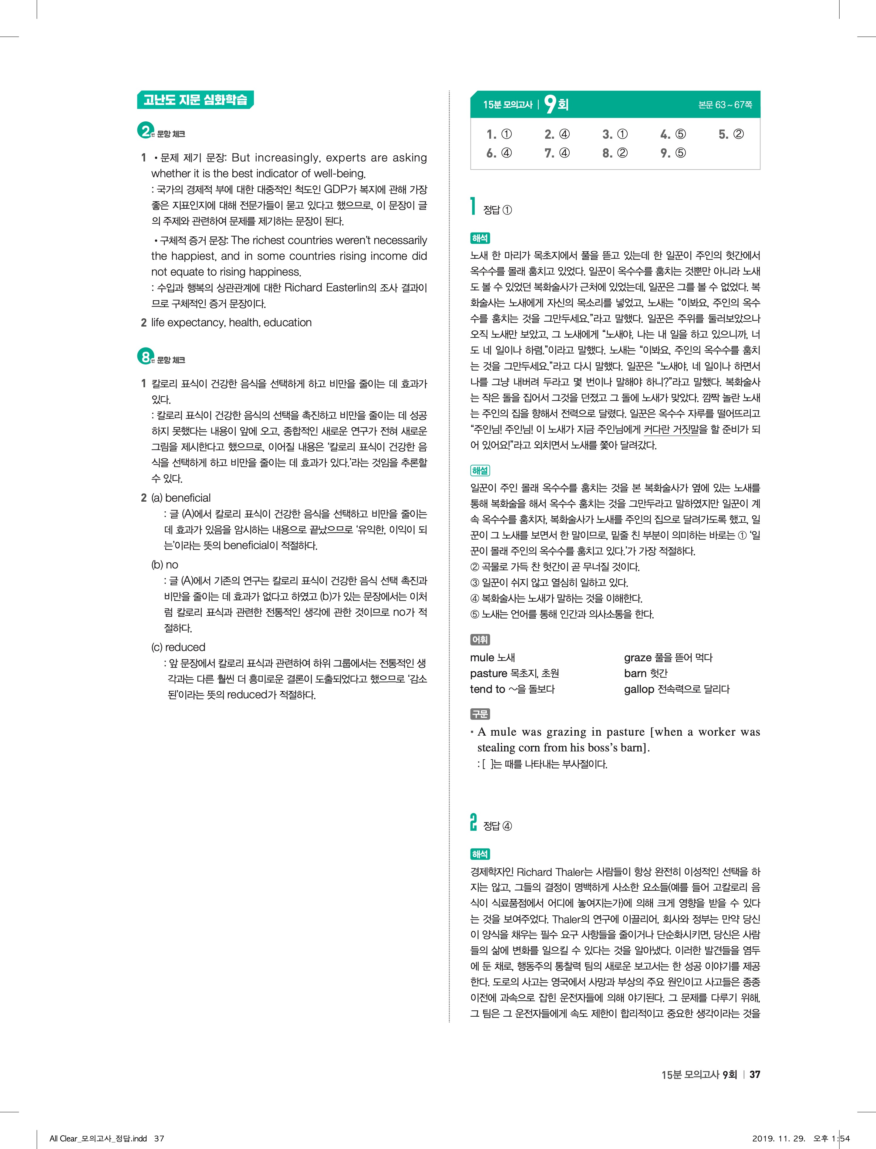올클리어 유형 15분 모의고사 영어독해 15회 답지 해설 바로보는 사진답지 빠른답지 모바일최적화