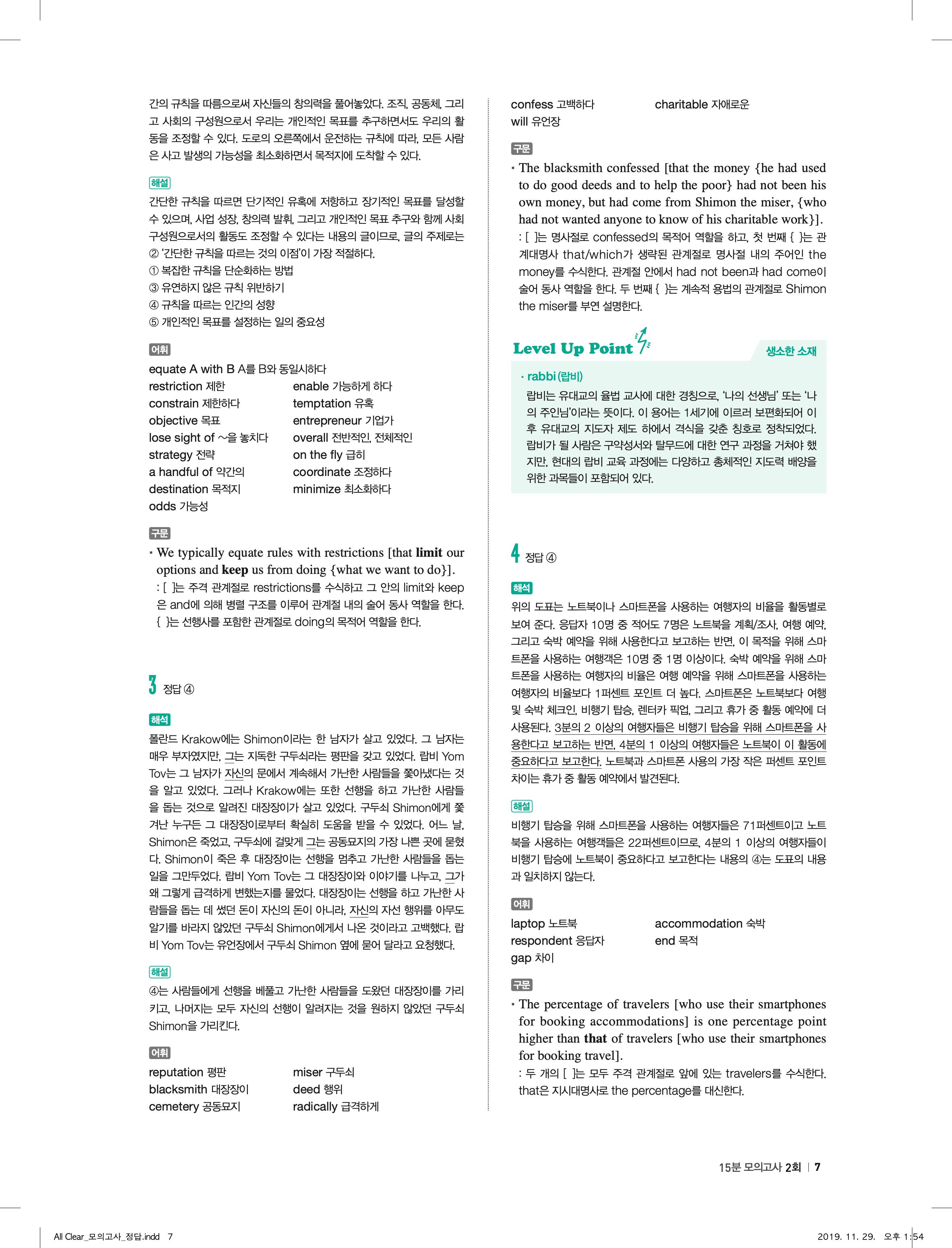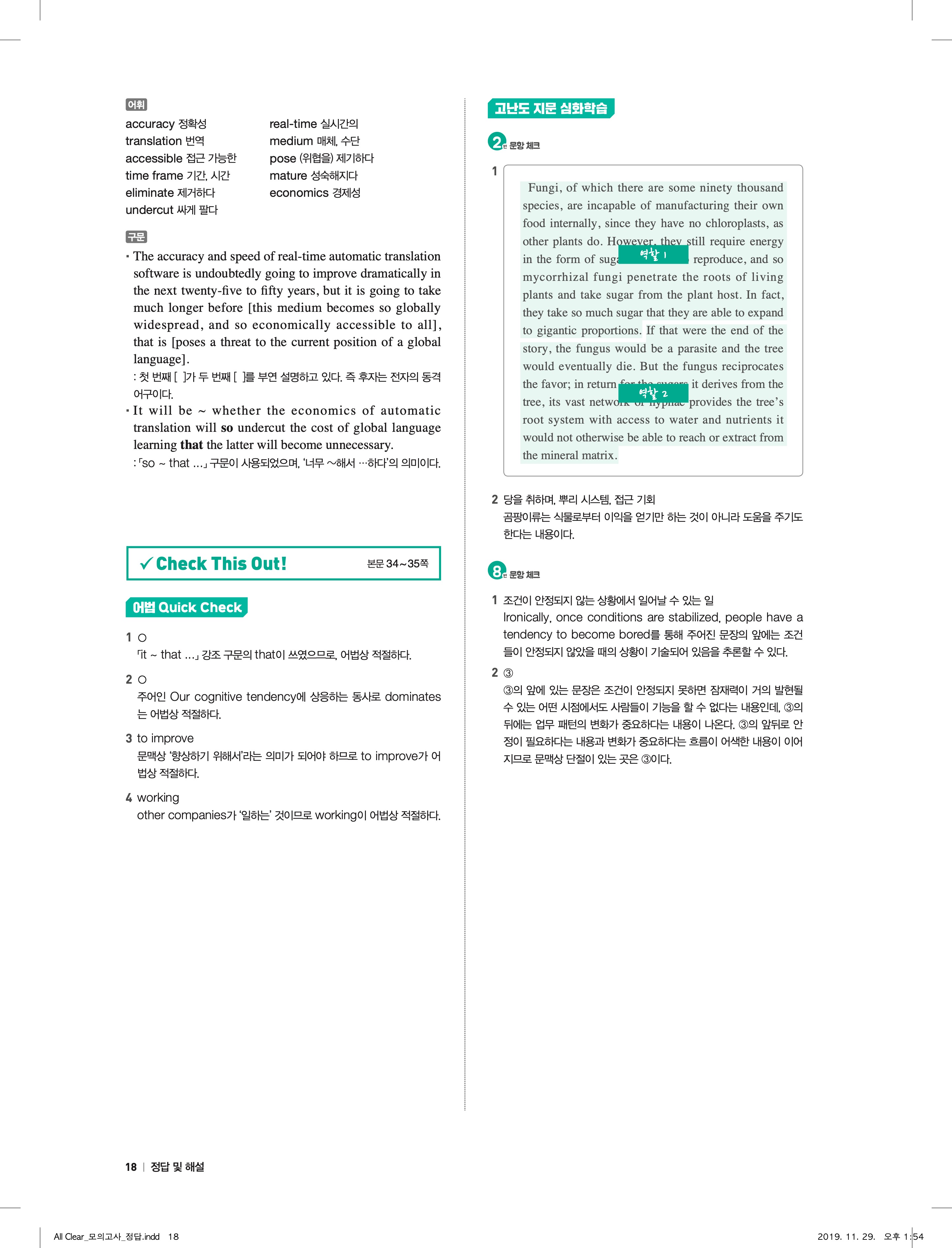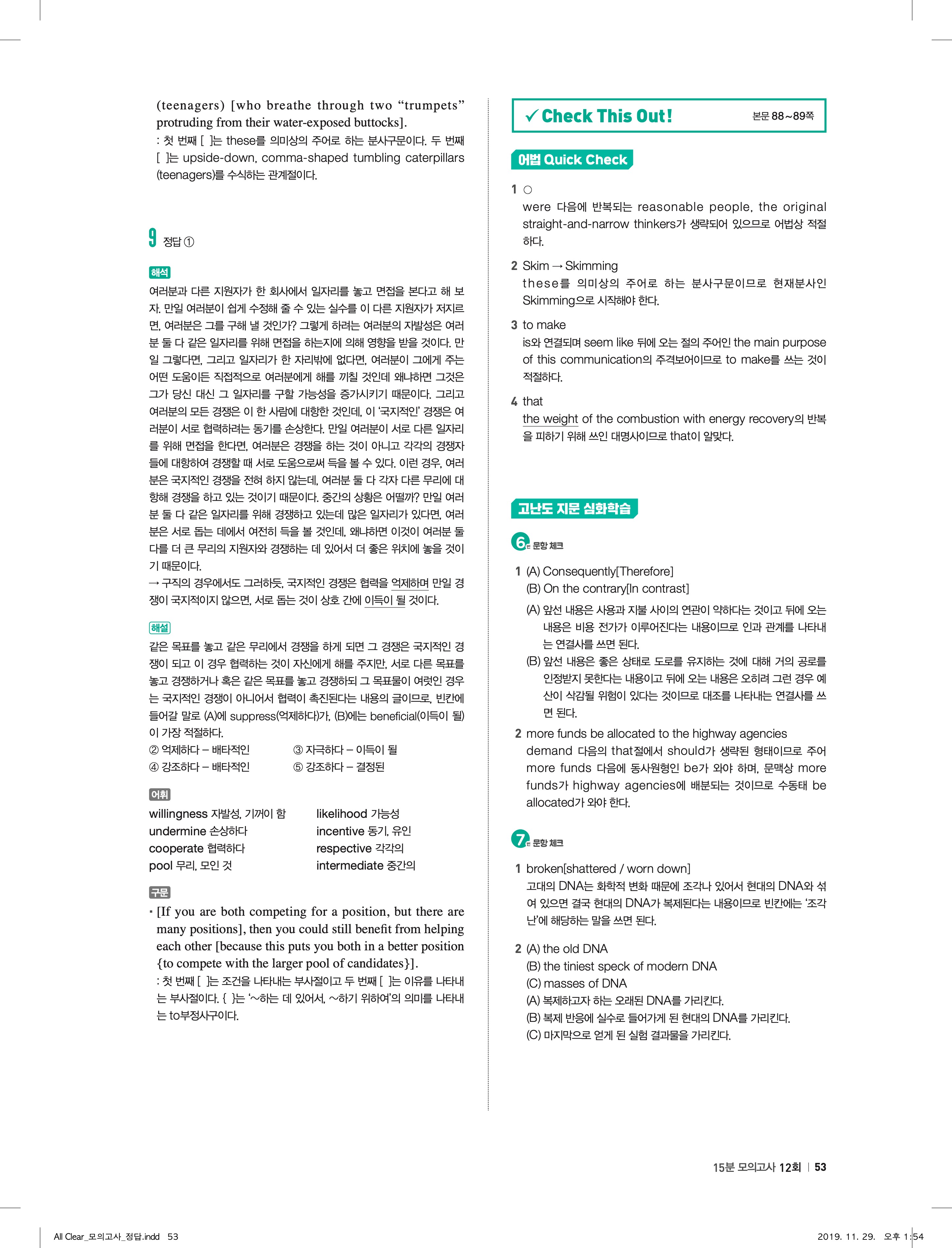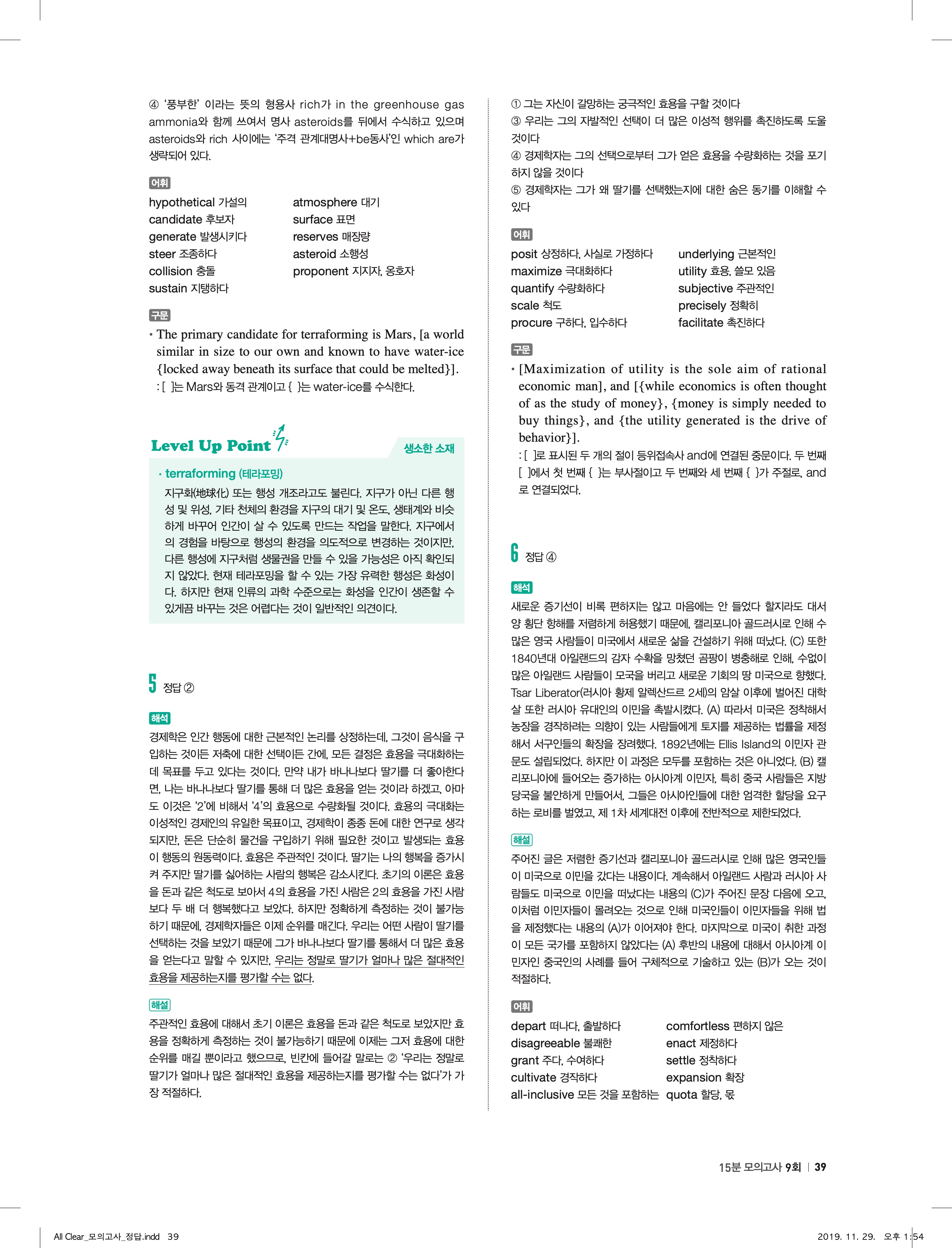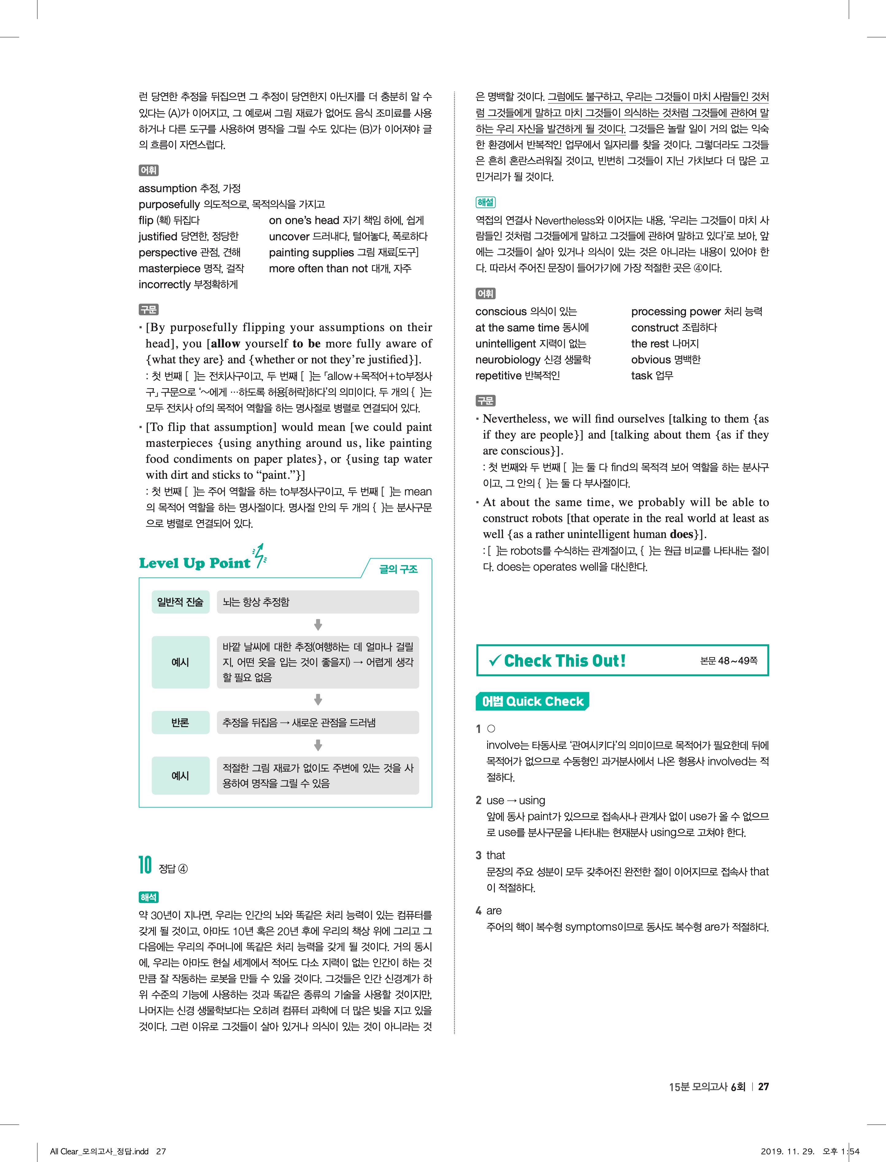 올클리어 유형 15분 모의고사 영어독해 15회 답지 해설 바로보는 사진답지 빠른답지 모바일최적화