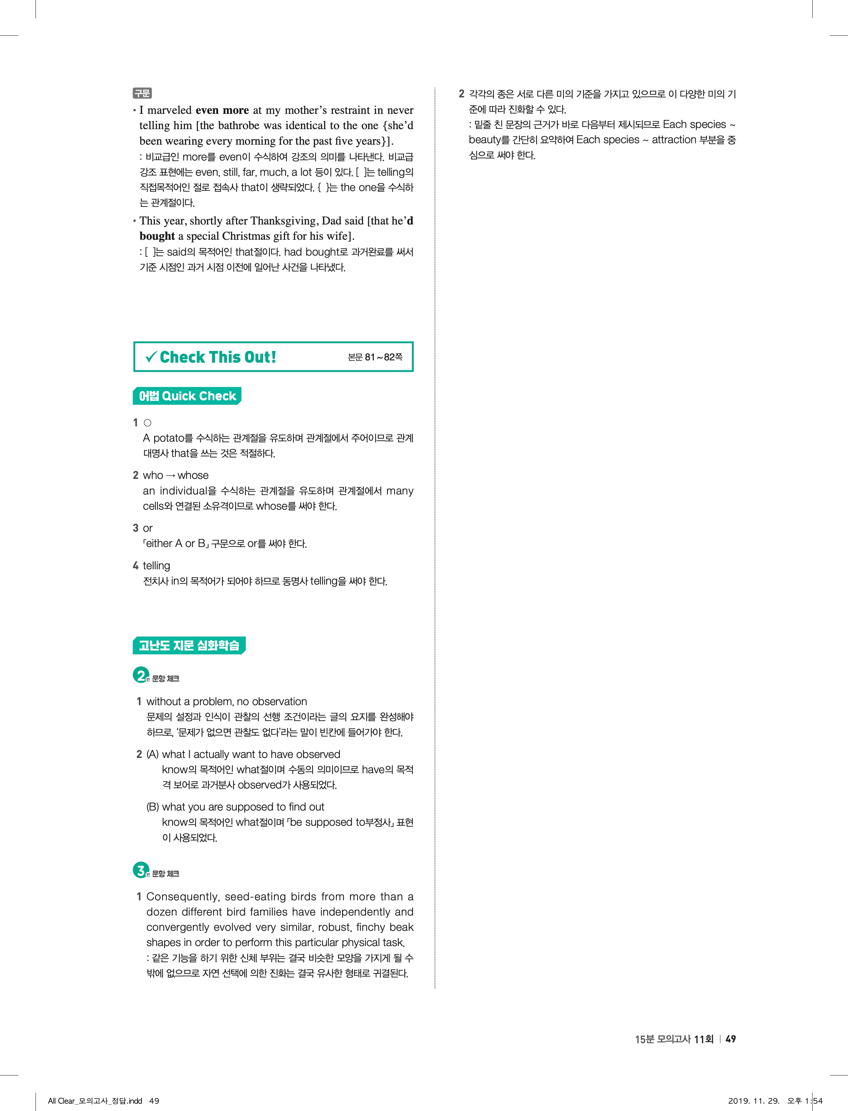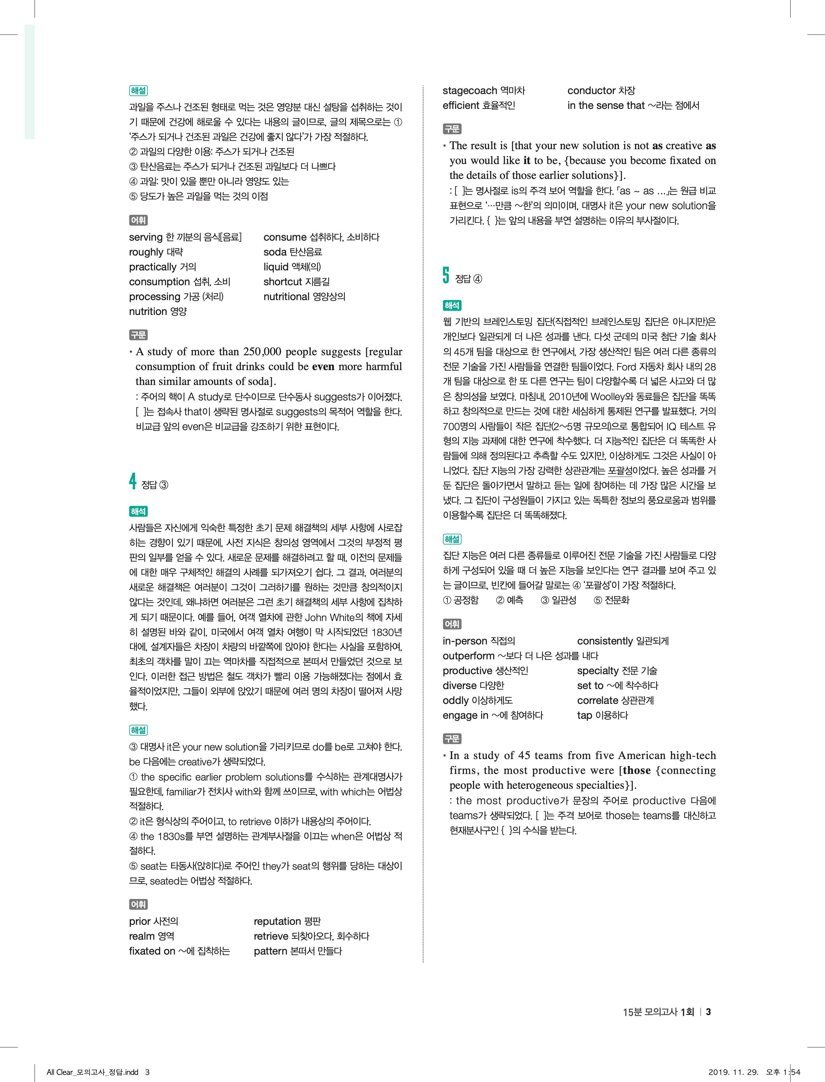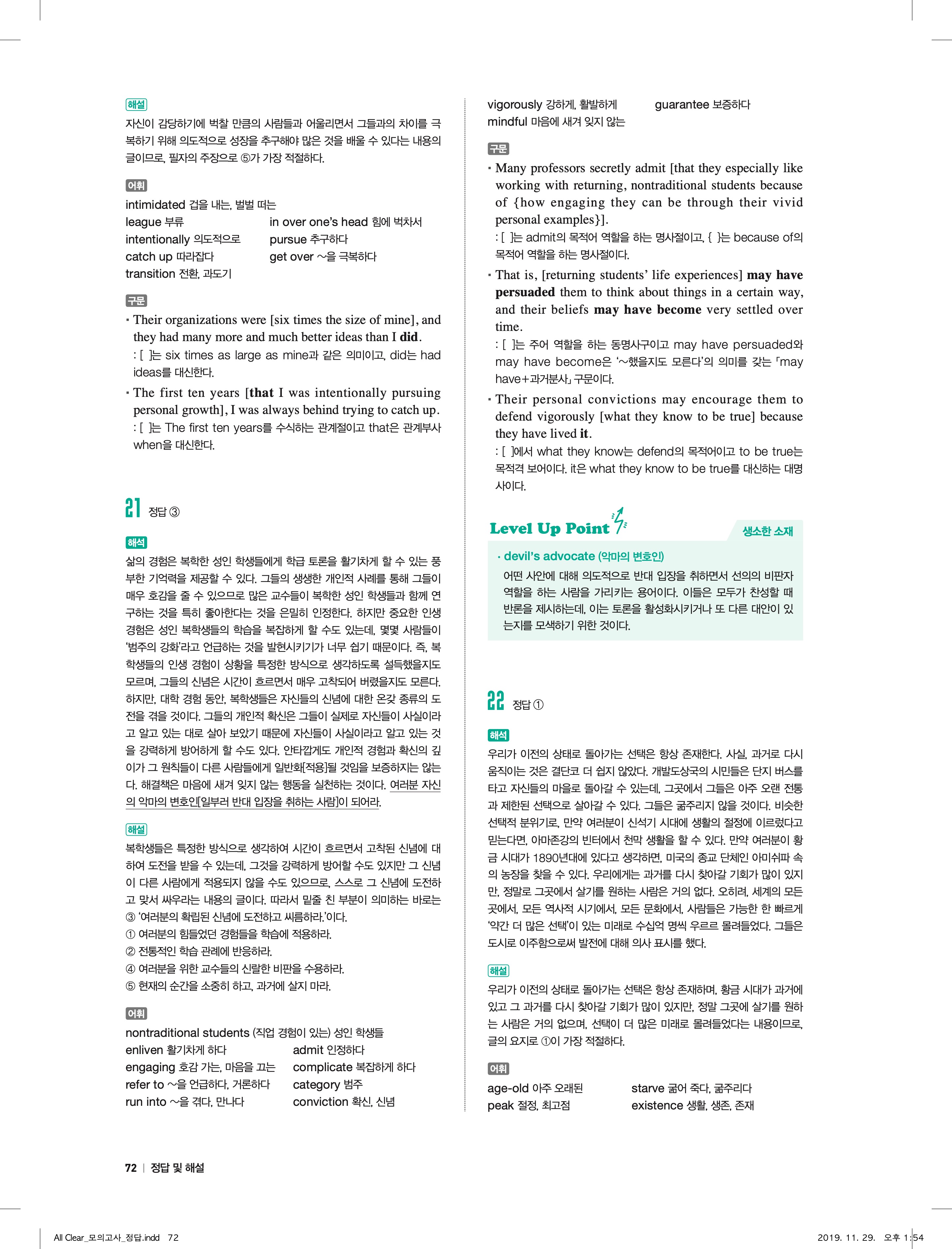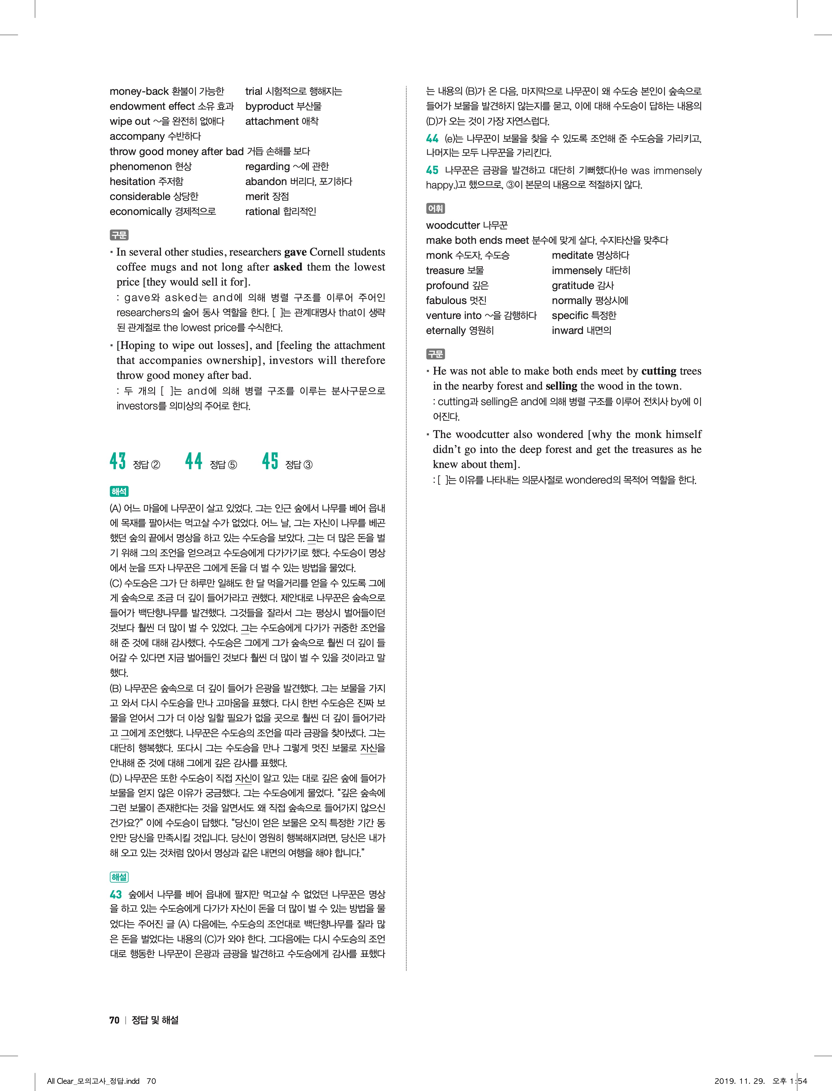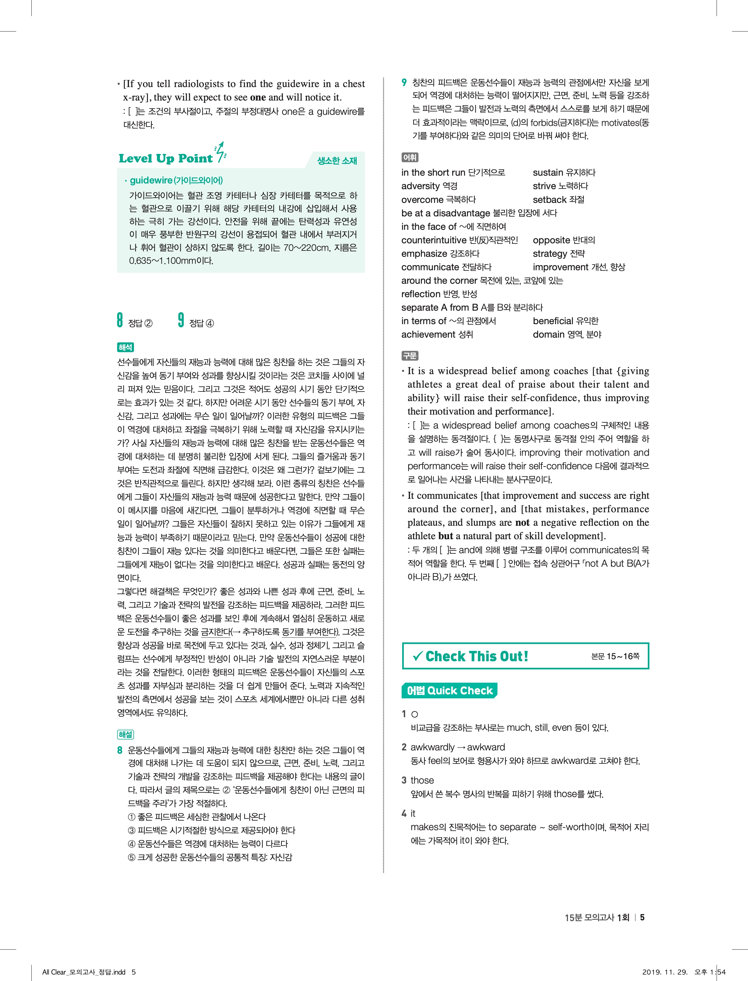 올클리어 유형 15분 모의고사 영어독해 15회 답지 해설 바로보는 사진답지 빠른답지 모바일최적화