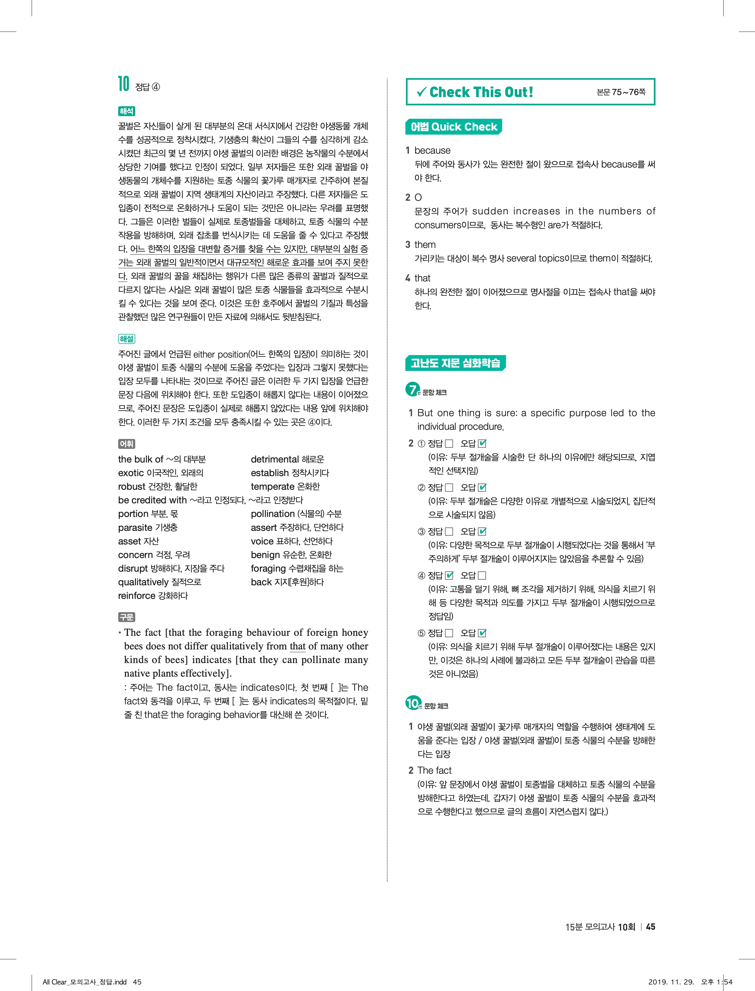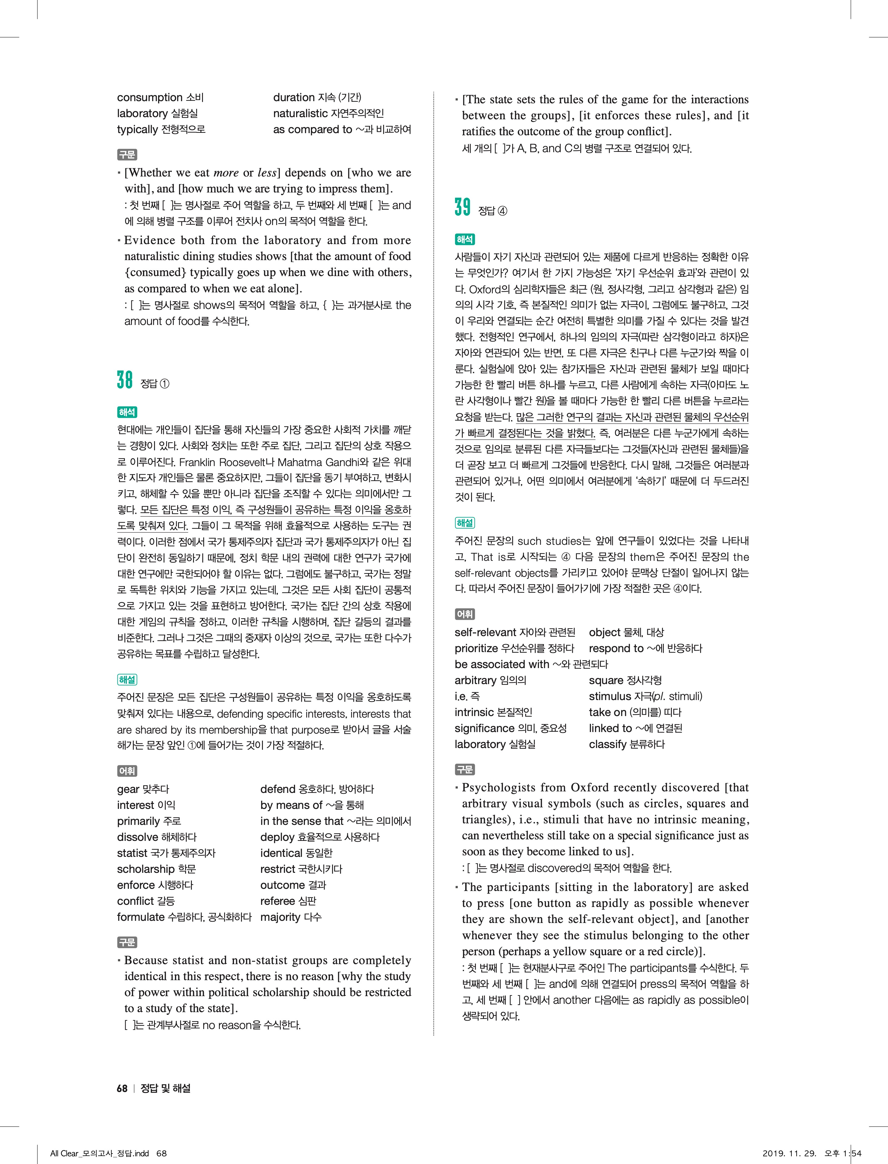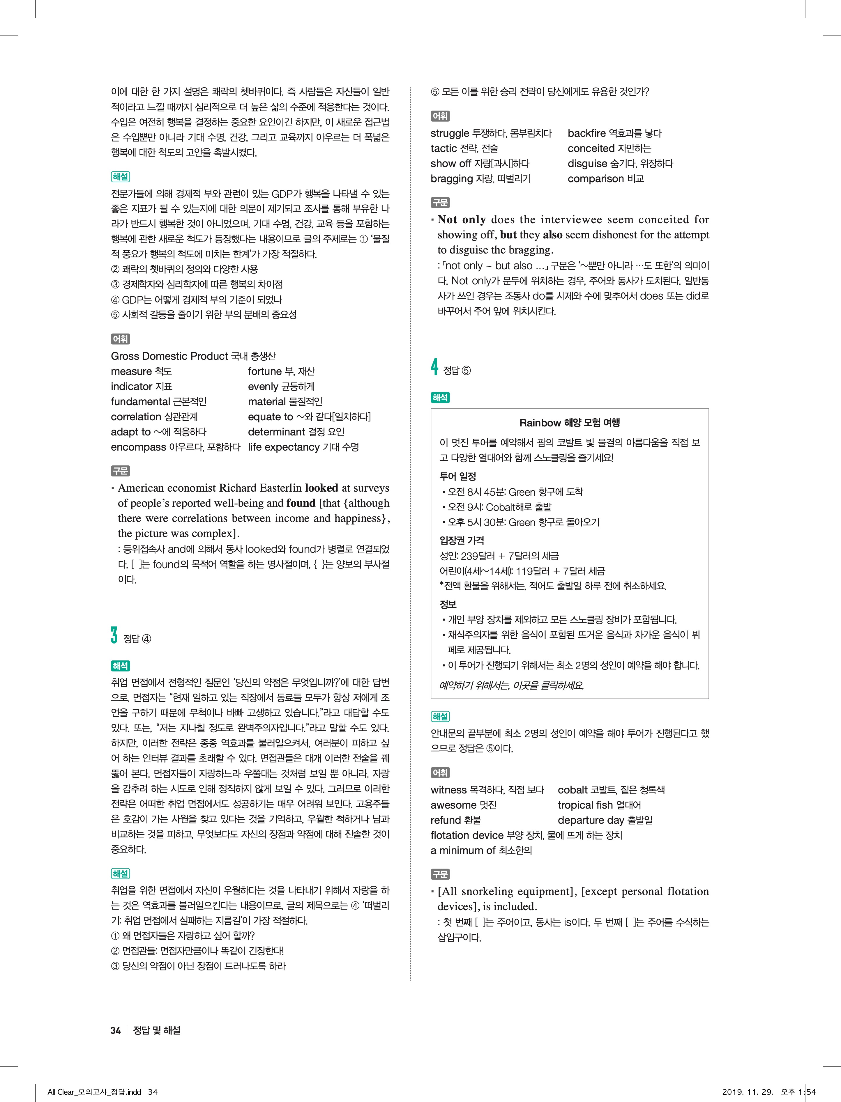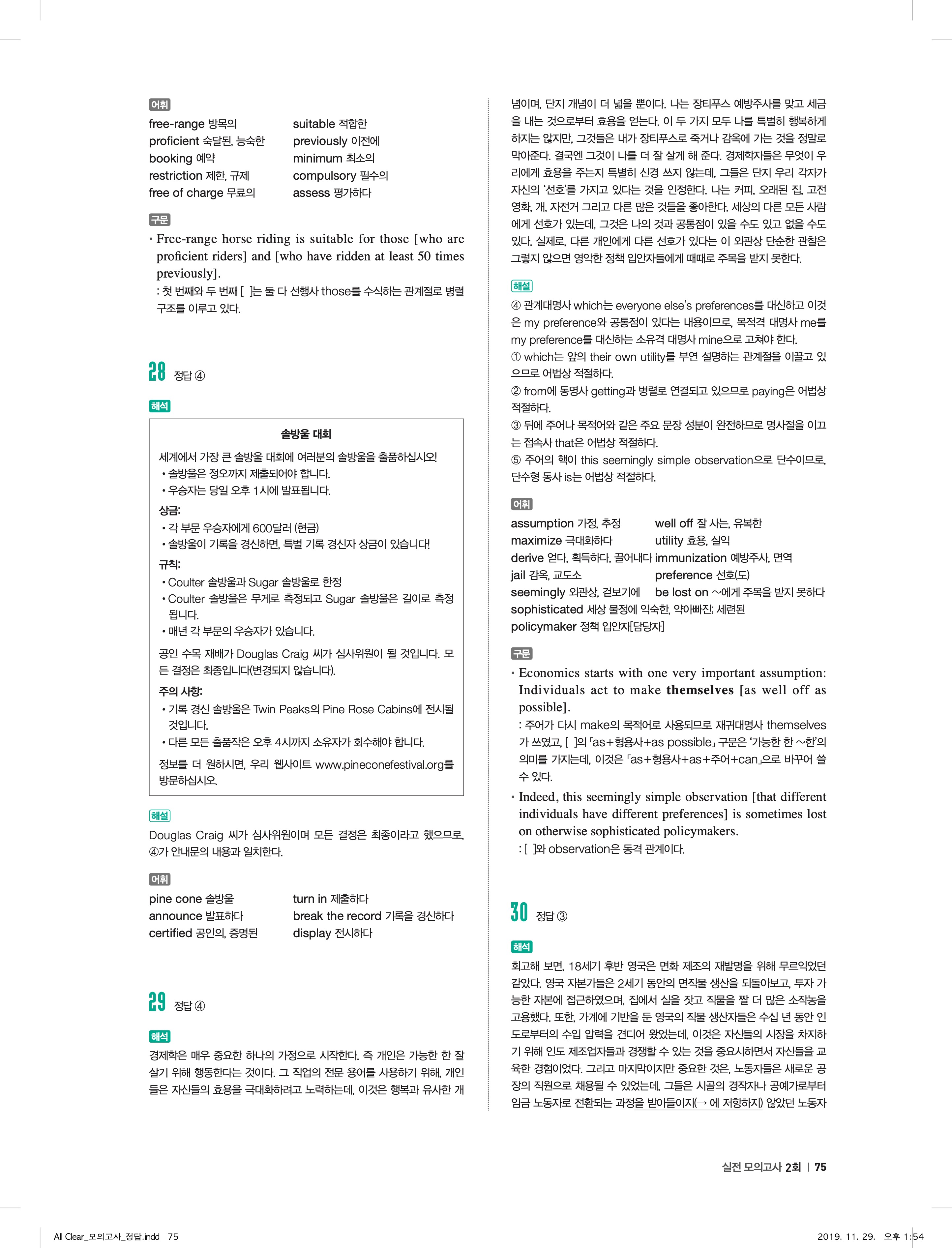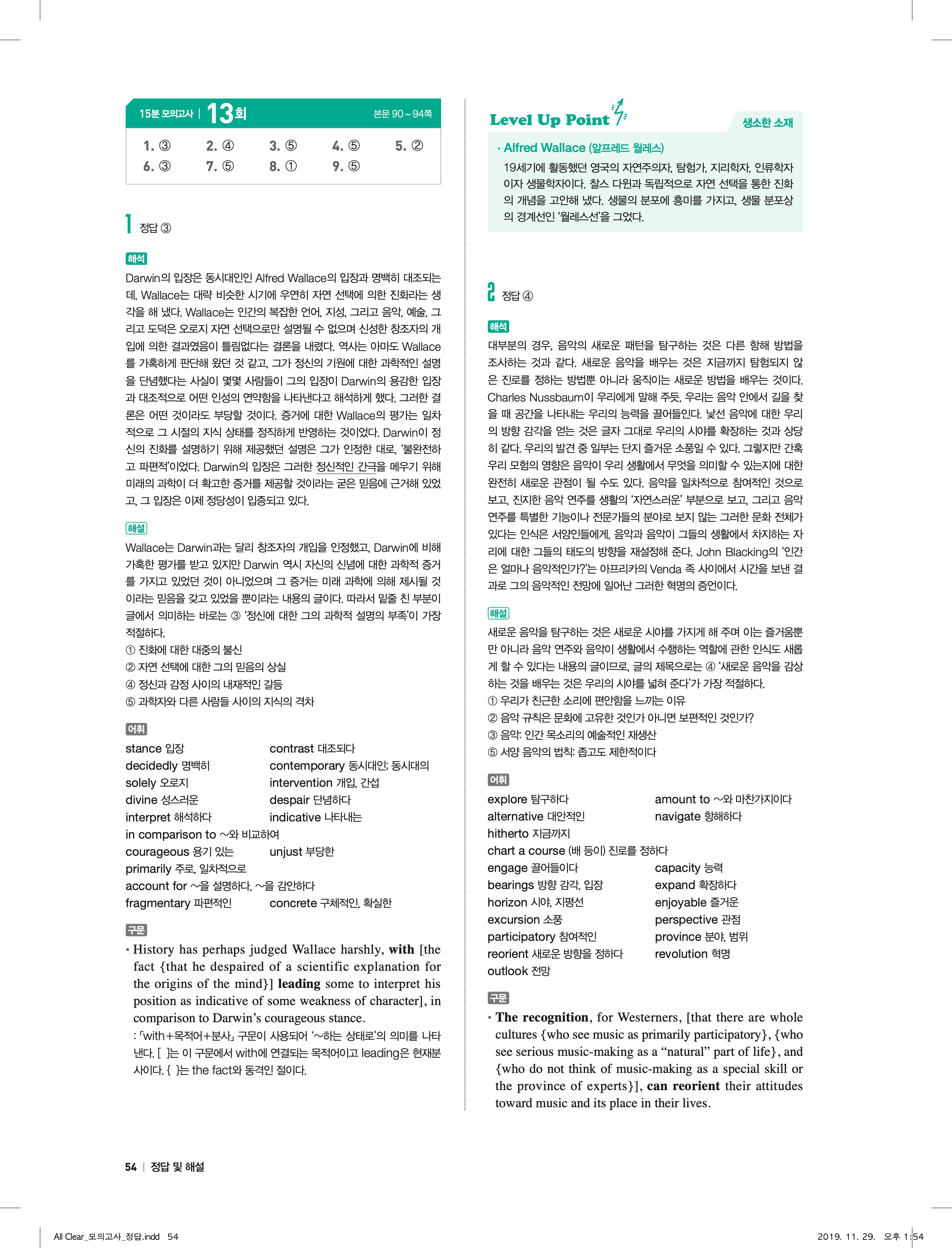 올클리어 유형 15분 모의고사 영어독해 15회 답지 해설 바로보는 사진답지 빠른답지 모바일최적화