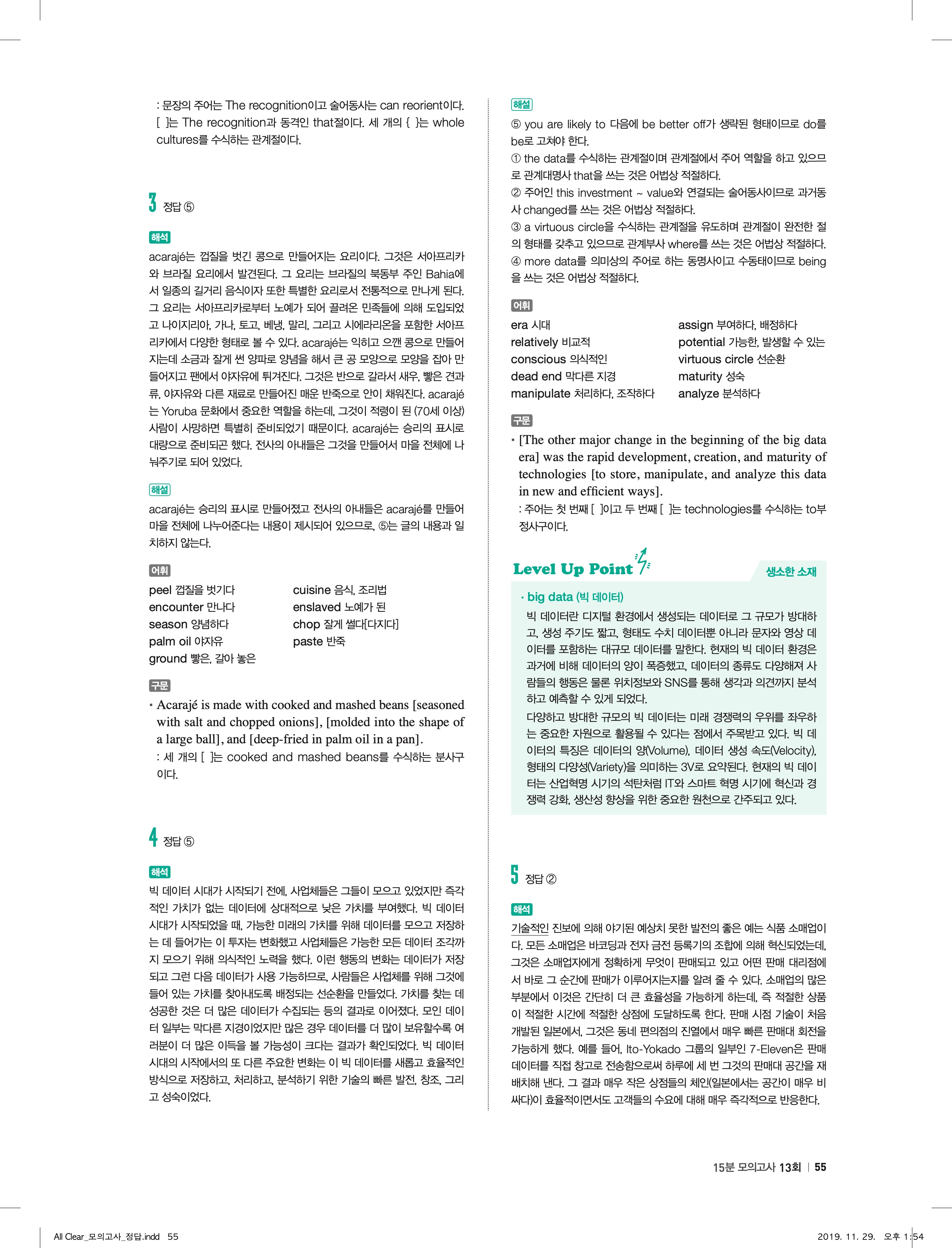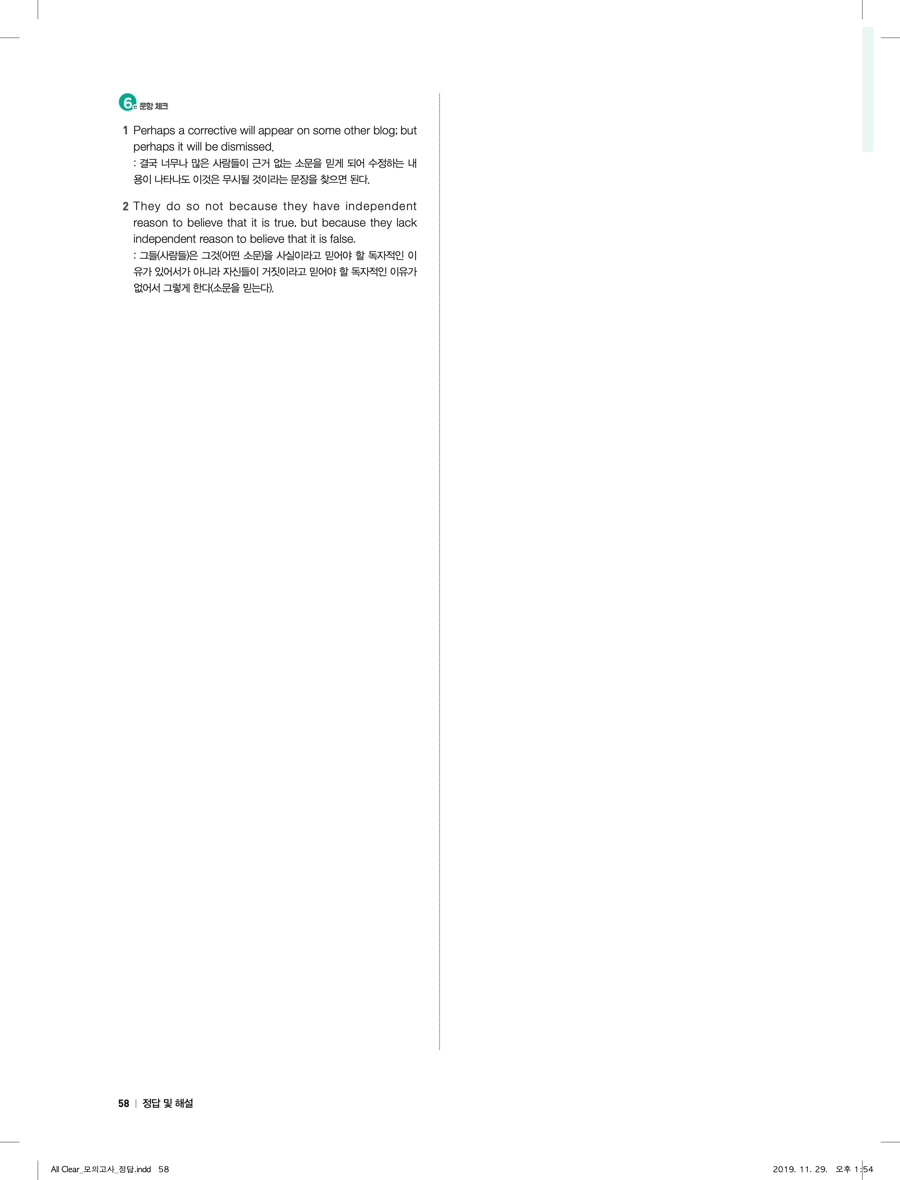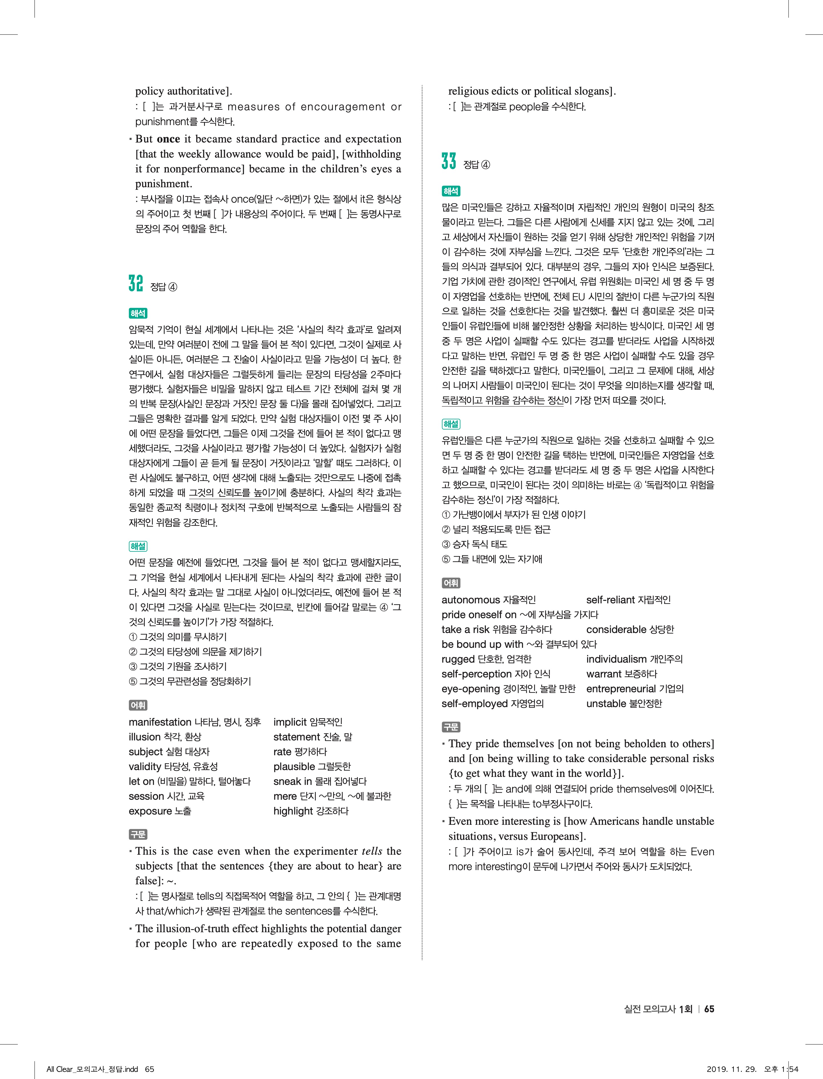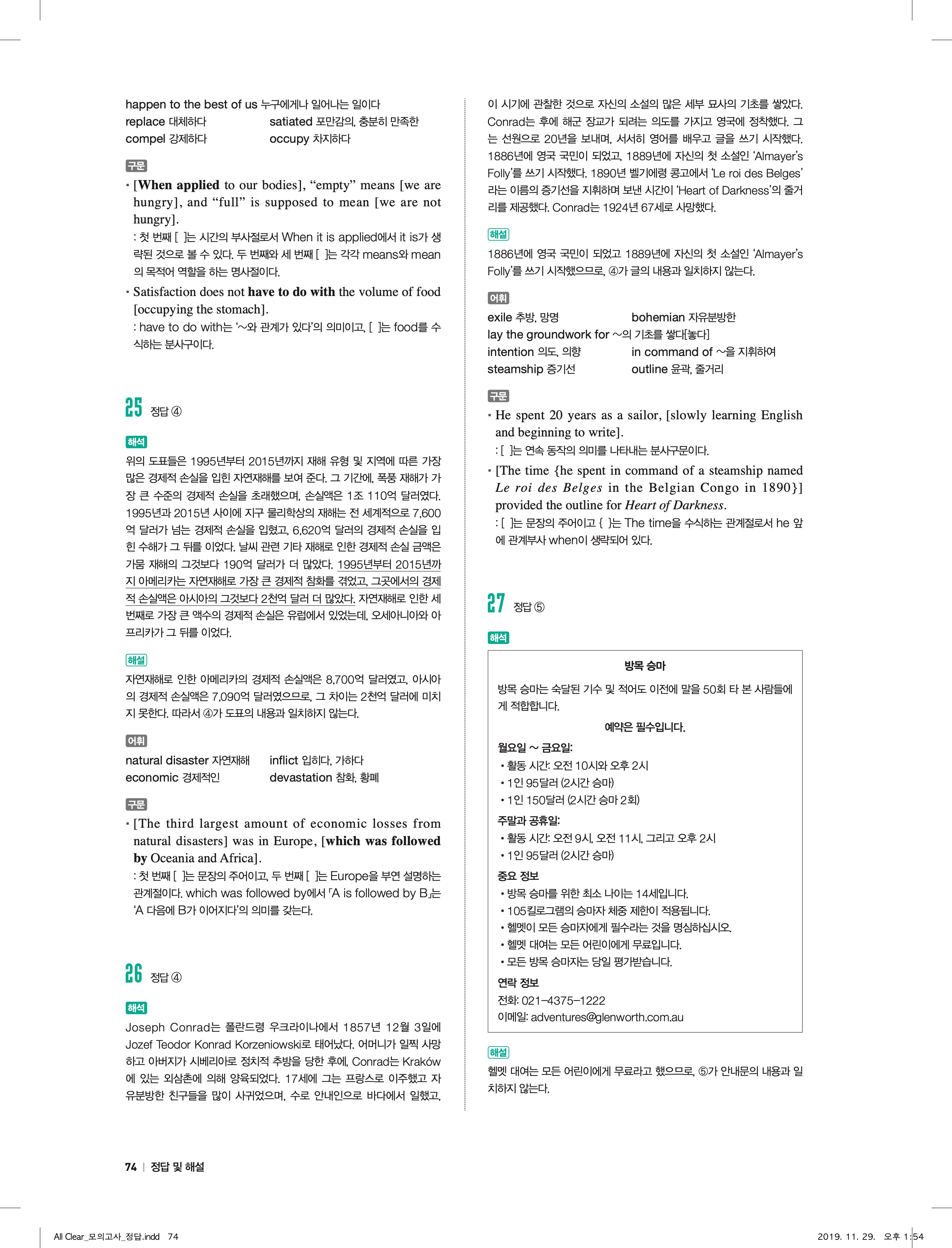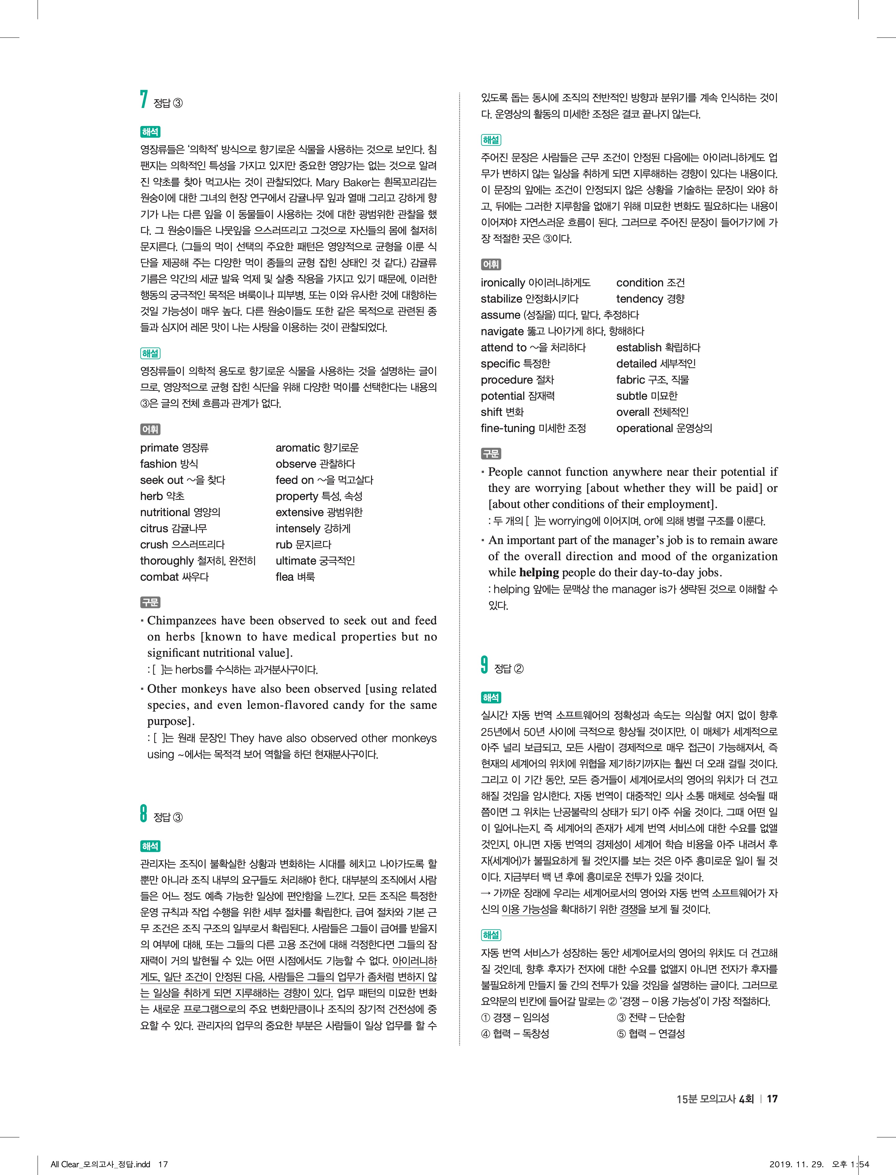 올클리어 유형 15분 모의고사 영어독해 15회 답지 해설 바로보는 사진답지 빠른답지 모바일최적화