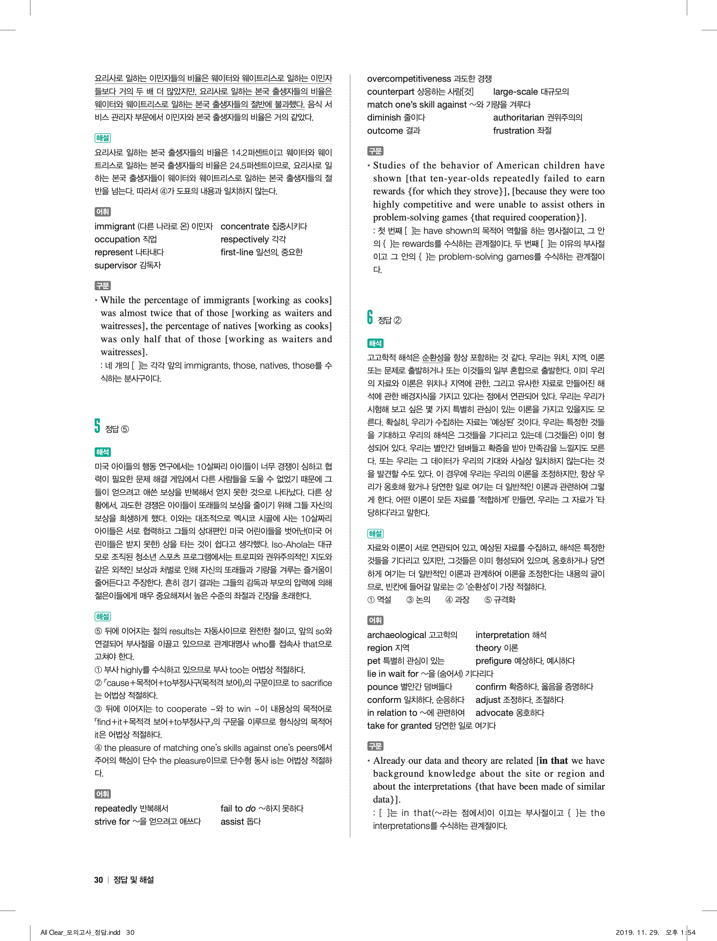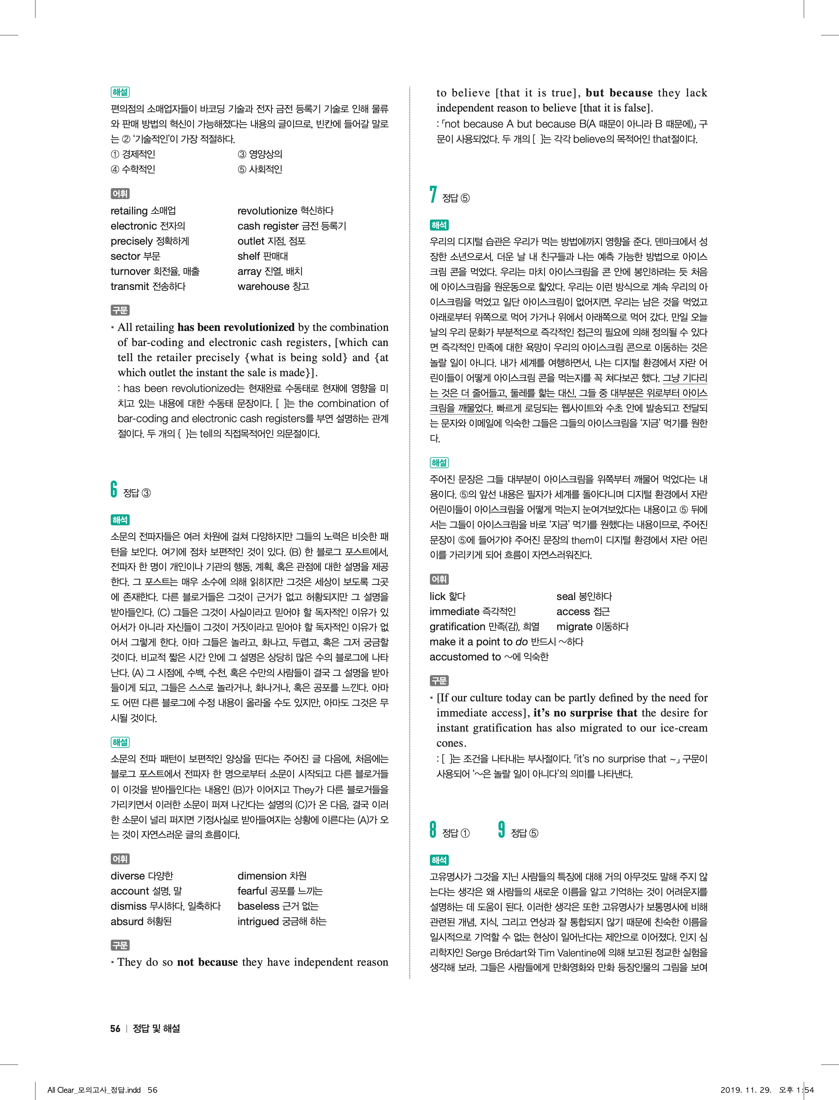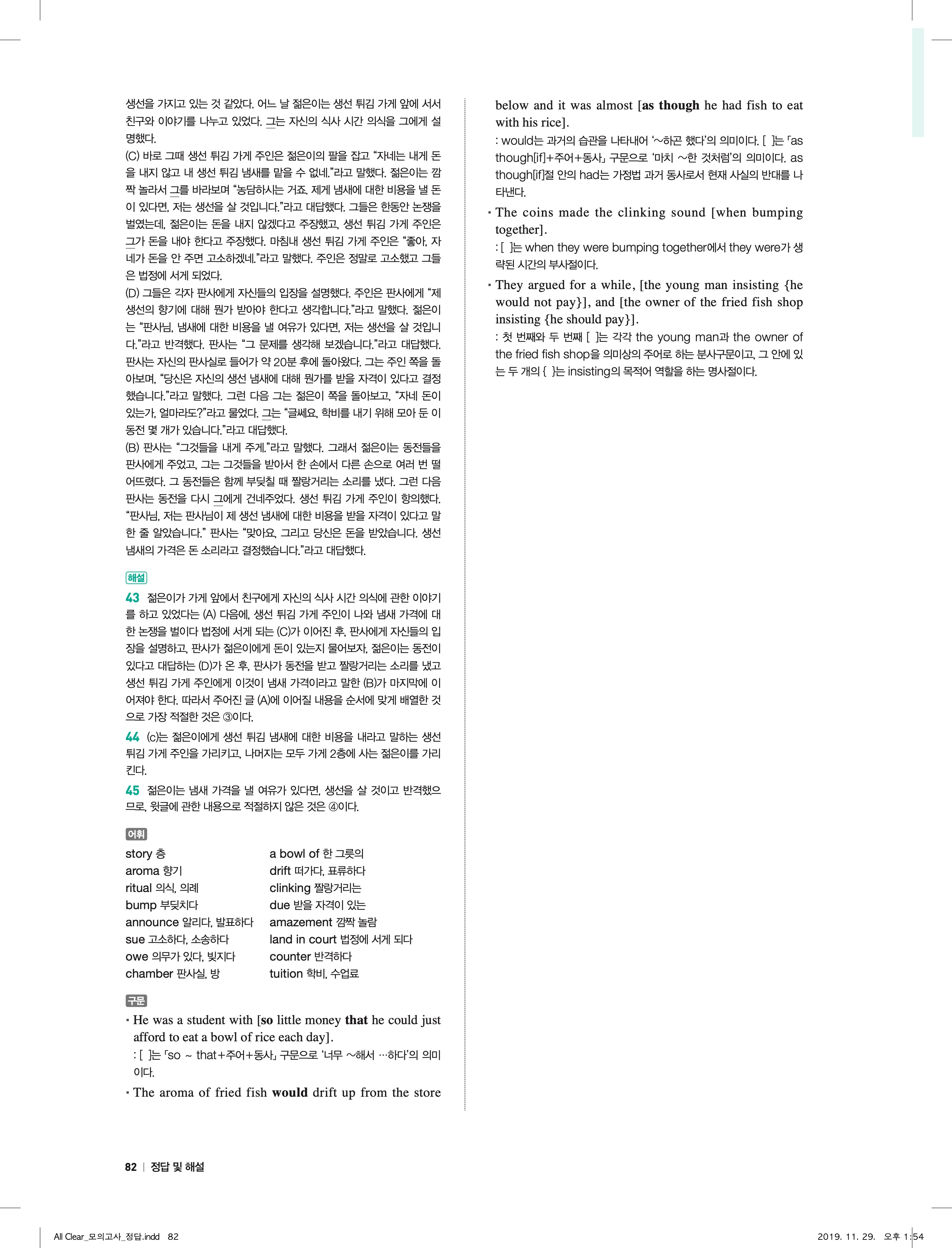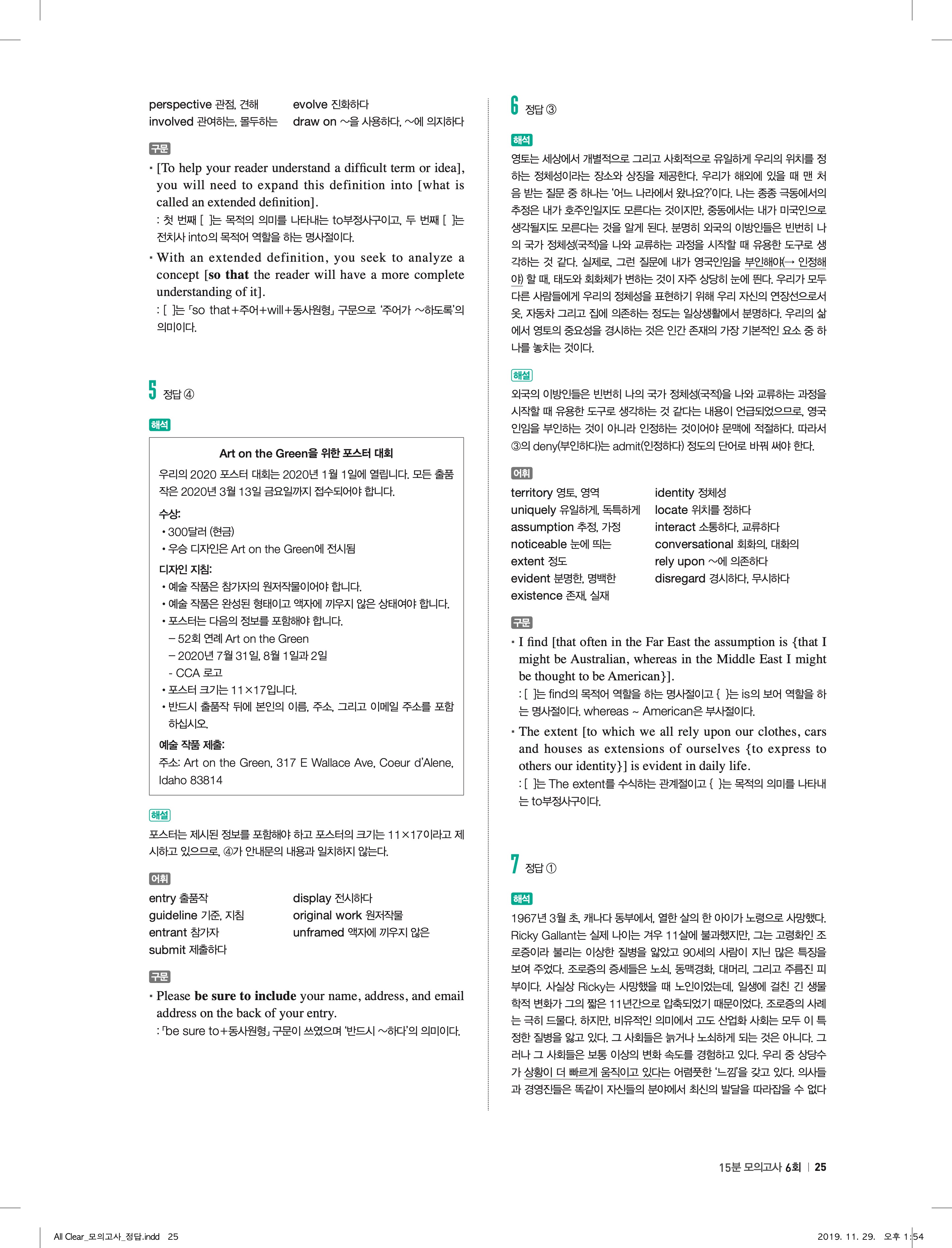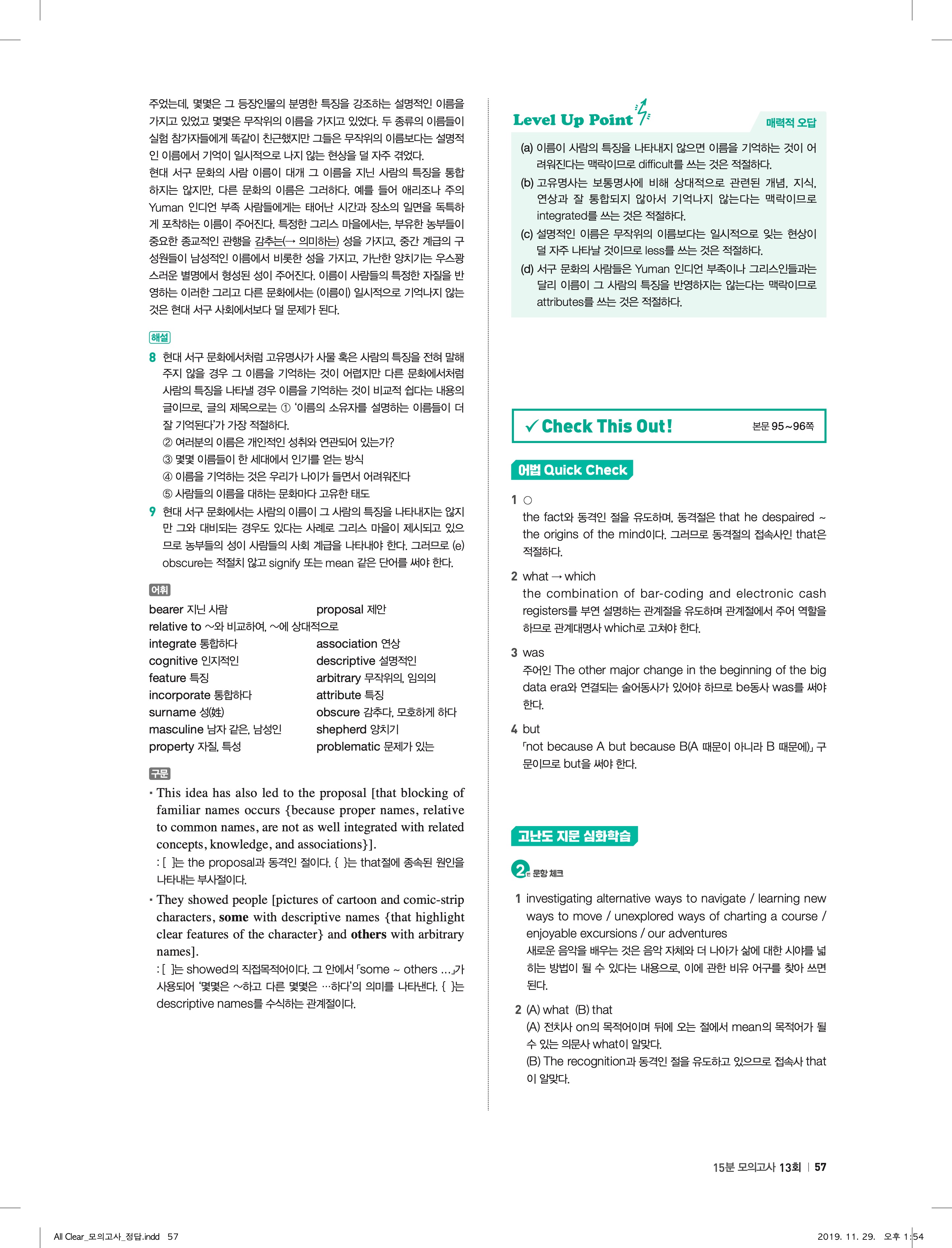 올클리어 유형 15분 모의고사 영어독해 15회 답지 해설 바로보는 사진답지 빠른답지 모바일최적화