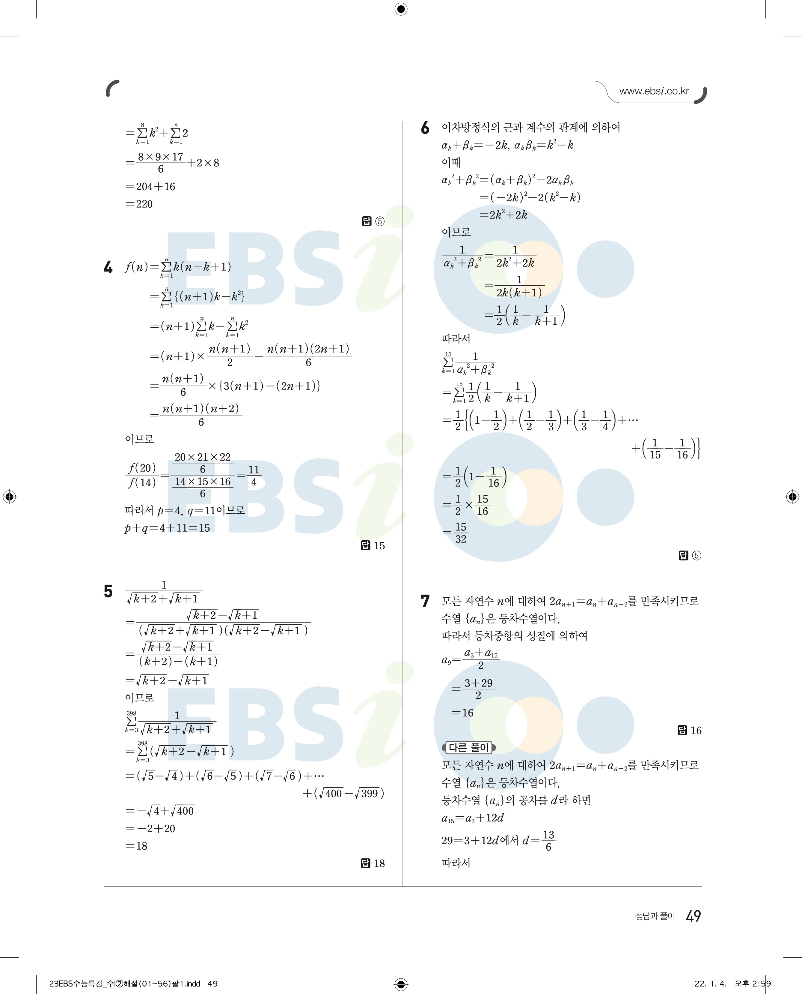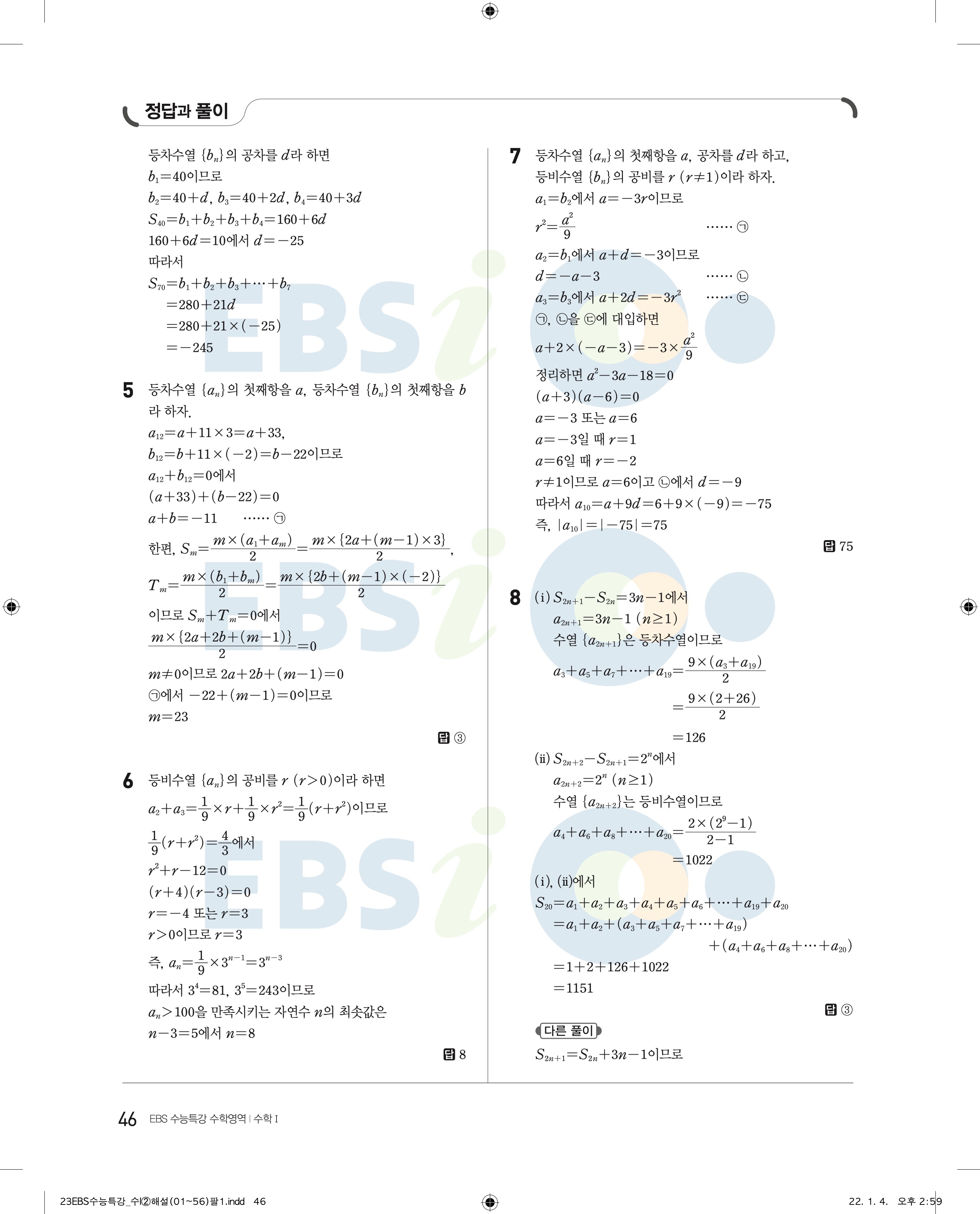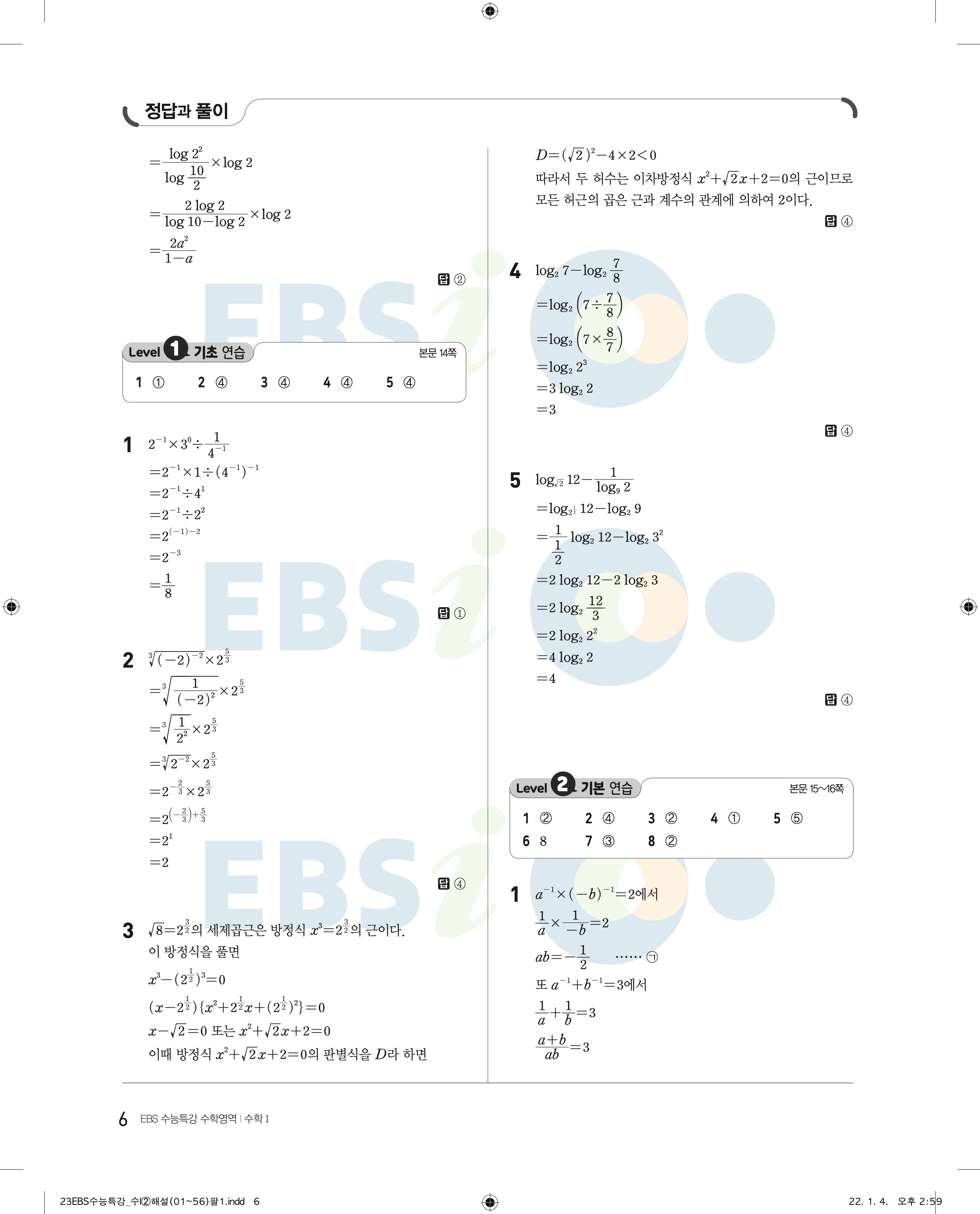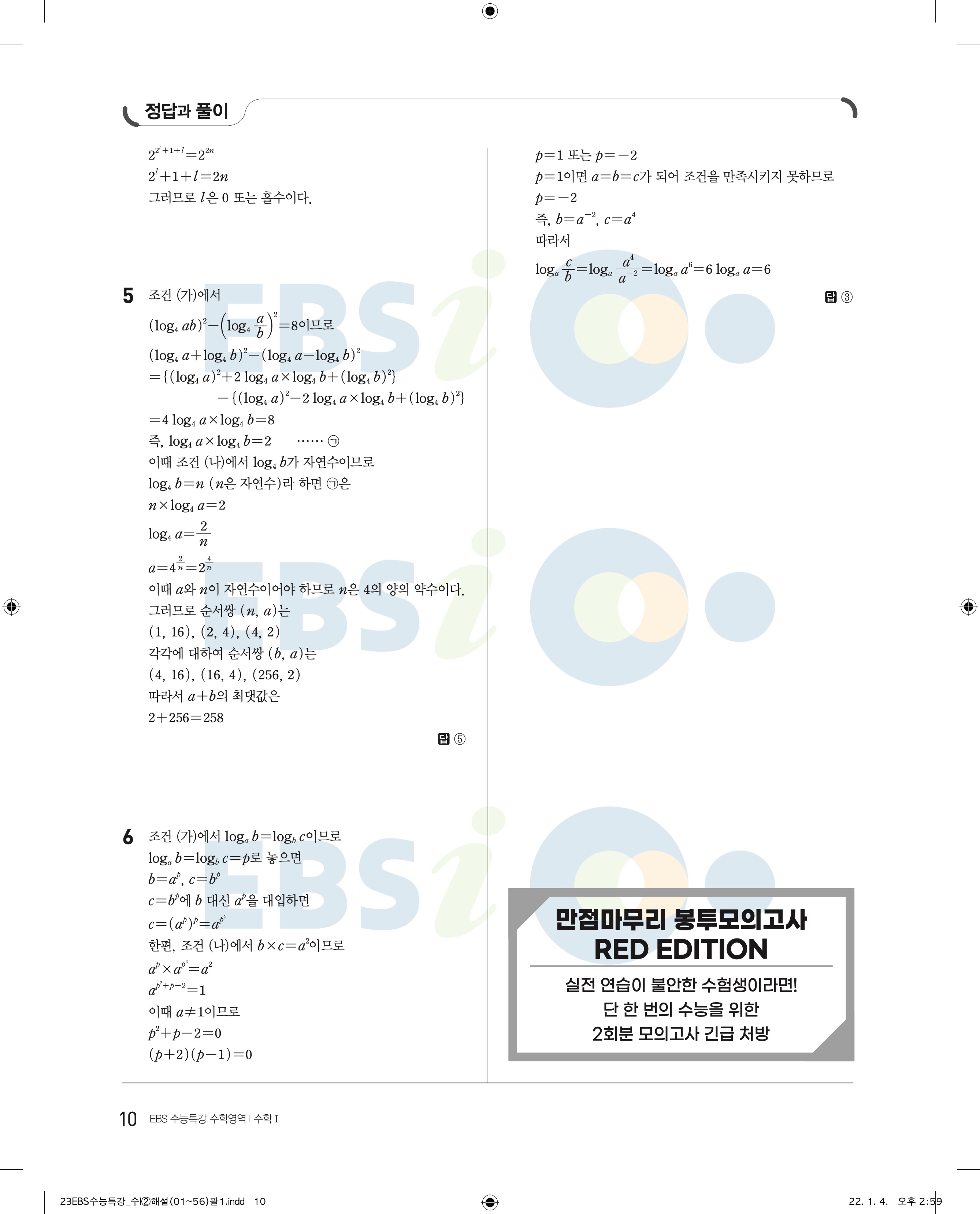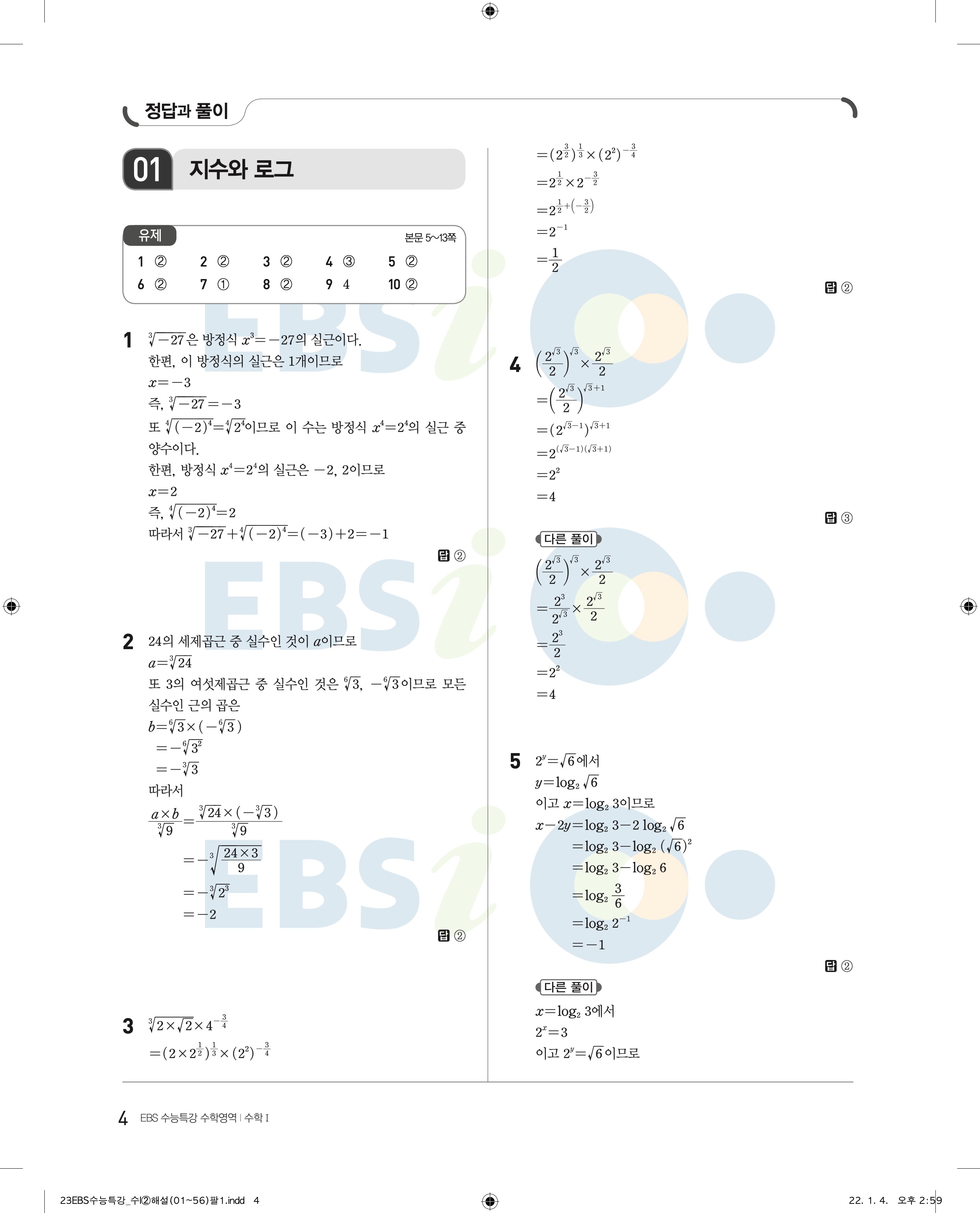 2023 수능특강 수학1 답지 수특수1 답지 바로보는 사진답지 모바일최적화